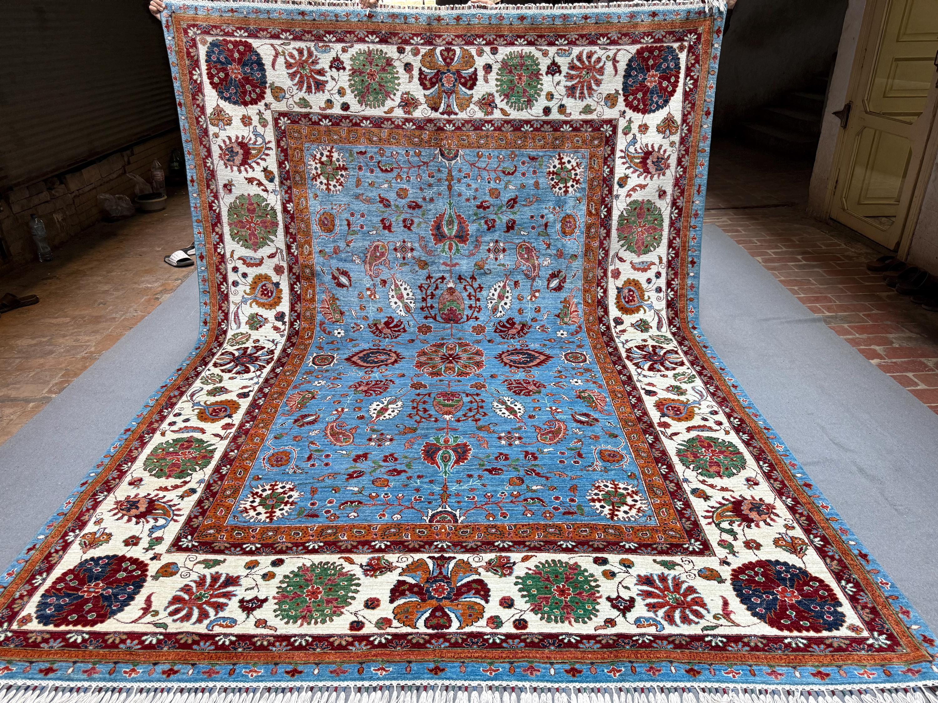 Woven entirely by hand from 100% natural wool, this piece offers a soft and durable pile with remarkable detail and depth. Perfect for living rooms, dining areas, or large office spaces, it brings a luxurious yet inviting feel to any setting — balancing elegance, tradition, and warmth.
