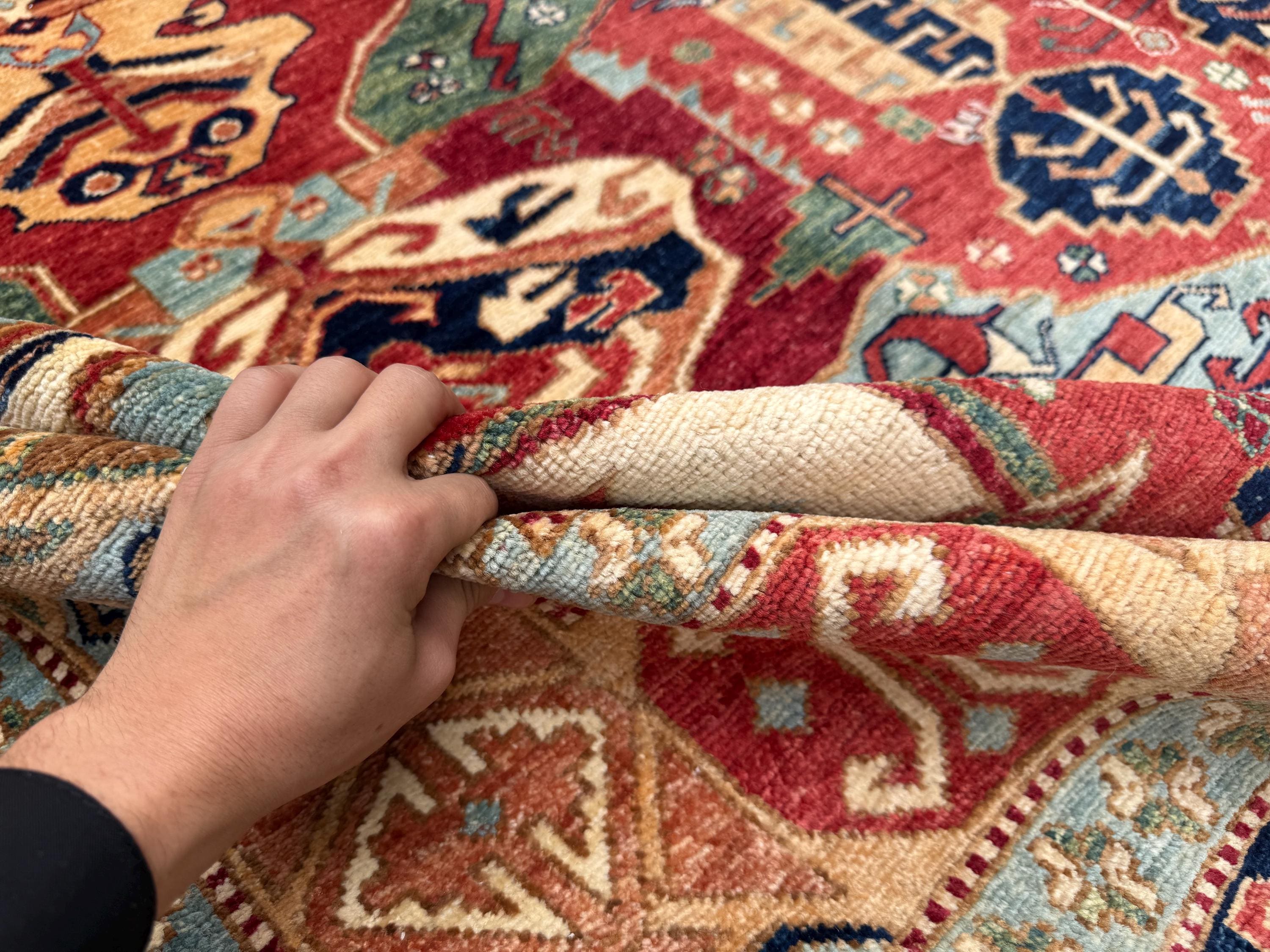 Fine Serapi rugs are known for their high-quality craftsmanship, detailed patterns, and durable wool construction, making them perfect for spacious living rooms, dining areas, and open layouts. This rug is hand-knotted from 100% natural wool, offering a dense texture, excellent durability, and a comfortable feel underfoot.
