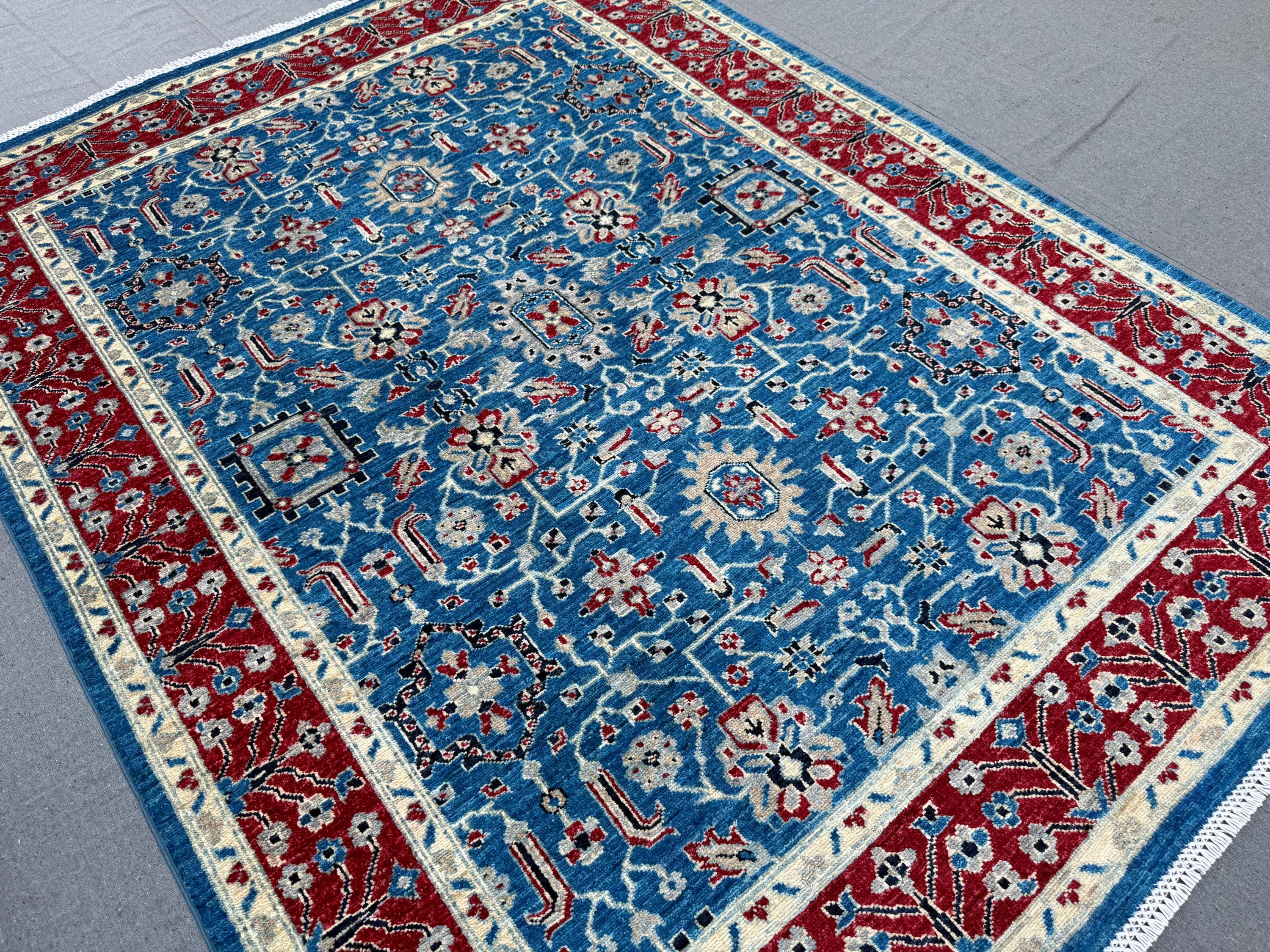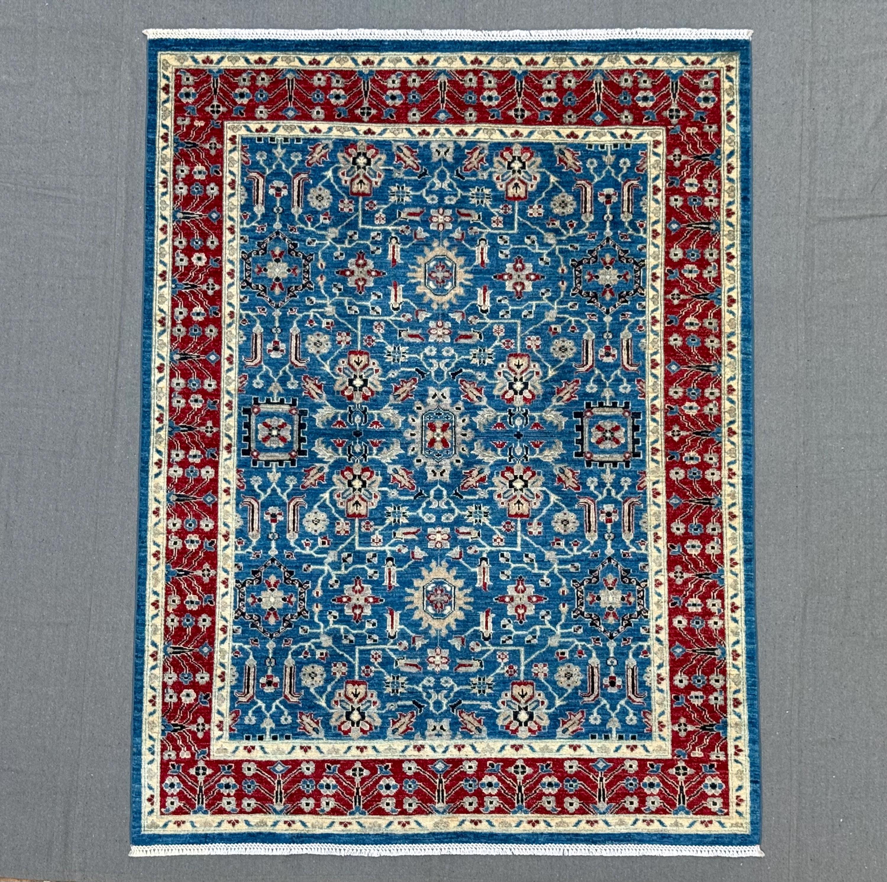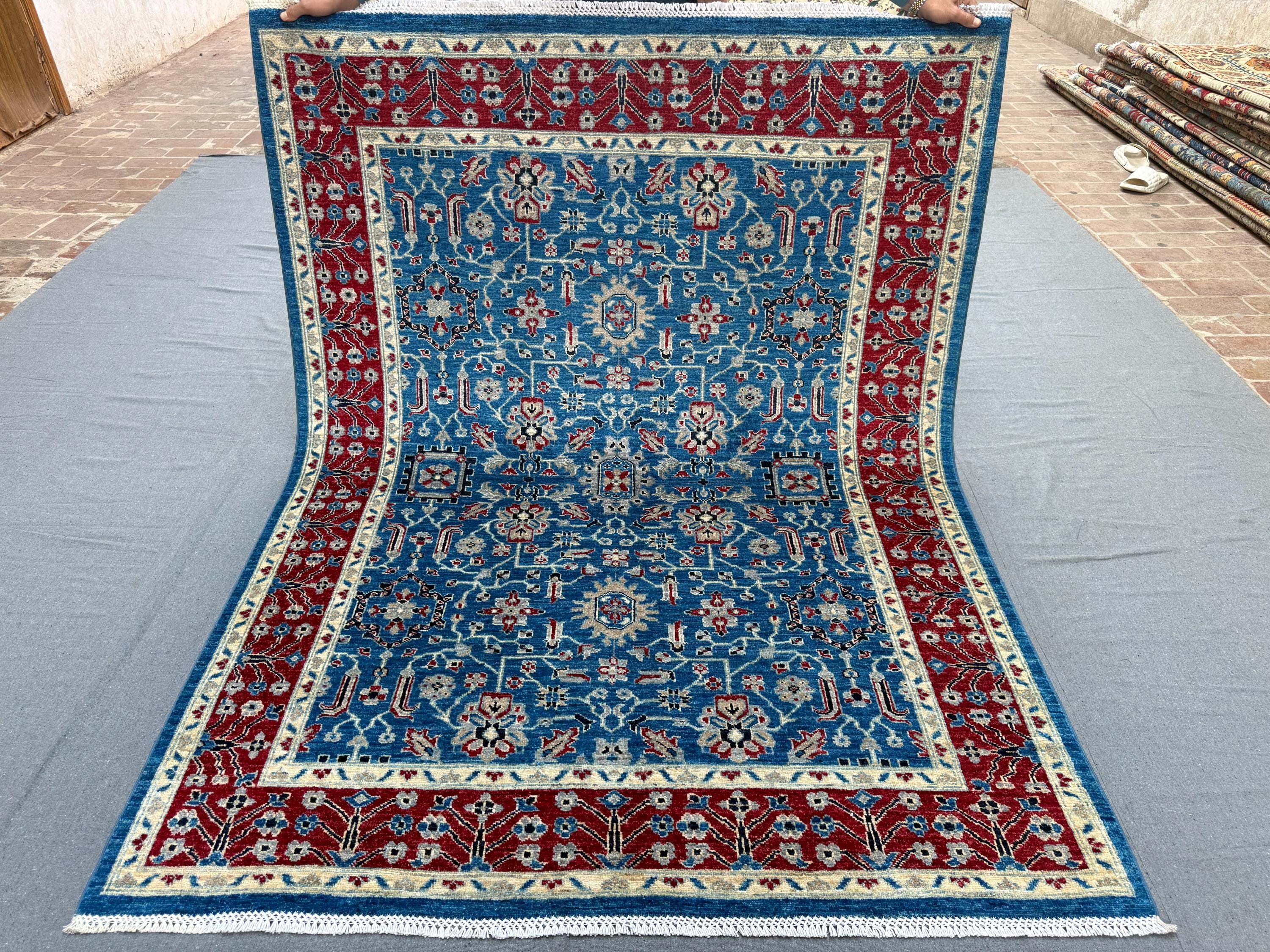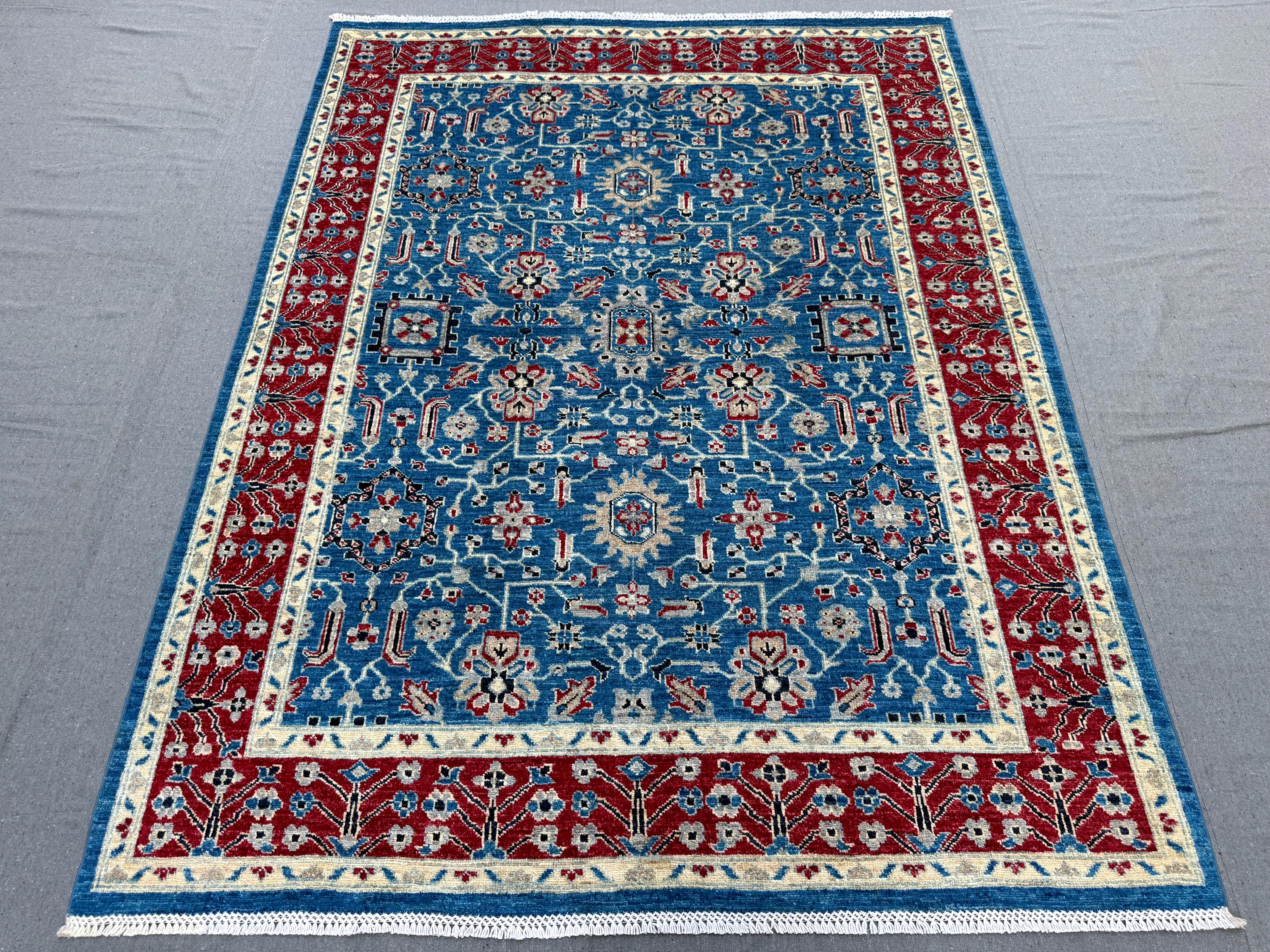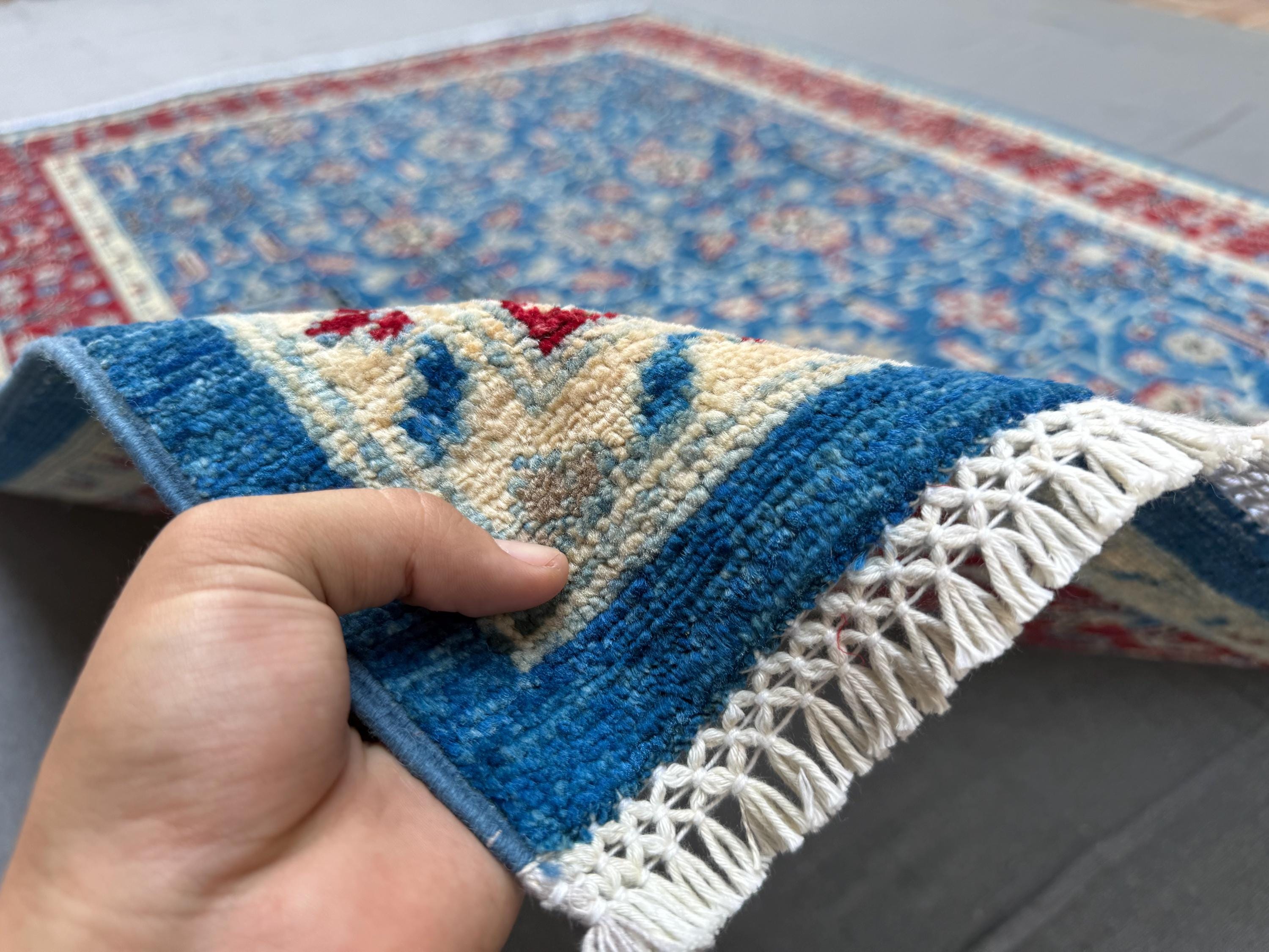 Handmade Afghan Oriental Rug 5x6 ft Blue & Red Wool Area Carpet | Tribal Floral Vintage Style Design | Traditional Living Room Home Decor