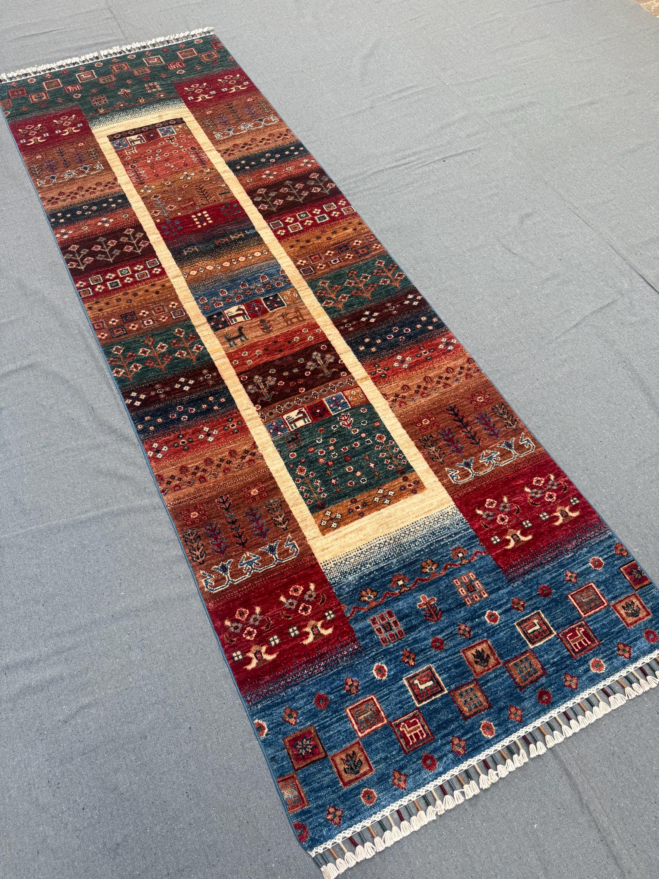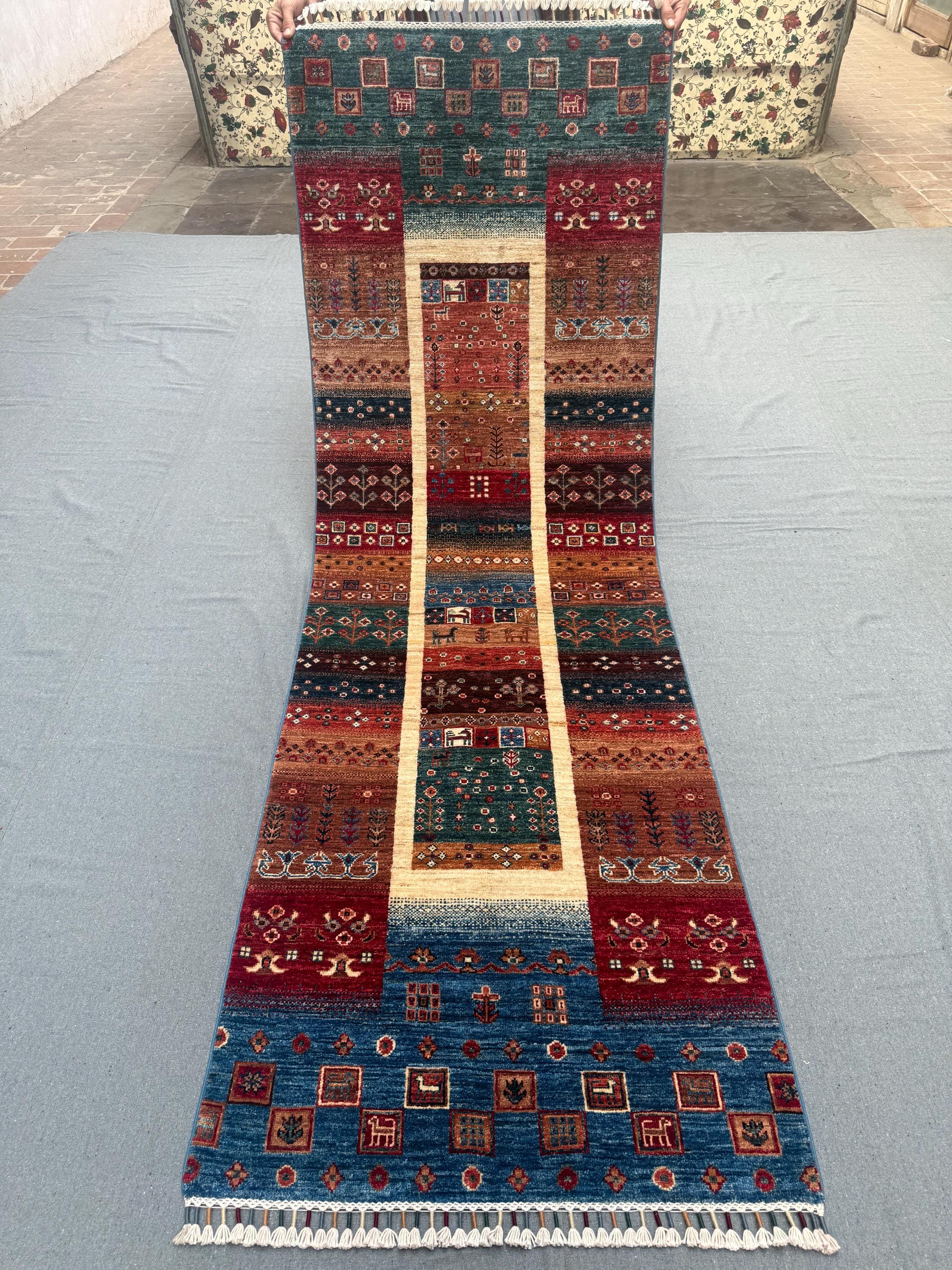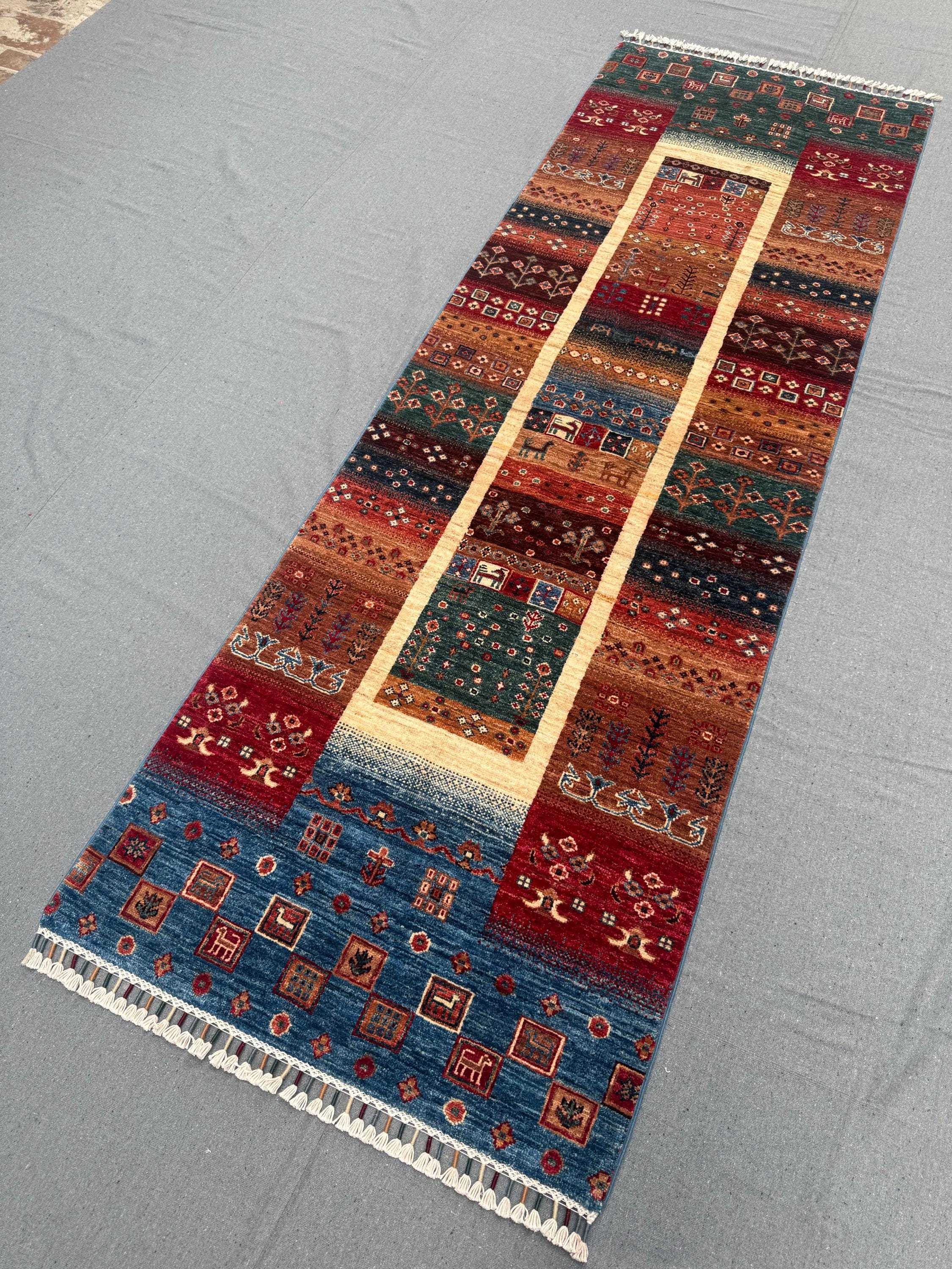 If you‘re looking for a unique handmade runner with color, symbolism, and personality, this Gabbeh design is a perfect choice.