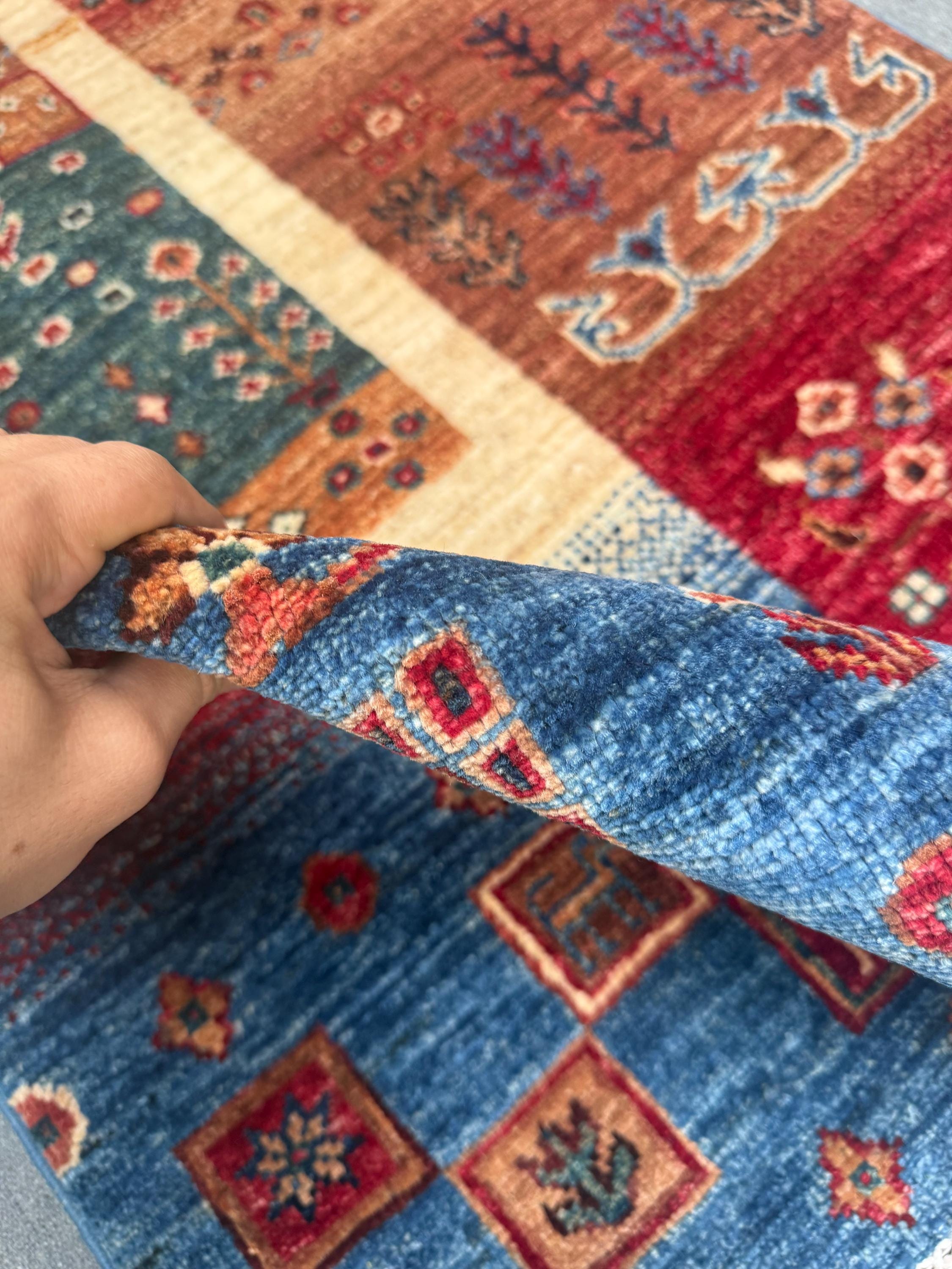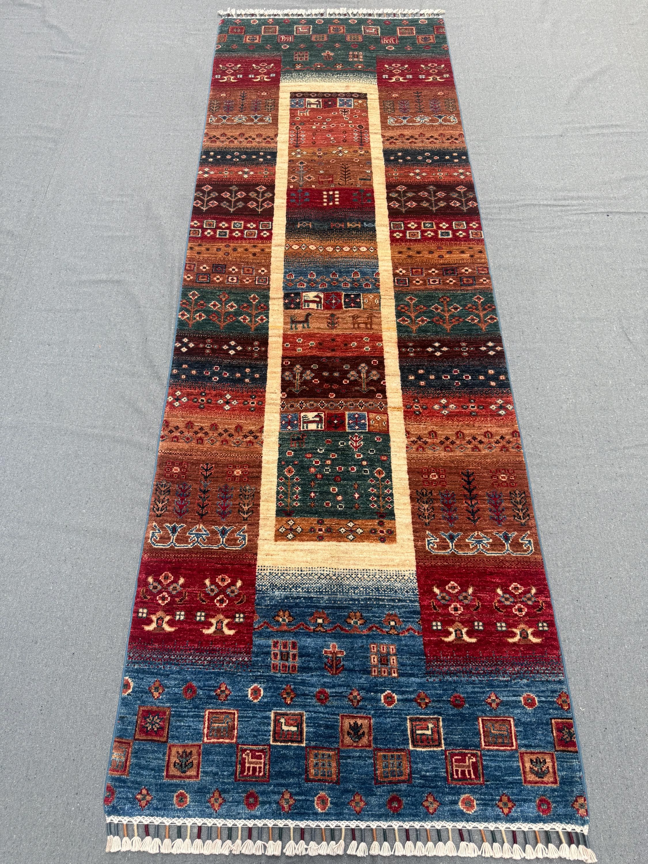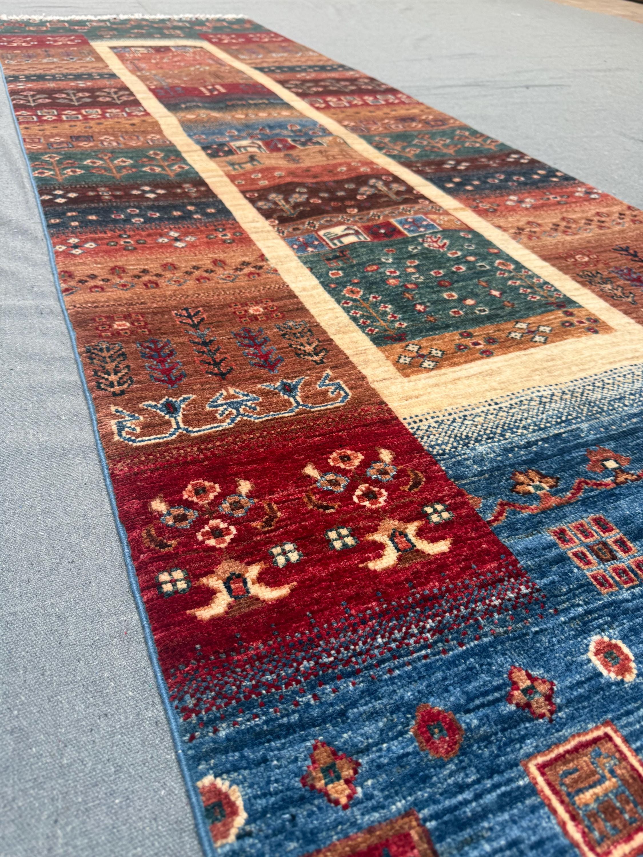 If you‘re looking for a unique handmade runner with color, symbolism, and personality, this Gabbeh design is a perfect choice.