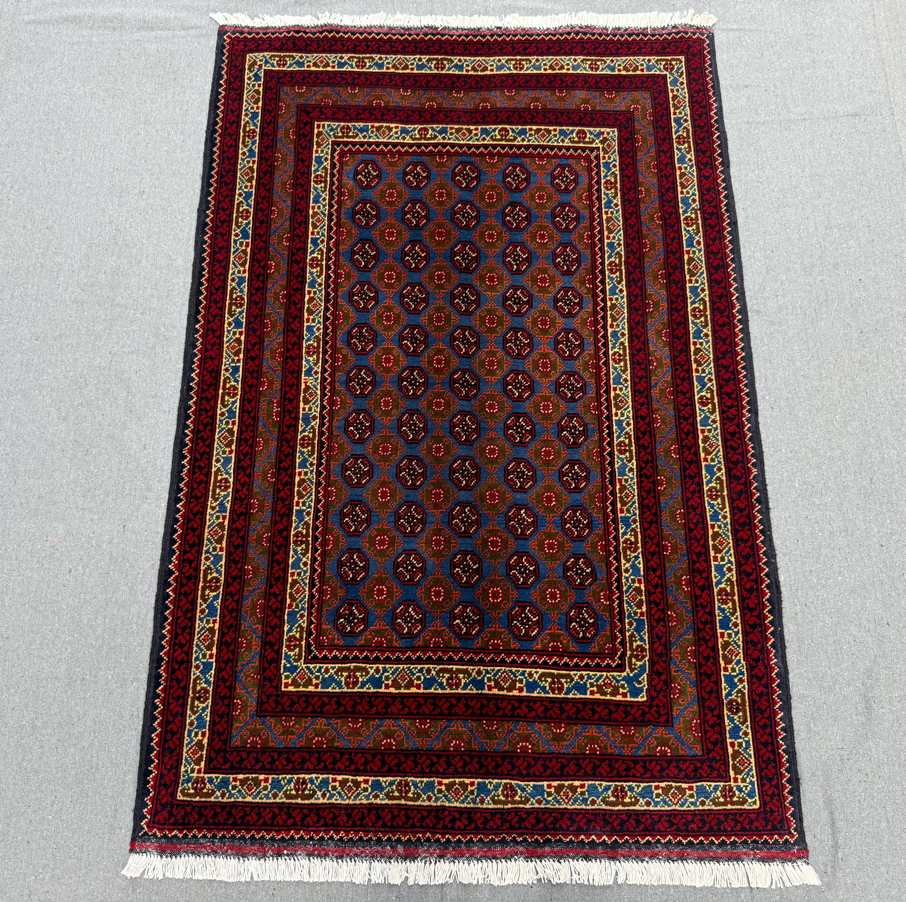 Handmade Afghan Wool Rug: Tribal Geometric Medallion Design, 3.3x5 ft