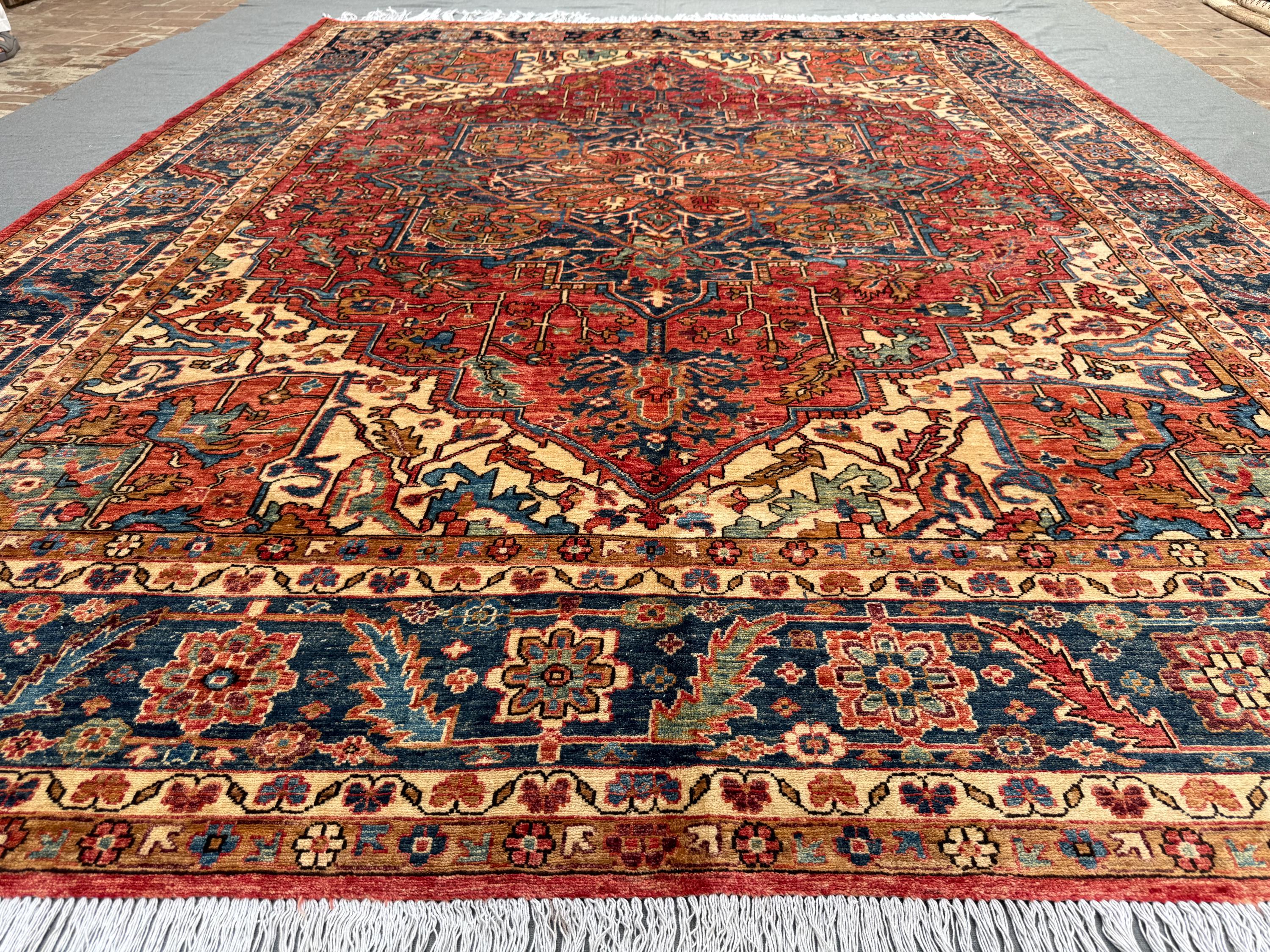 Handmade Heriz Oriental Rug 9x11.10 ft Large Carpet with Bold Medallion Design, Afghan Artisan Rug,Turkish Style oriental rug,Luxury rug