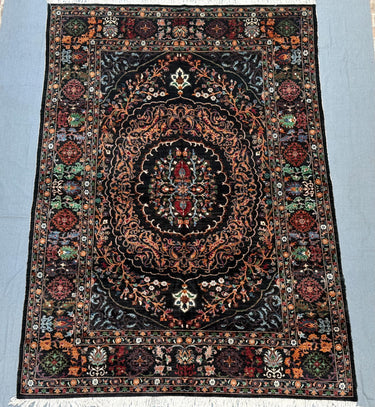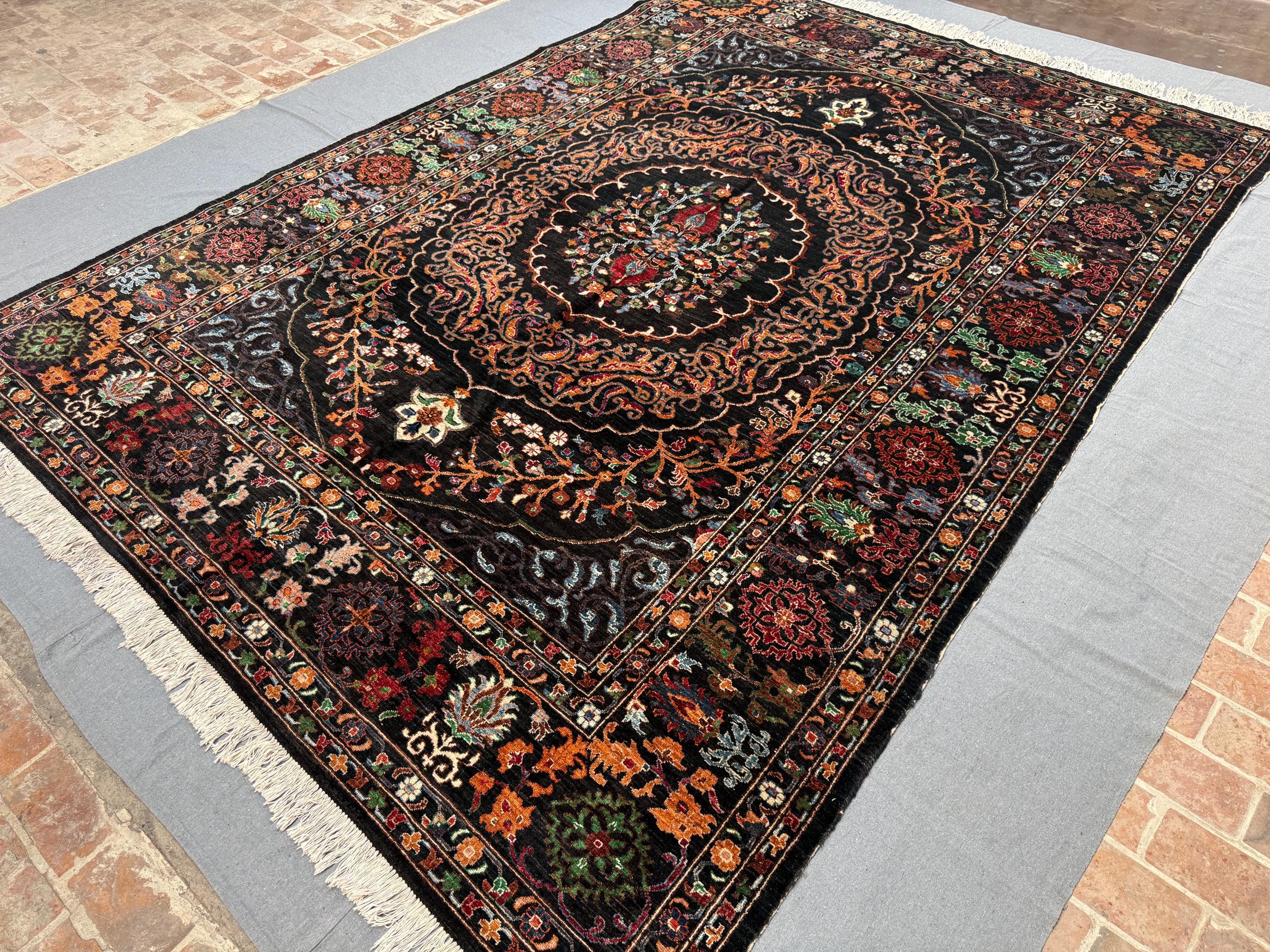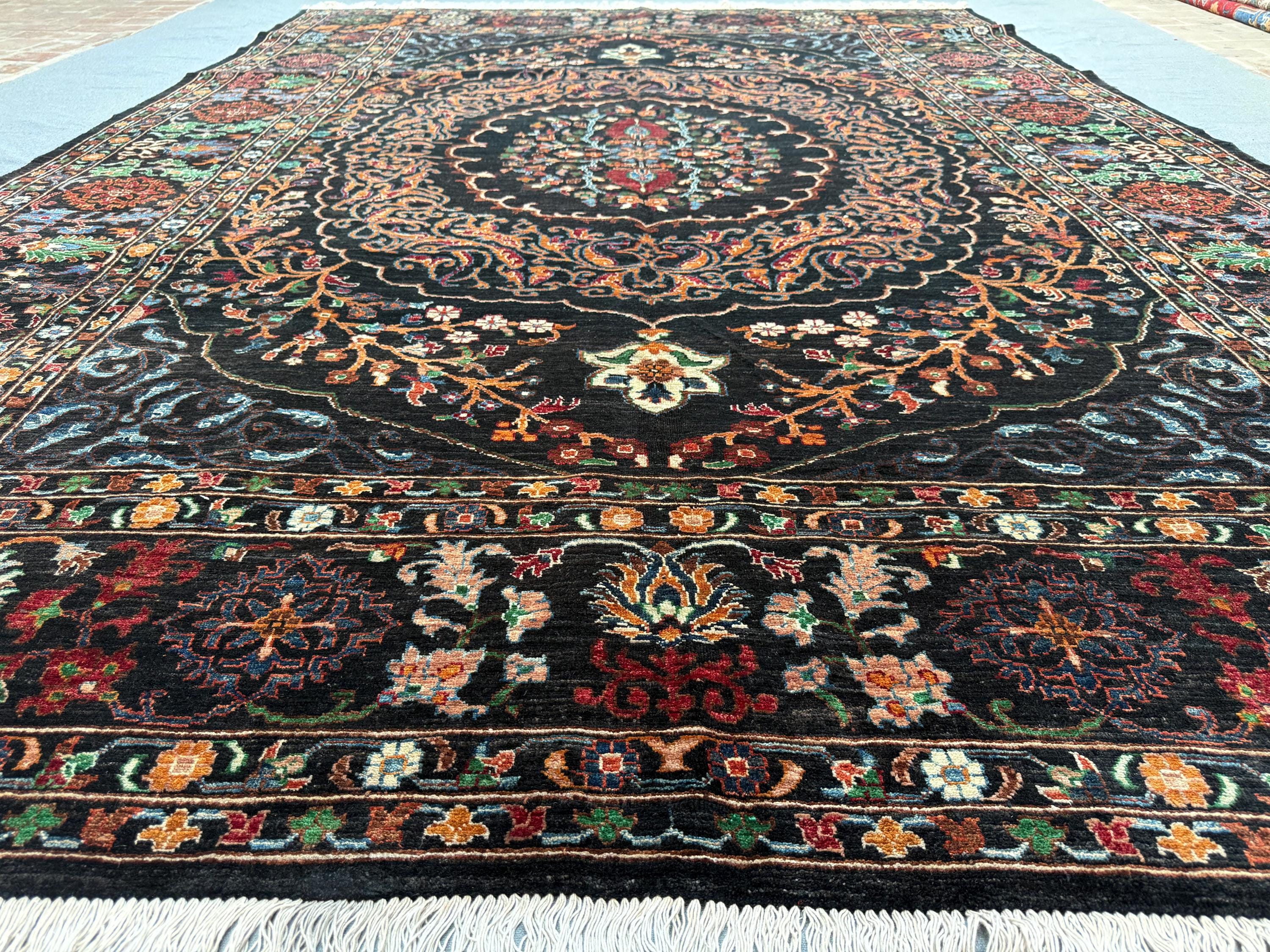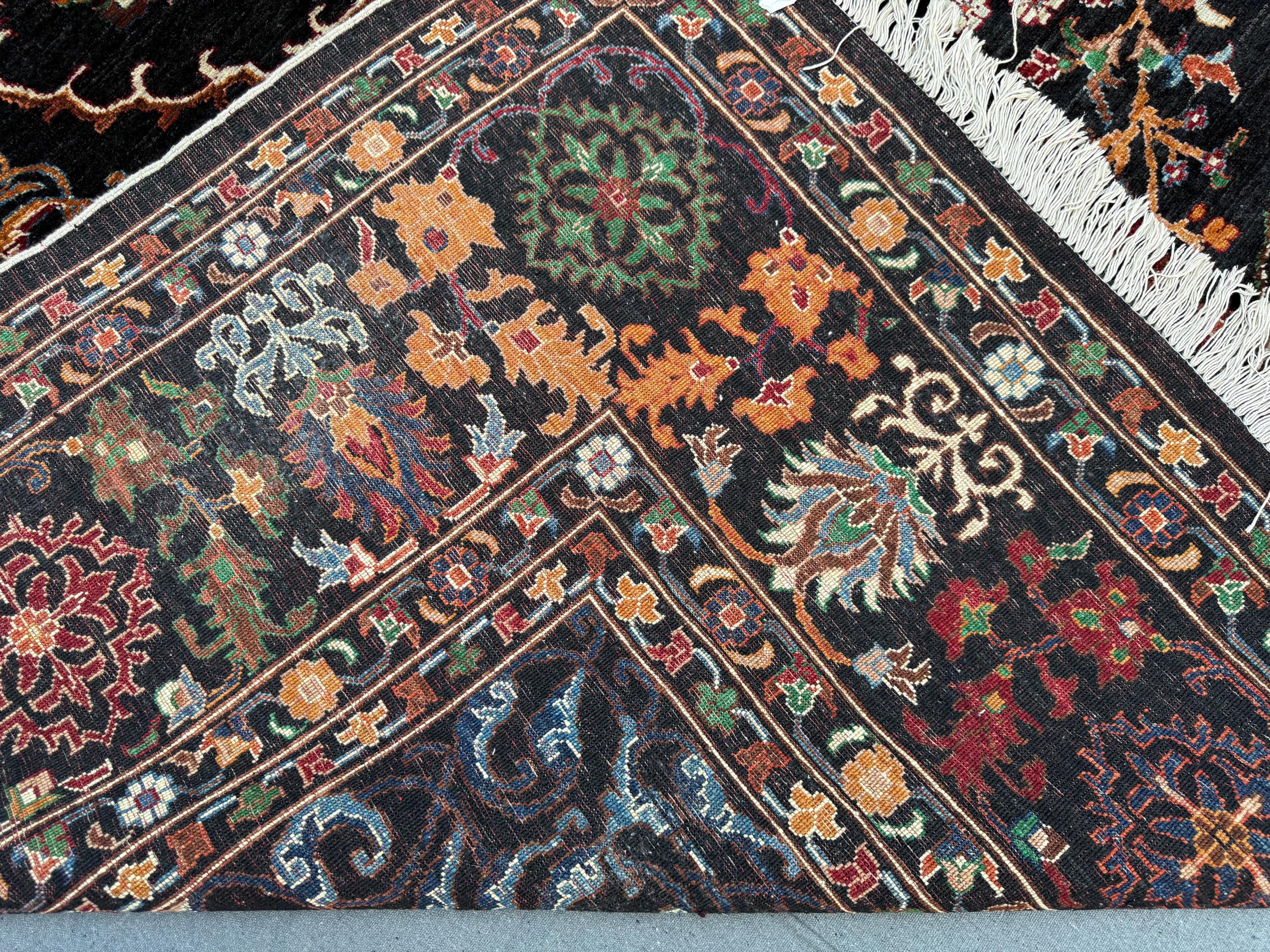 Handmade Heriz Rug 9x13 | Black Wool Medallion Area Rug | Large Traditional Carpet | Elegant Hand Knotted Floral Wool Living Room Rug