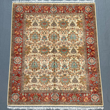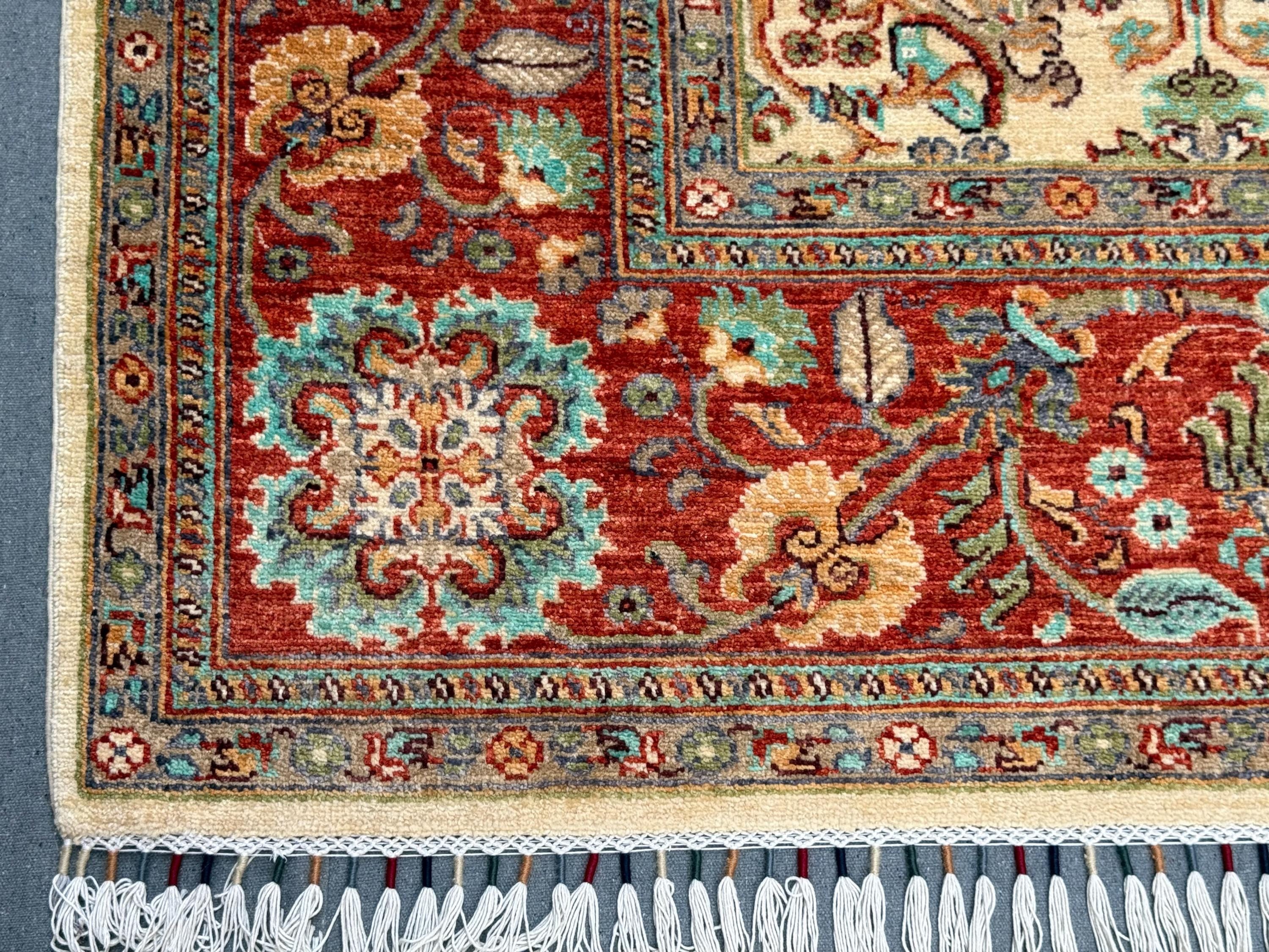 Design: Traditional Sultani Floral pattern with cream field and red border