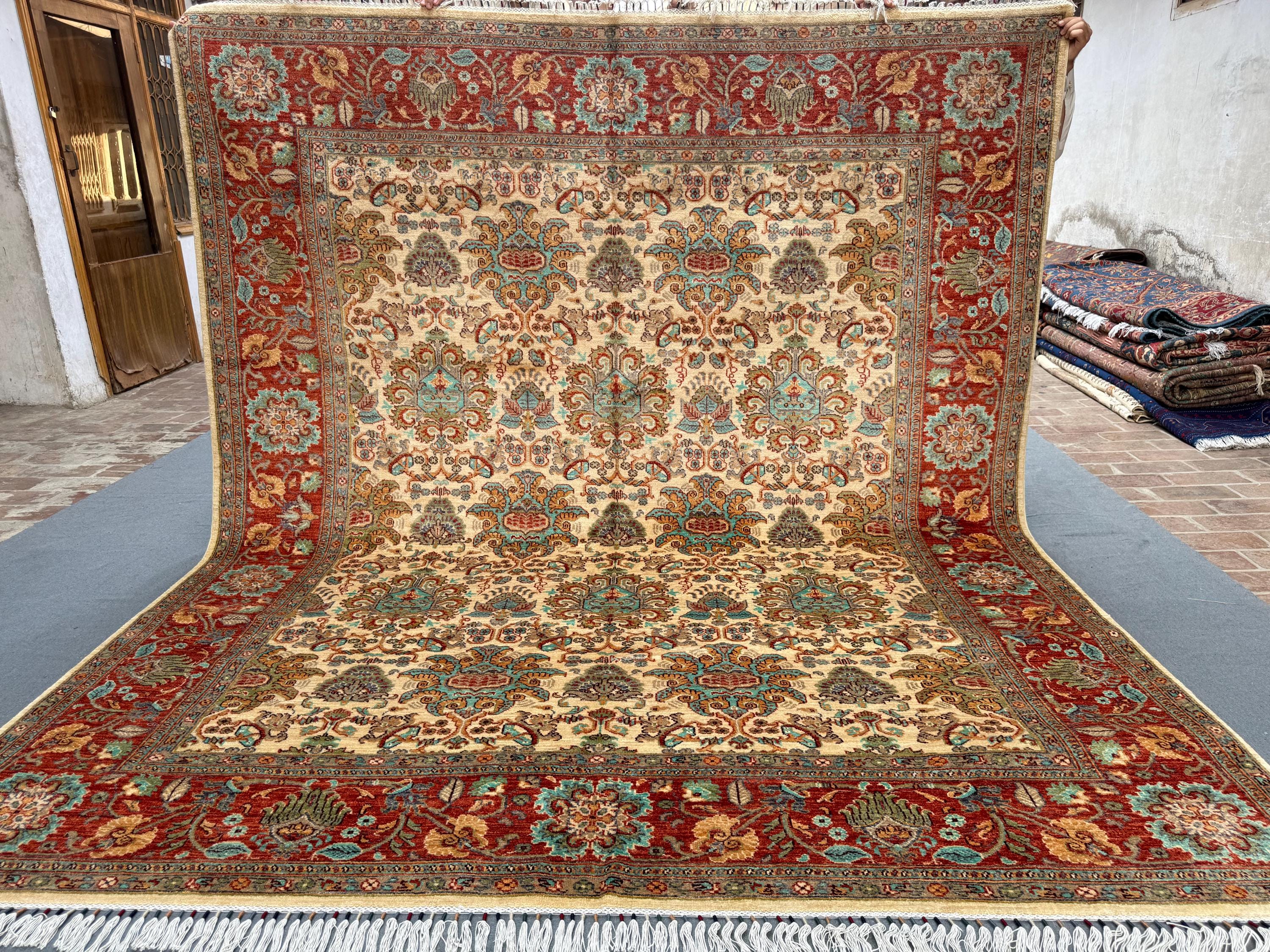 The Sultani design is renowned for its balanced floral patterns and detailed borders, reflecting Afghan weaving heritage at its finest. A rug of this size and detail is not just a floor covering, but an heirloom-quality artwork meant to last for generations.