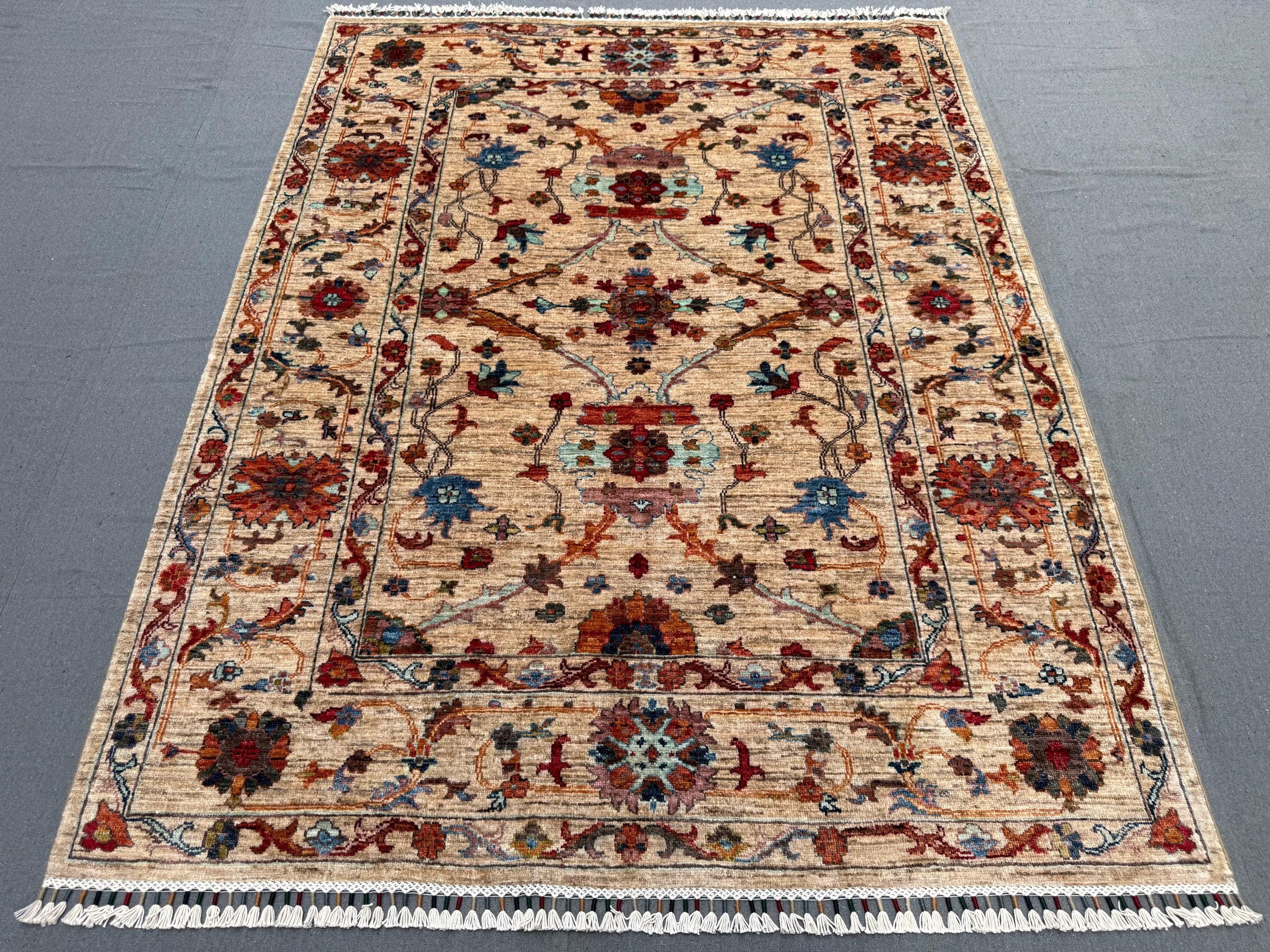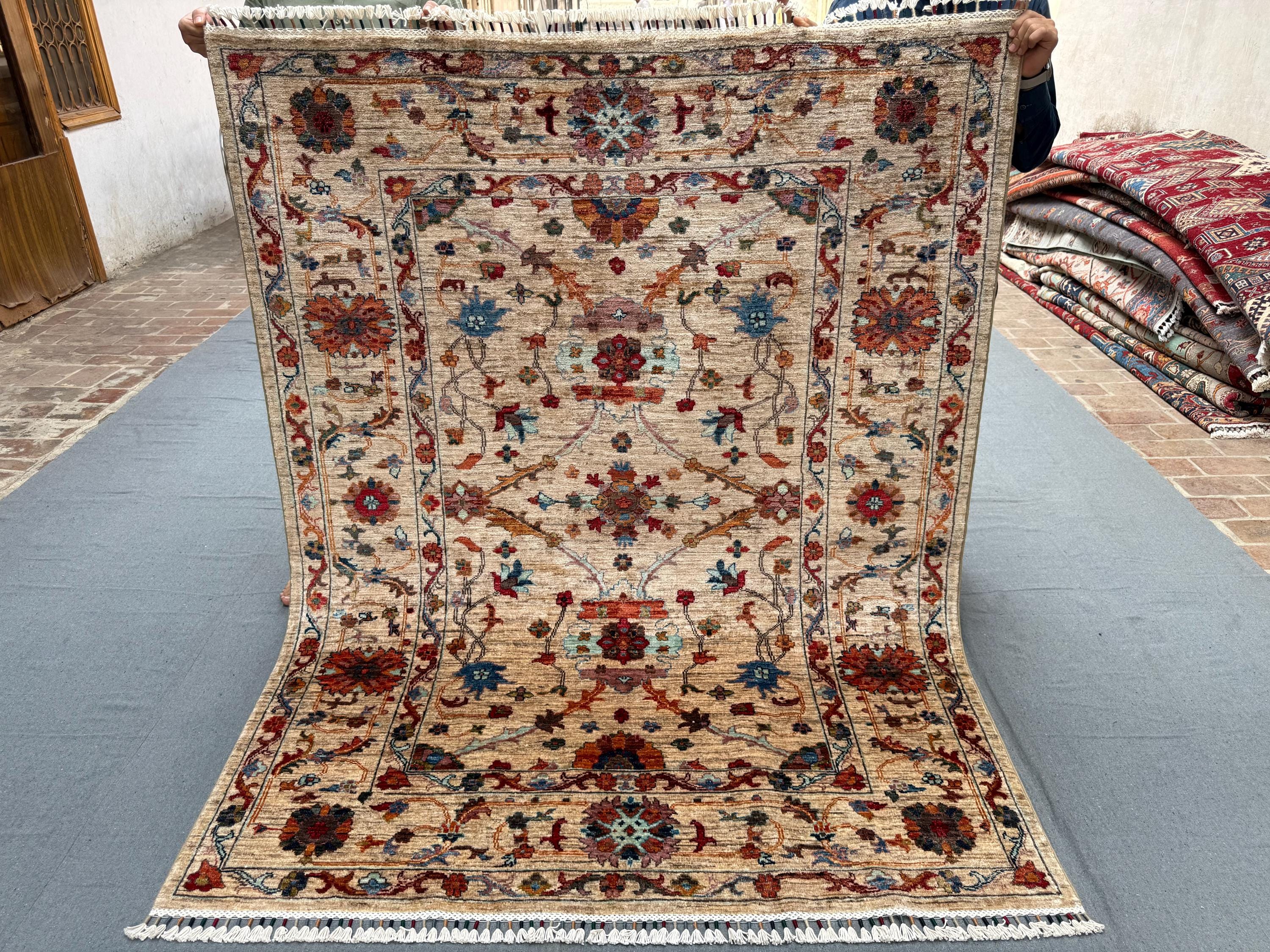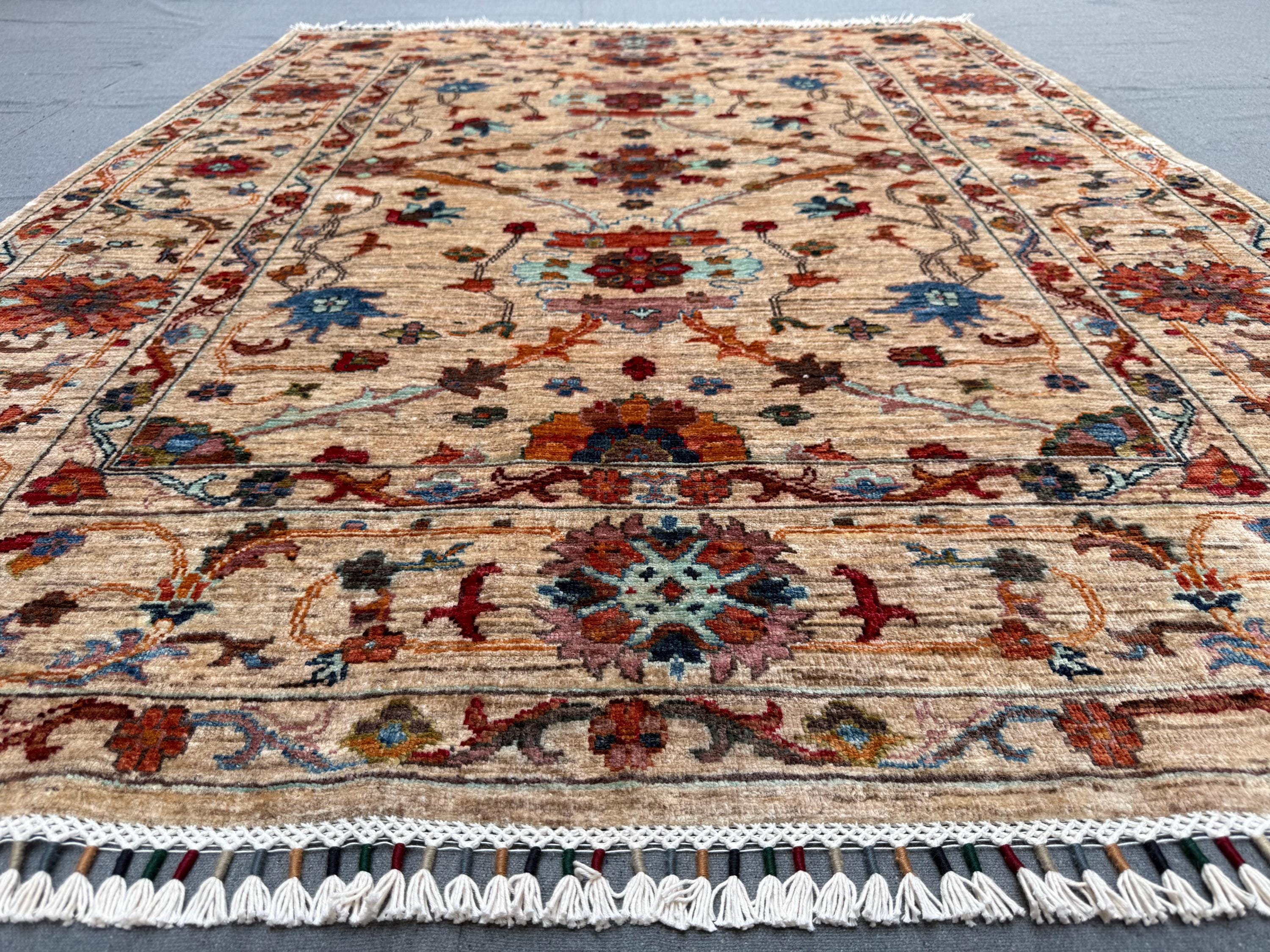 Handmade Sultani Rug 5x7 | Beige Floral Wool Area Rug | Hand Knotted Oriental Carpet | Traditional Afghan Wool Living Room Rug