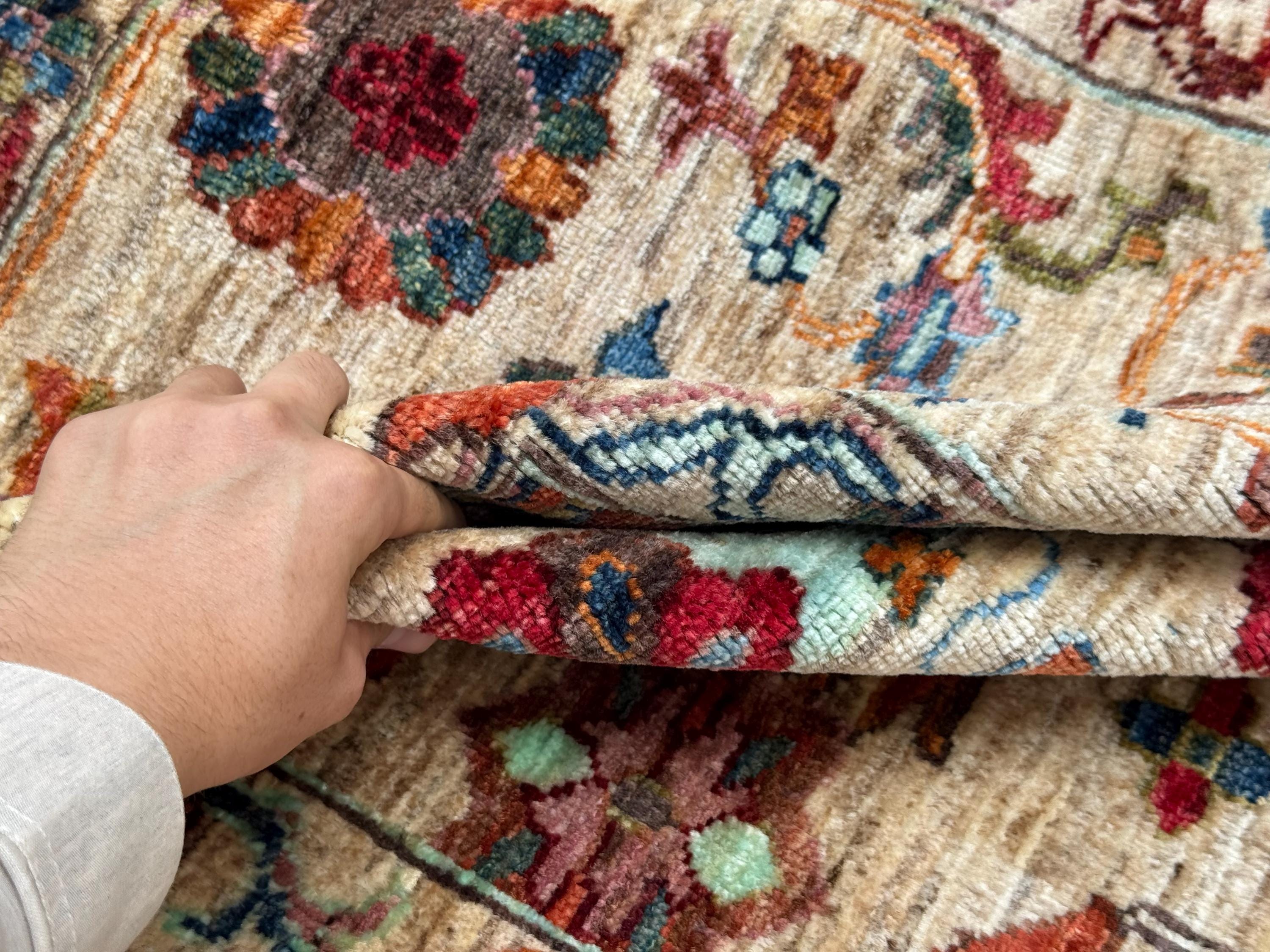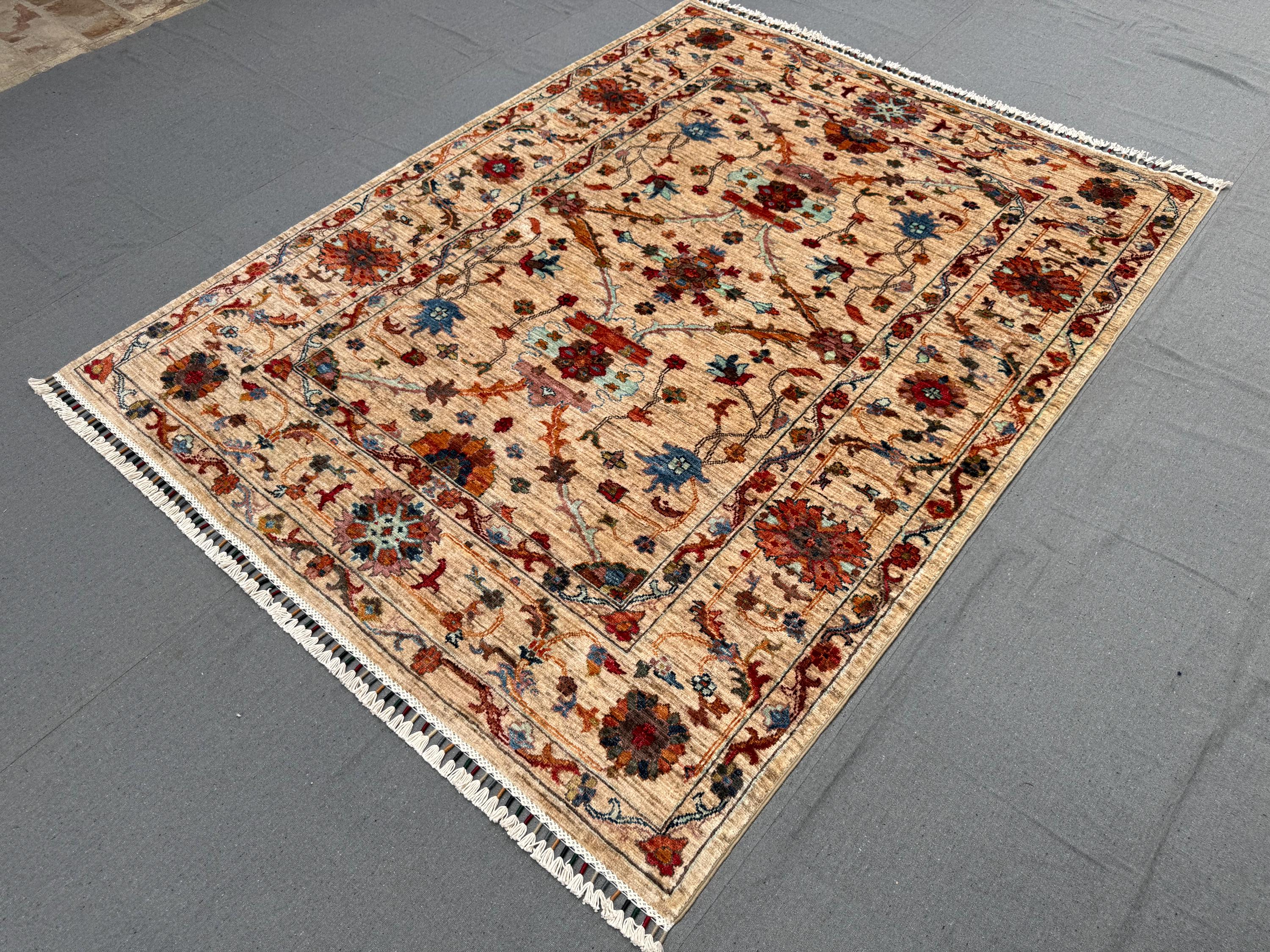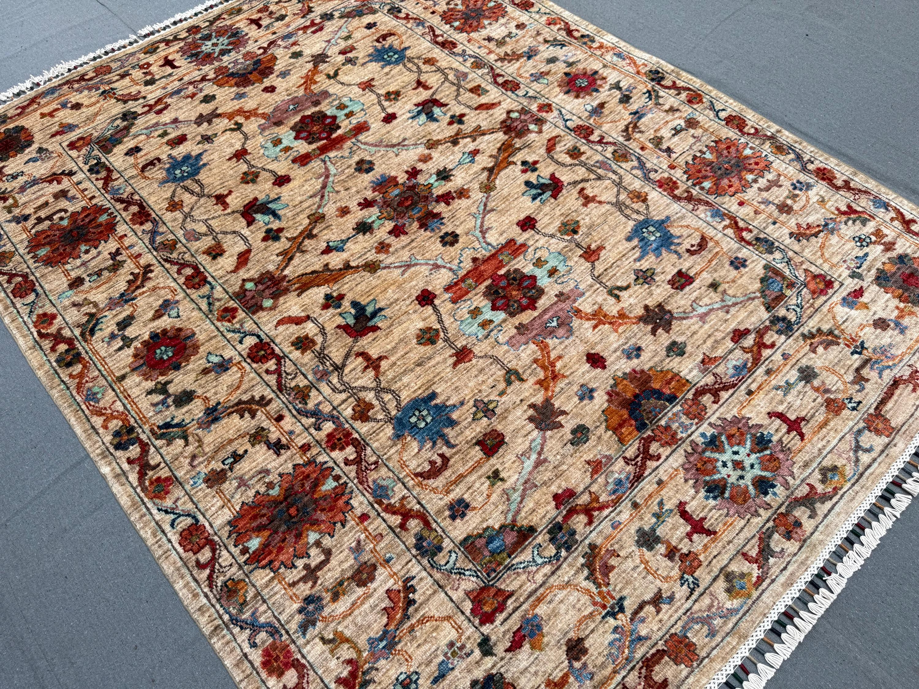 Handmade Sultani Rug 5x7 | Beige Floral Wool Area Rug | Hand Knotted Oriental Carpet | Traditional Afghan Wool Living Room Rug