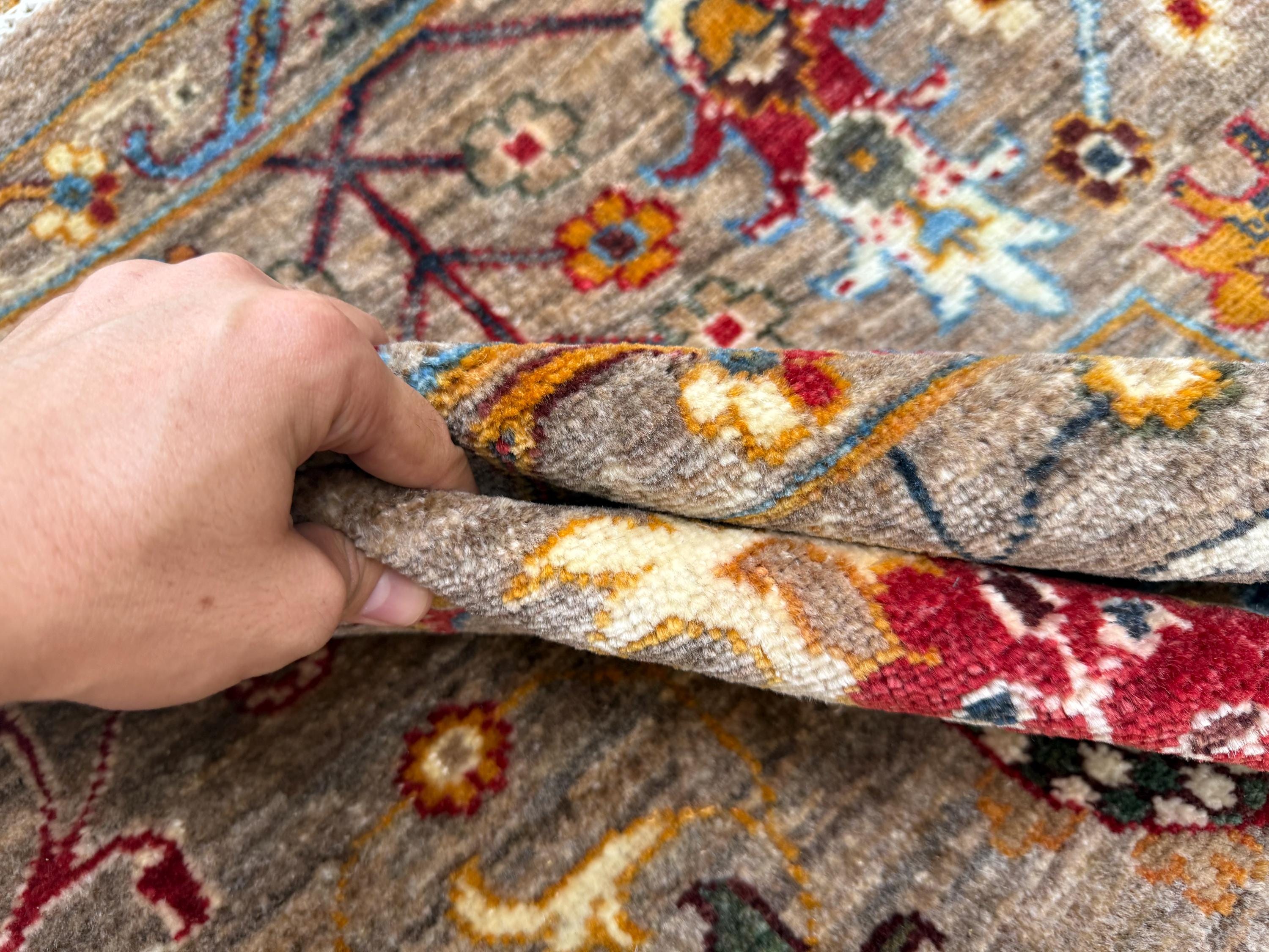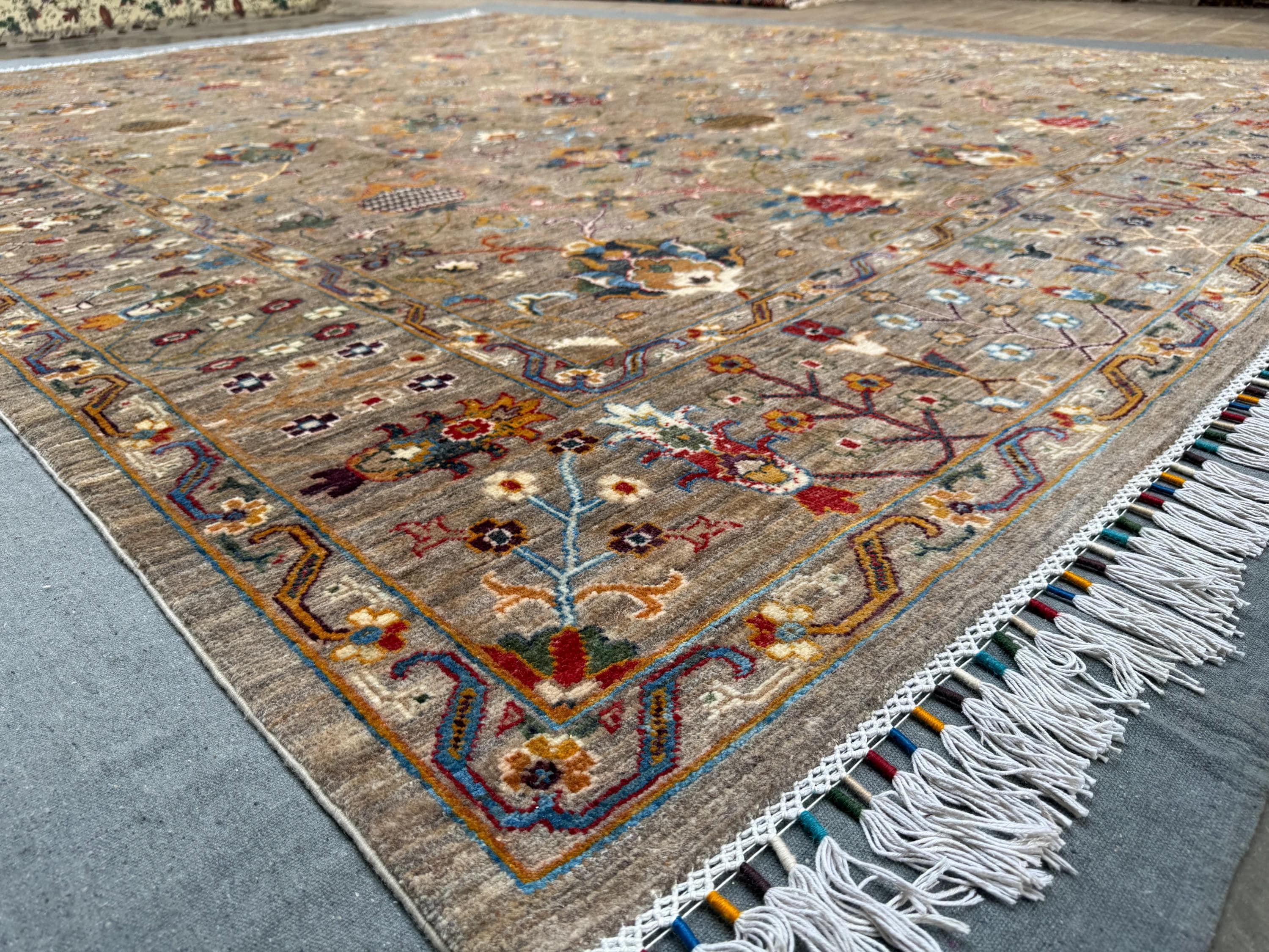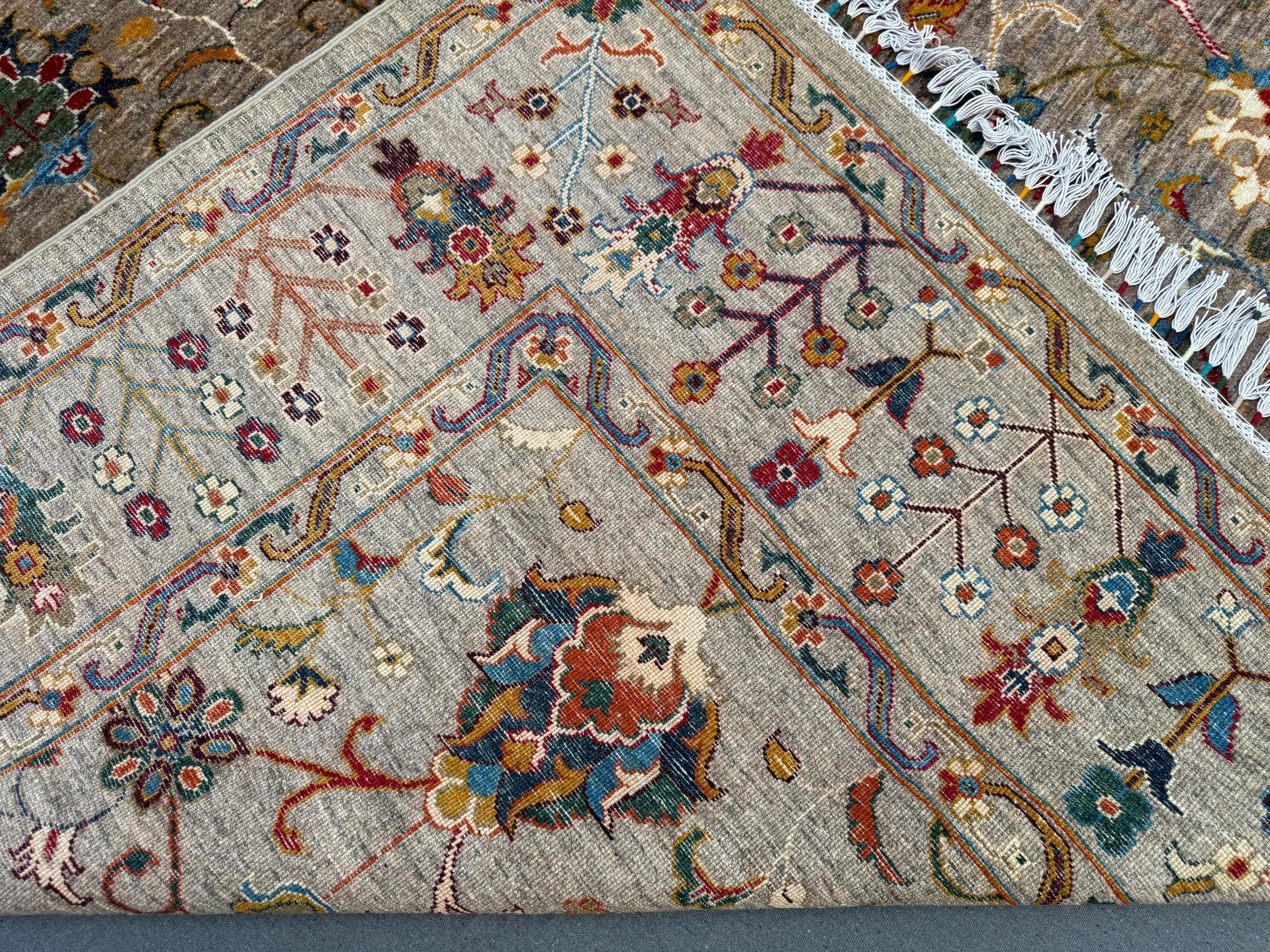 Handmade Sultani Rug 9x12 | Brown Wool Floral Area Rug | Large Traditional Carpet | Elegant Living Room Boho Wool Handmade Rug