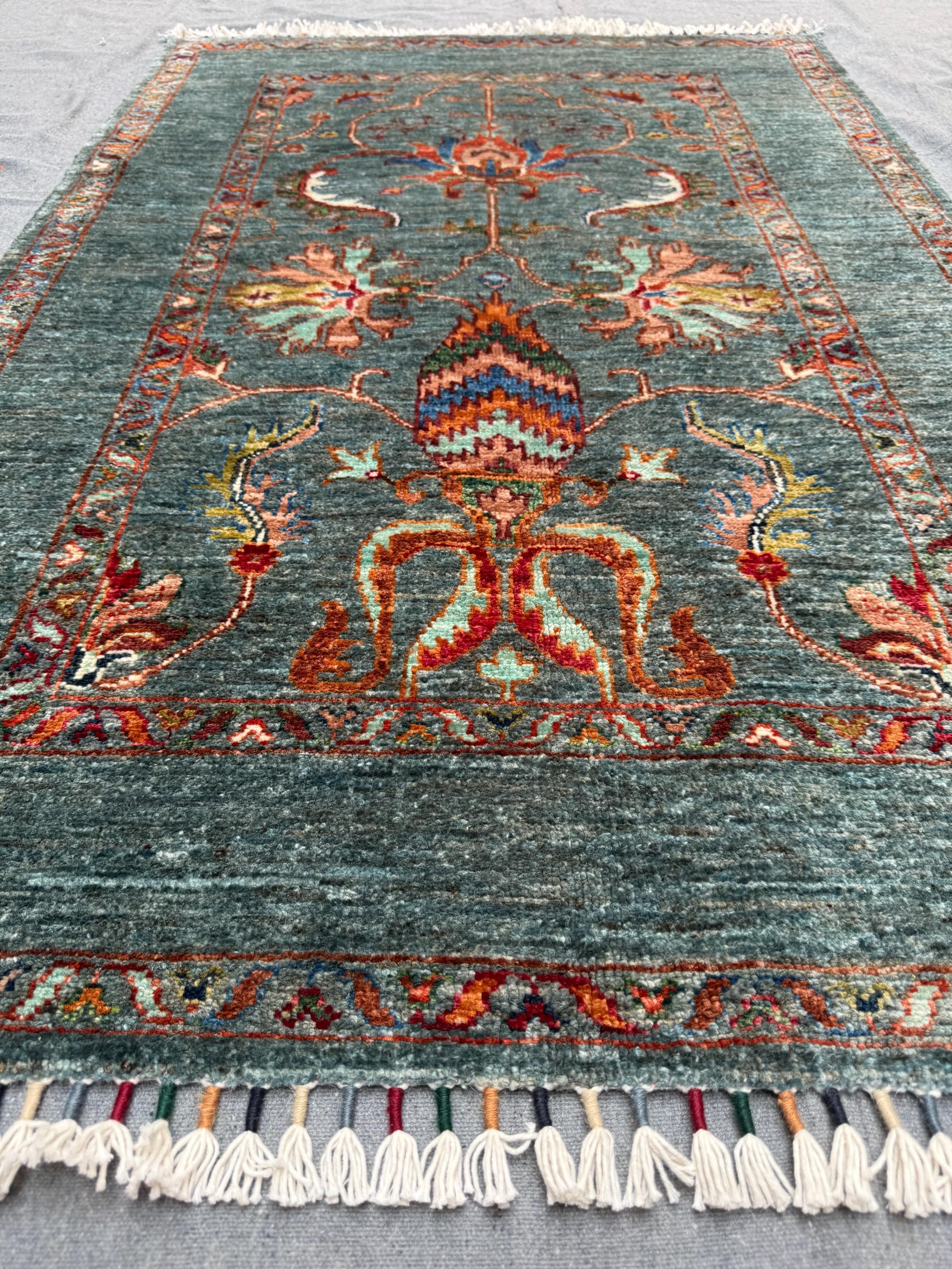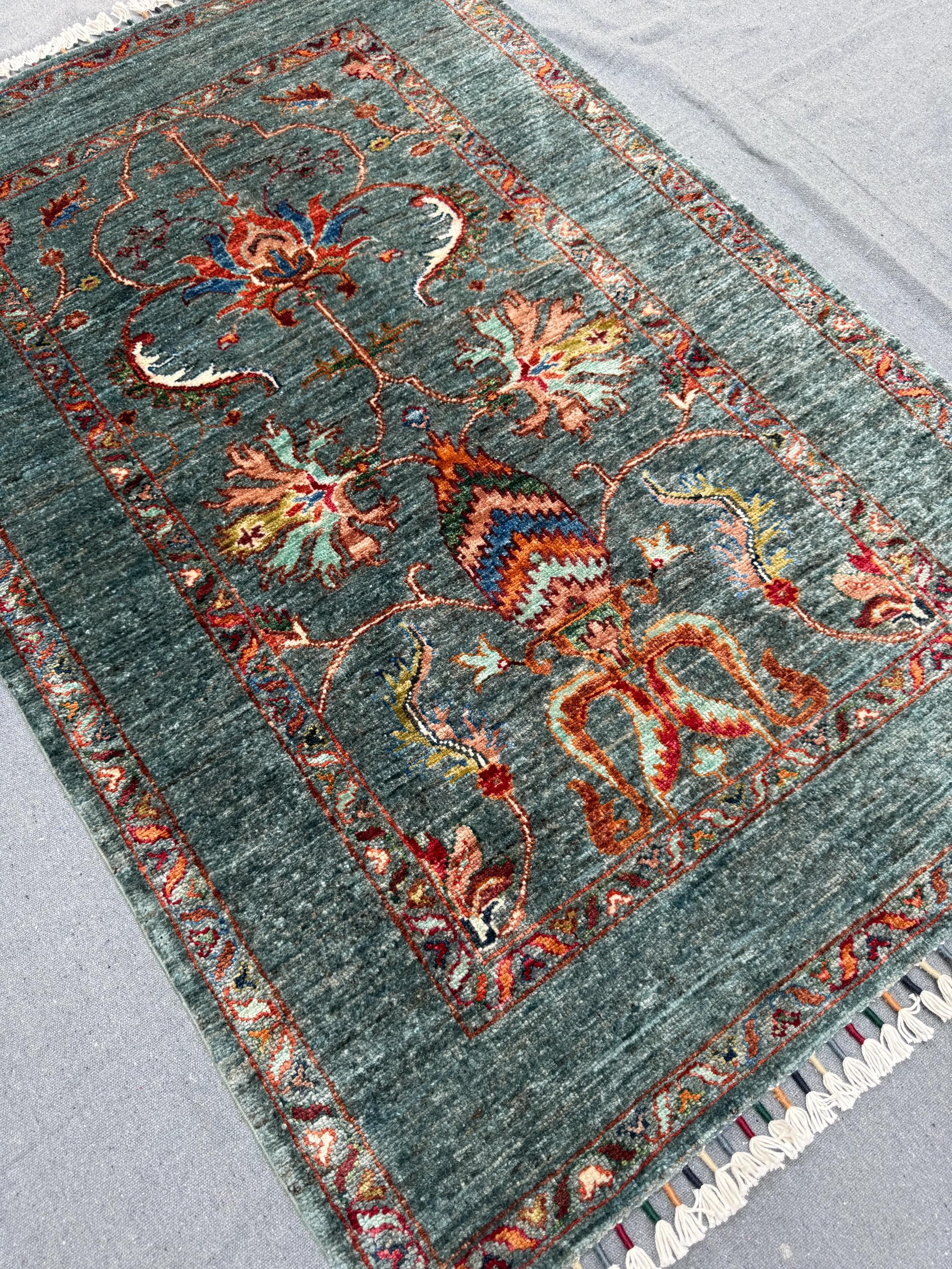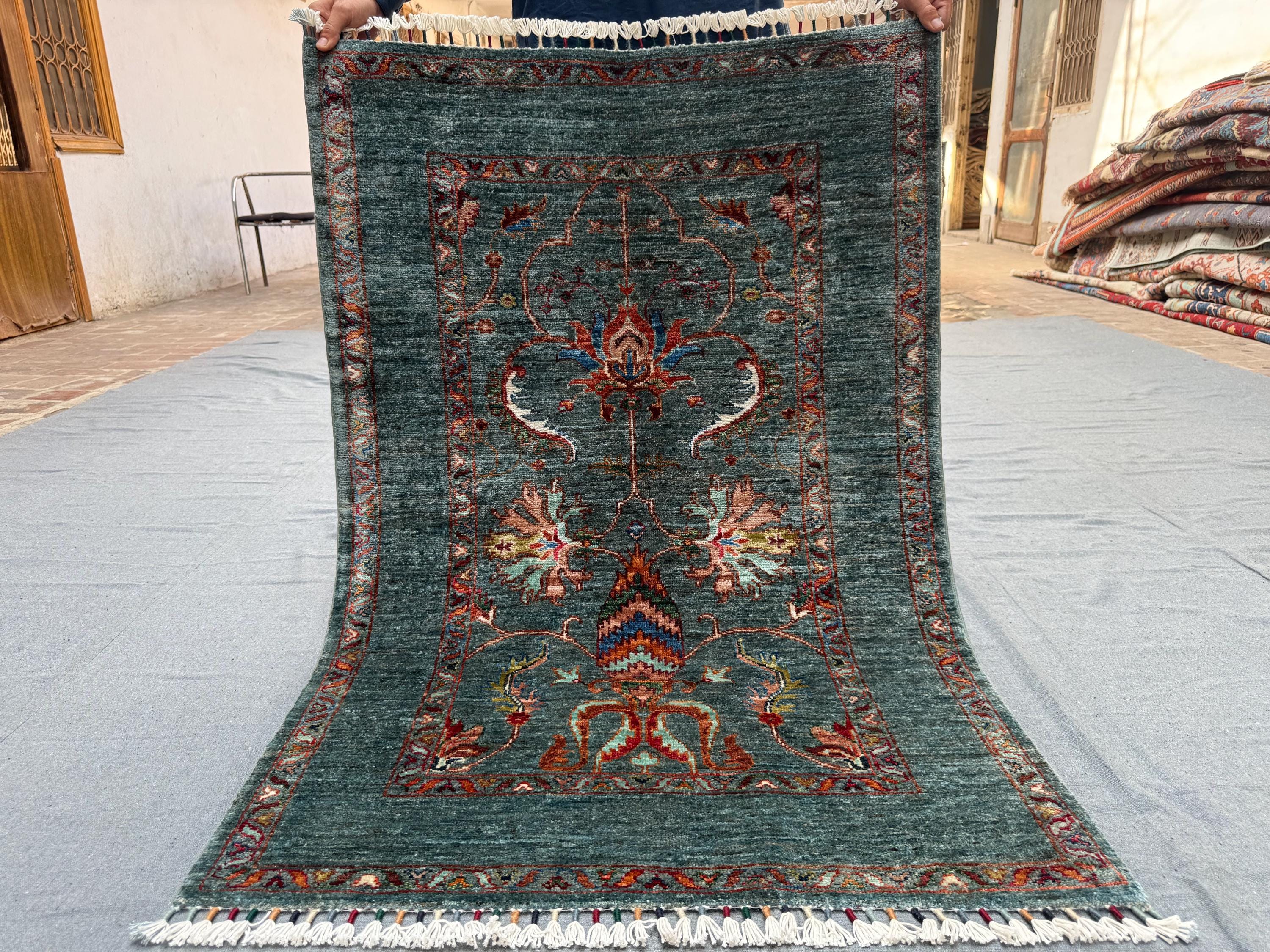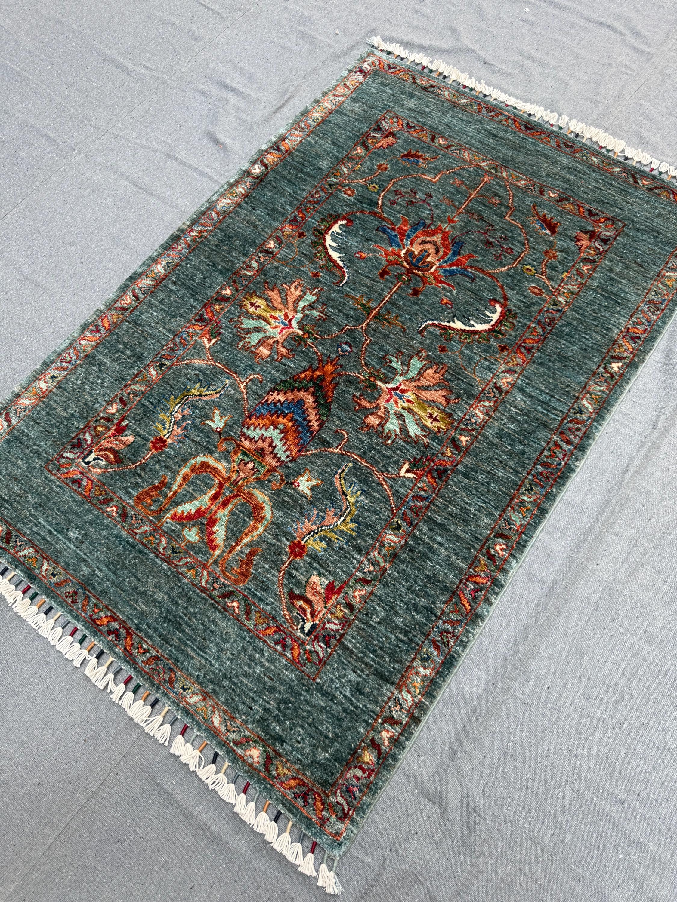 Handmade Sultani Wool Rug 3x4 | Teal Blue Afghan Carpet | Floral Pattern Wool Area Rug | Traditional Hand Knotted Oriental Rug Boho Decor