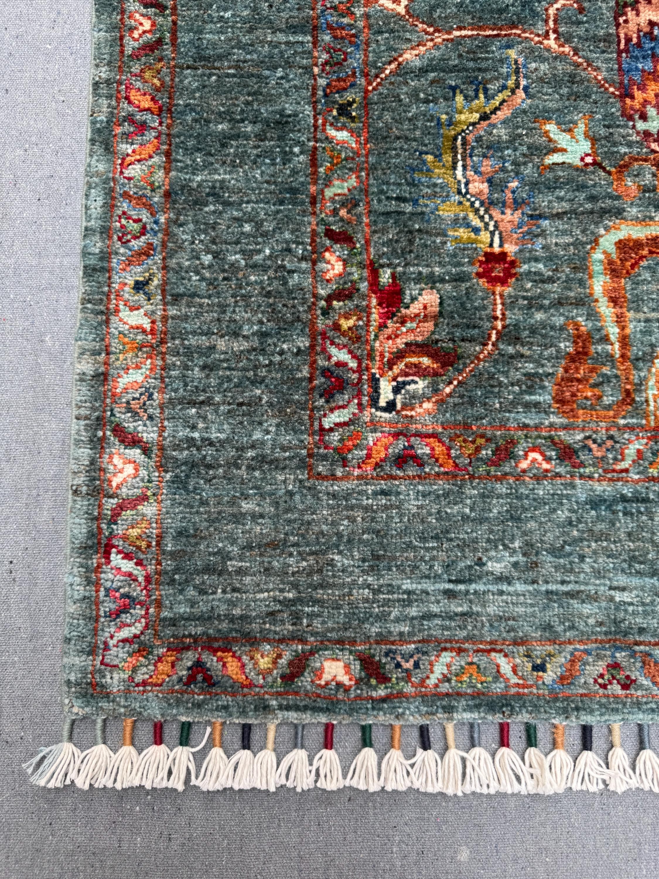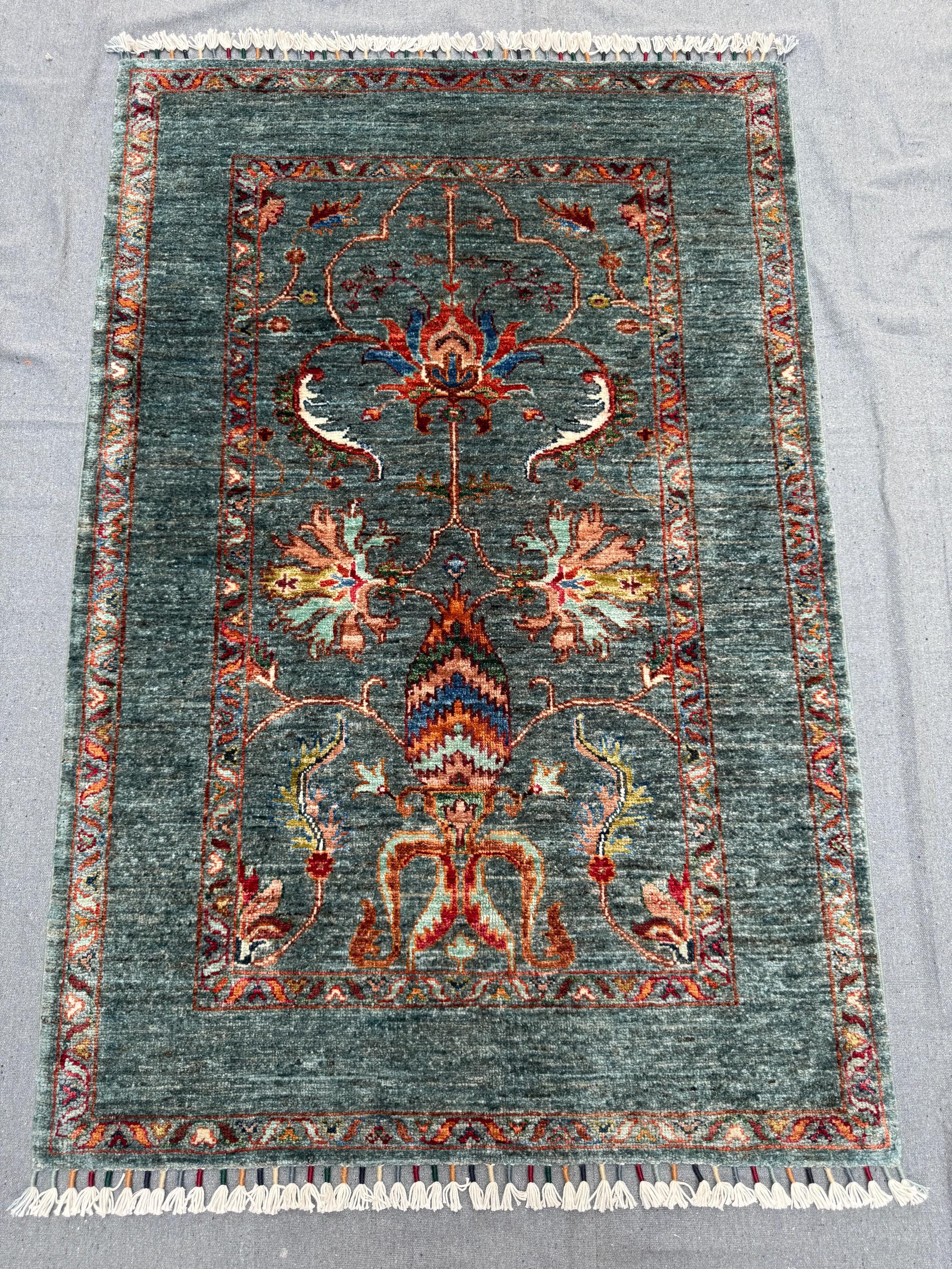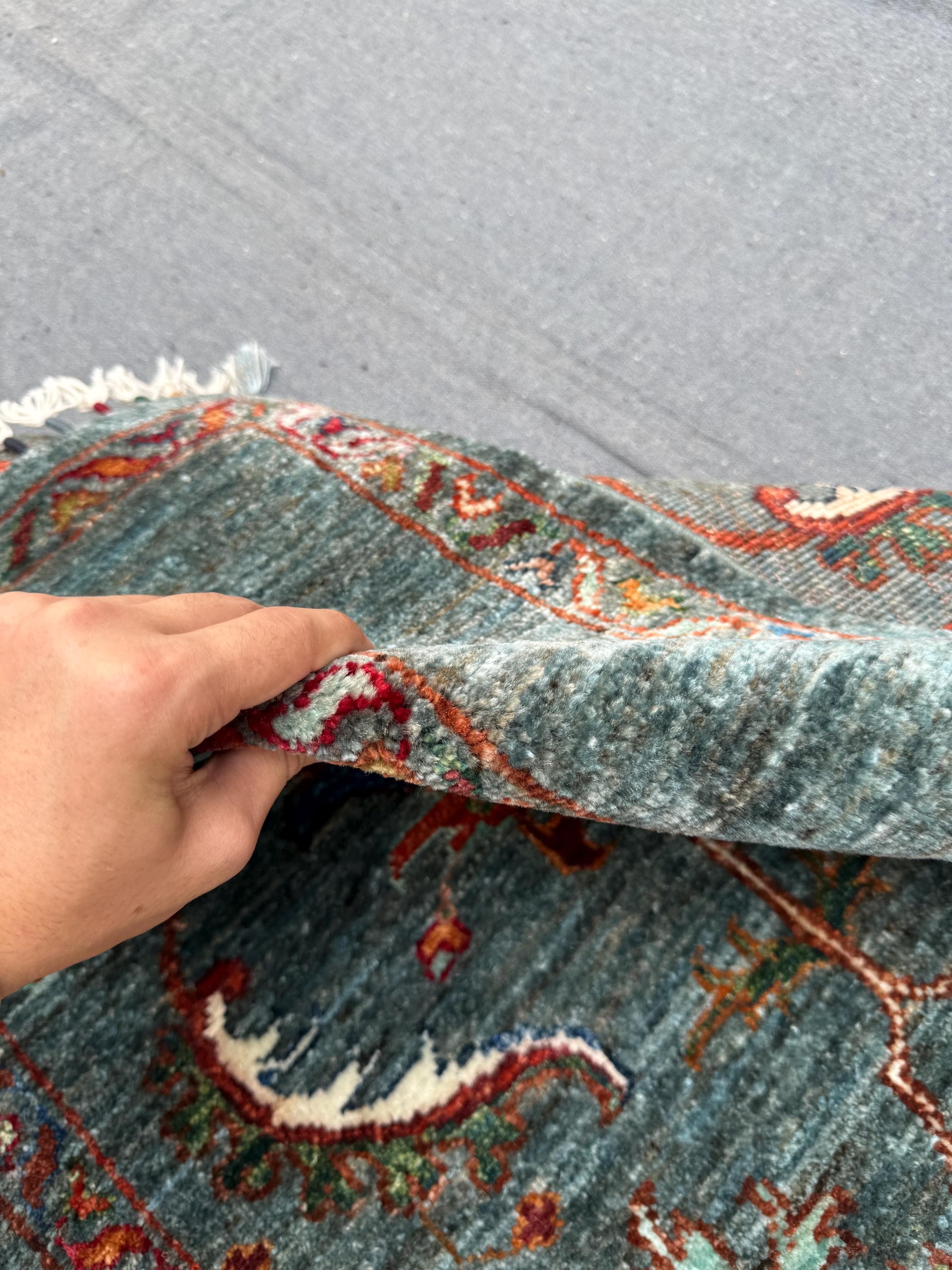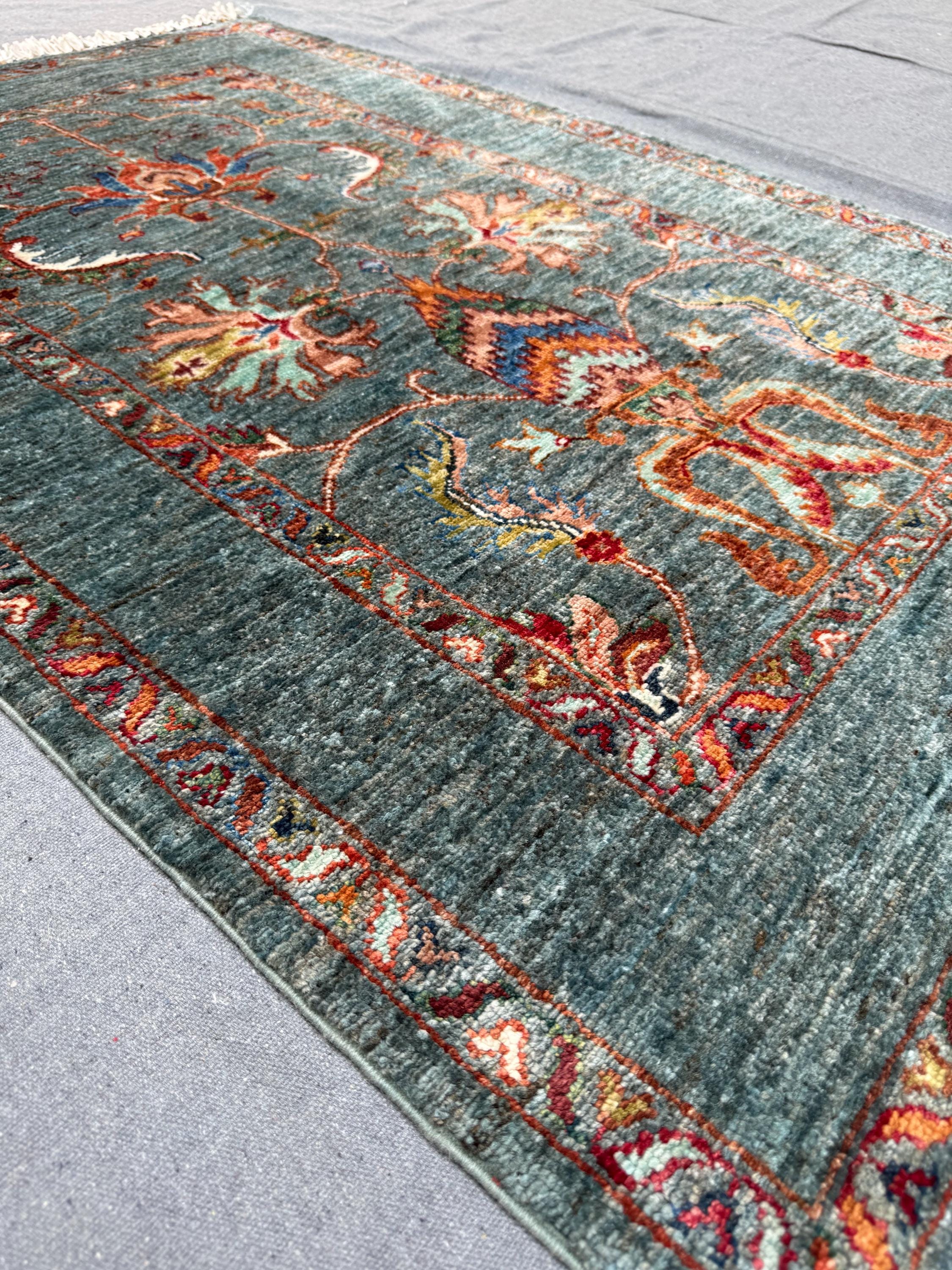 Handmade Sultani Wool Rug 3x4 | Teal Blue Afghan Carpet | Floral Pattern Wool Area Rug | Traditional Hand Knotted Oriental Rug Boho Decor