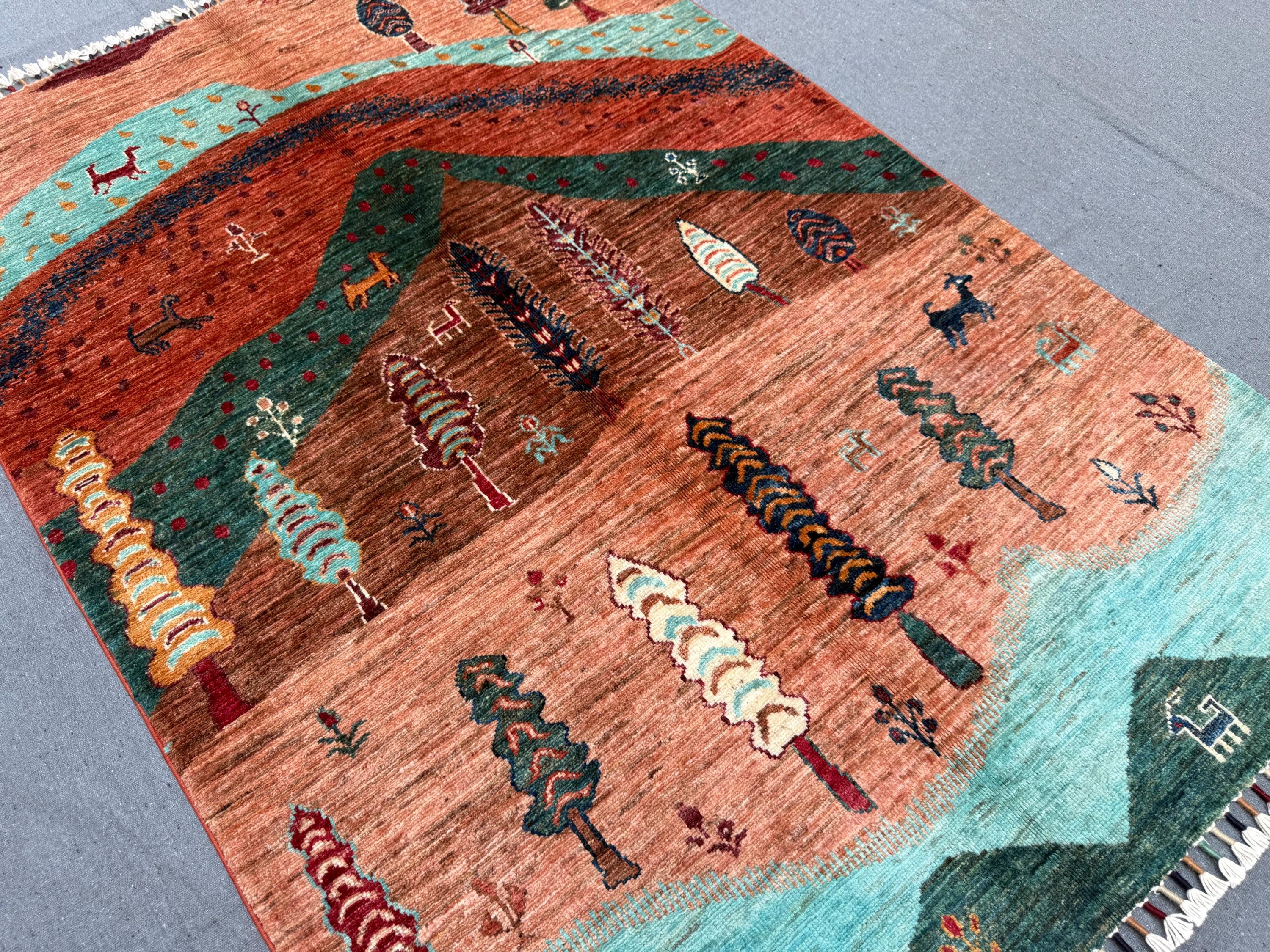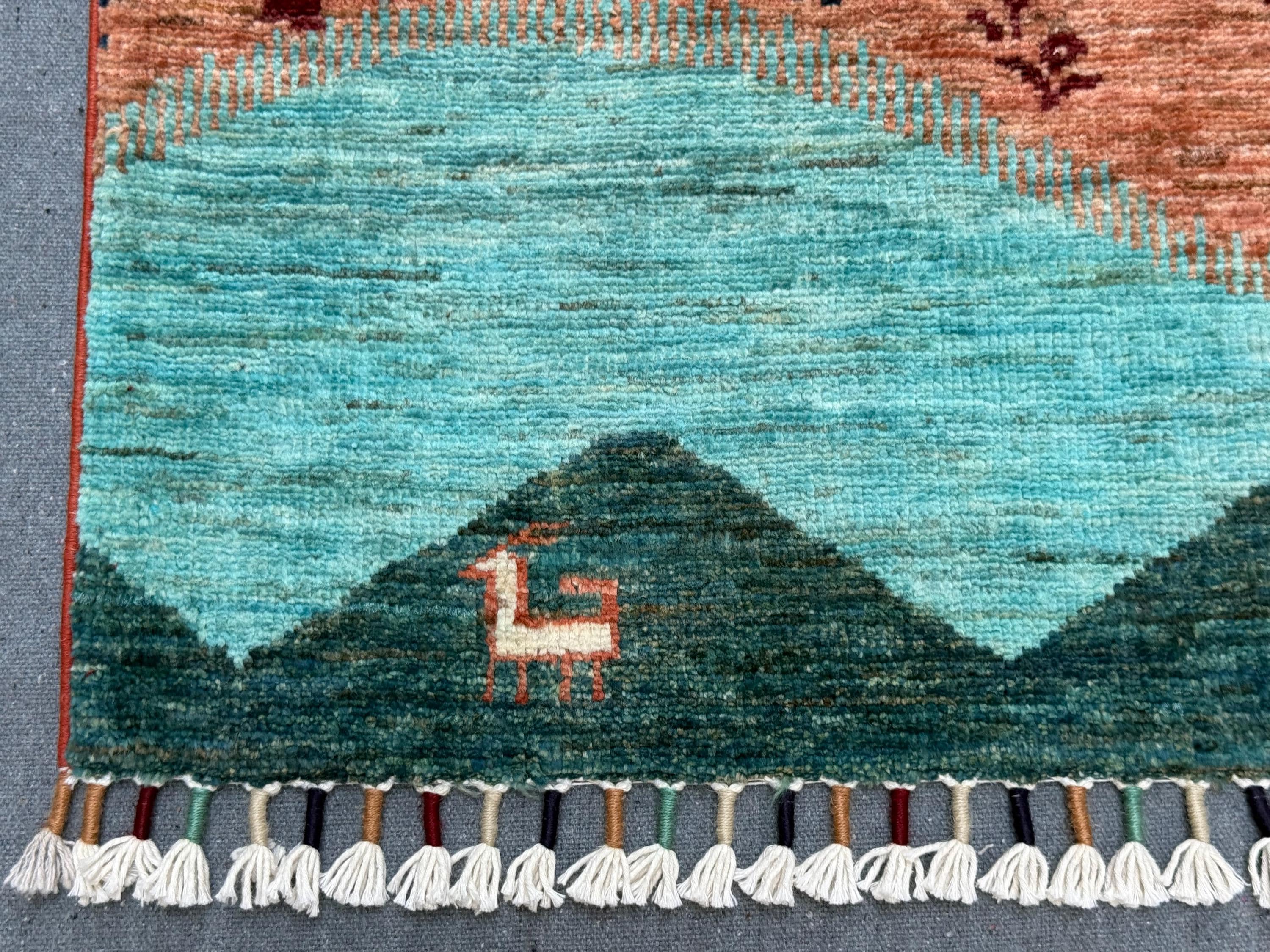 Handmade Tree of Life Rug 3x5 | Wool Tribal Area Rug | Nature Scene Boho Carpet | Animal & Landscape Design Small Handmade Wool Rug