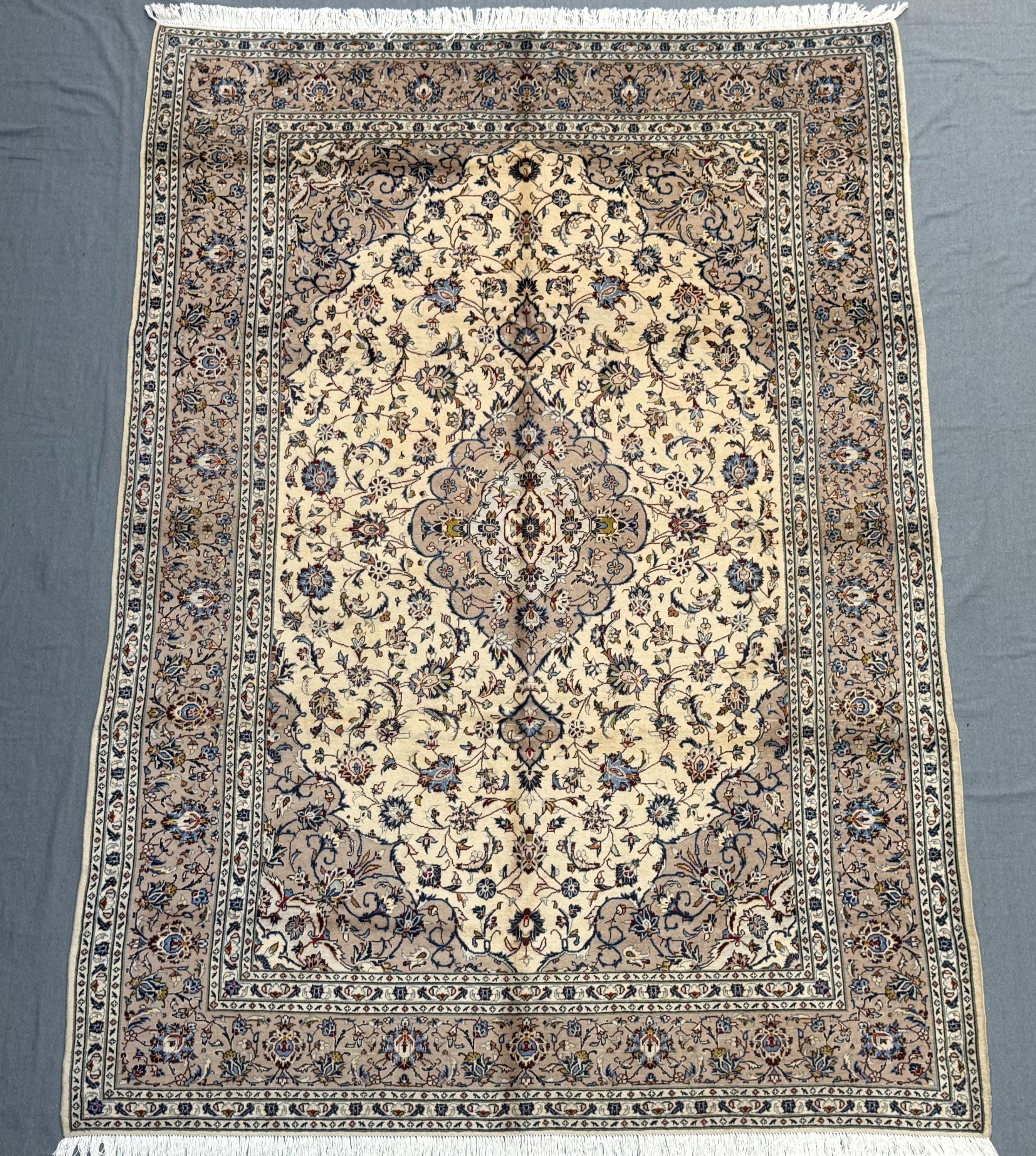Large Cream Heriz Rug 7x11 ft Handmade Wool Floral Medallion Carpet, Traditional Afghan Area Rug for Living Room & Timeless Home Décor