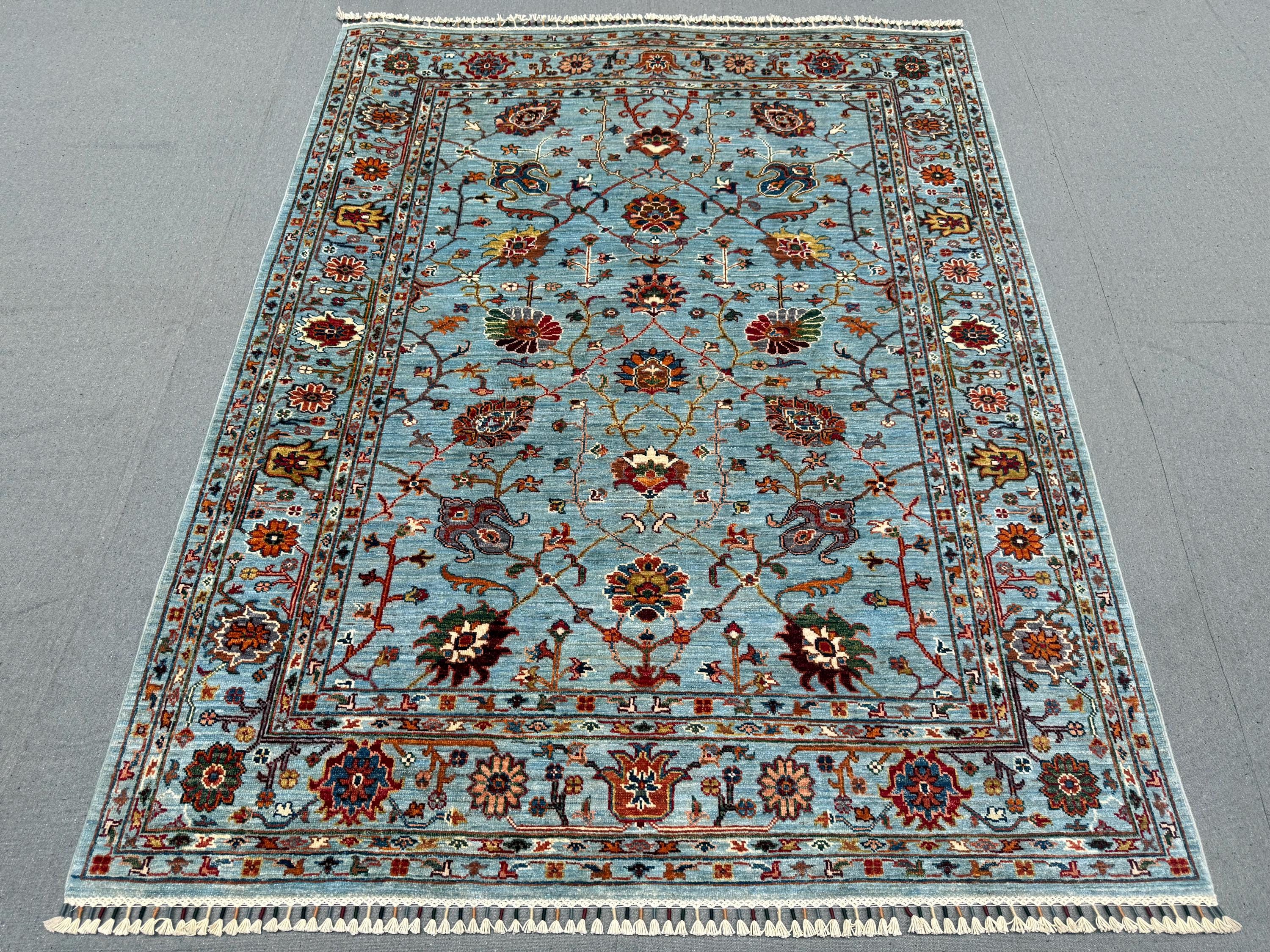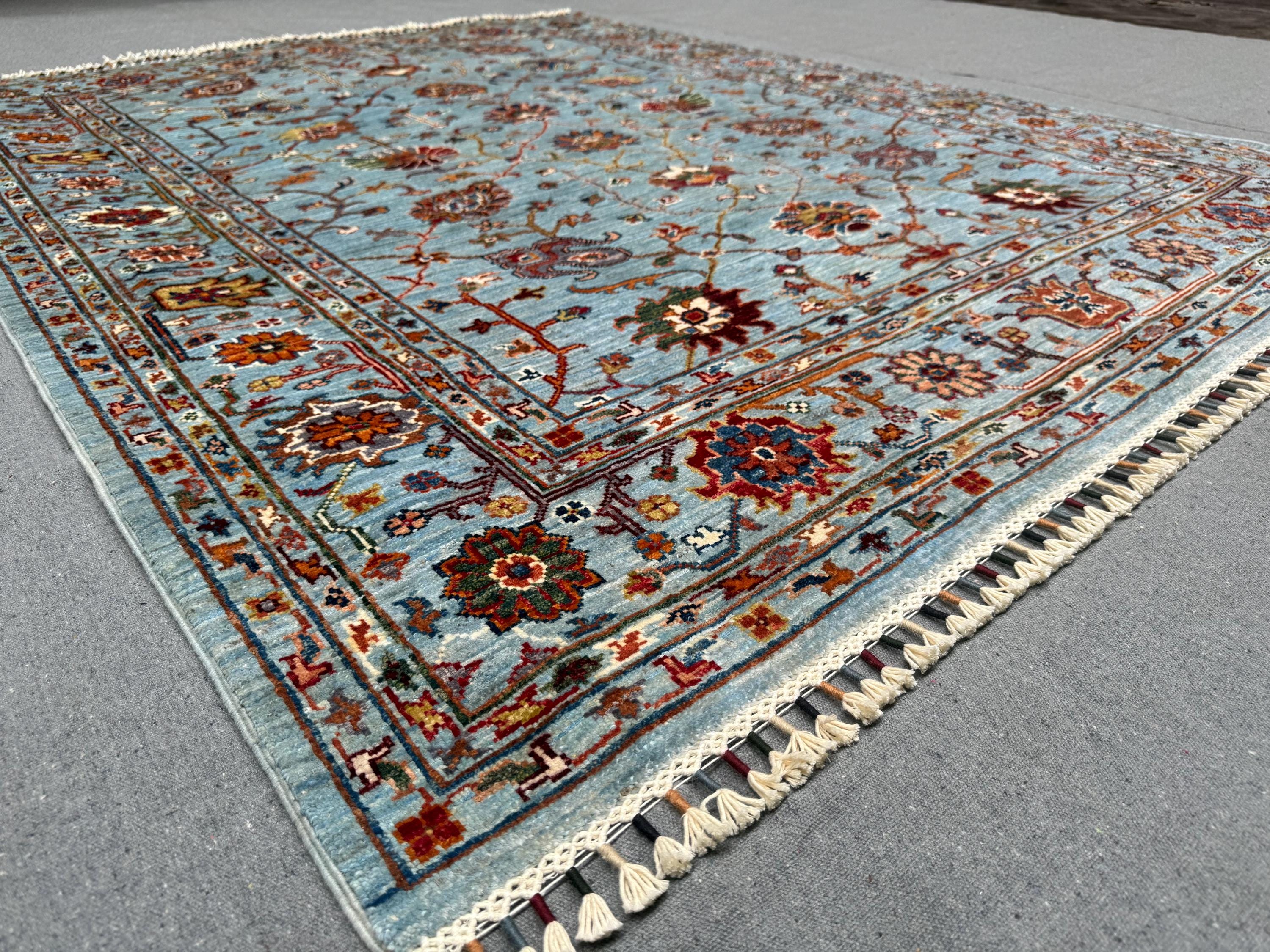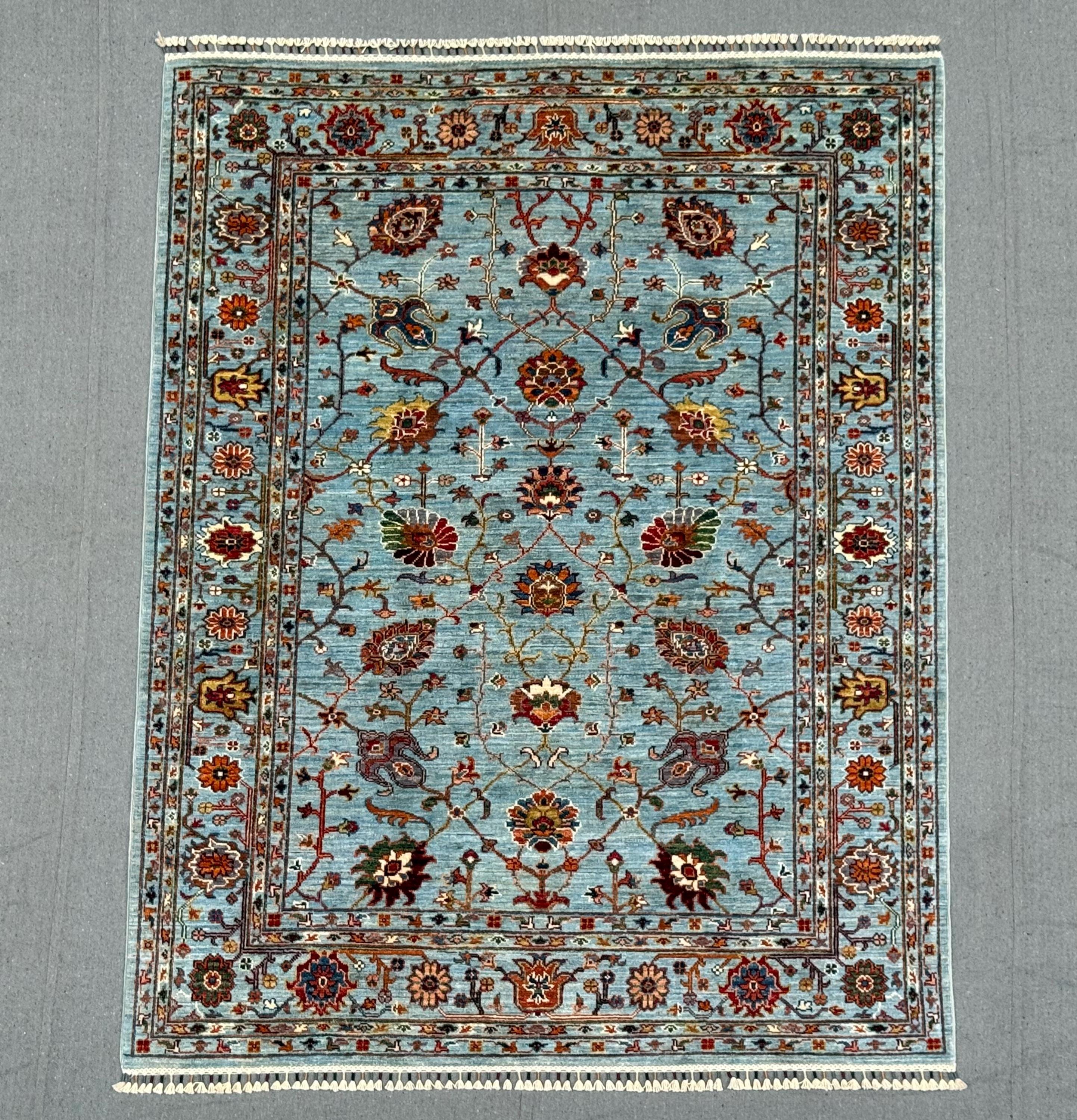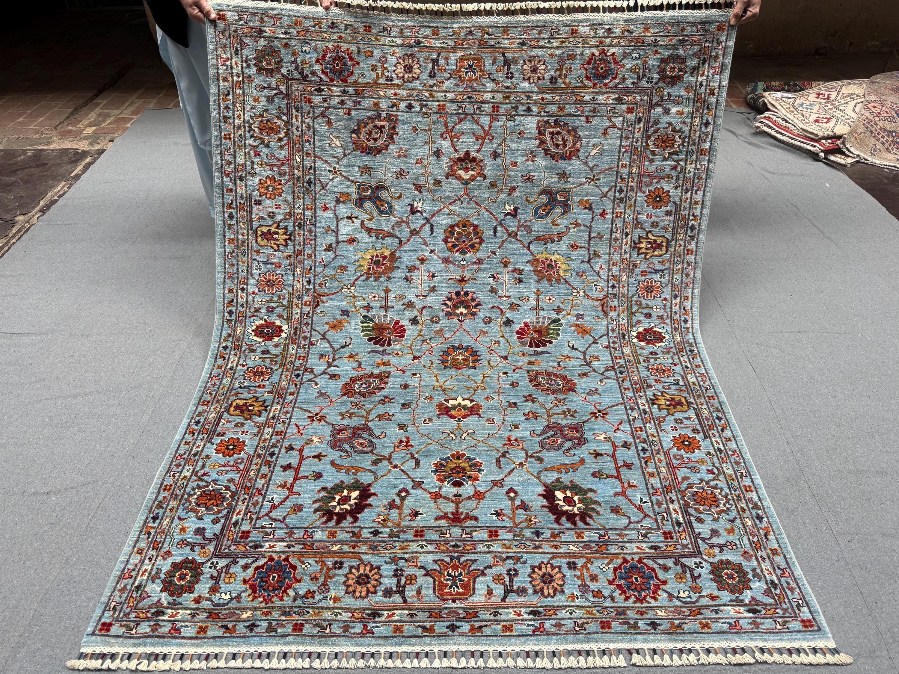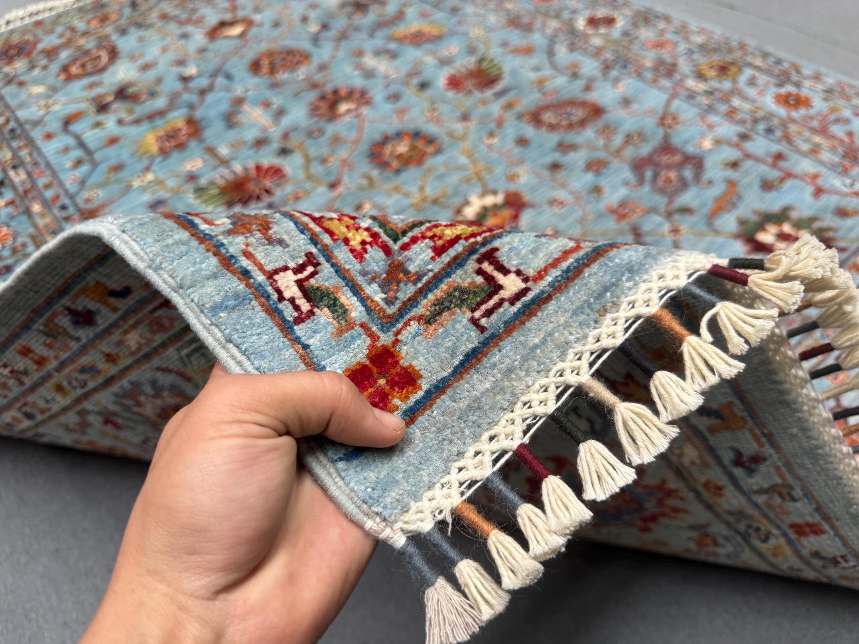Handmade Sultani Rug 5x6 ft Blue Floral Wool Carpet Traditional Oriental Area Rug Hand-Knotted Decor for Living Room & Bedroom