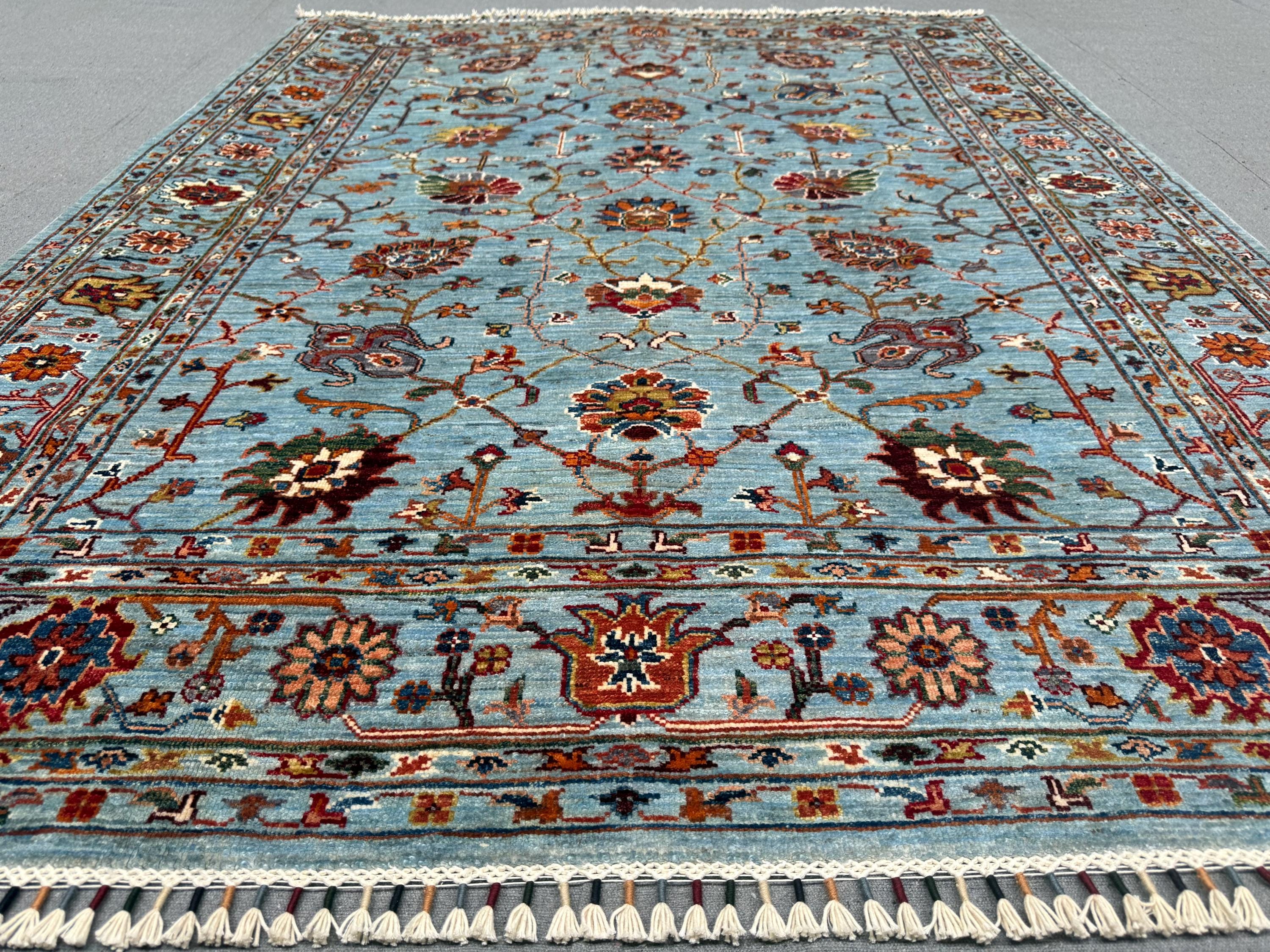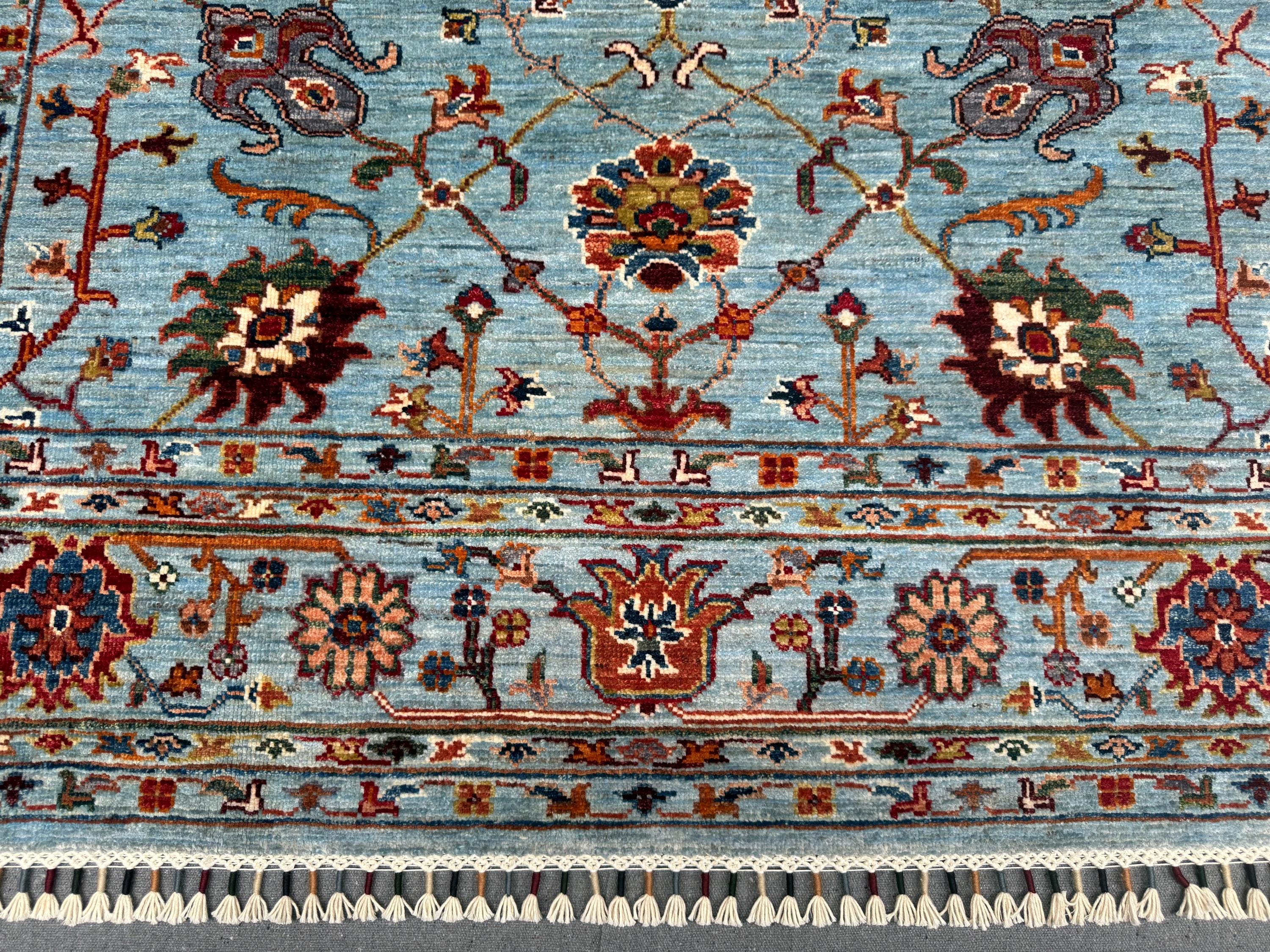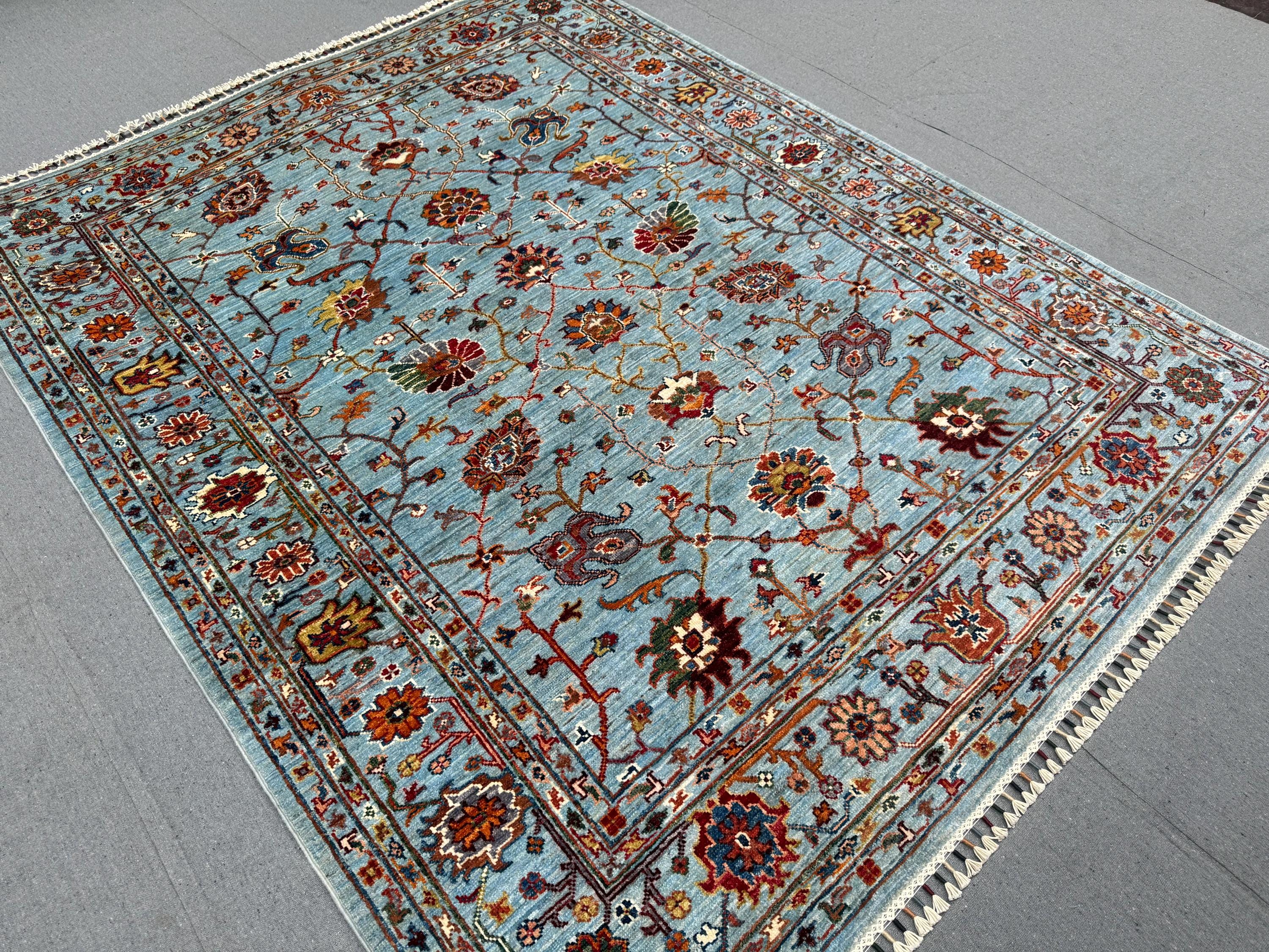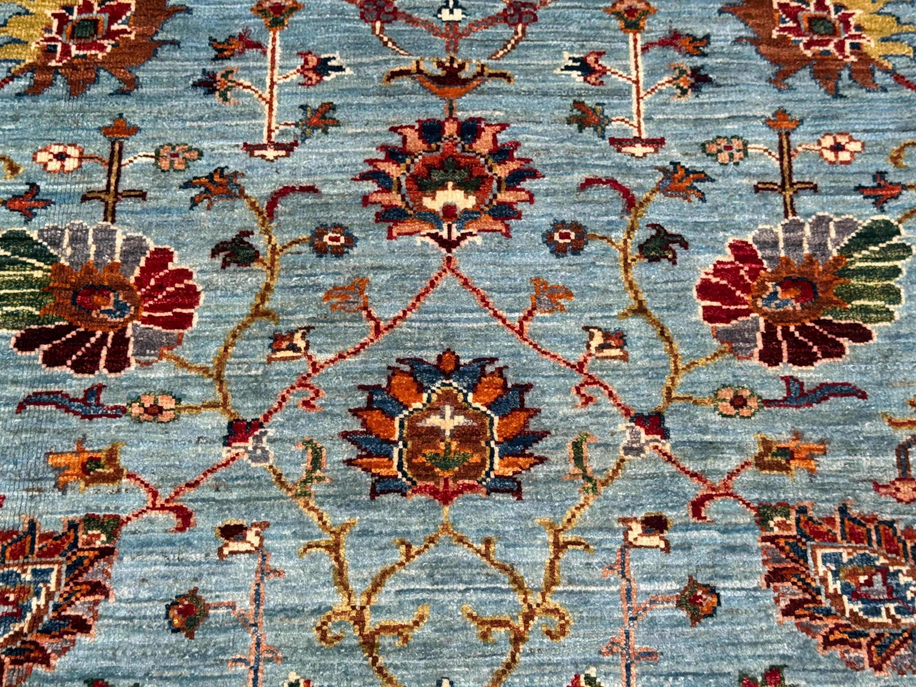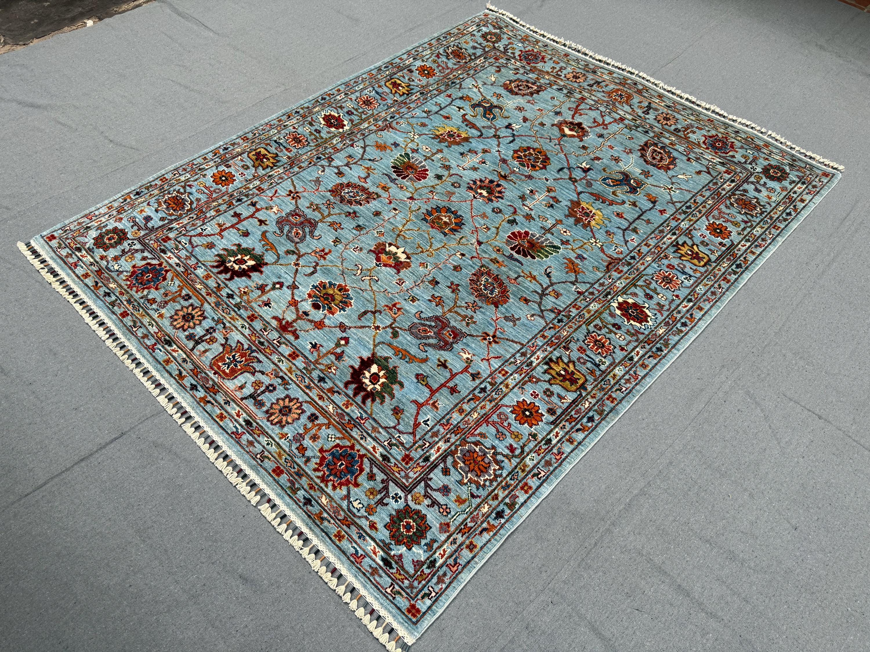 Handmade Sultani Rug 5x6 ft Blue Floral Wool Carpet Traditional Oriental Area Rug Hand-Knotted Decor for Living Room & Bedroom