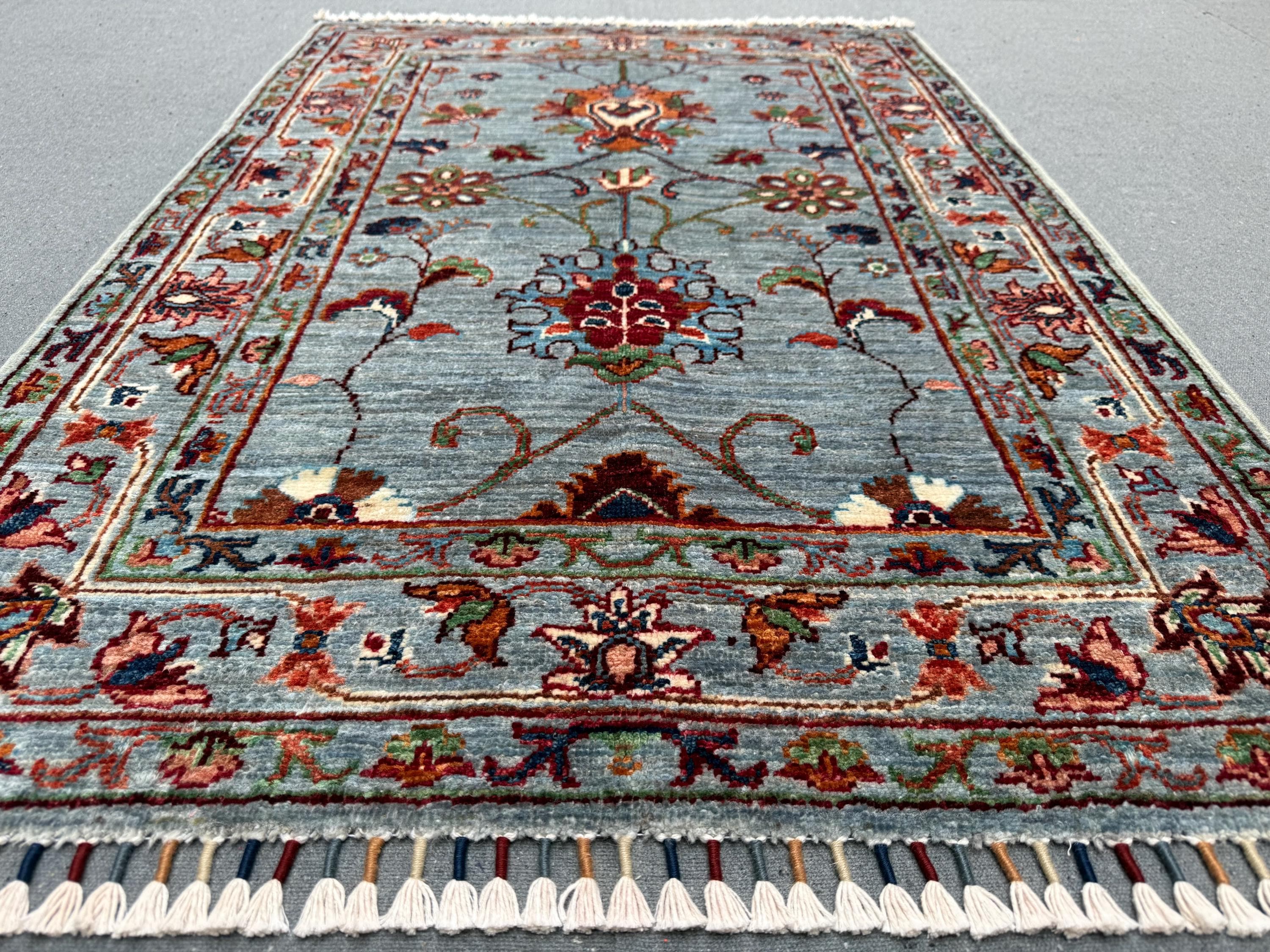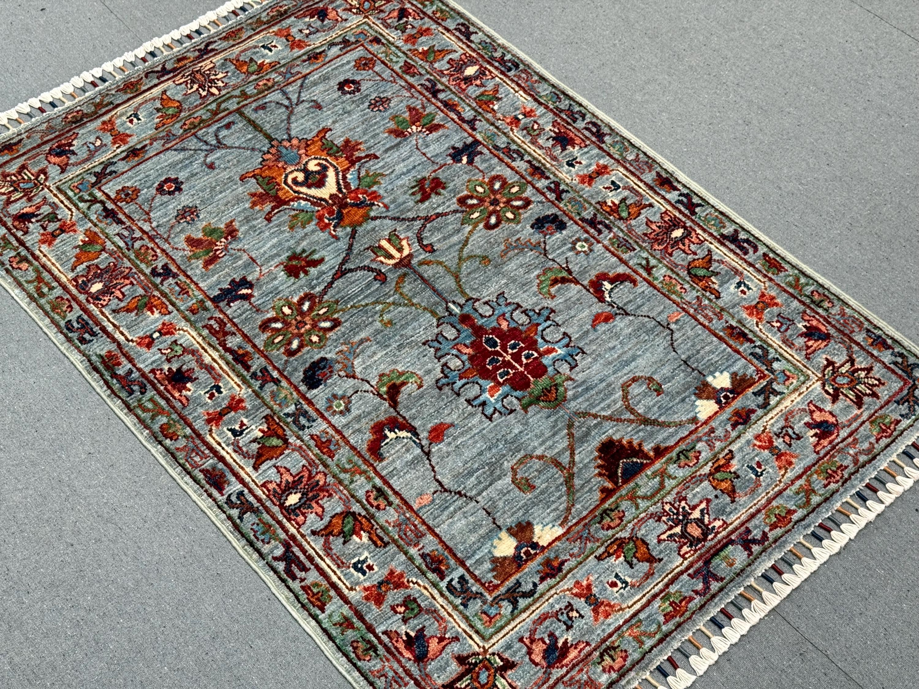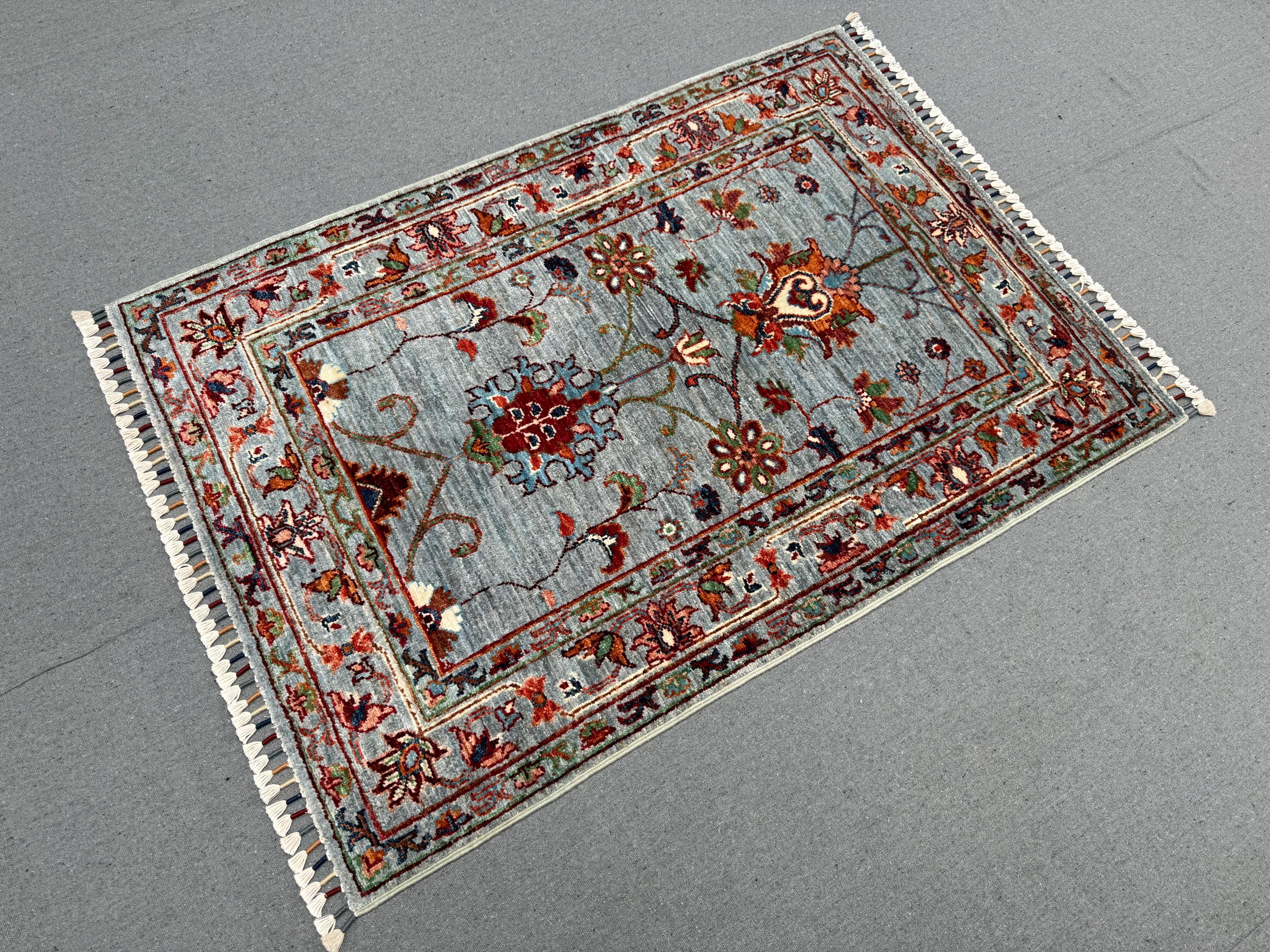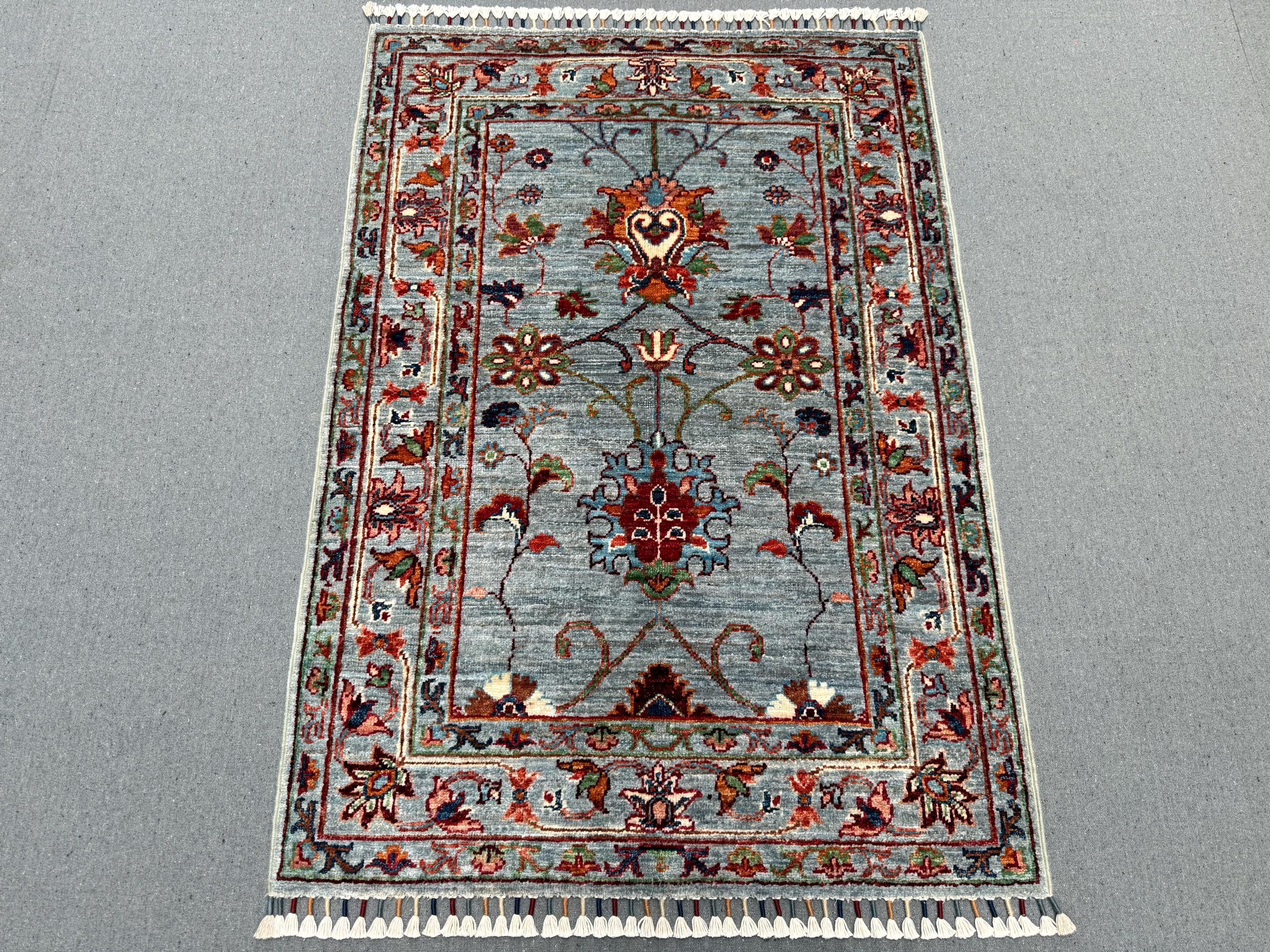Handmade Sultani Wool Rug 2.9x3.1 ft Blue Floral Oriental Area Rug Traditional Tribal Design Small Accent Rug