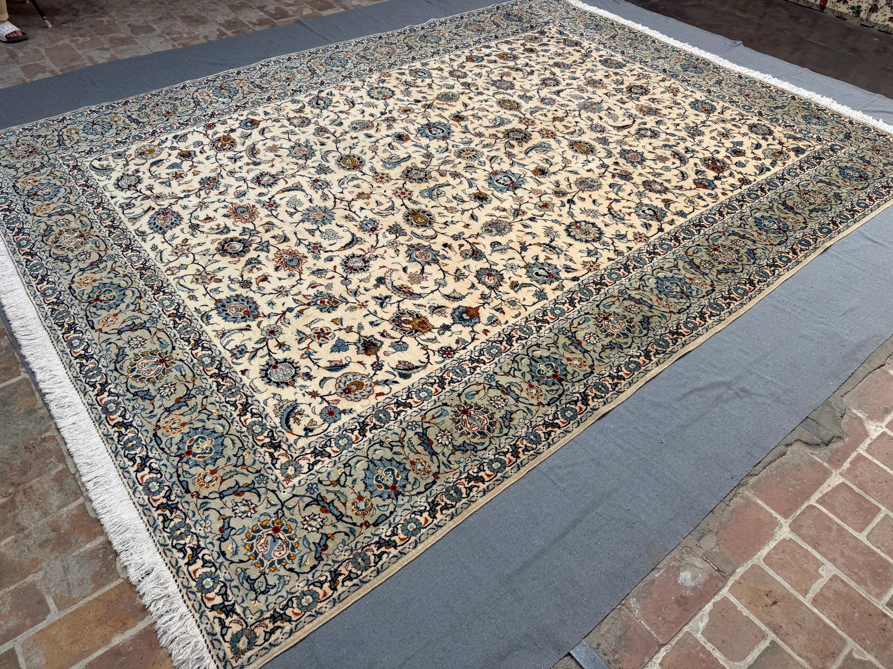 Large Ivory Sultani Rug 9x13 ft Handmade Wool Floral Area Carpet, Afghan Traditional Design for Living Room, Luxury Vintage-Style Home Décor