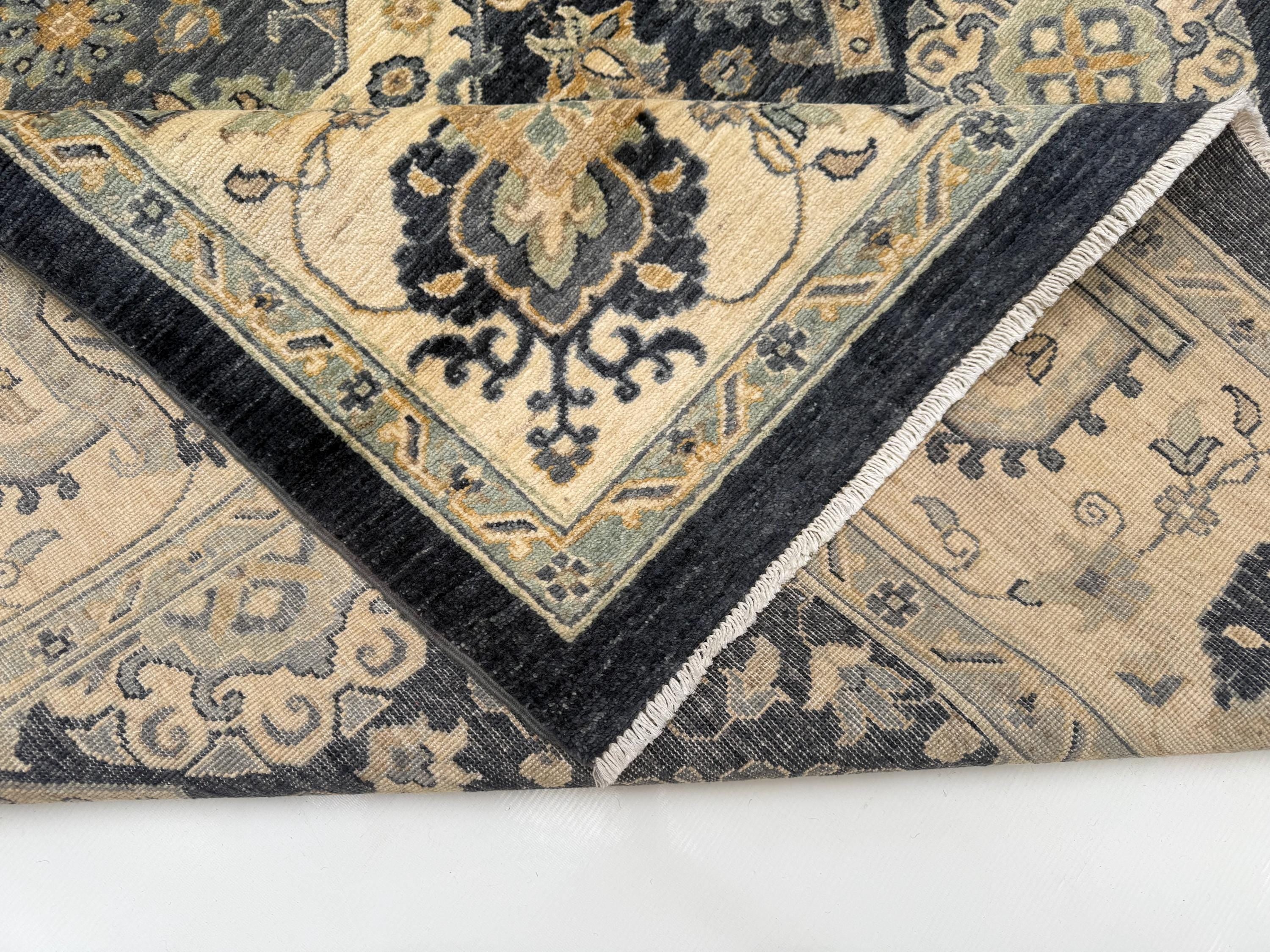 The rug’s sizable dimensions make it ideal for anchoring large living rooms, formal dining areas, executive offices, or open-concept interiors. Whether layered over hardwood floors or placed in a cozy corner, this rug brings warmth, sophistication, and timeless appeal to any room.