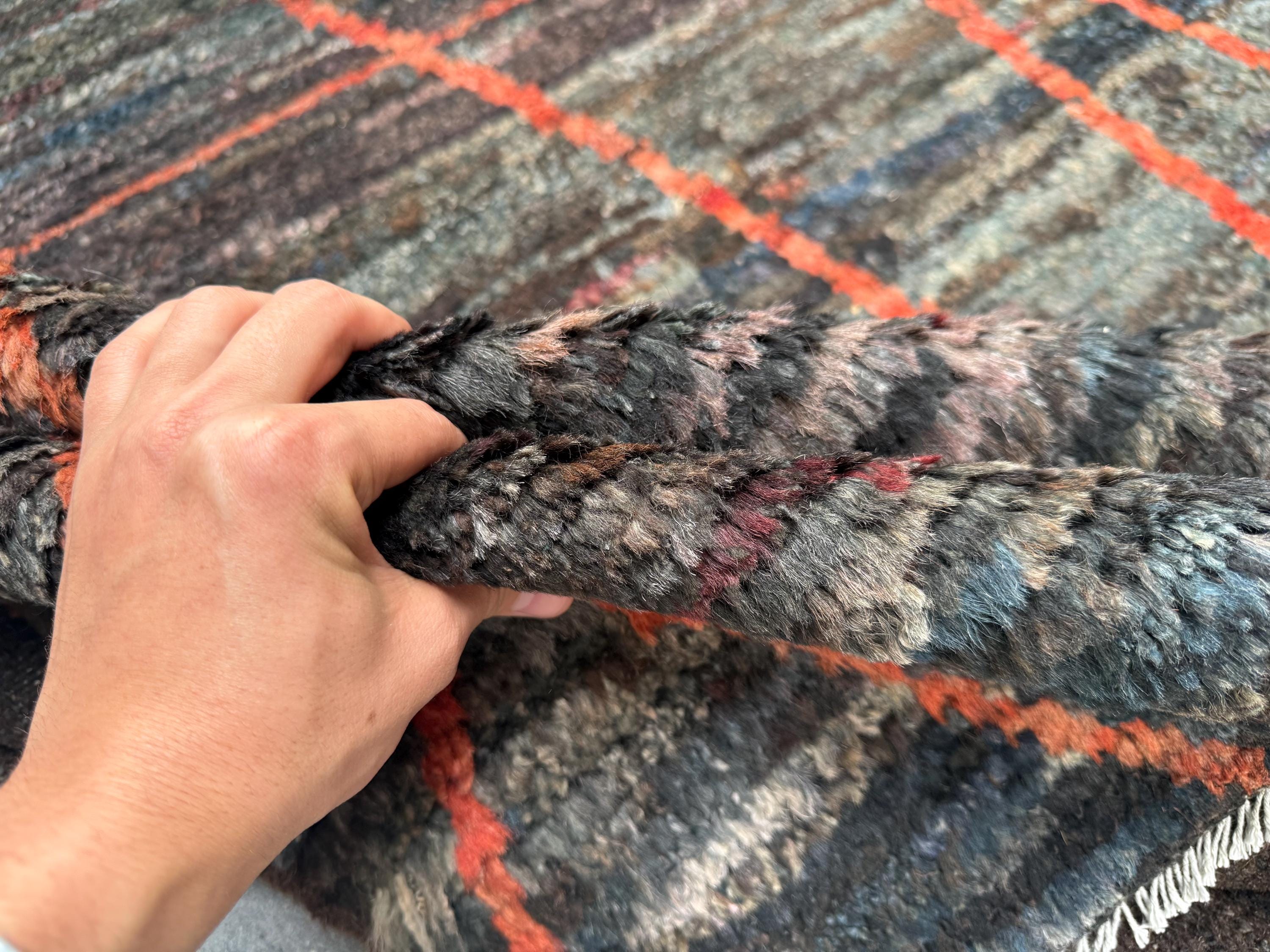 Hand-knotted from 100% natural wool, this rug offers durability, comfort, and a soft low pile that feels substantial underfoot. Ideal for living rooms, bedrooms, studios, or creative spaces seeking a refined statement piece.
