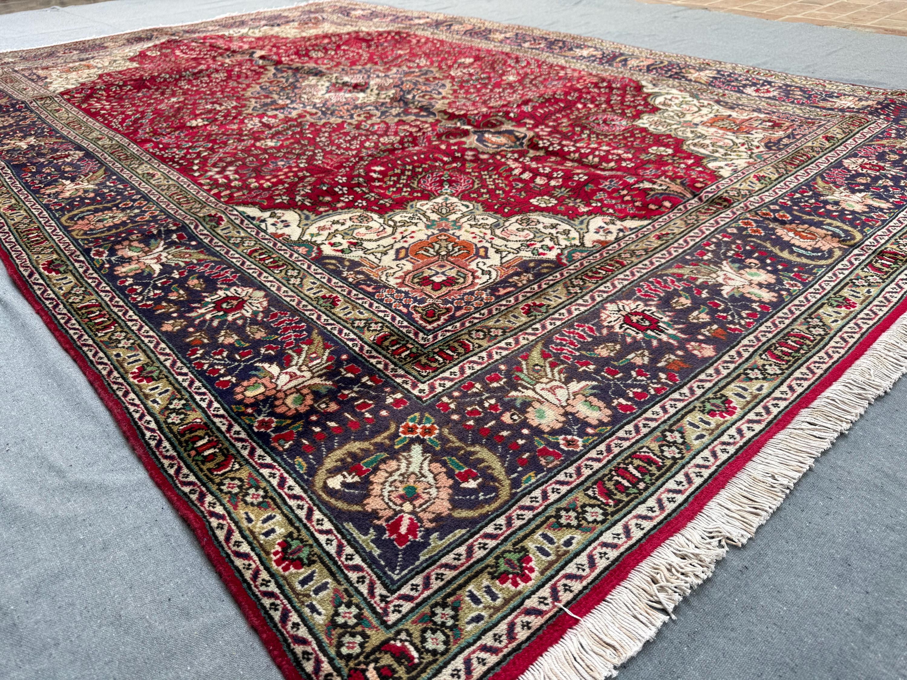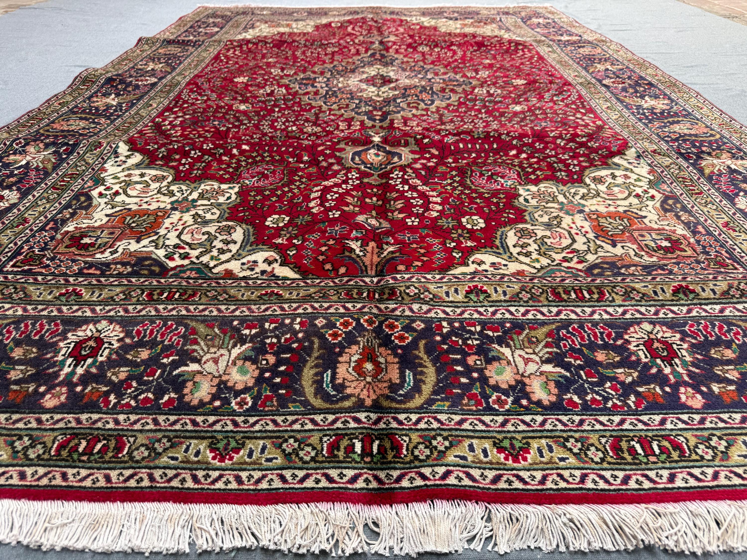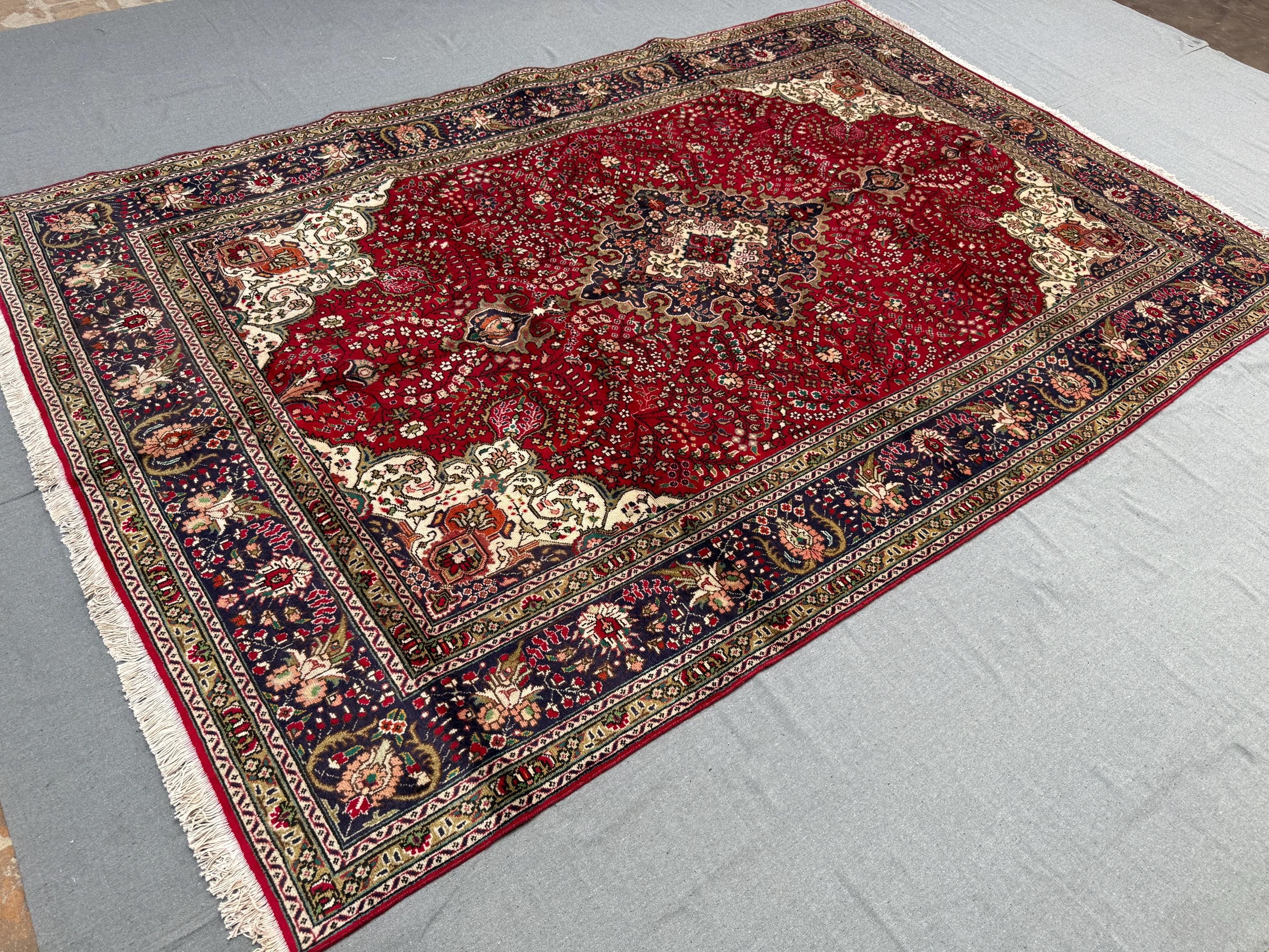 Handmade Heriz Rug 7x10 ft Red Wool Medallion Carpet Traditional Afghan Area Rug for Living Room, Bedroom & Elegant Home Interior Decor