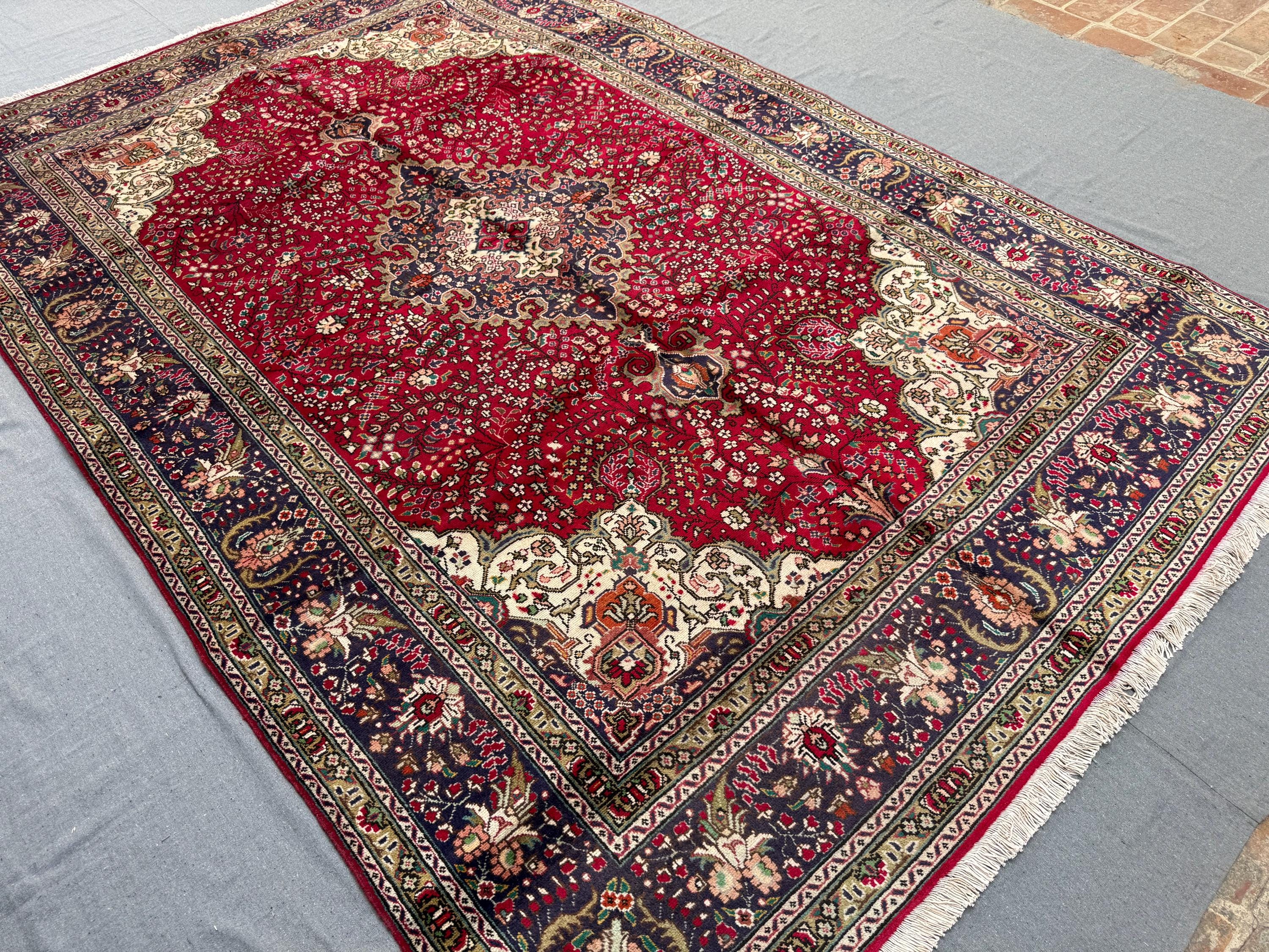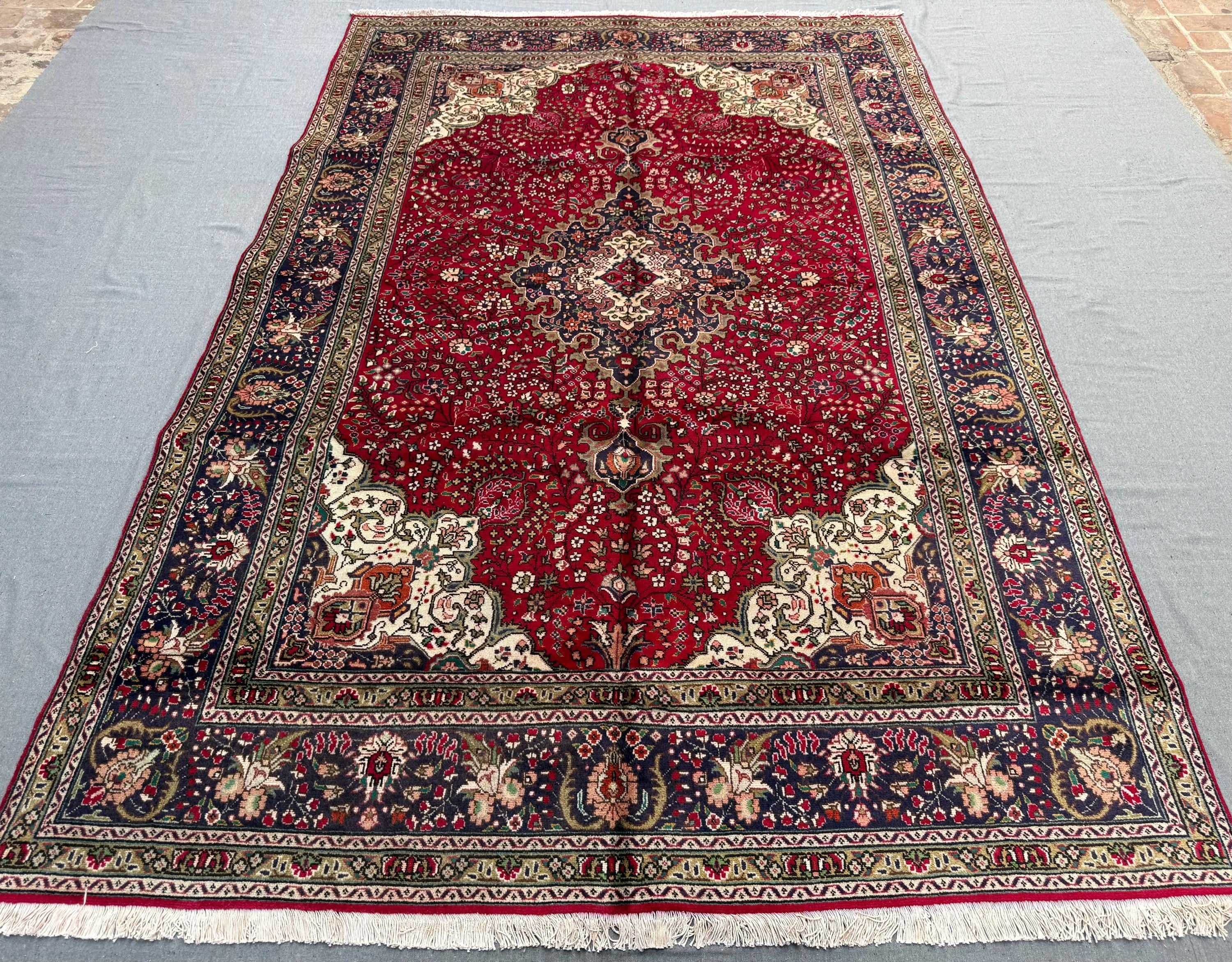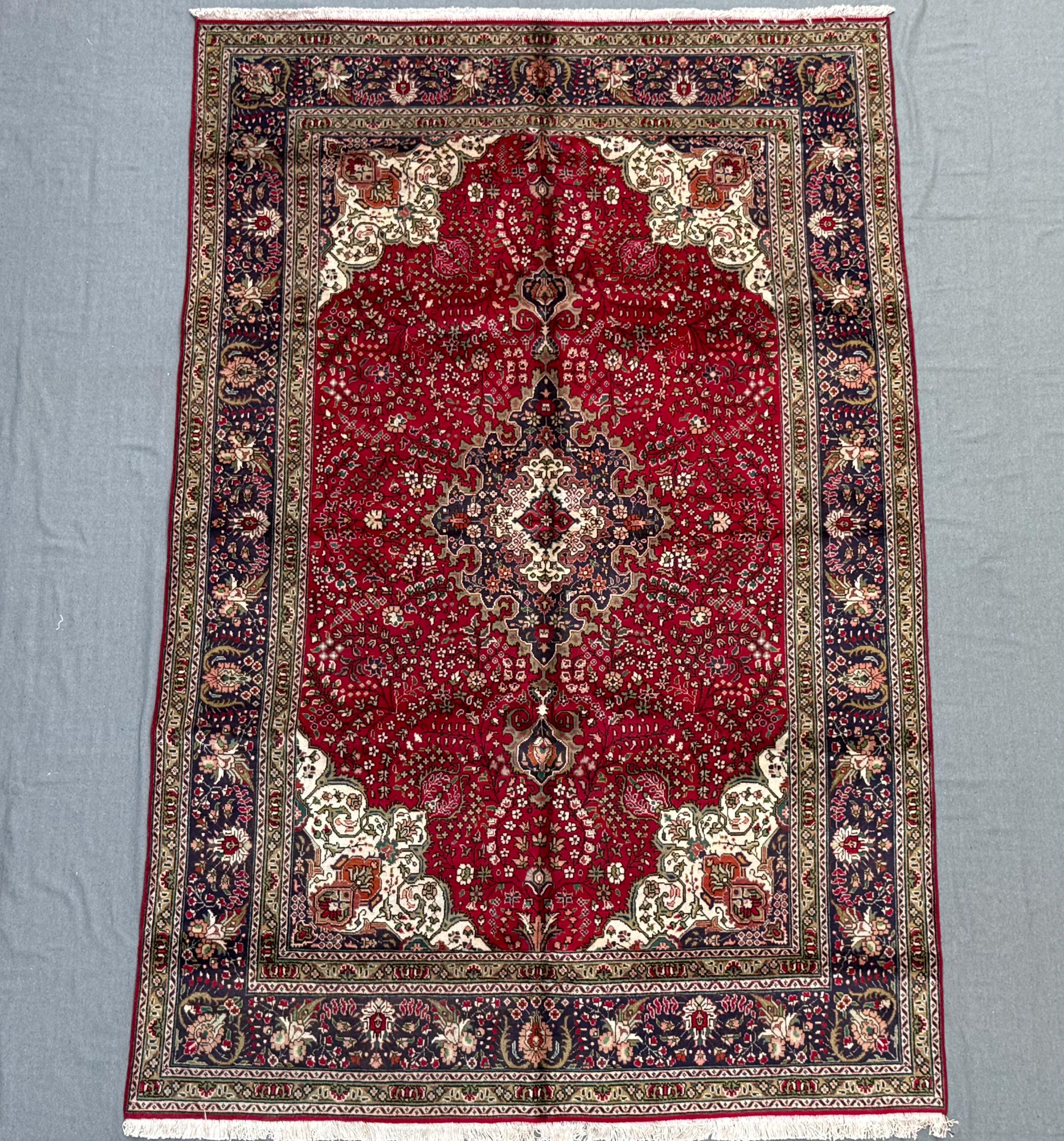 Handmade Heriz Rug 7x10 ft Red Wool Medallion Carpet Traditional Afghan Area Rug for Living Room, Bedroom & Elegant Home Interior Decor