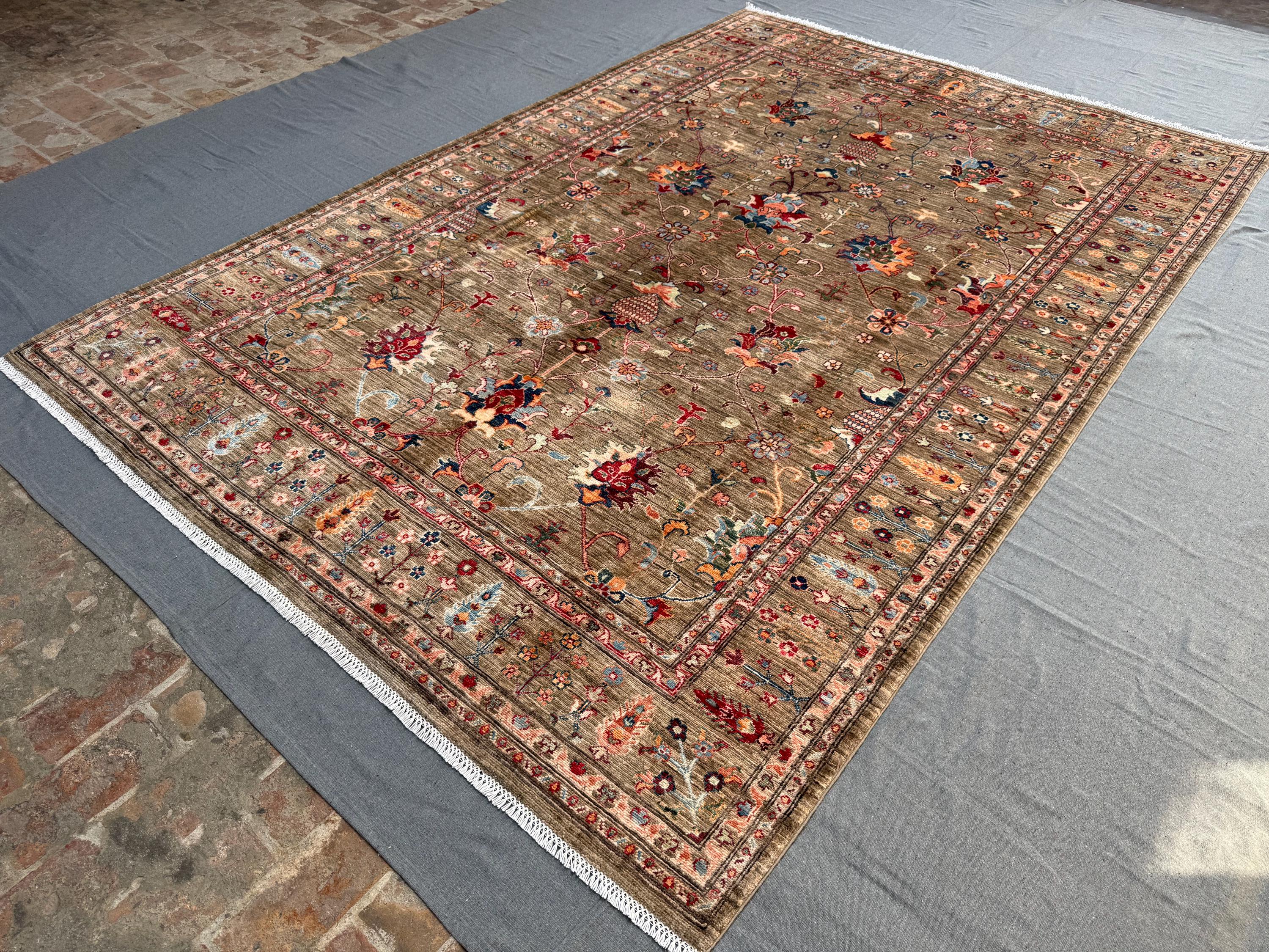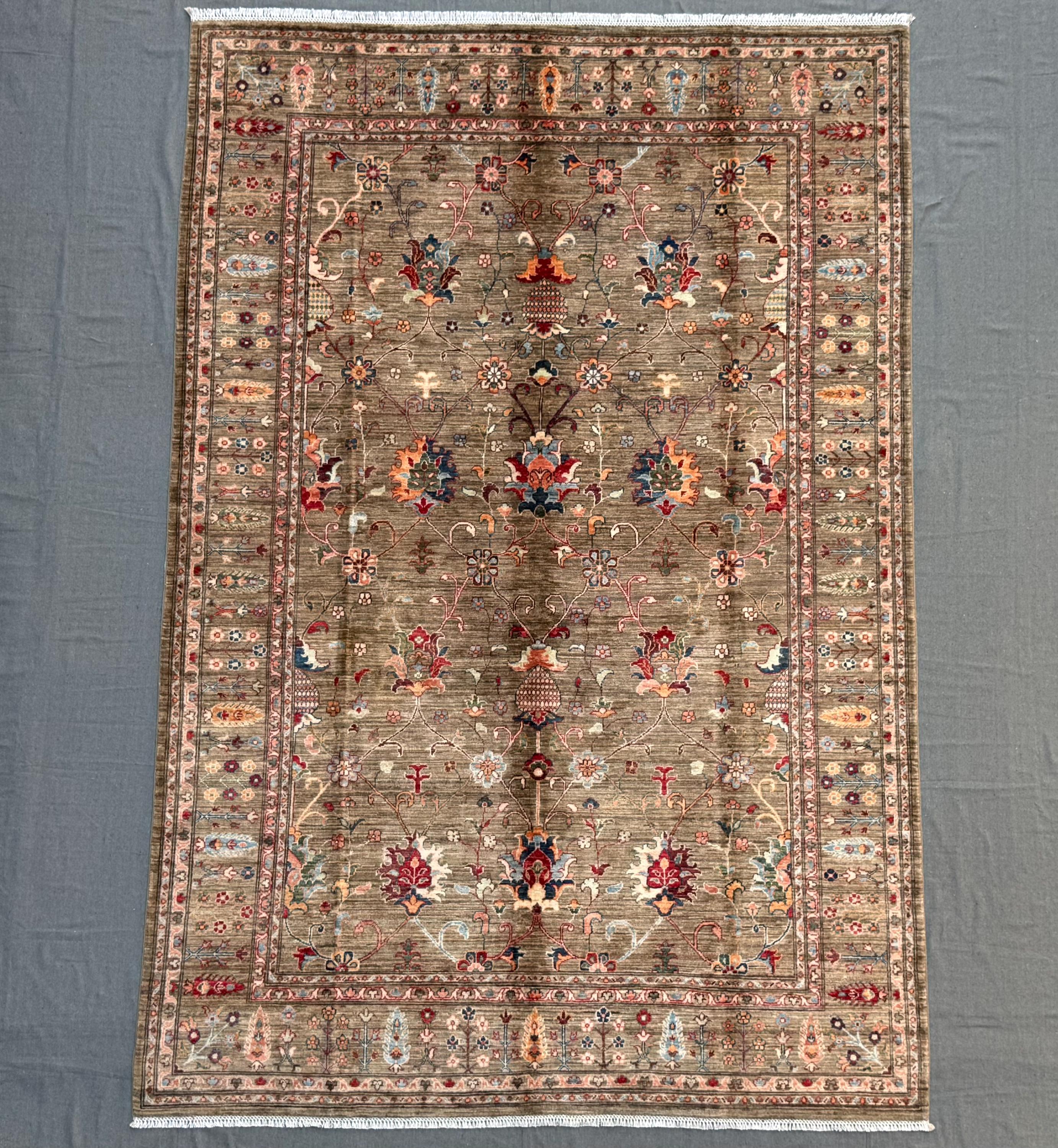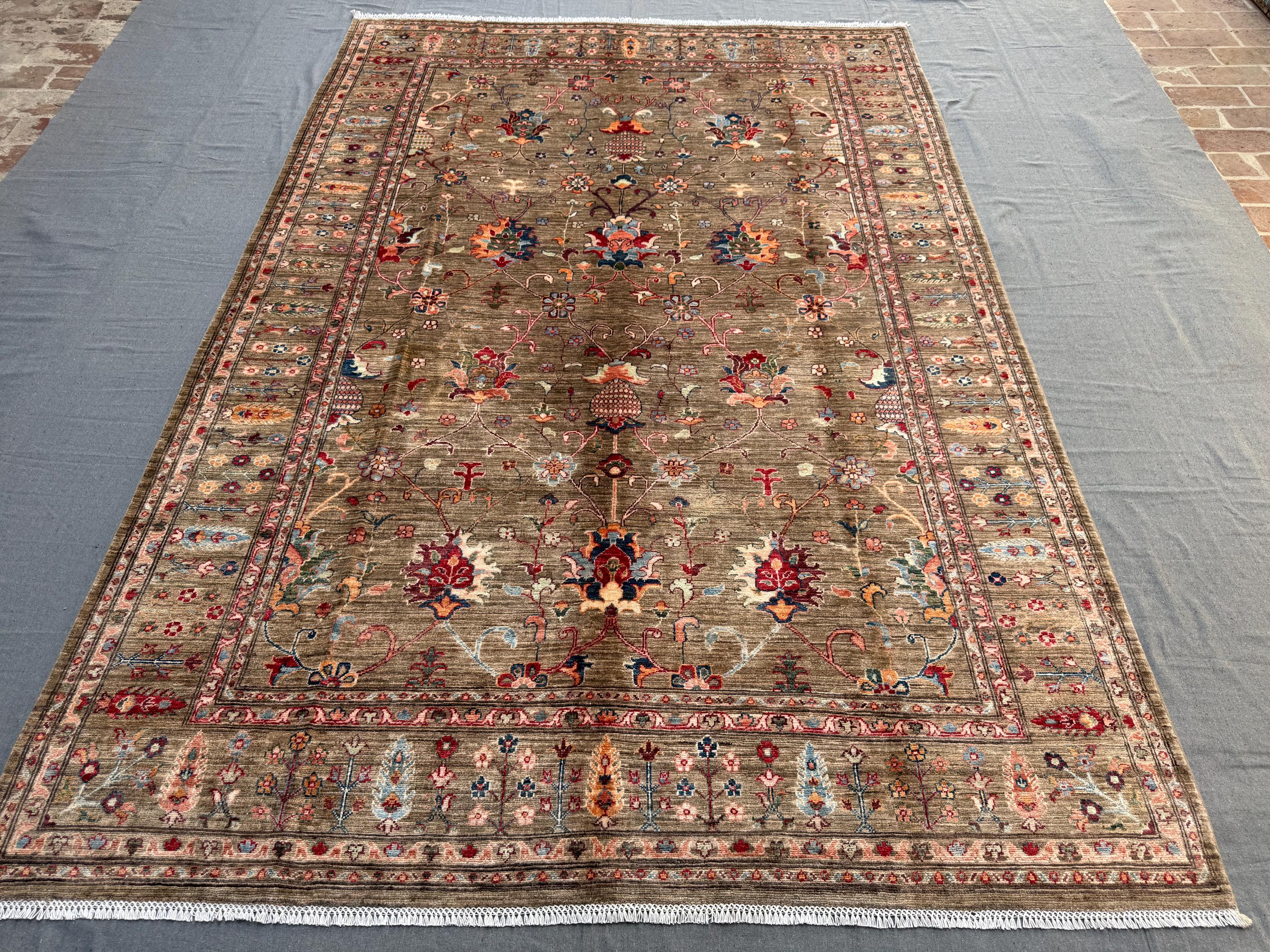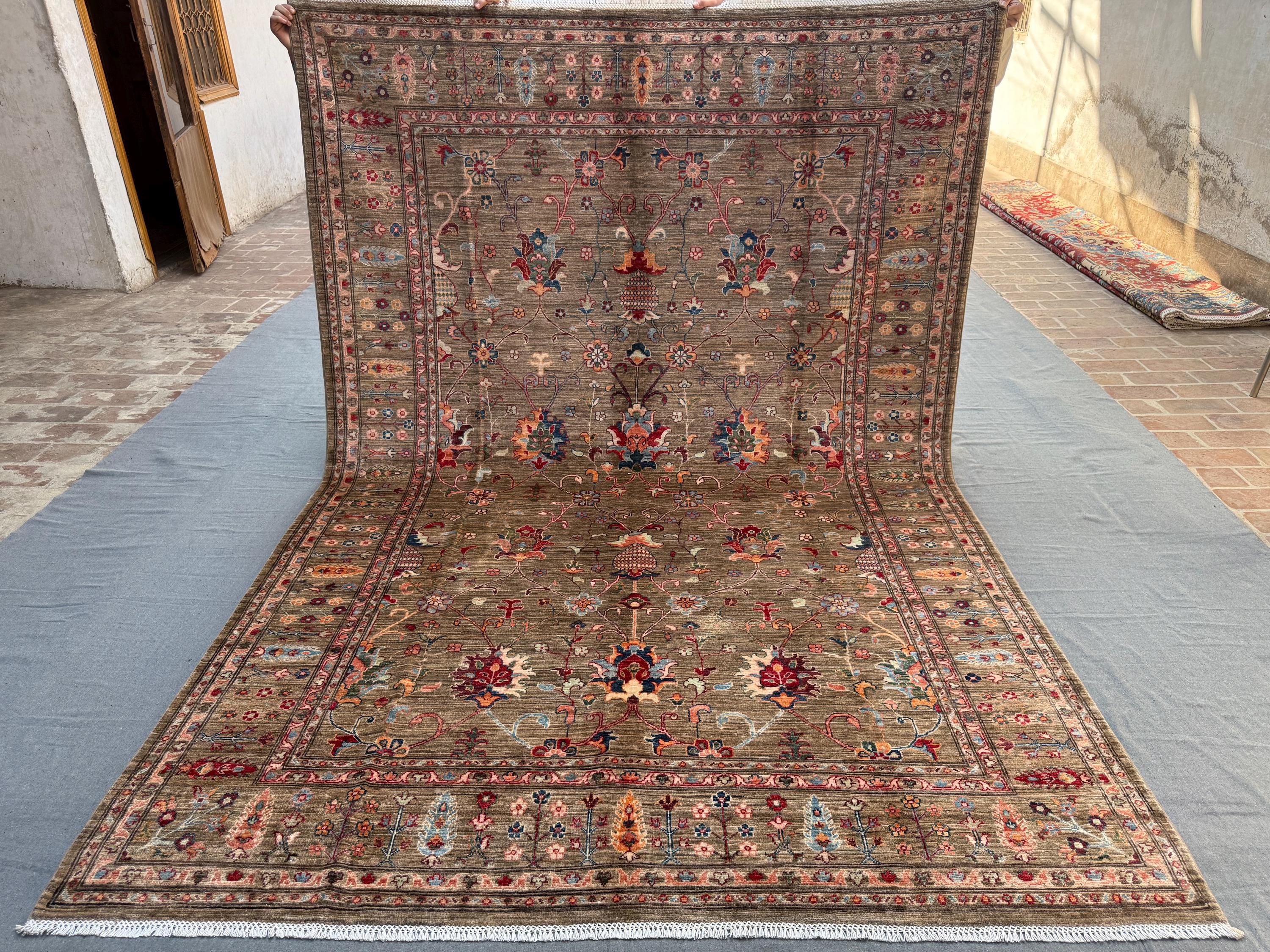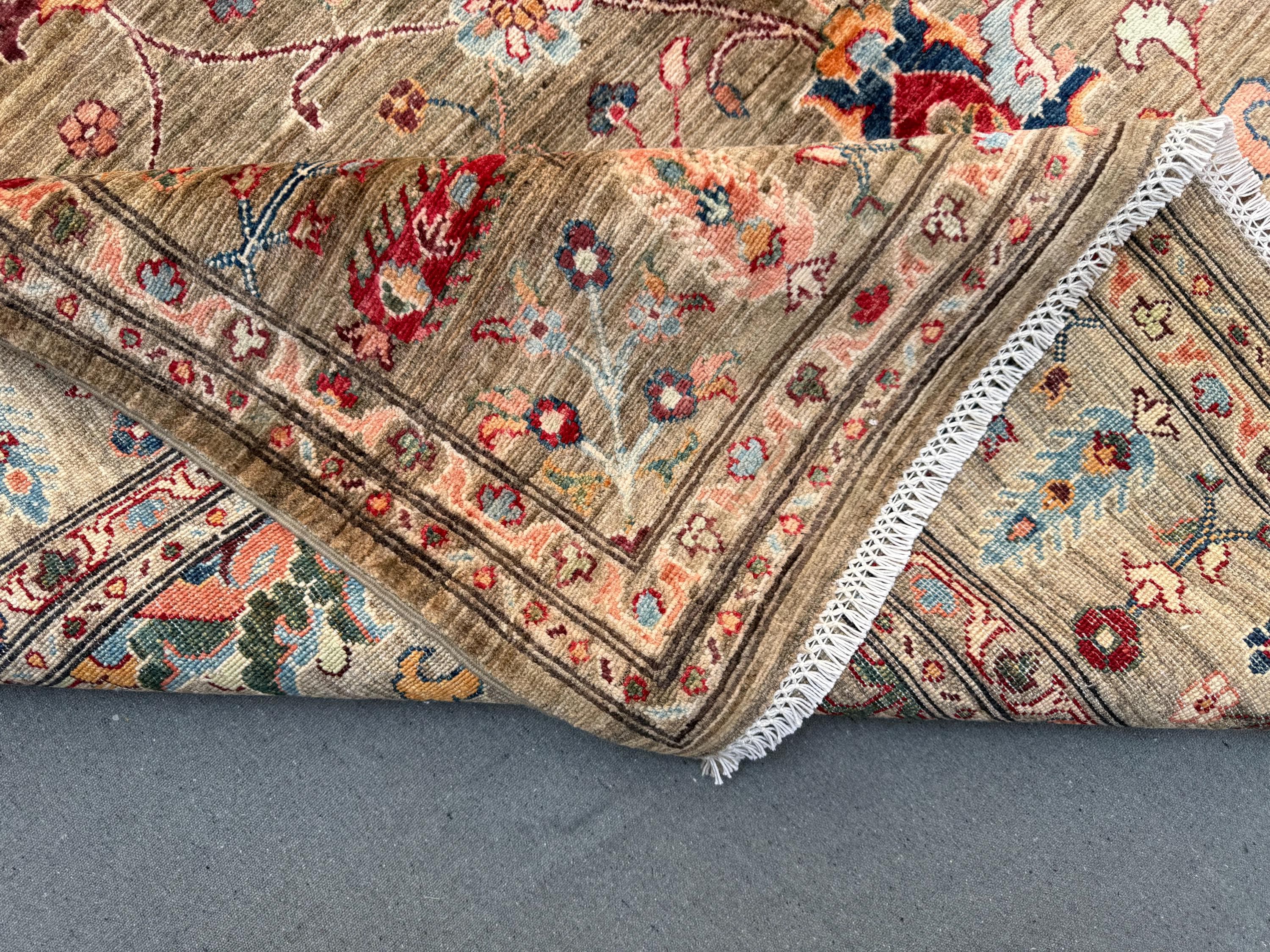 Expertly hand-knotted from 100% wool, this rug offers durability, softness underfoot, and timeless visual appeal. The detailed borders, symmetrical botanical elements, and subtle abrash create depth and authenticity—hallmarks of a truly handmade Afghan Sultani rug.