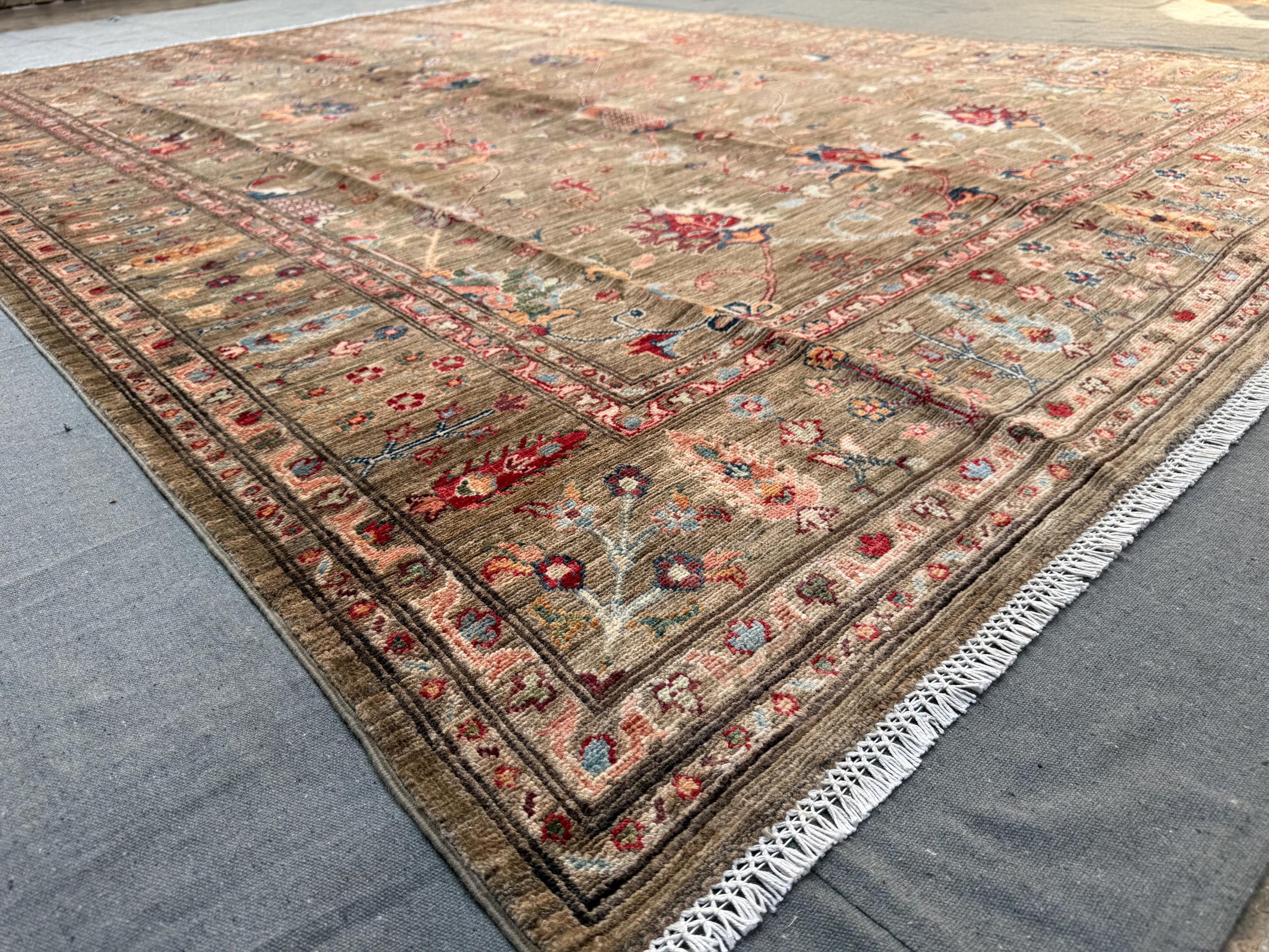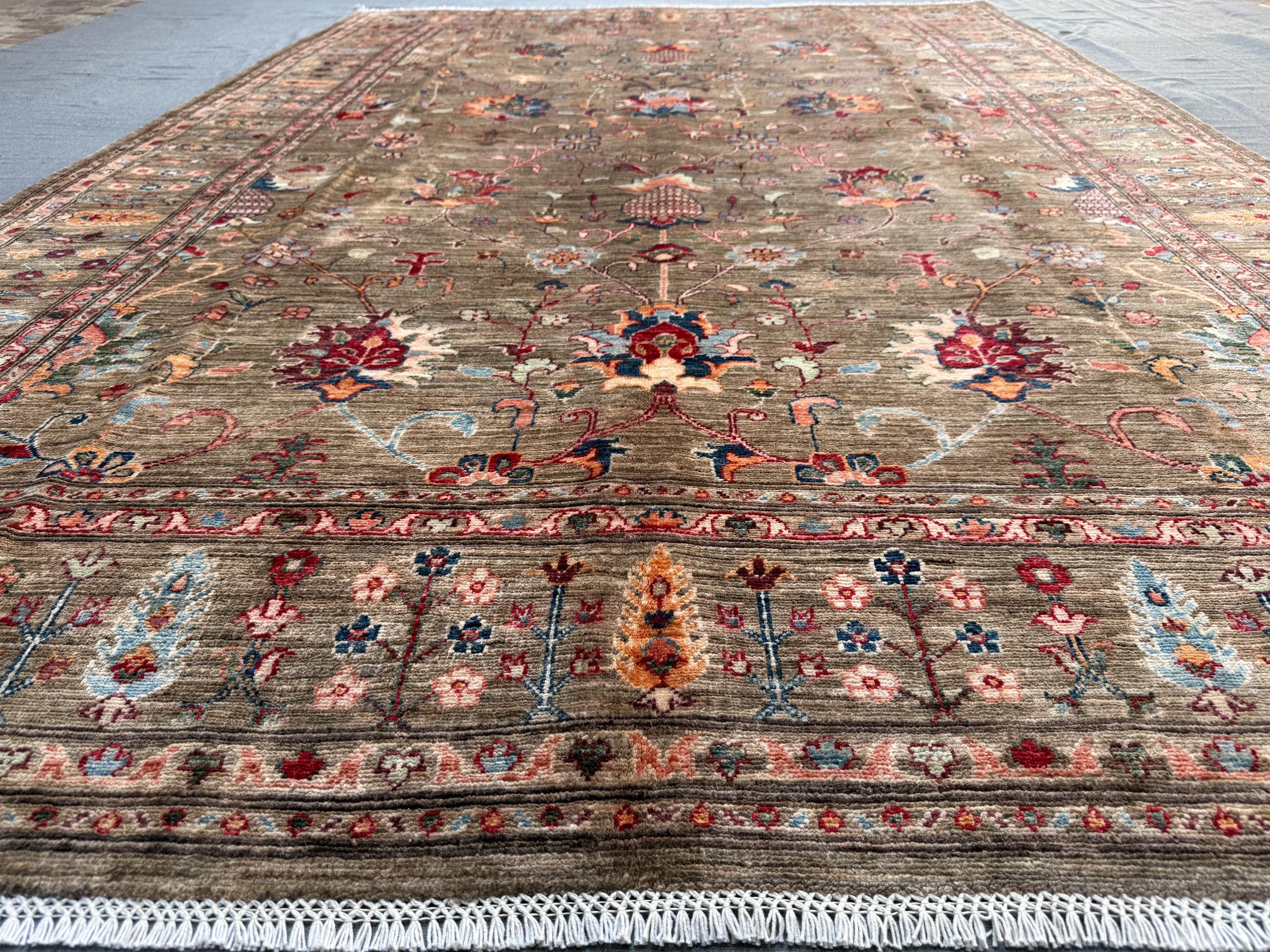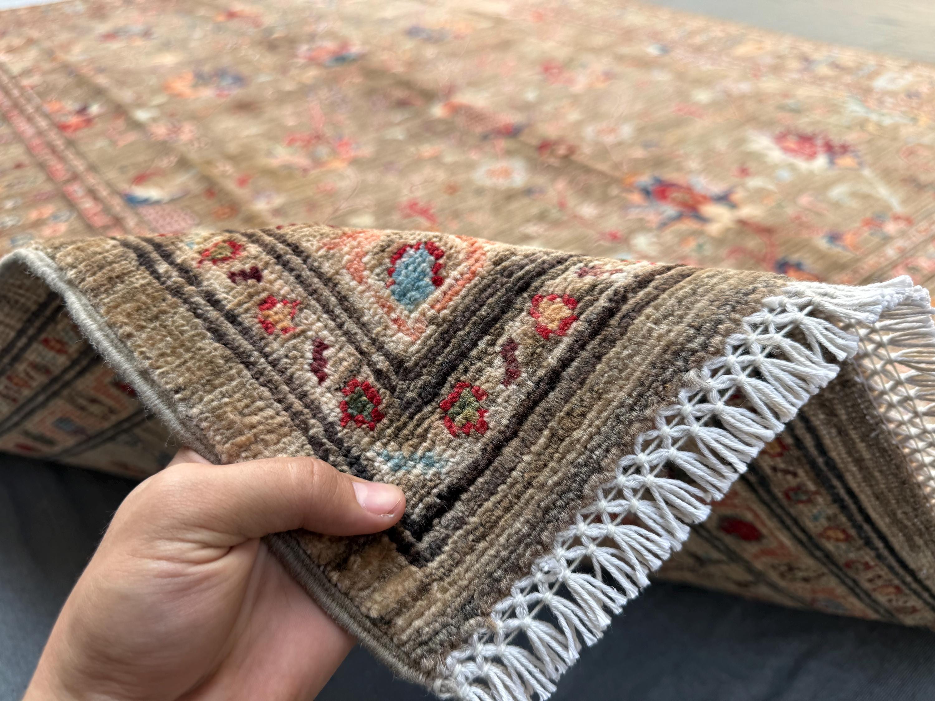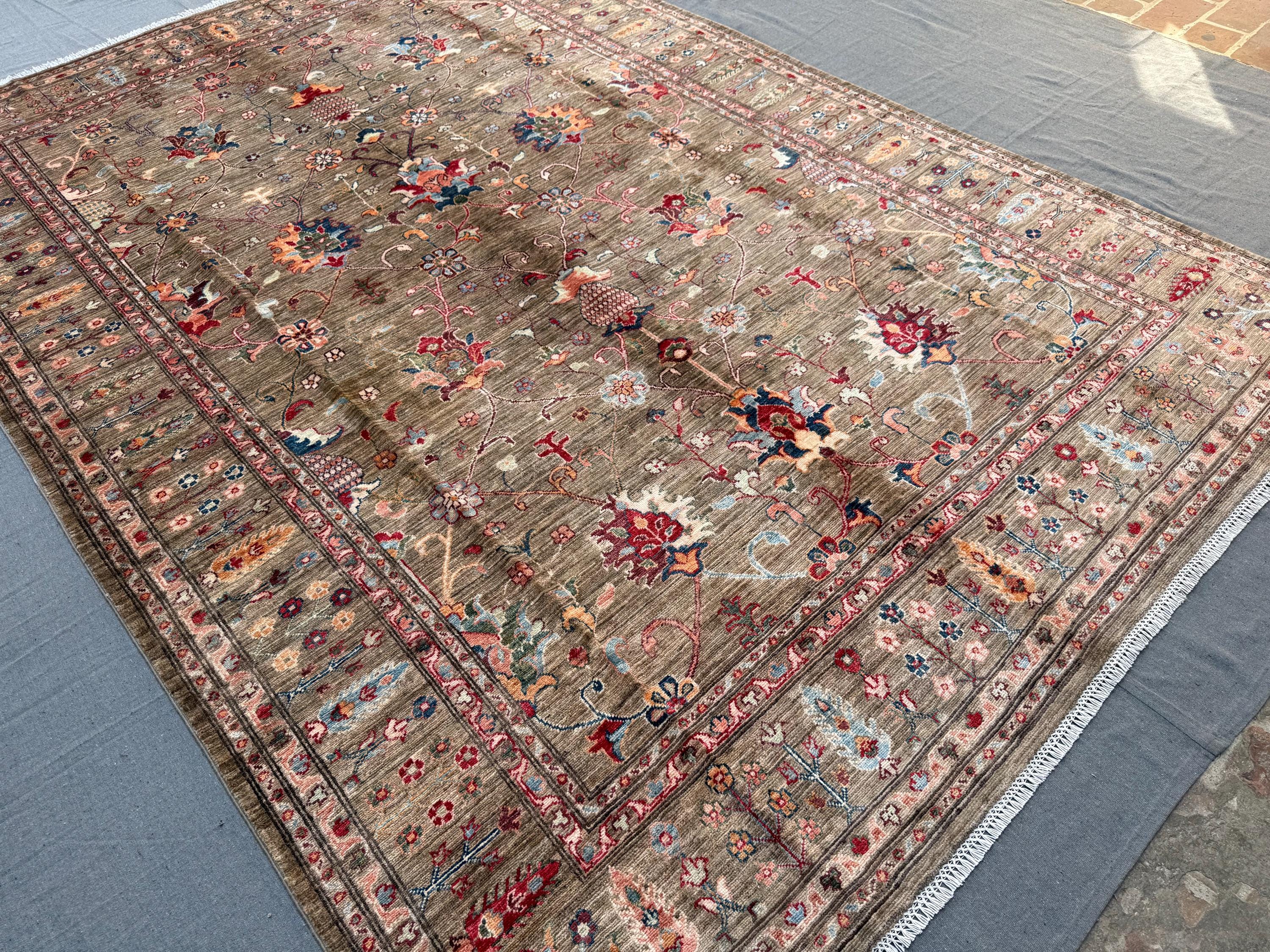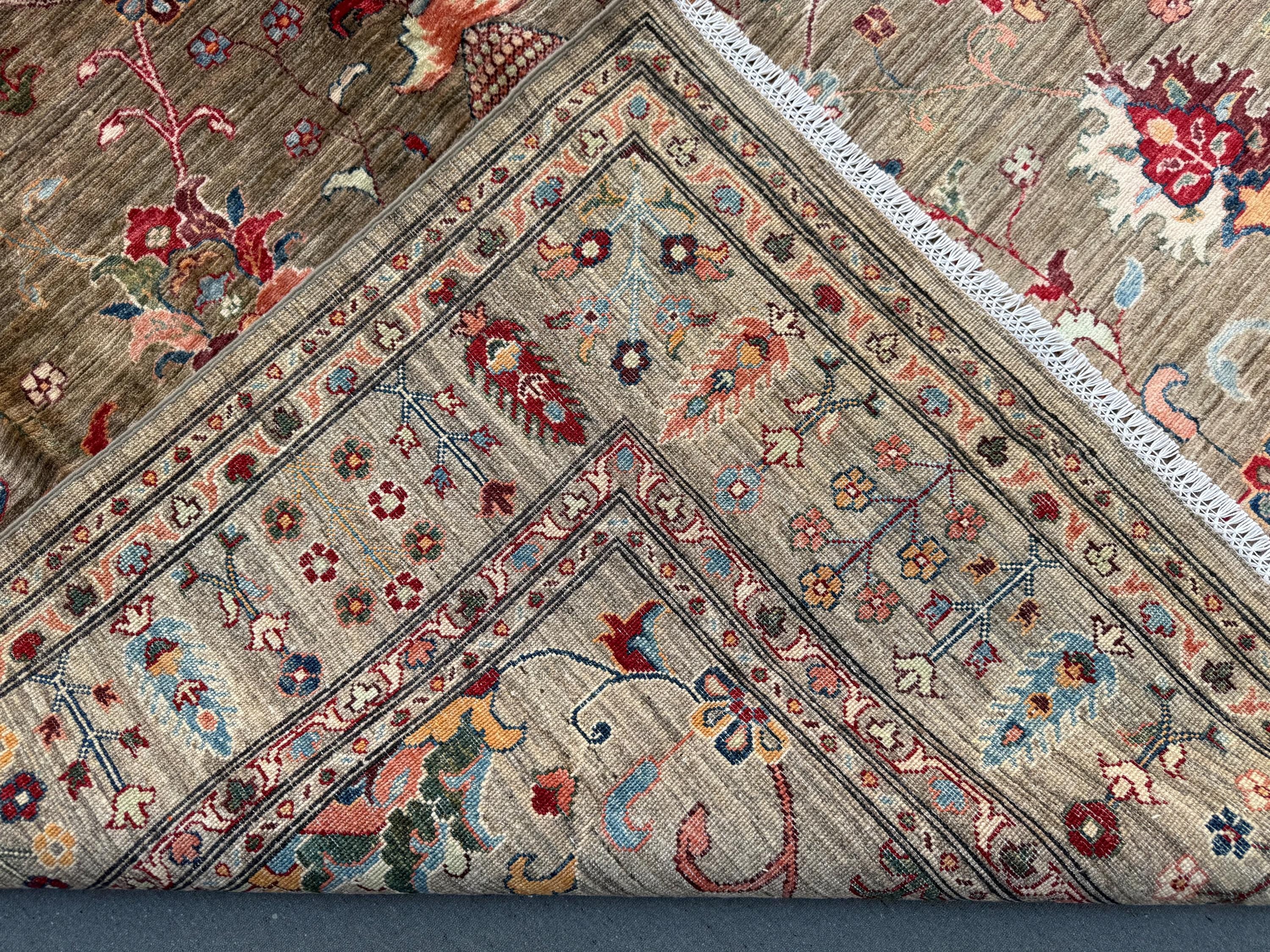 Expertly hand-knotted from 100% wool, this rug offers durability, softness underfoot, and timeless visual appeal. The detailed borders, symmetrical botanical elements, and subtle abrash create depth and authenticity—hallmarks of a truly handmade Afghan Sultani rug.