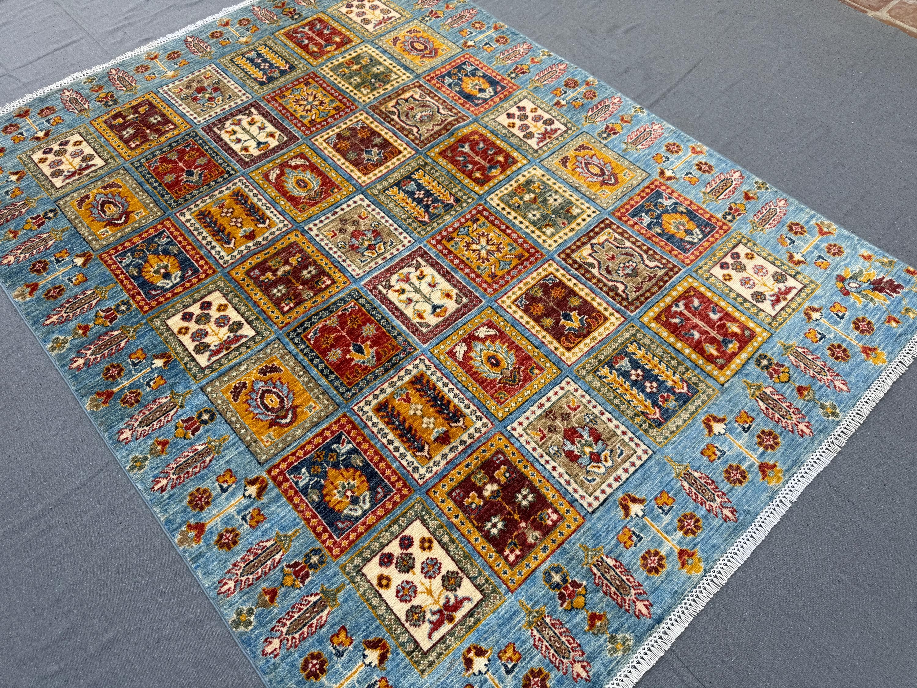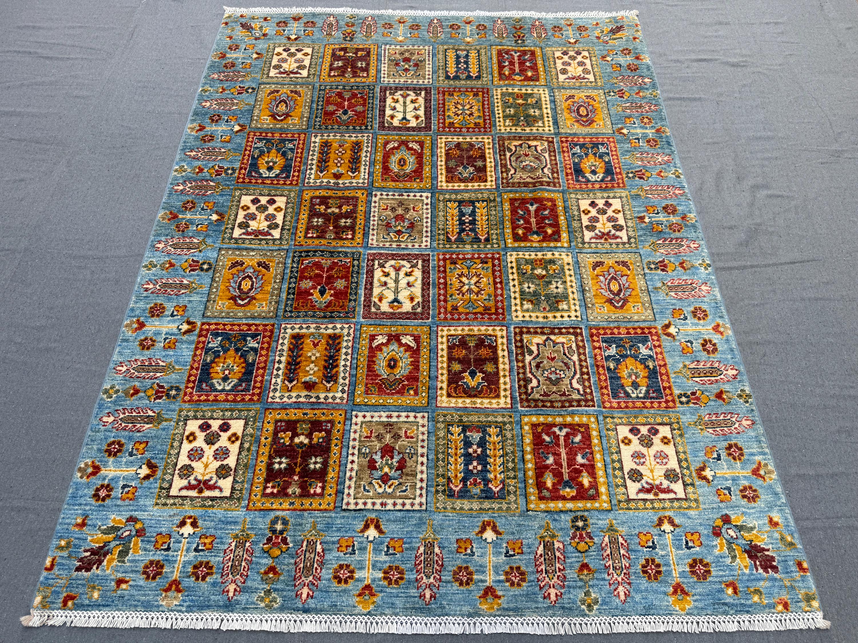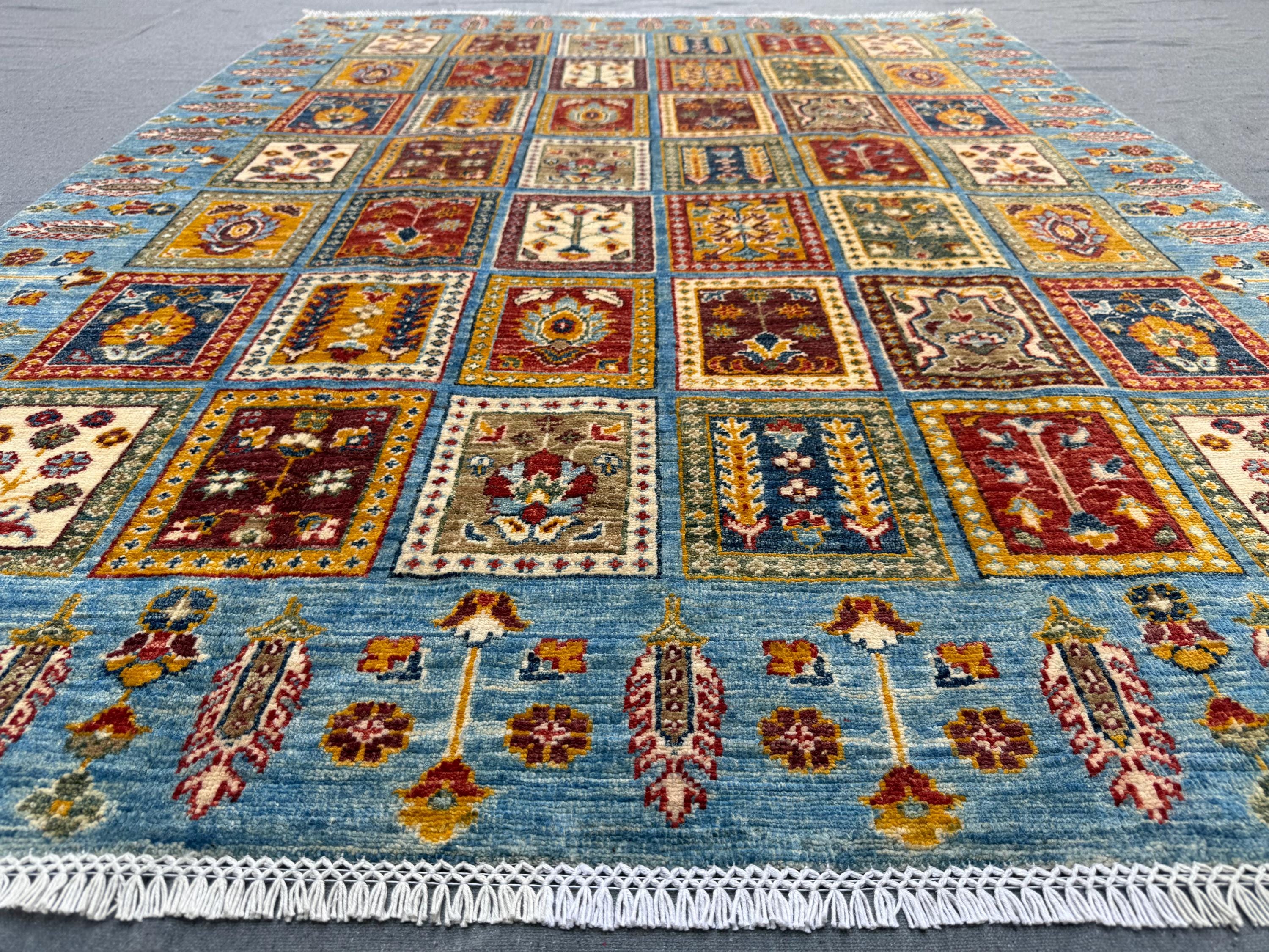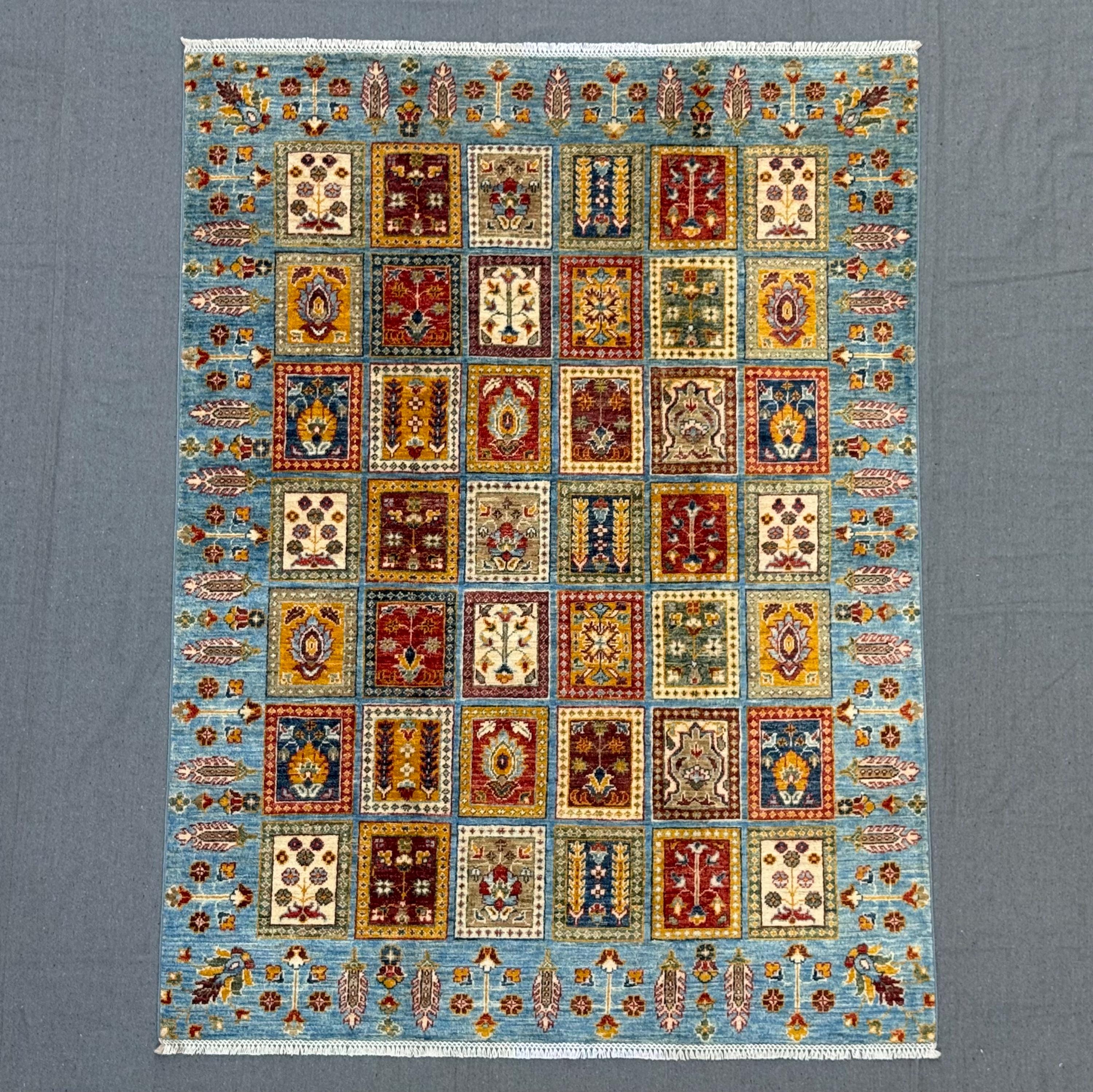 Handmade Bakhtiari Rug 5x7 ft Afghan Wool Multicolor Panel Carpet | Vintage Tribal Garden Design | Traditional Living Room Home Decor