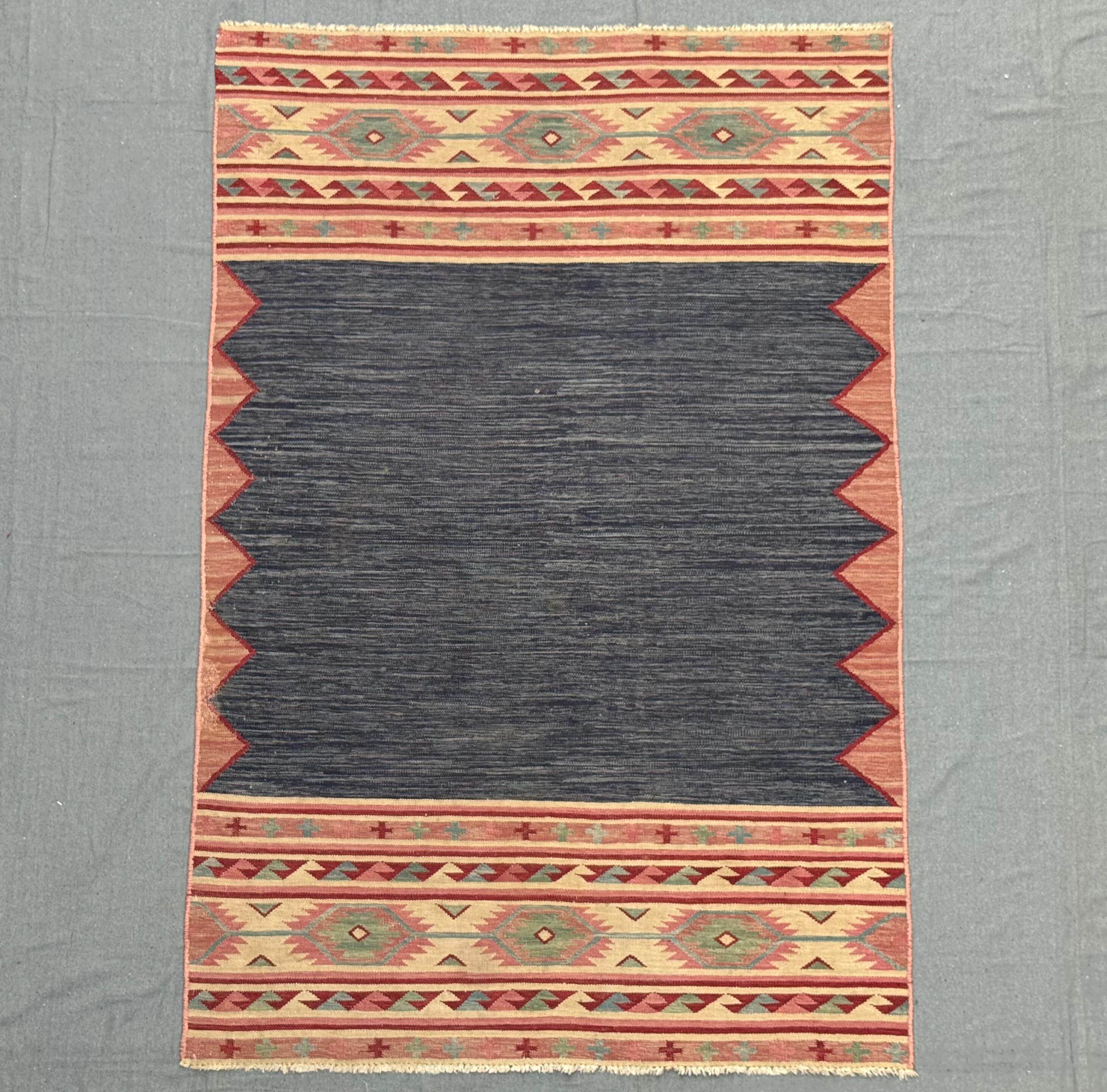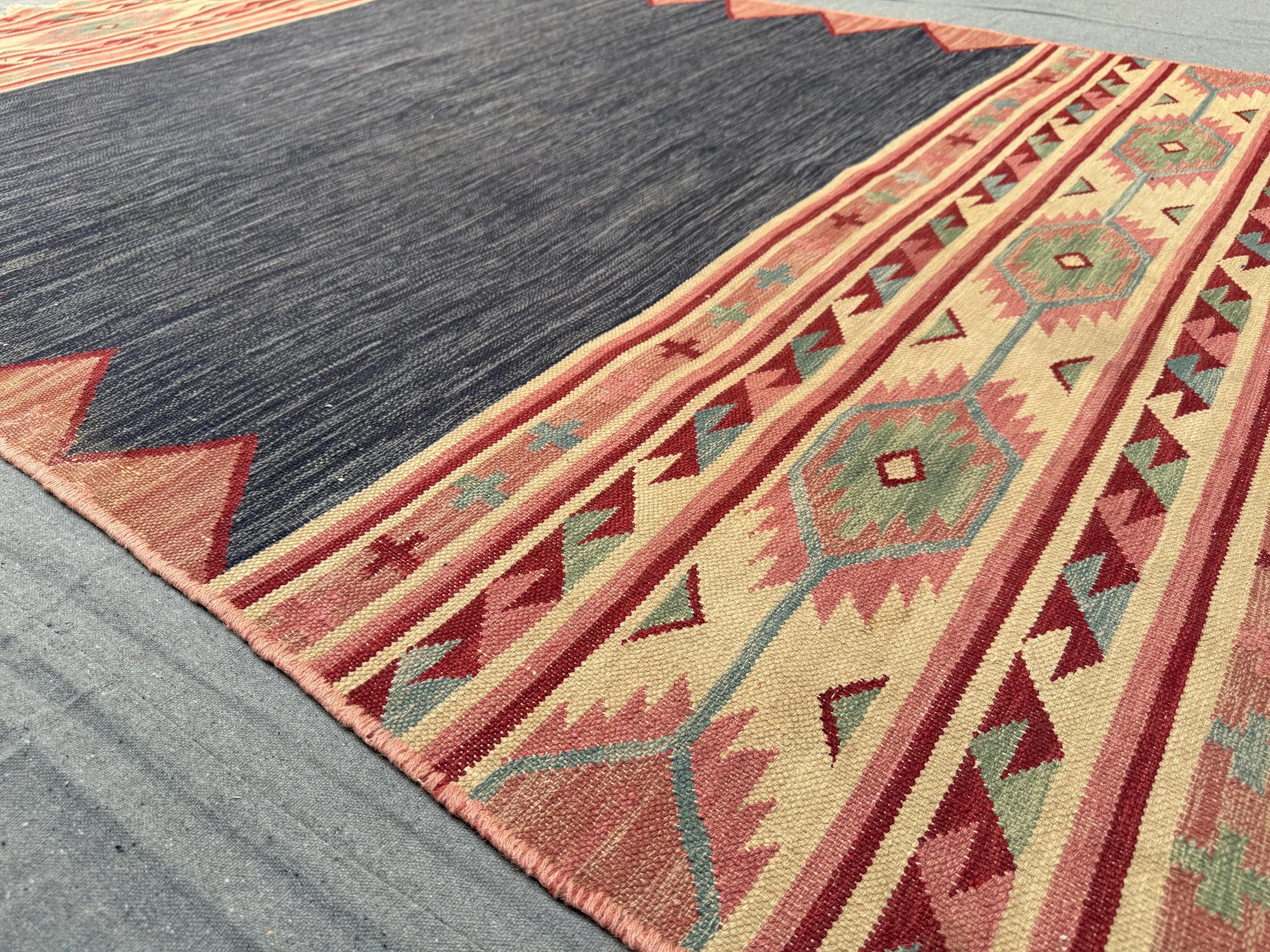 This stunning Afghan Kilim rug combines tribal artistry with modern minimalism.