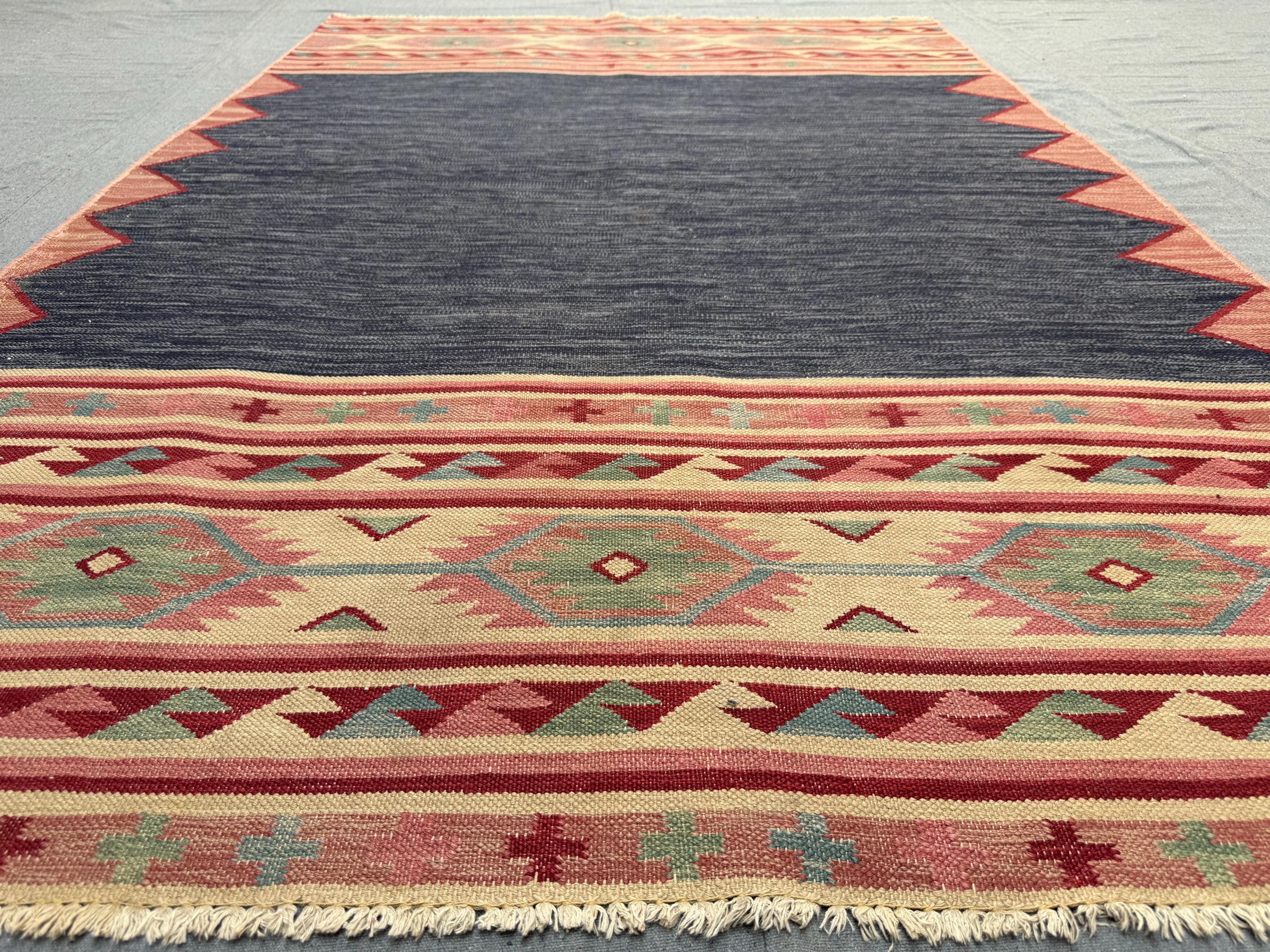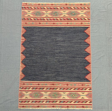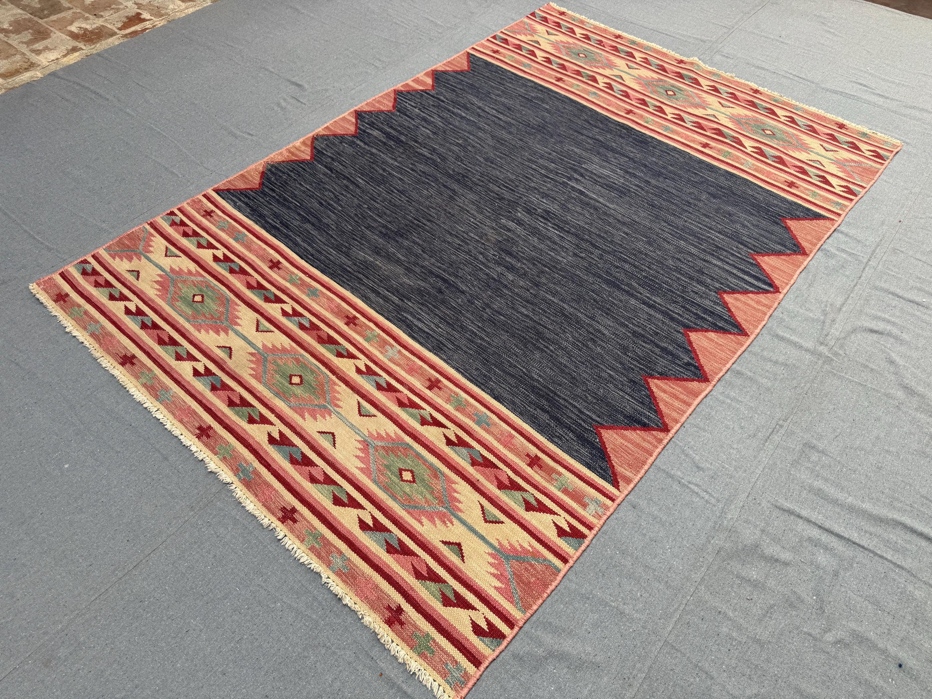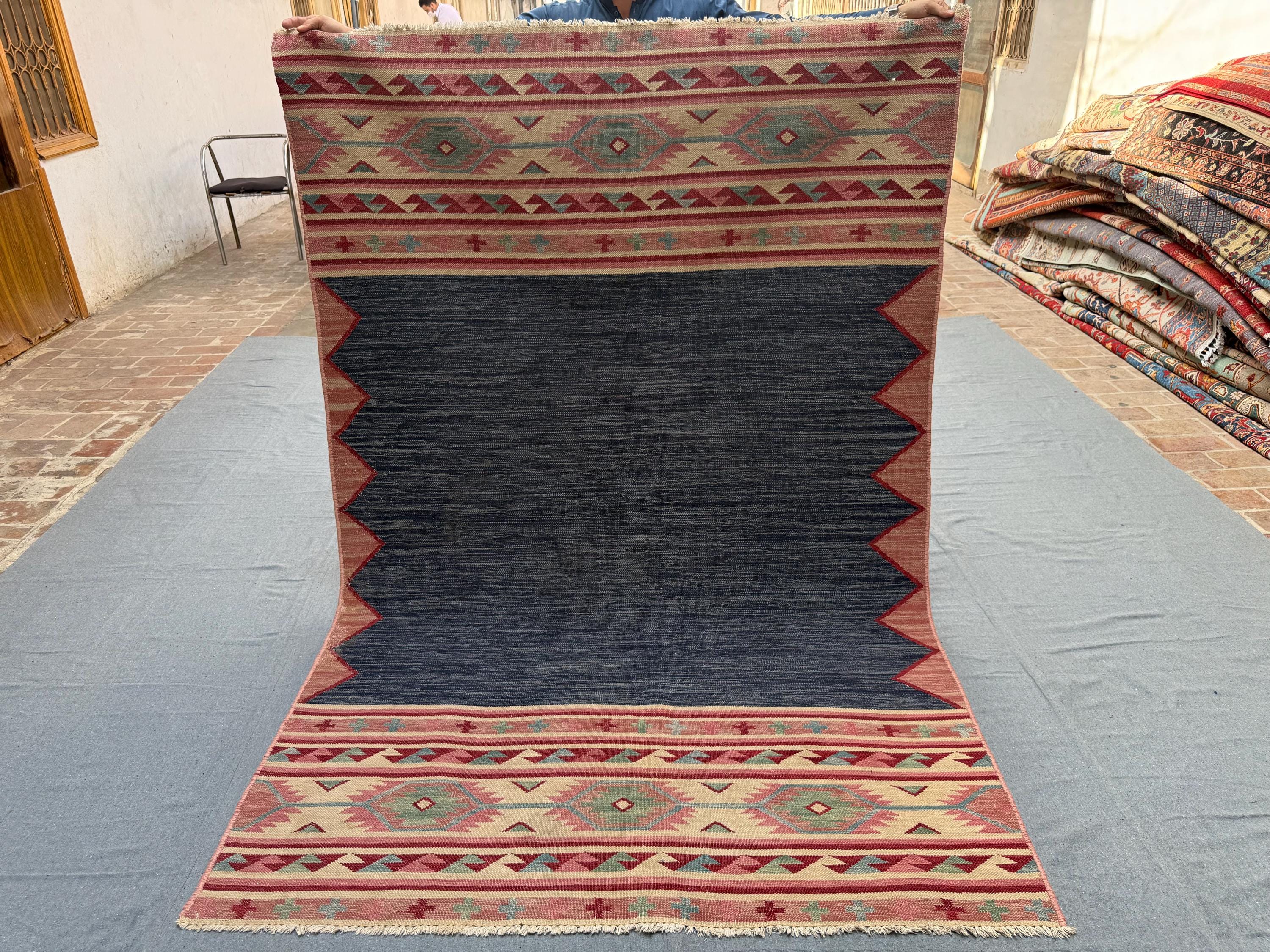 Handwoven Afghan Kilim Wool Rug 5x7 | Black Geometric Flatweave Carpet | Boho Area Rug | Tribal Handmade Wool Rug | Modern Afghan Decor
