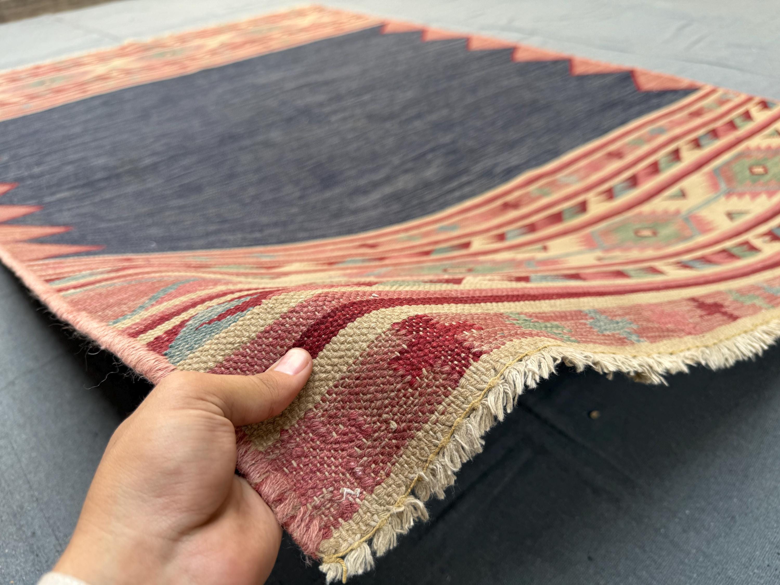 Woven entirely by hand from 100% wool, this flatweave rug is lightweight, reversible, and durable — ideal for both modern and bohemian interiors.