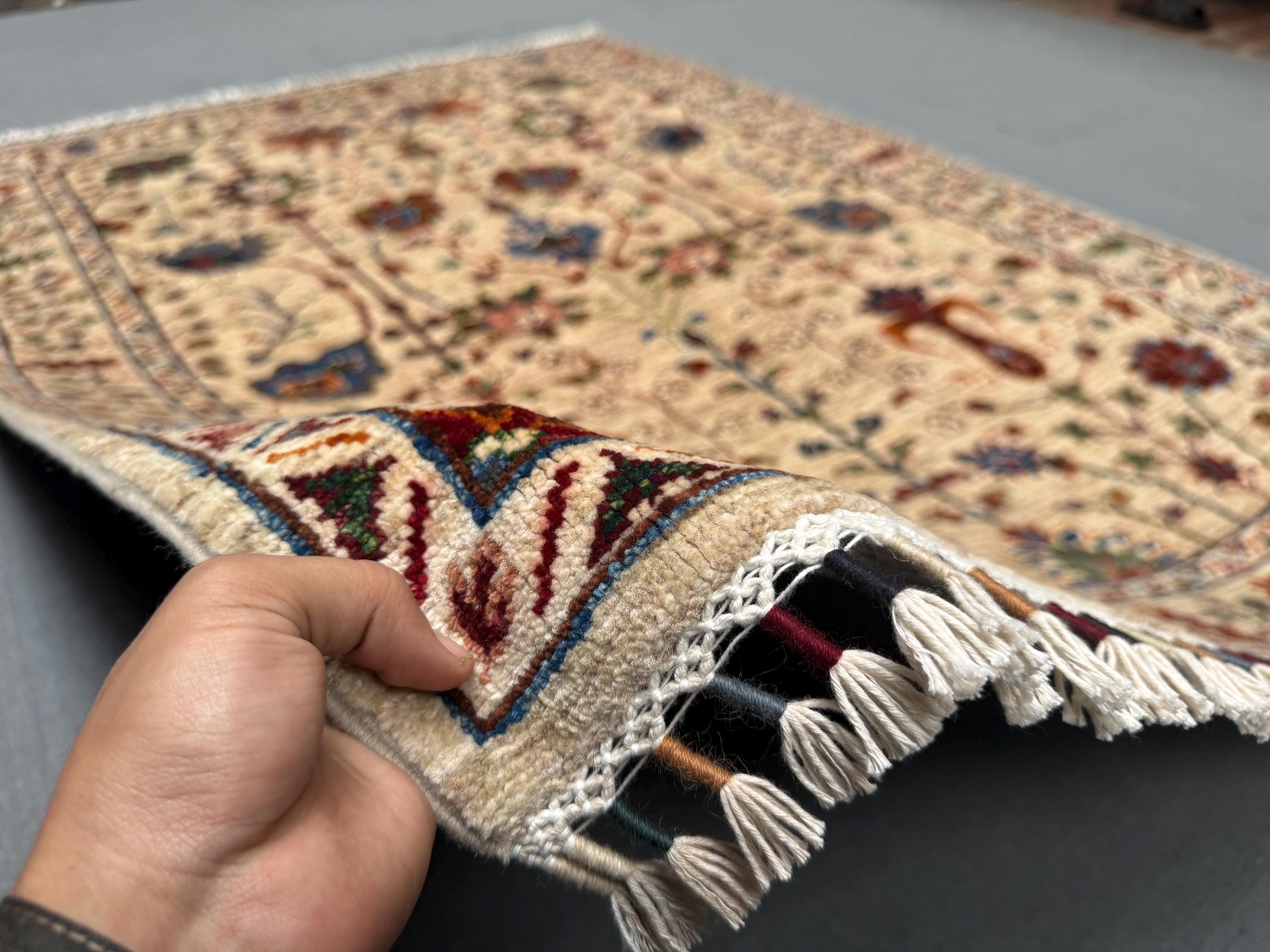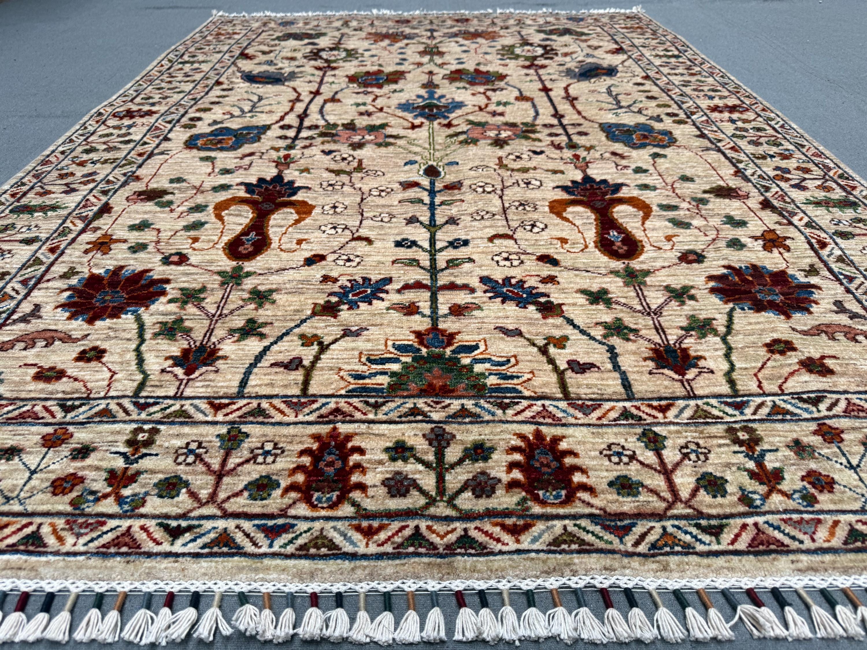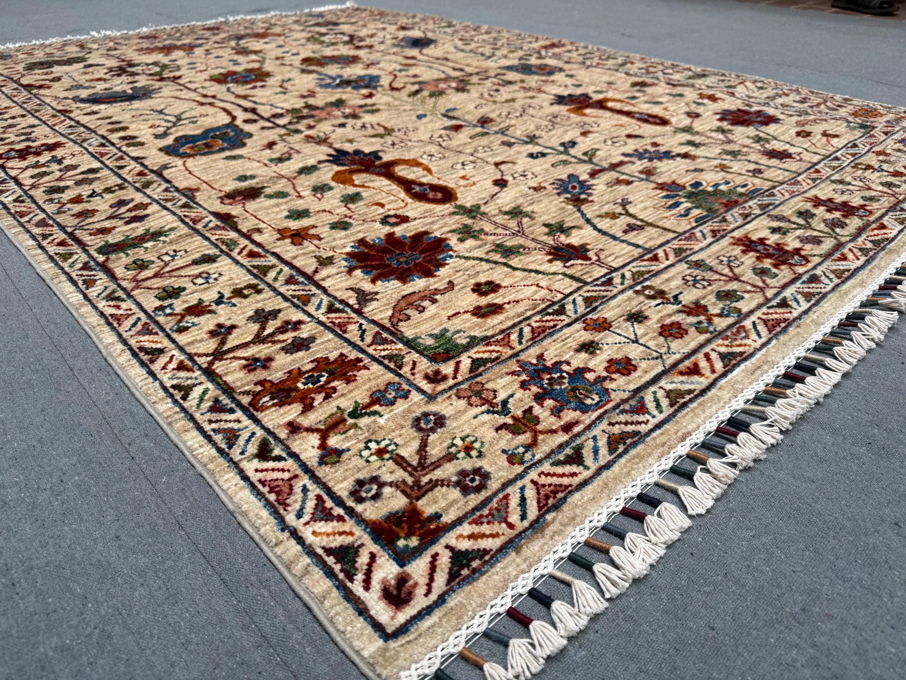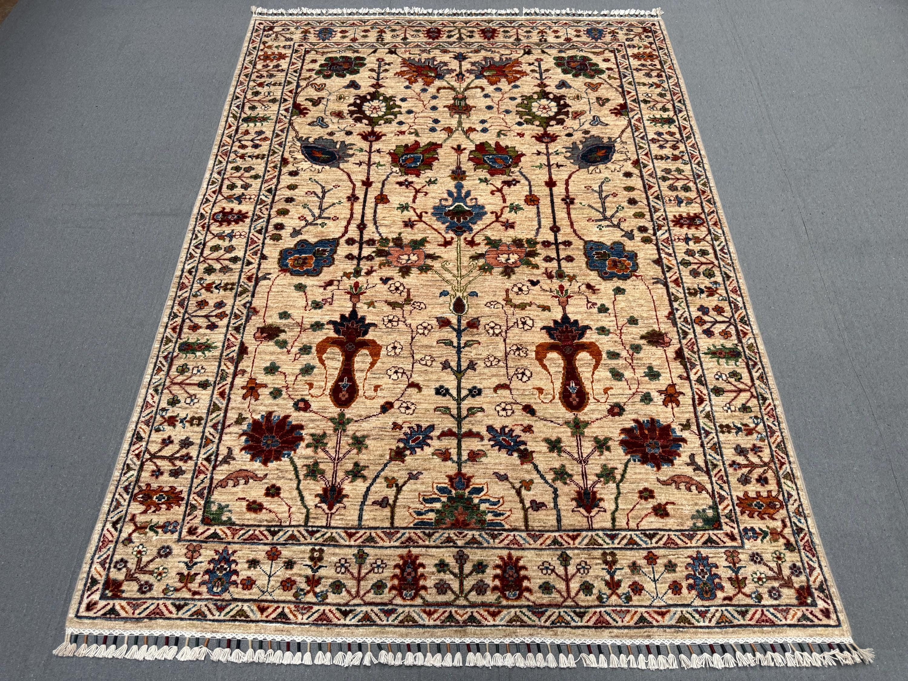 Handmade Sultani Rug 5x7 ft Afghan Cream Wool Area Rug, Floral Oriental Carpet, Boho Living Room Decor, Traditional Handmade Rug