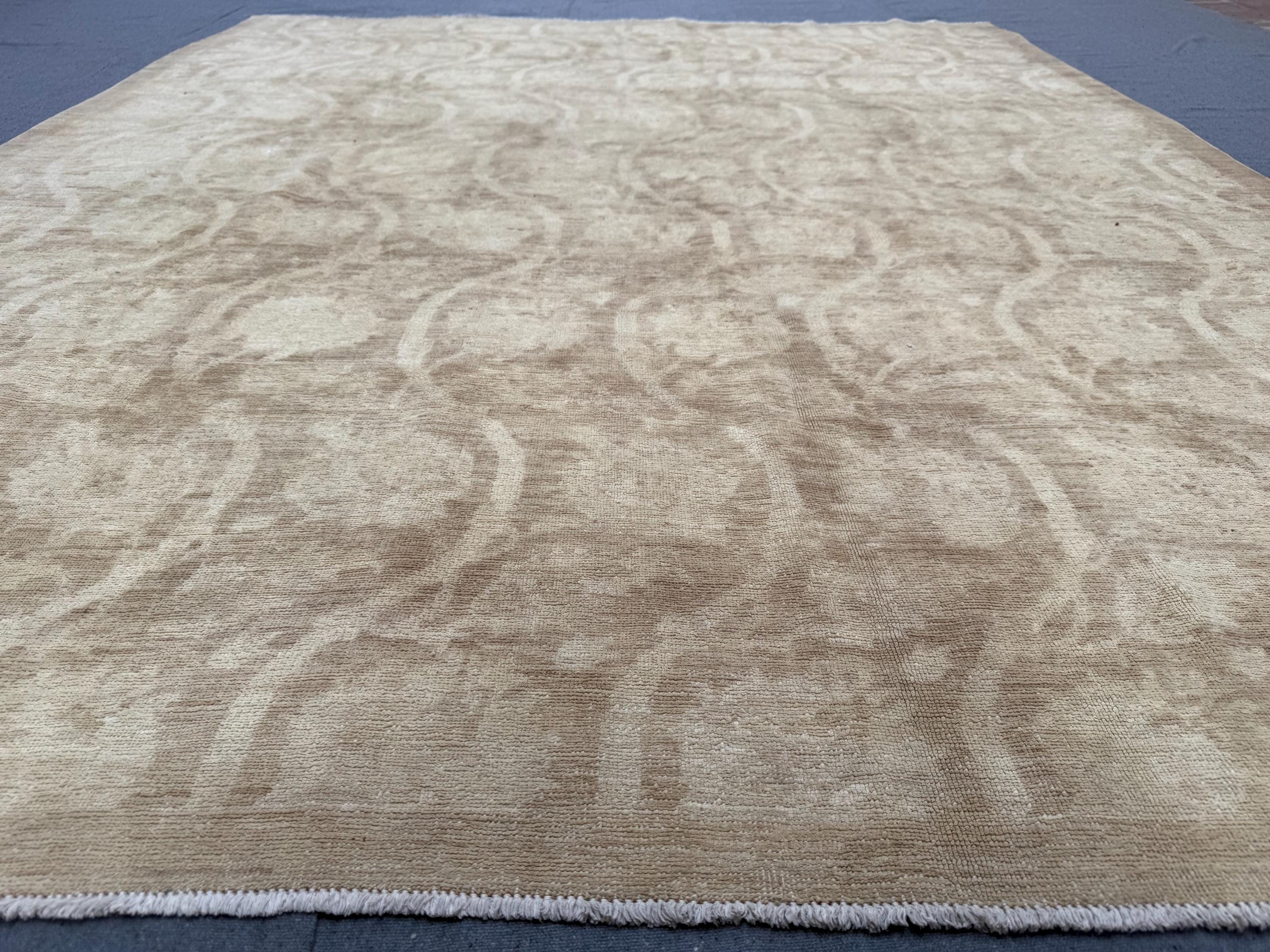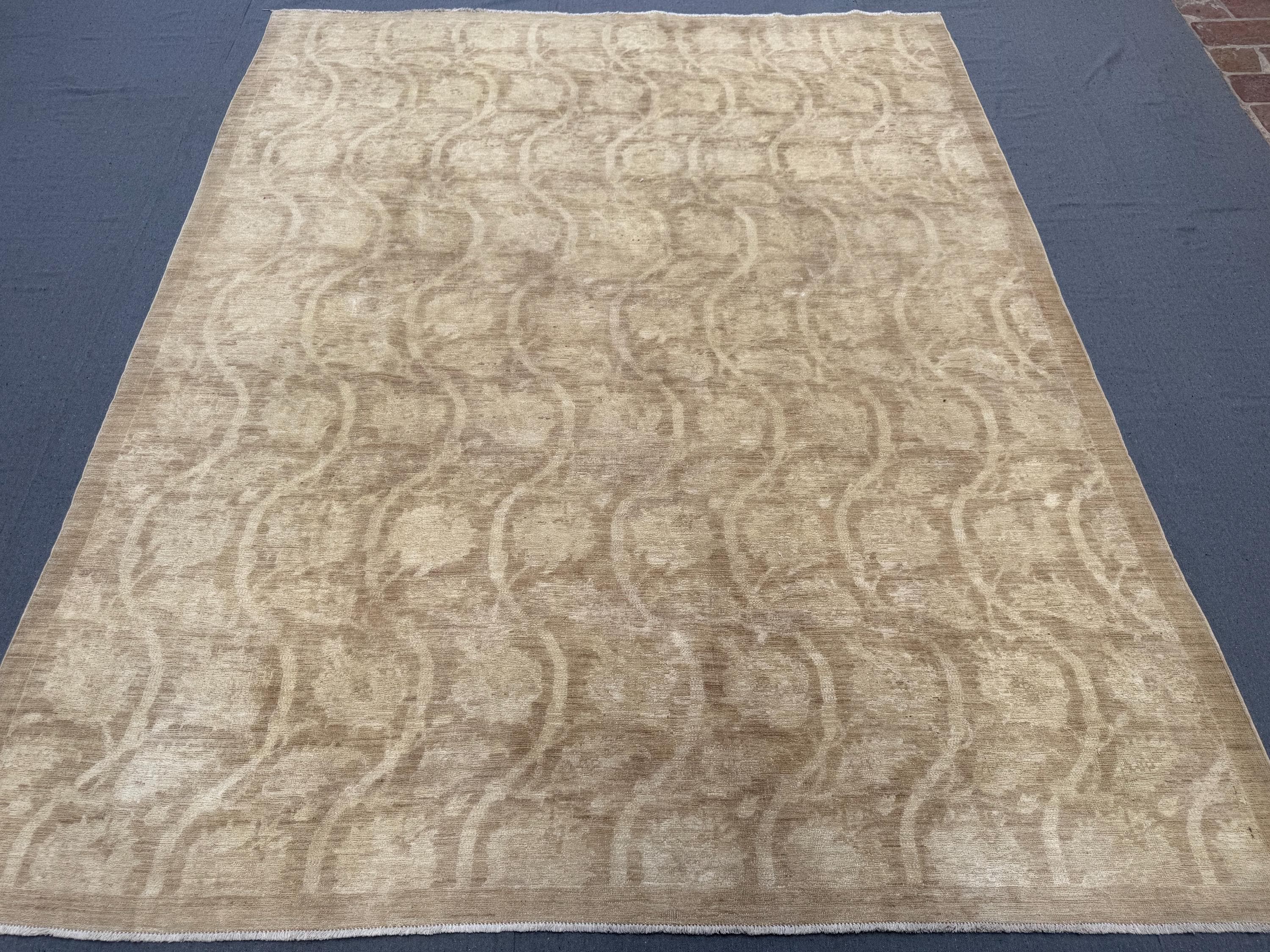 Bring calm elegance and understated luxury into your space with this handmade Ziegler Chobi wool rug. Featuring a warm beige and sand-toned palette, this rug showcases a subtle textured wave pattern that adds depth and movement without overwhelming the room.