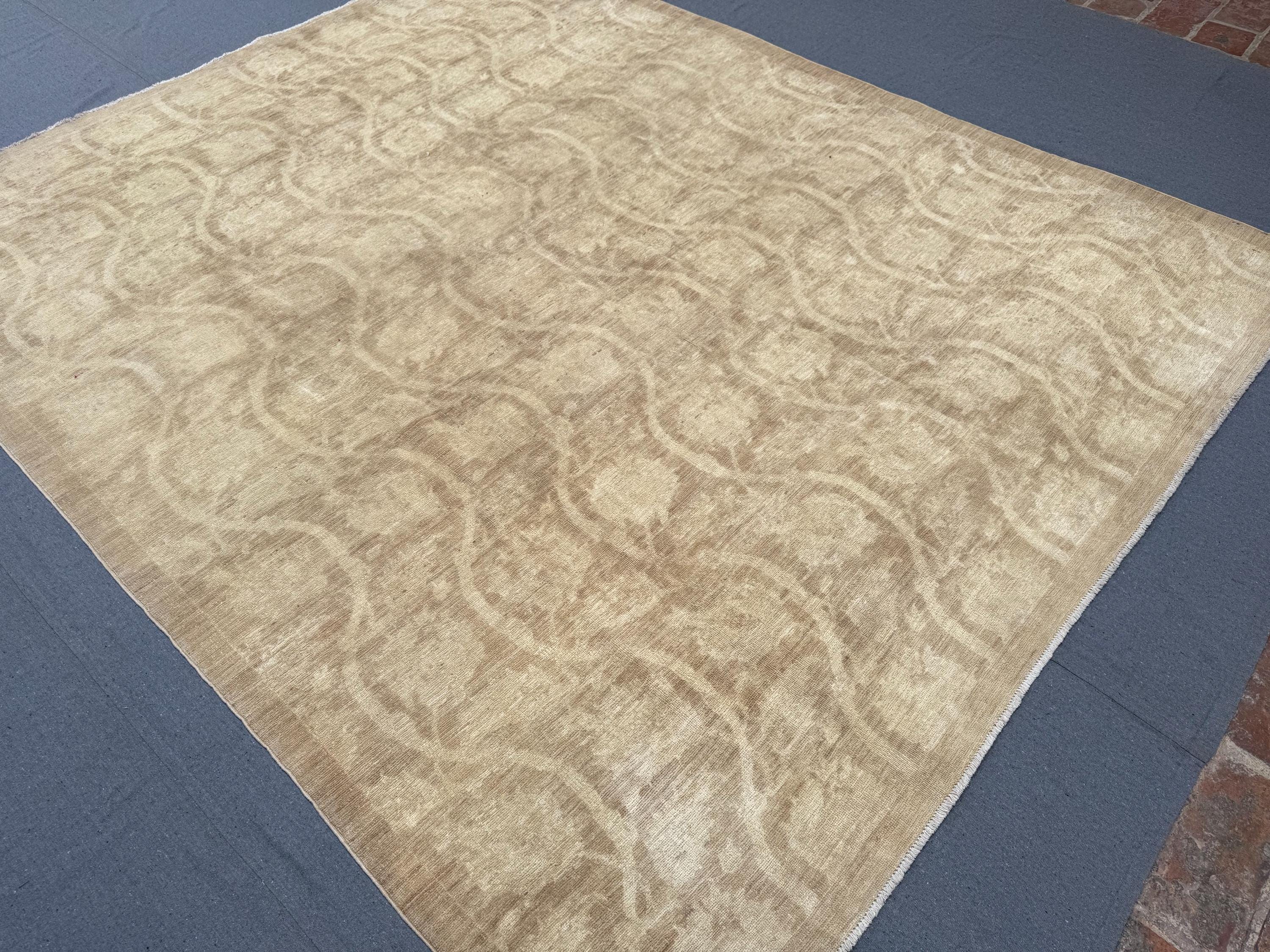 Handmade Ziegler Chobi Wool Rug 6x8 ft Beige Neutral Modern Area Rug Minimalist Textured Design Living Room Carpet