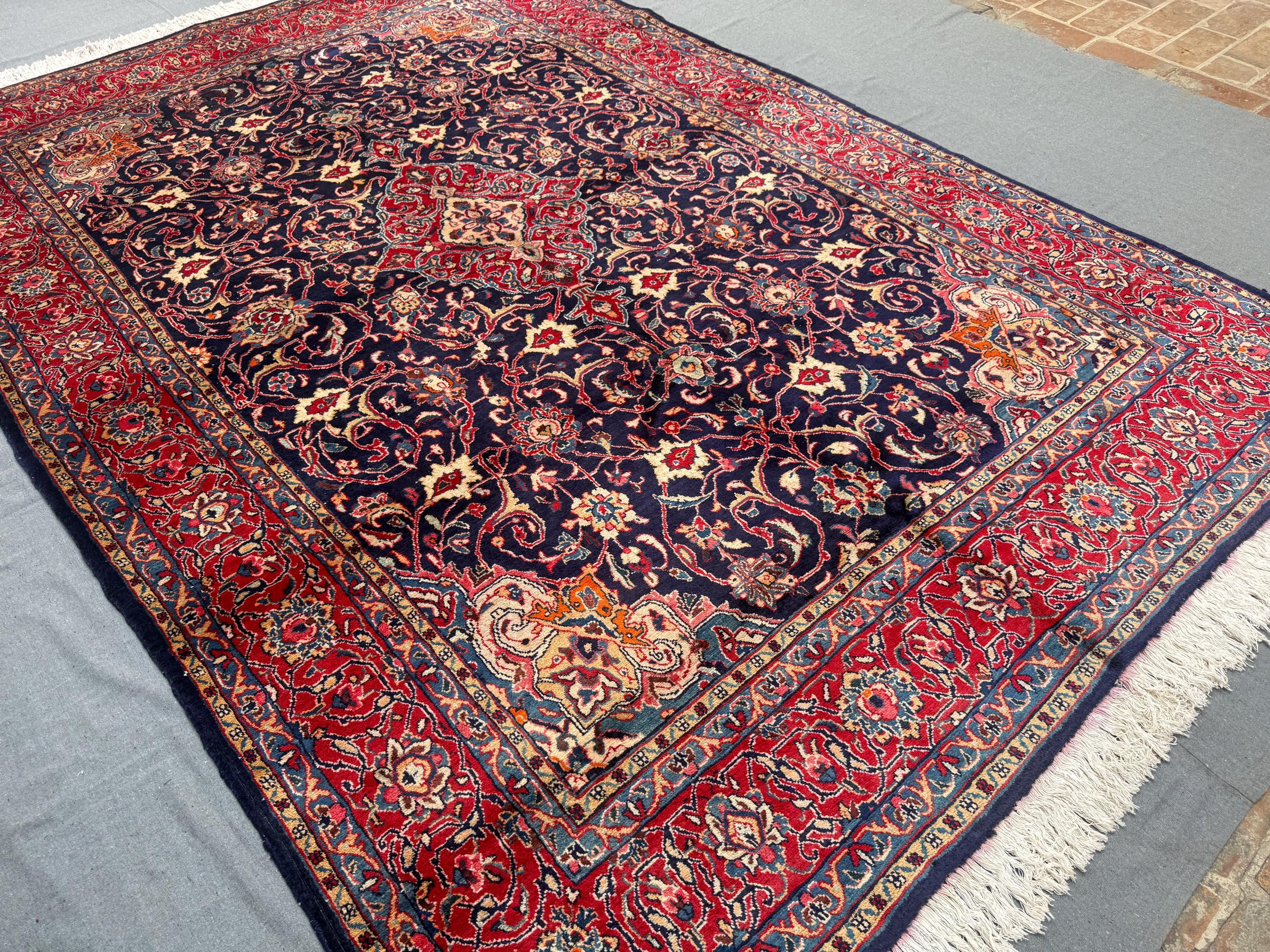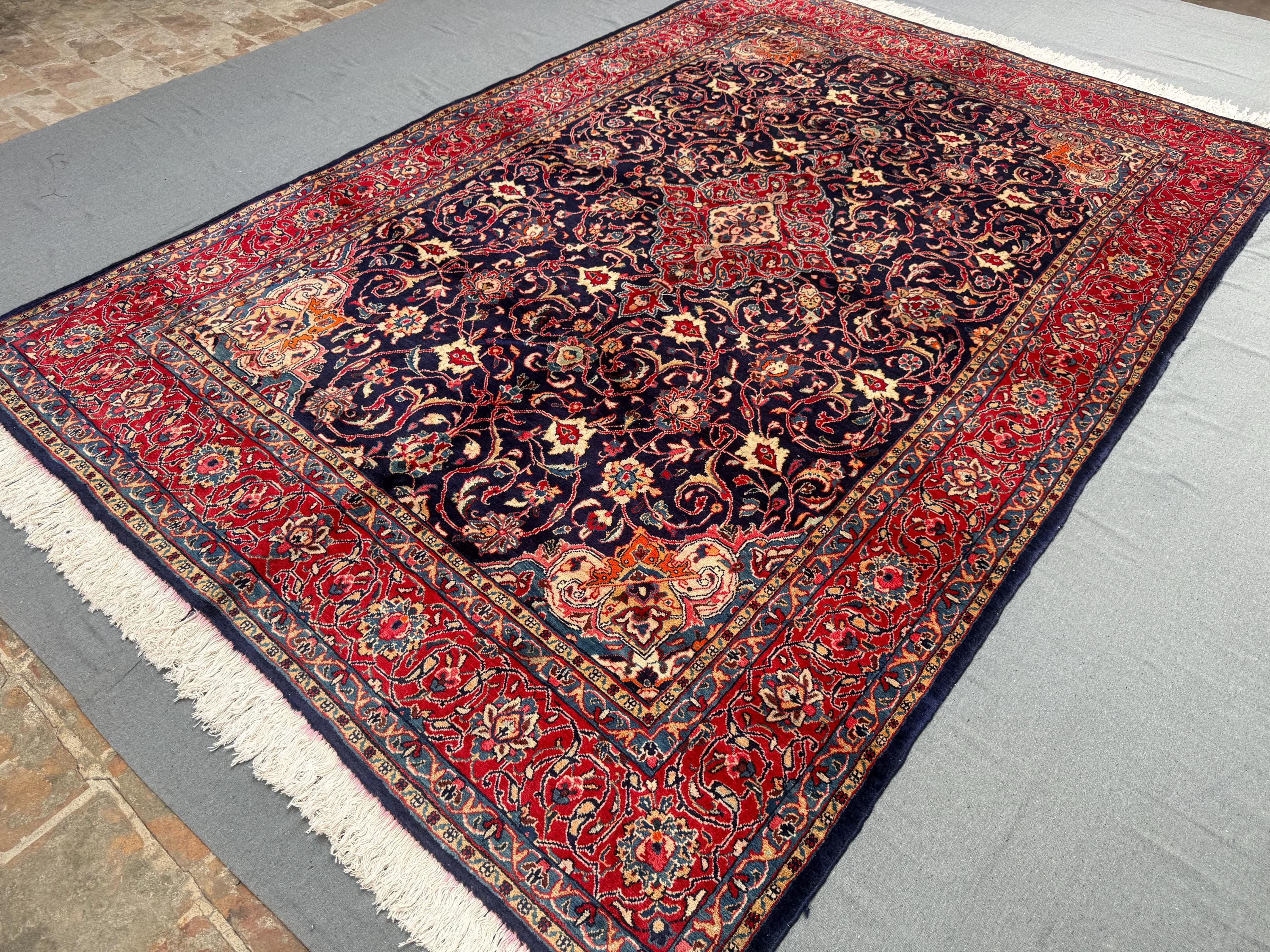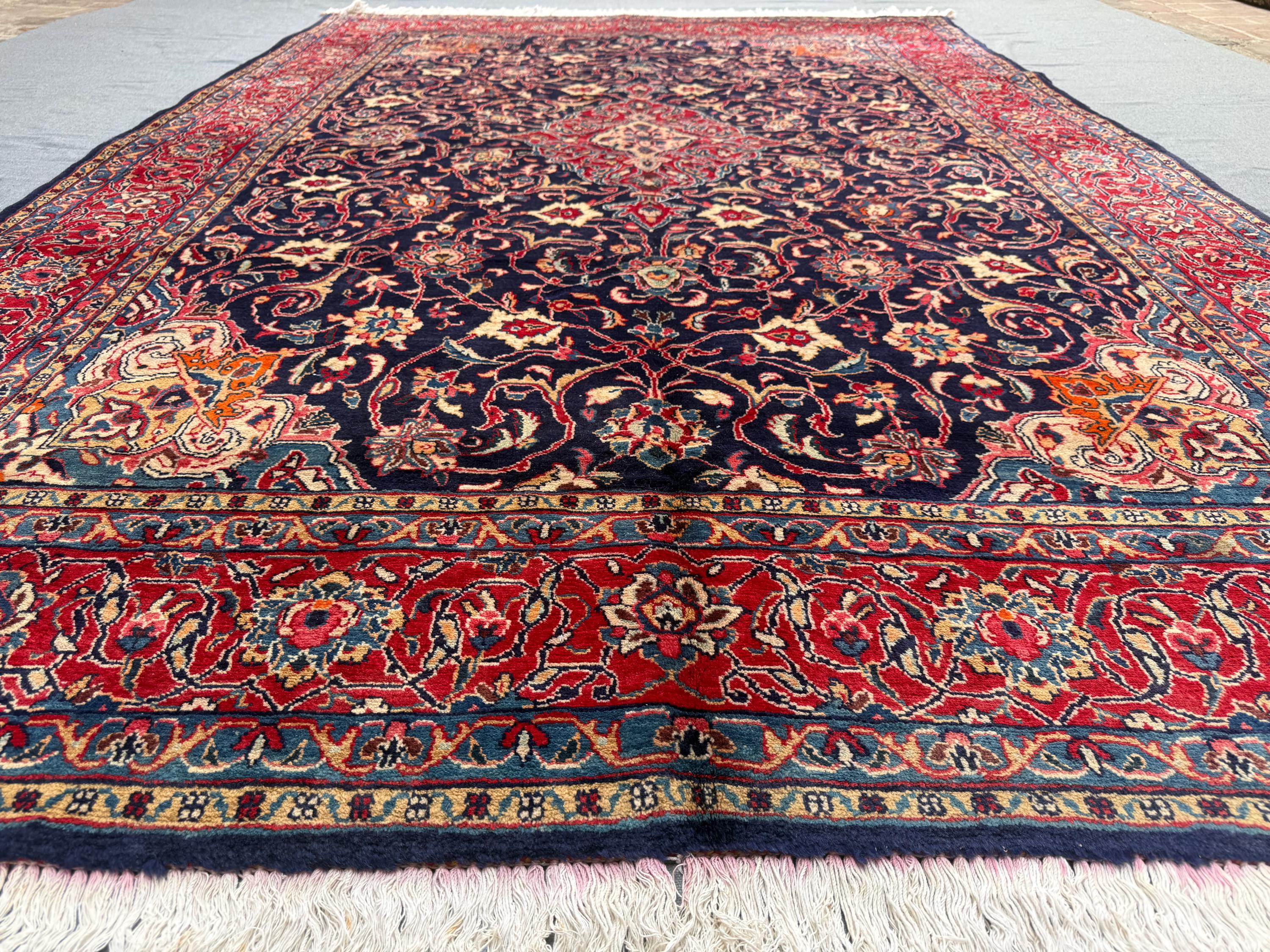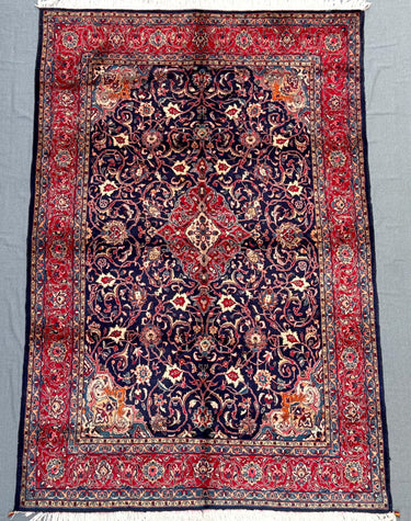 Heriz Rug 7x10 ft Handmade Wool Tribal Medallion Carpet, Navy & Red Floral Area Rug, Afghan Oriental Home Décor for Living Room