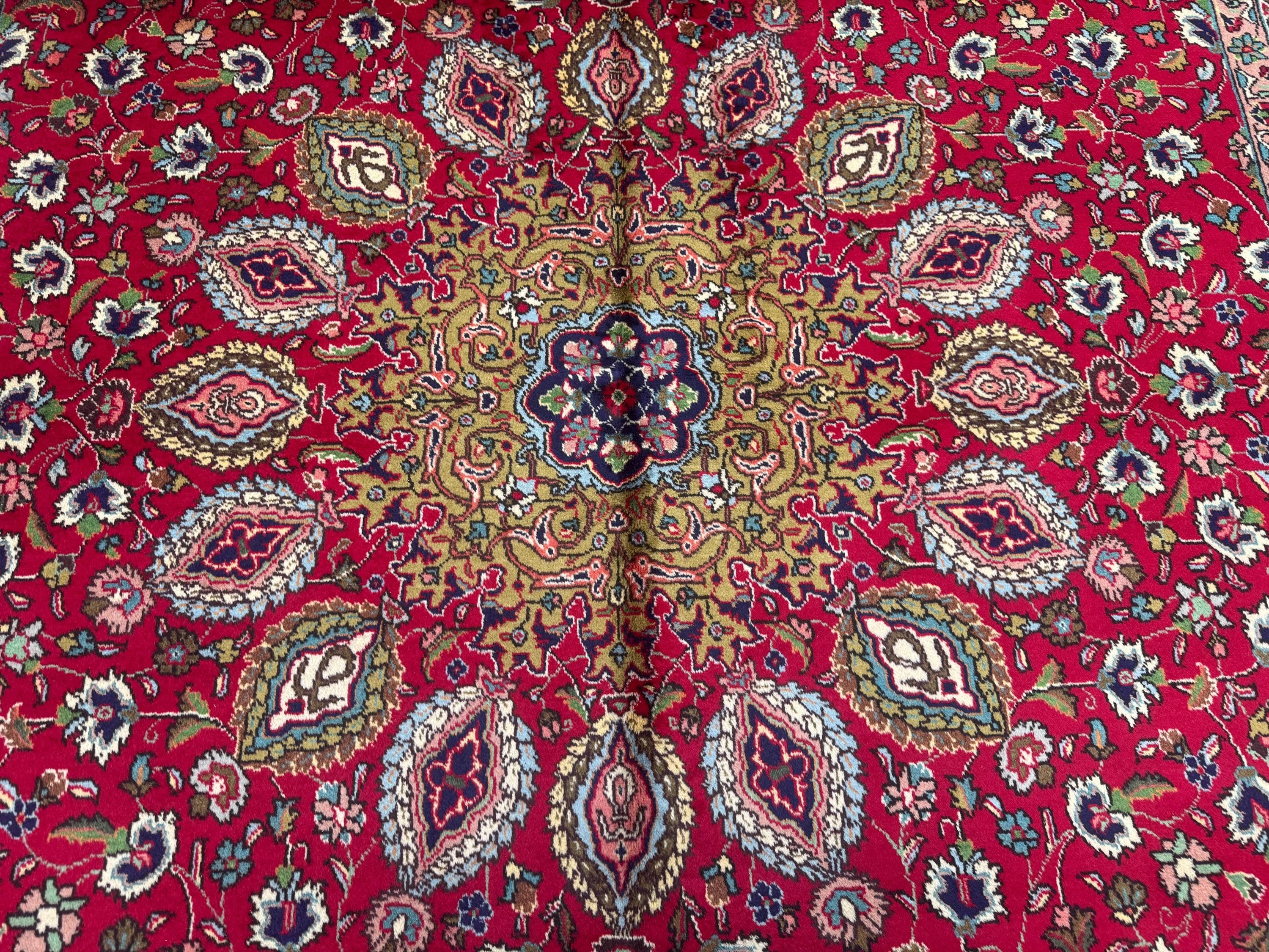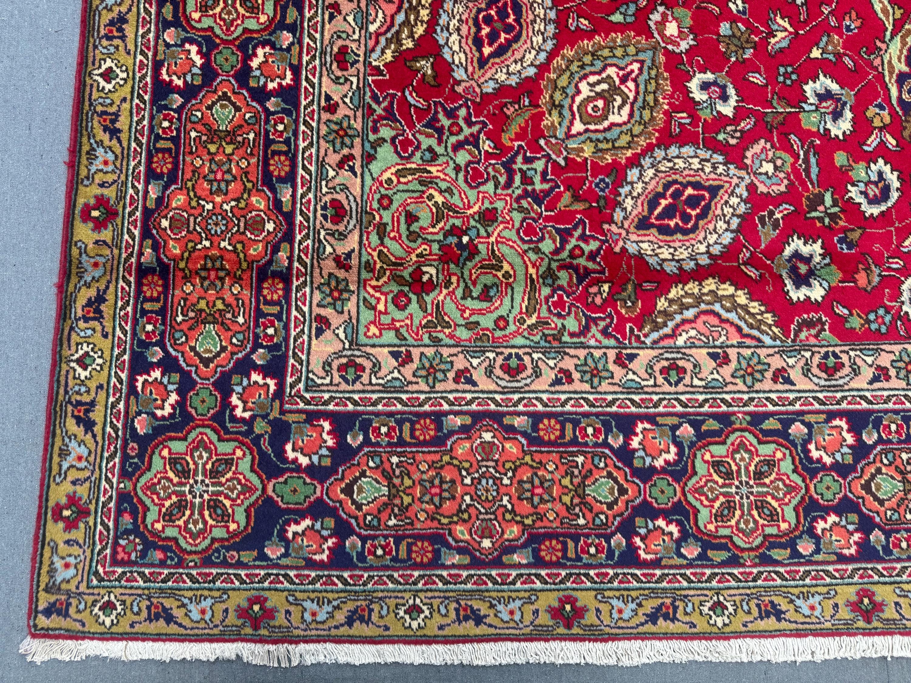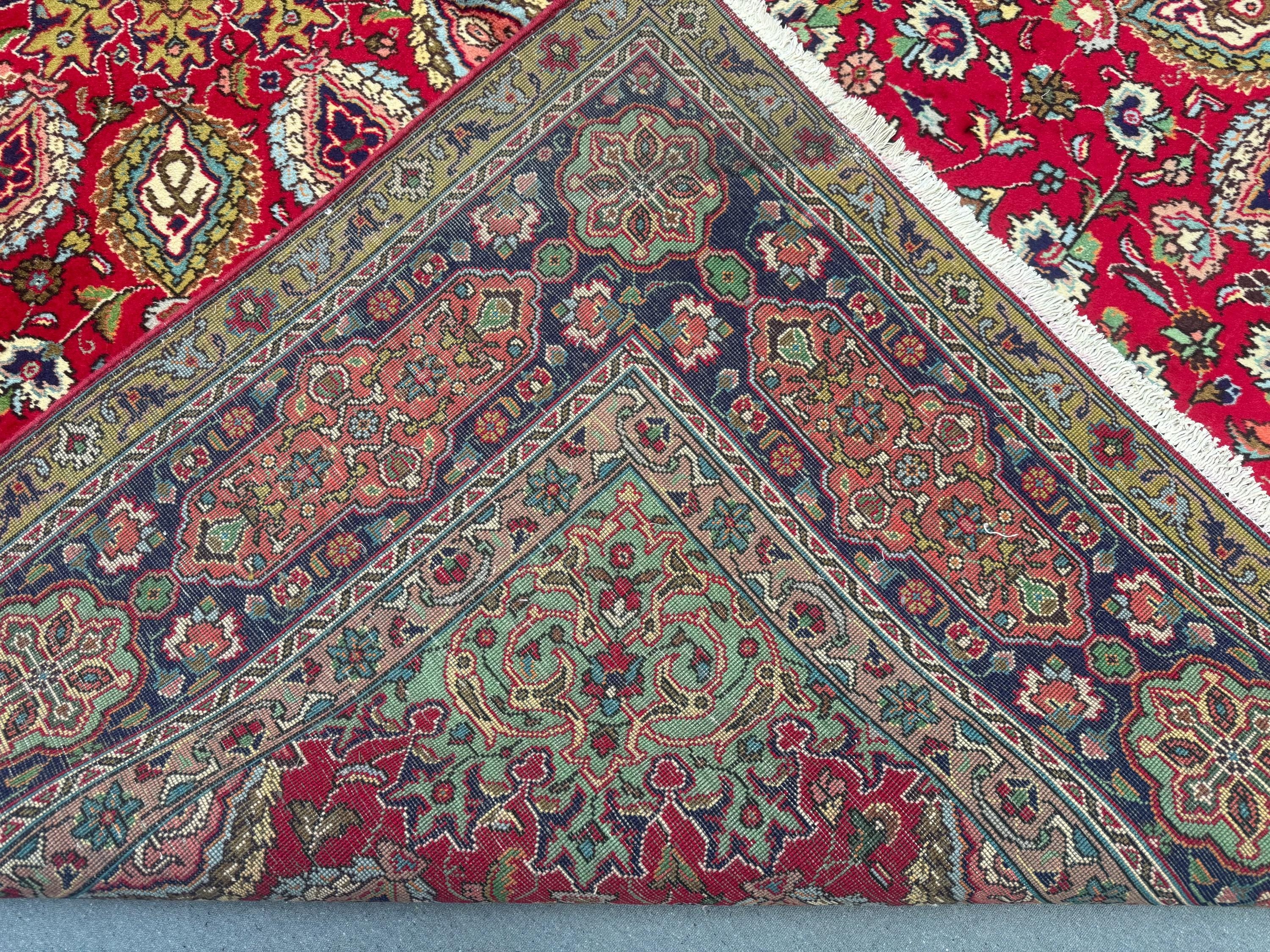 Add bold beauty and traditional craftsmanship to your home with this Handmade Heriz Wool Rug, featuring a radiant red field with an intricate multi-layer medallion and ornate botanical motifs. Highlights of gold, cream, navy, green, and rust create a stunning contrast, while the detailed border frames the entire composition with elegance and depth.