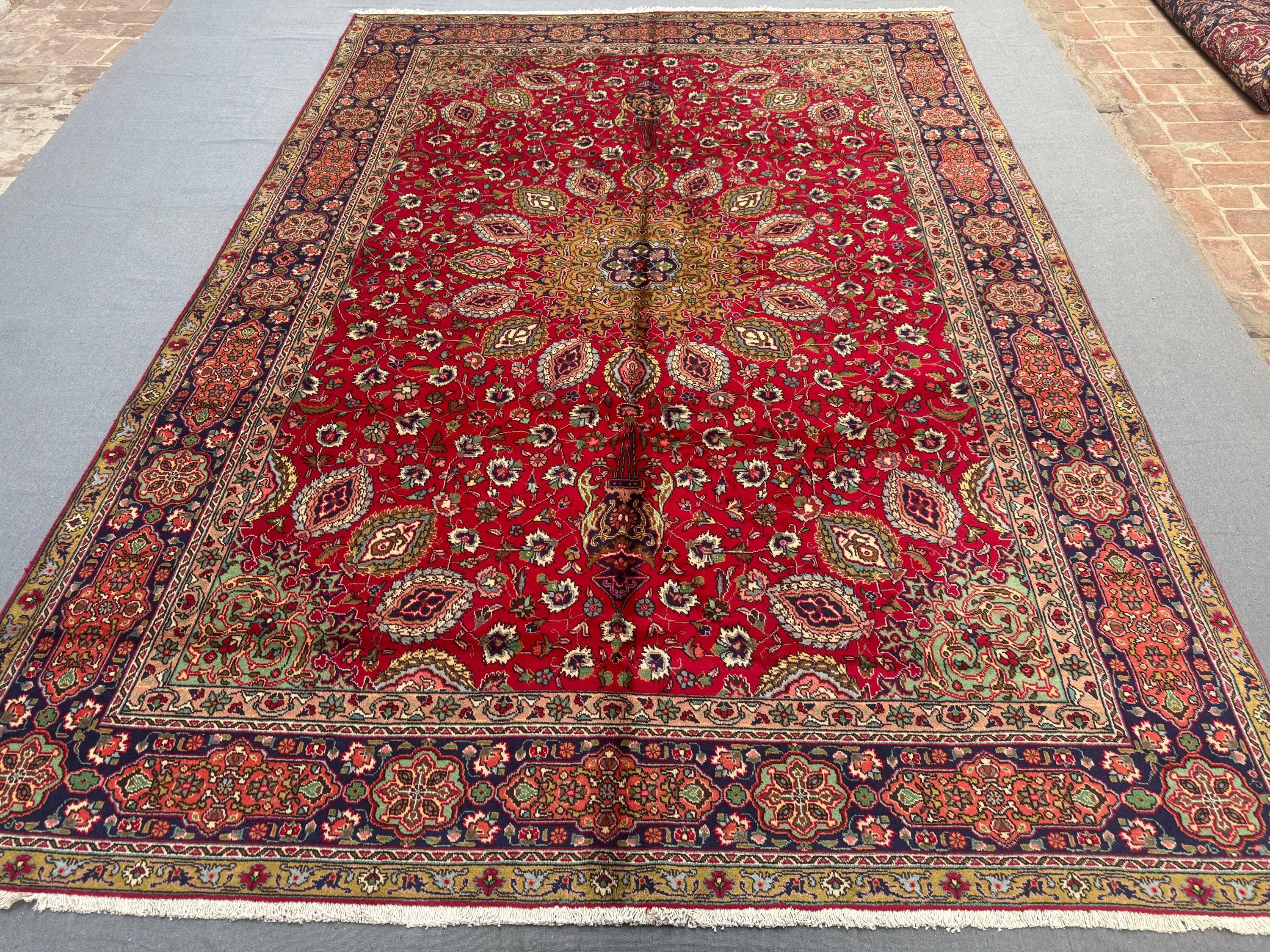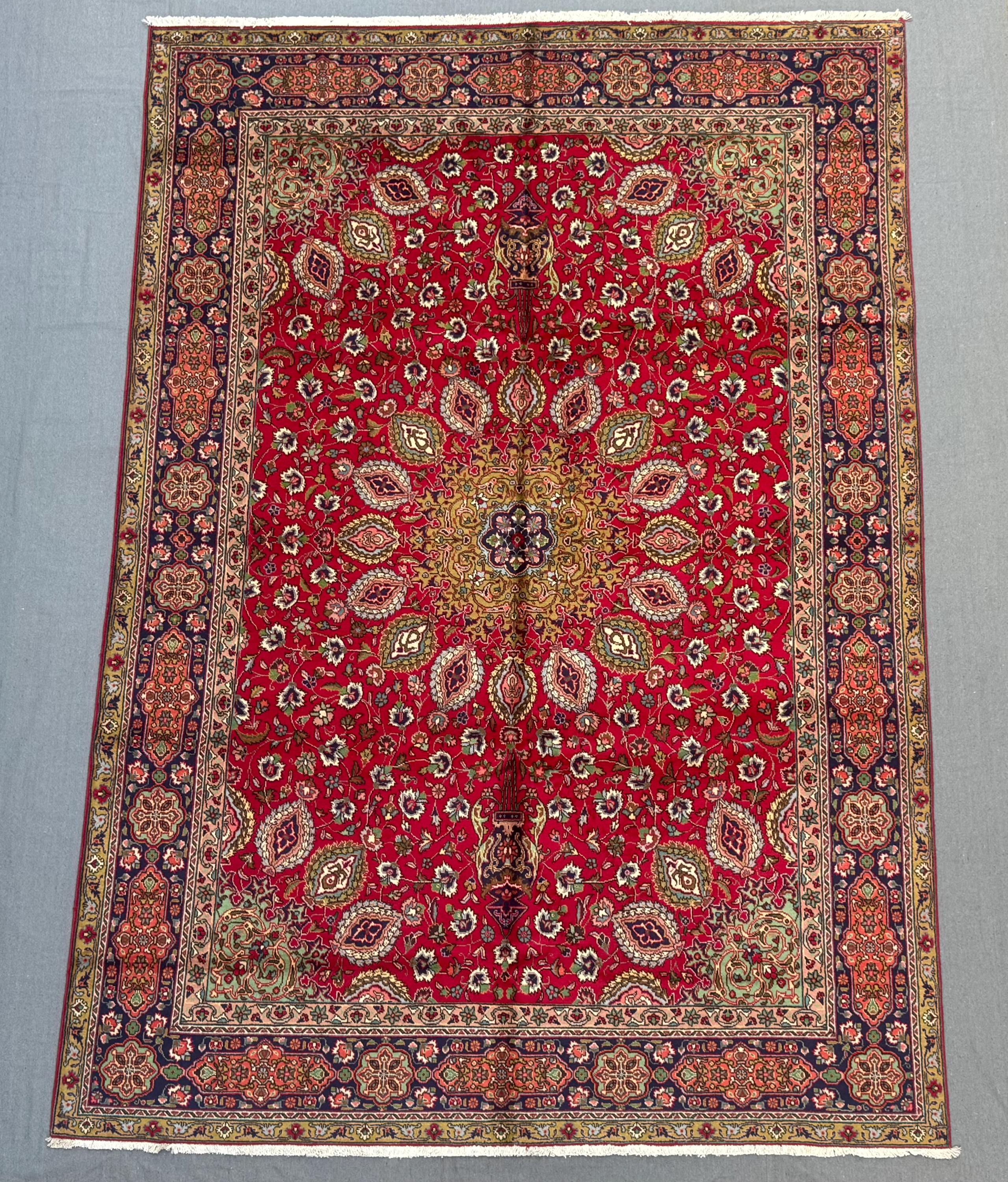 Heriz Rug 8x12 ft Handmade Wool Tribal Medallion Carpet, Red & Navy Floral Area Rug, Large Afghan Oriental Home Décor for Living Room