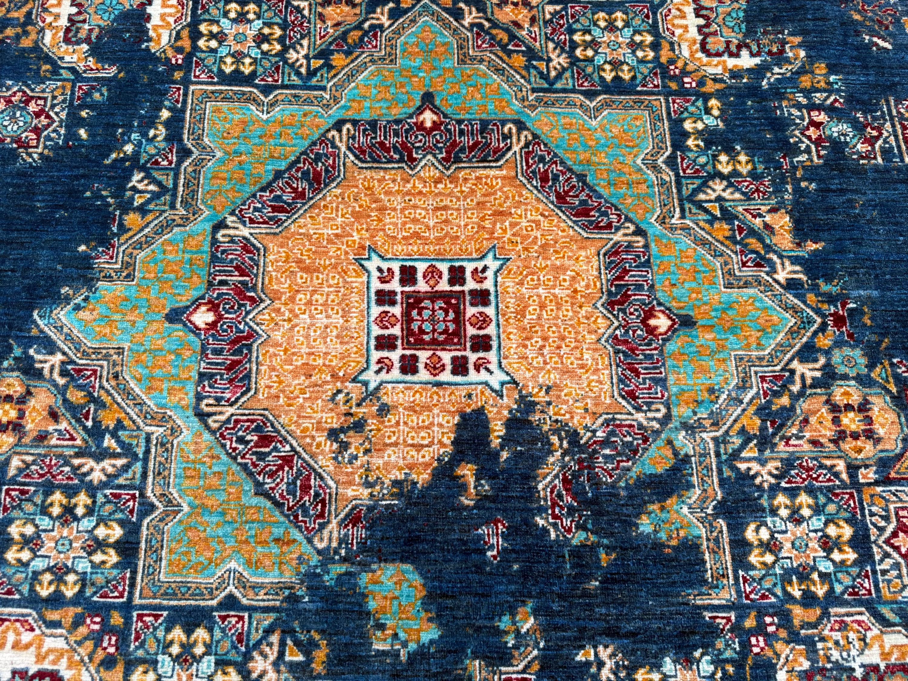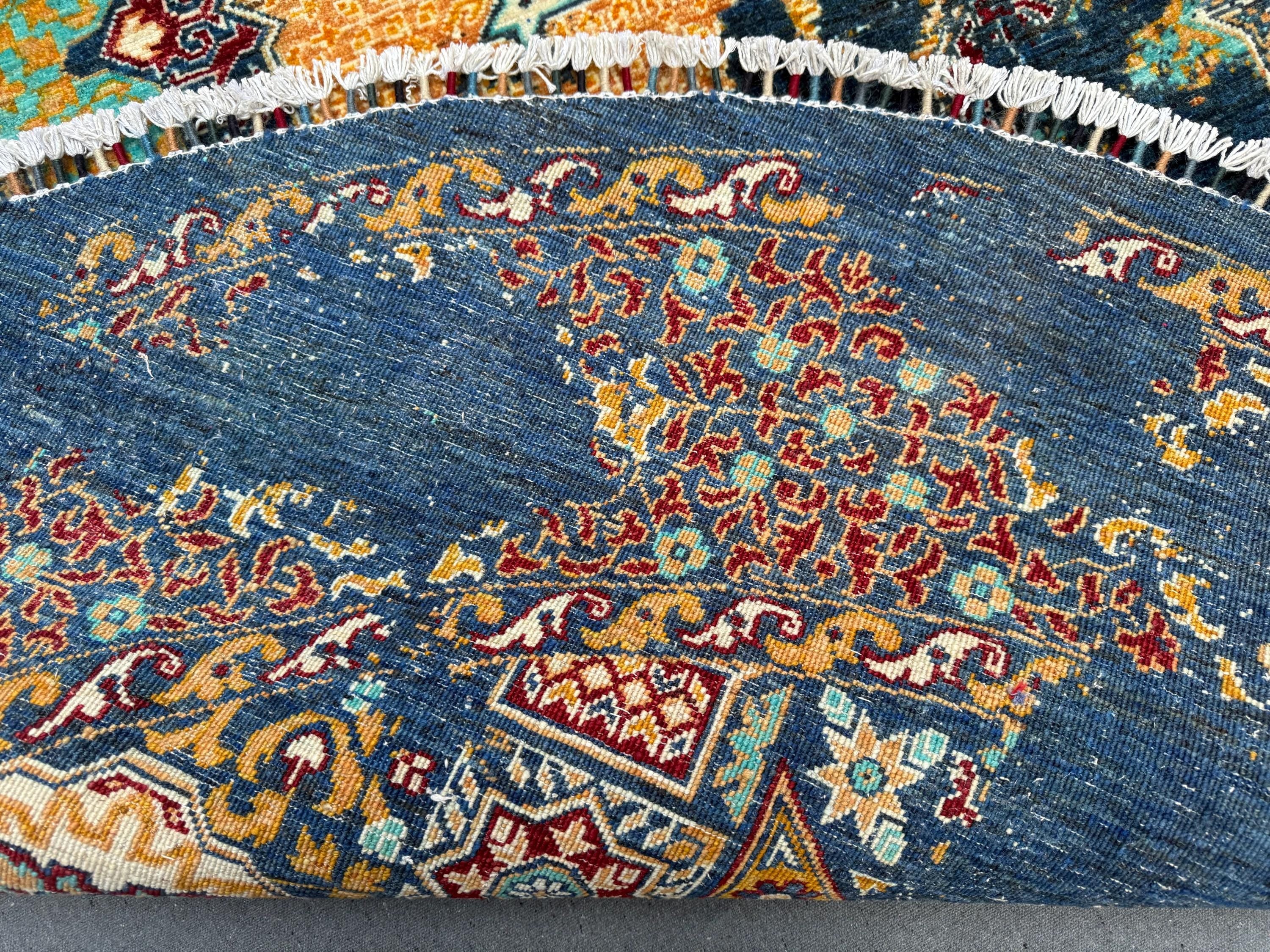 With its 7.3 × 7.3 ft size, this round rug fits beautifully in medium to large spaces, adding symmetry, color, and artistic structure to your décor. Whether your home leans modern, eclectic, transitional, or classic, this Mamluk design brings warmth and sophistication.
