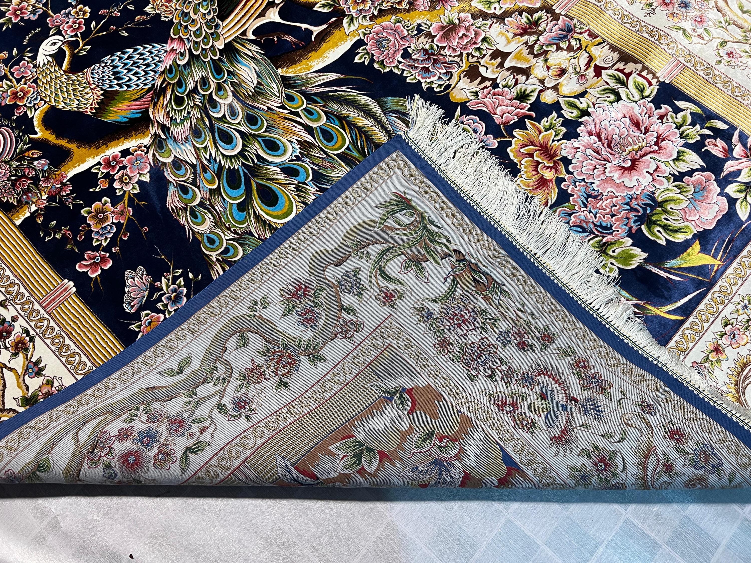 If you love statement pieces that blend art, luxury, and fine craftsmanship, this silk peacock rug is a true showstopper. Its size makes it perfect as a centerpiece under a coffee table or as a decorative floor or wall display.