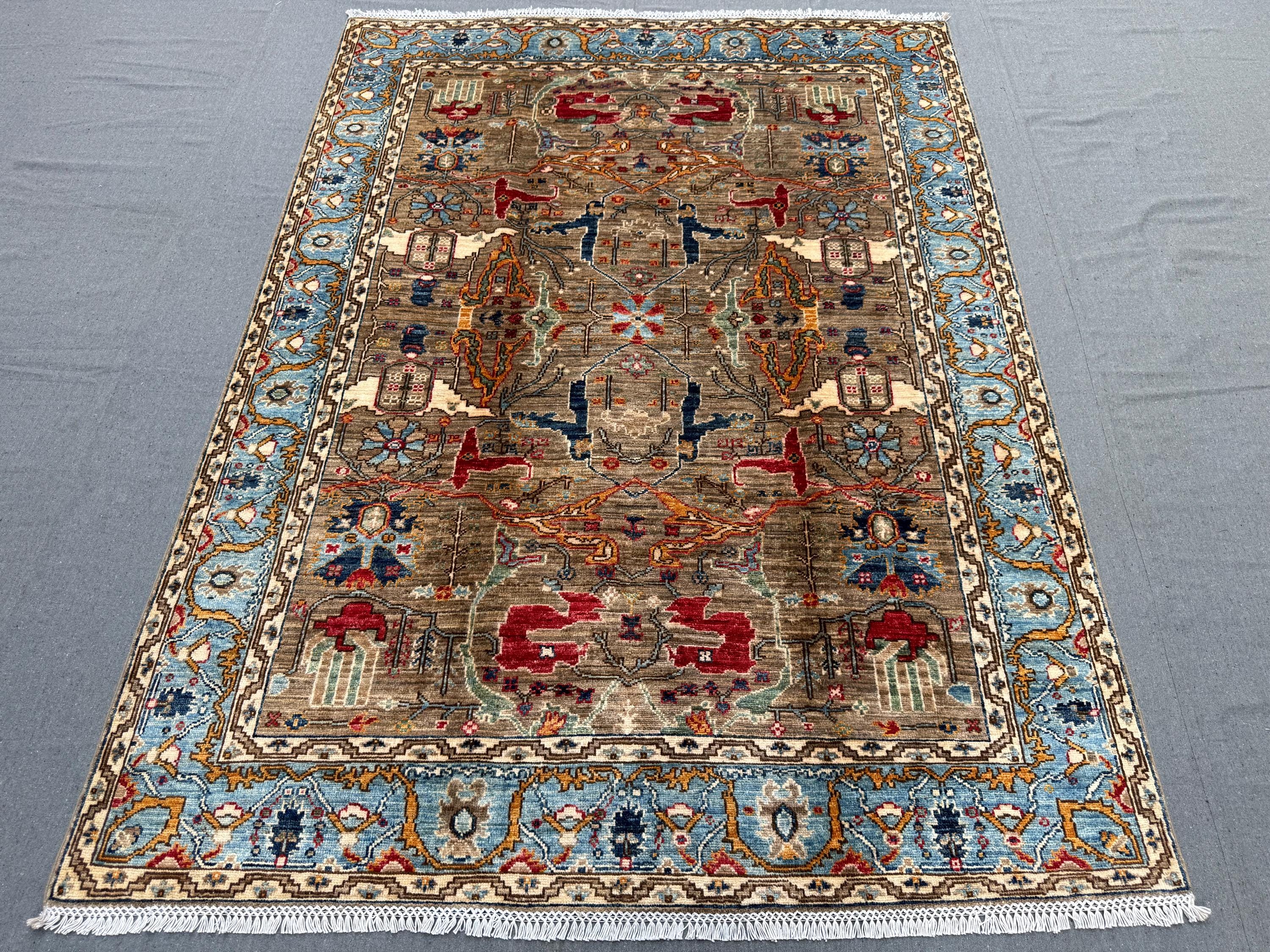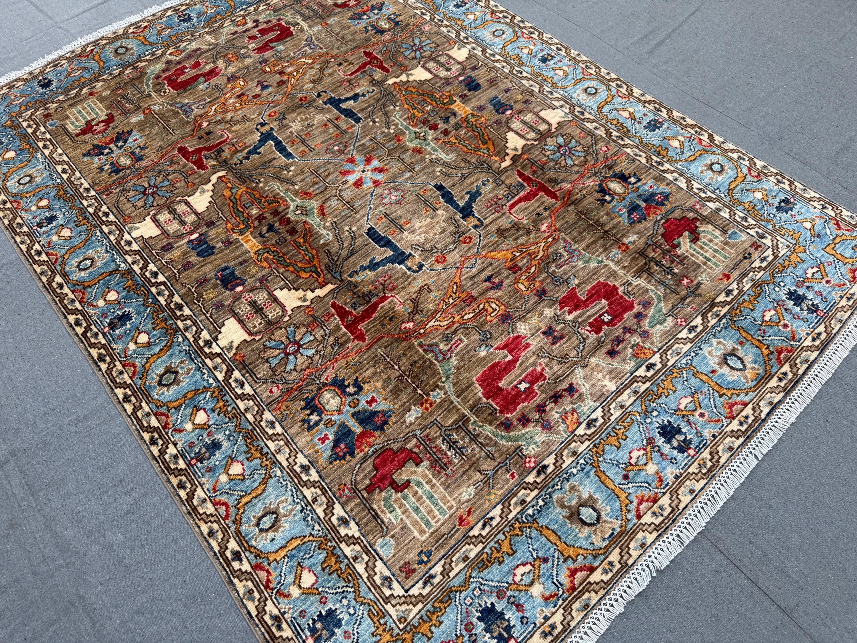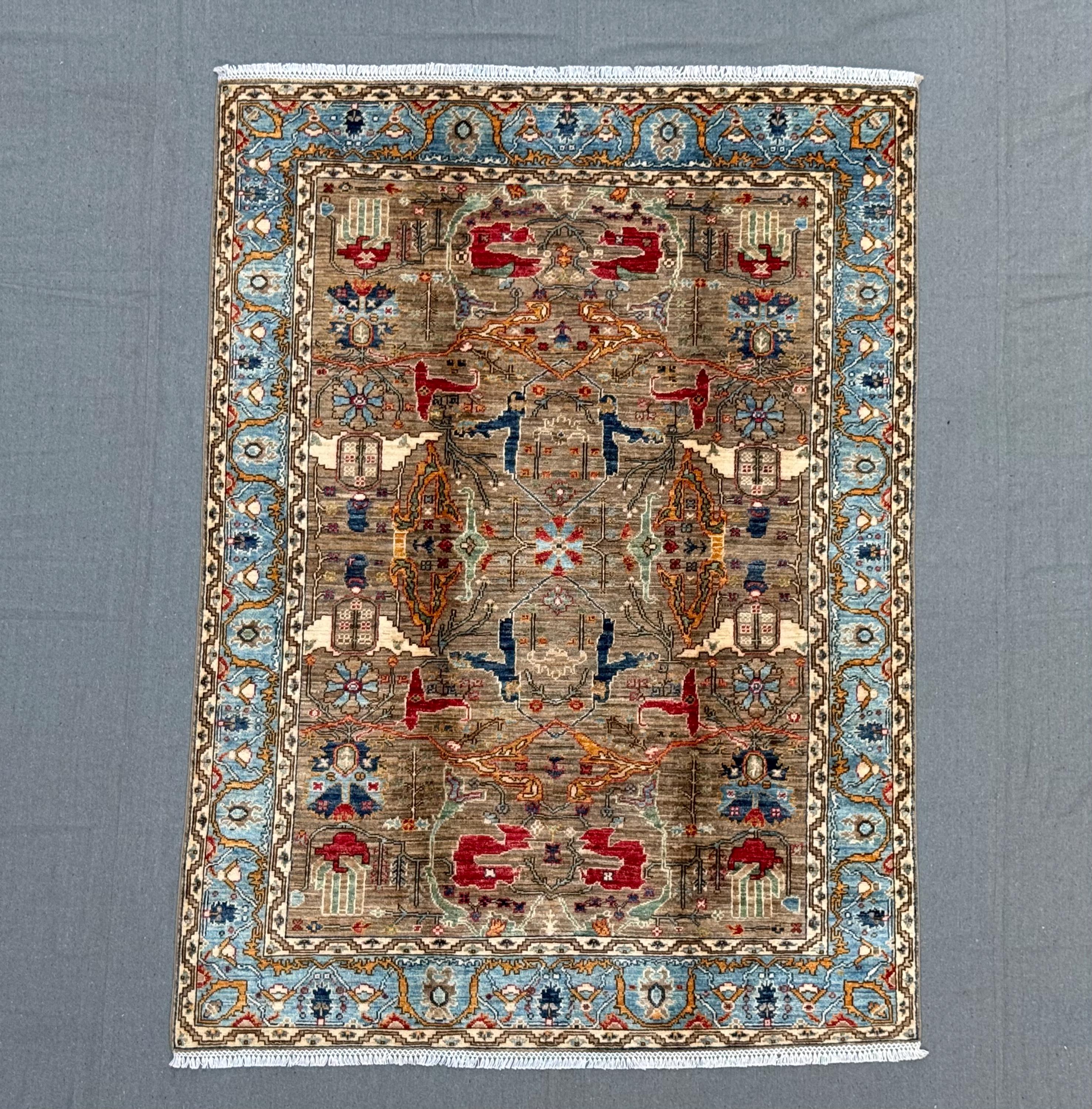 Handmade Afghan Oriental Rug 4x7 ft Brown & Blue Wool Area Carpet | Tribal Medallion Vintage Style | Traditional Living Room Home Decor