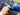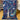 Colors: Rich navy blue background with accents of turquoise, beige, red, and green