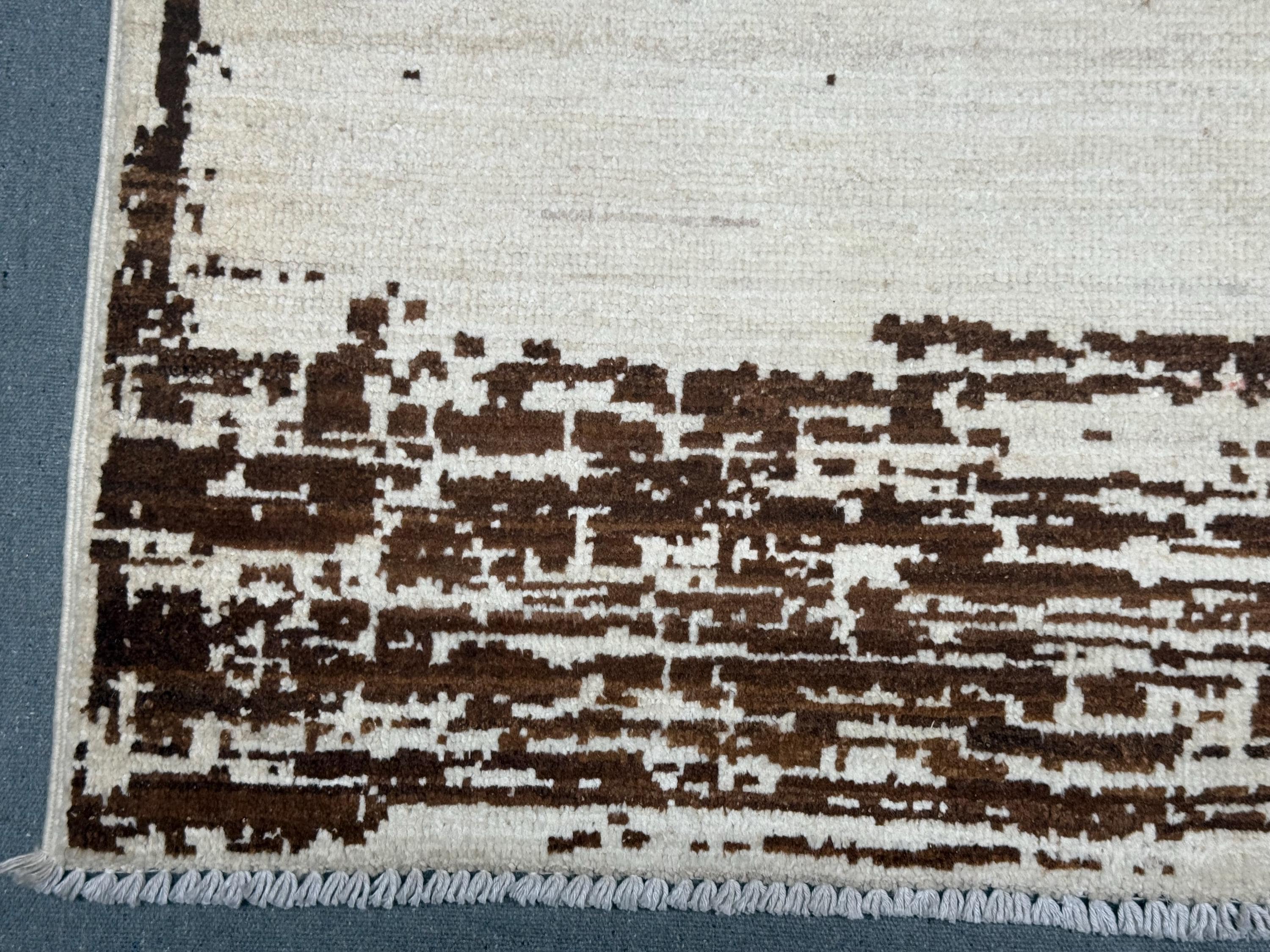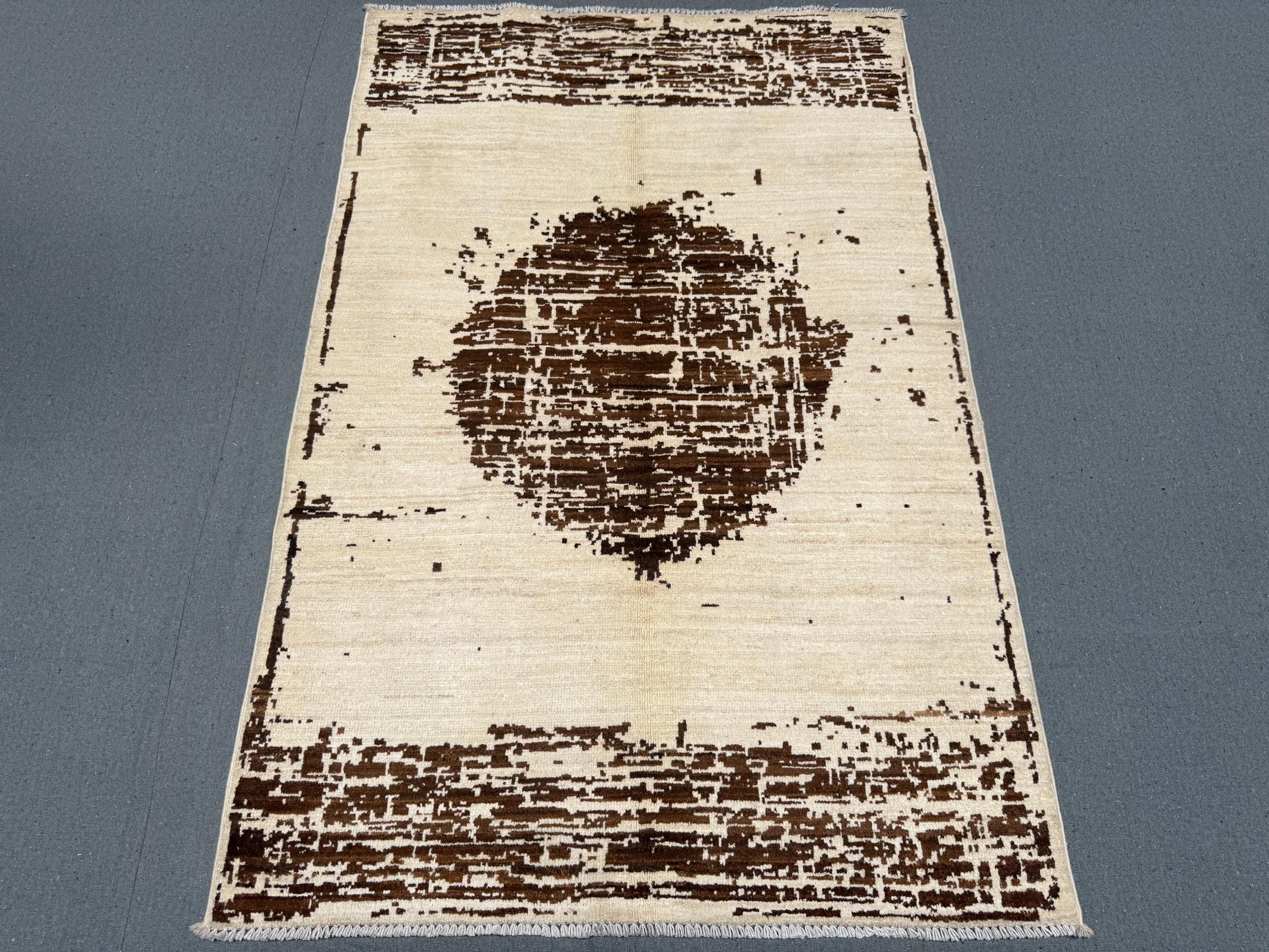 Handmade Gabbeh Rug 3x4 ft Modern Abstract Wool Carpet Beige & Brown Minimalist Area Rug Contemporary Hand-Knotted Decor for Home