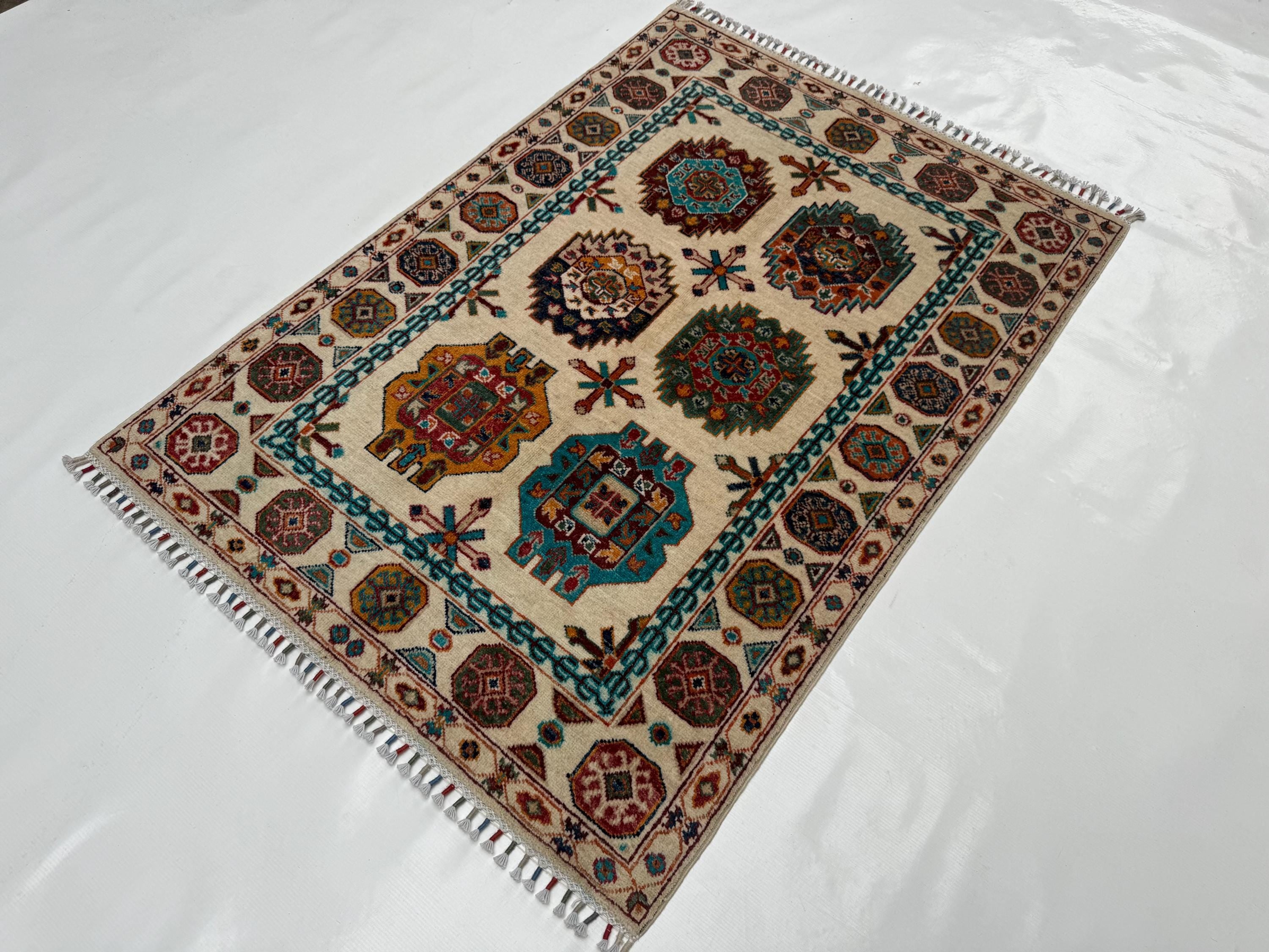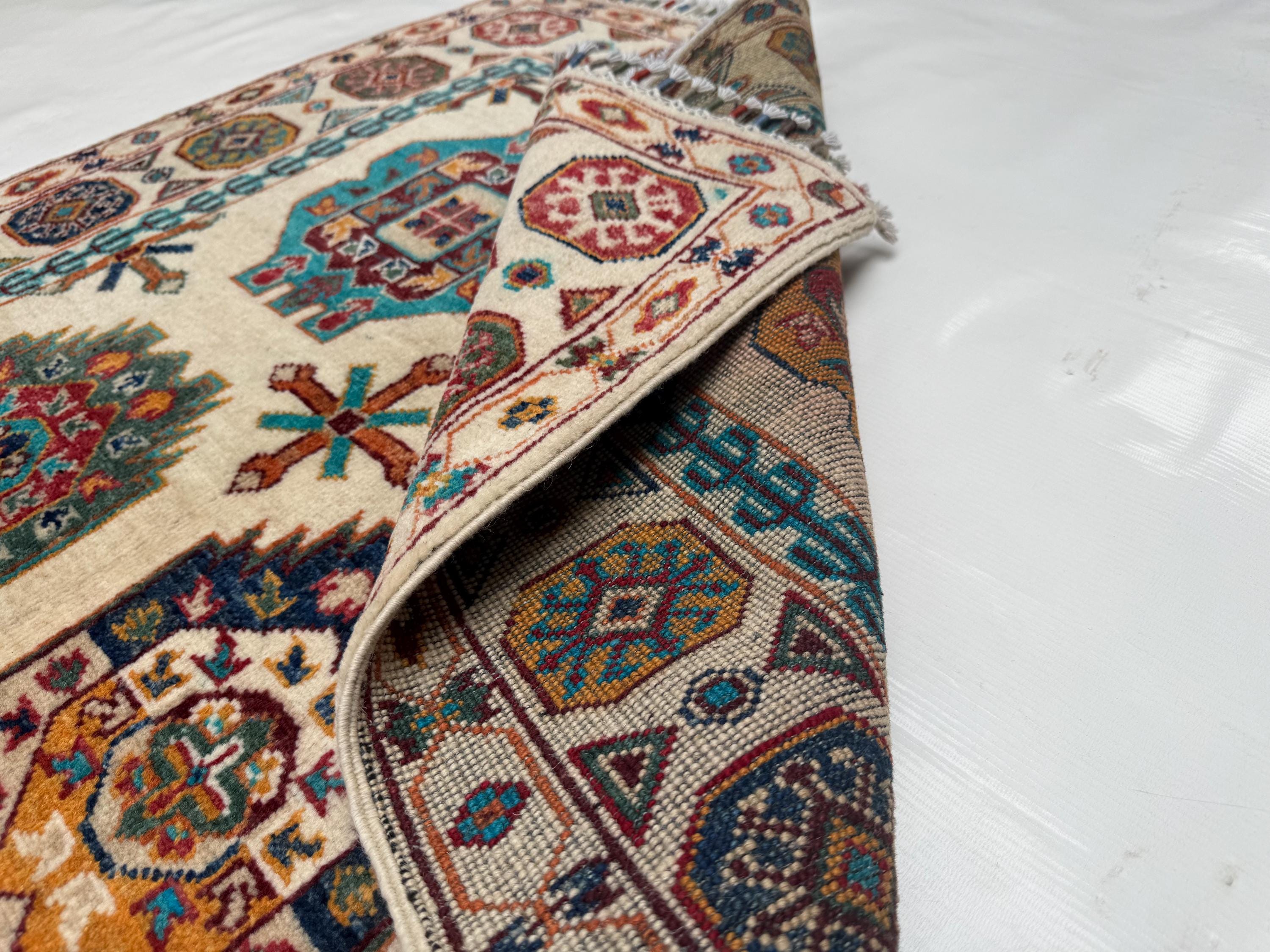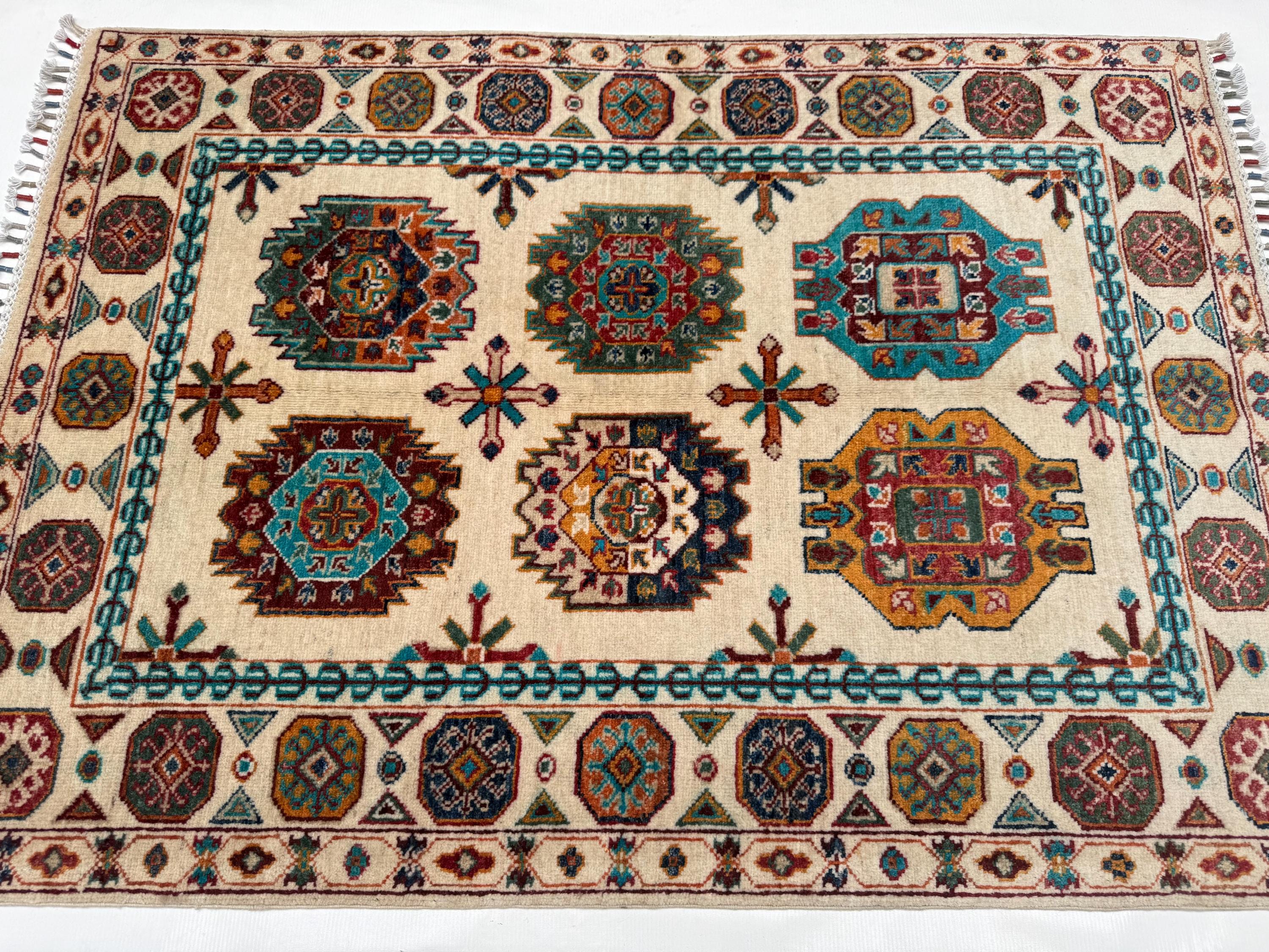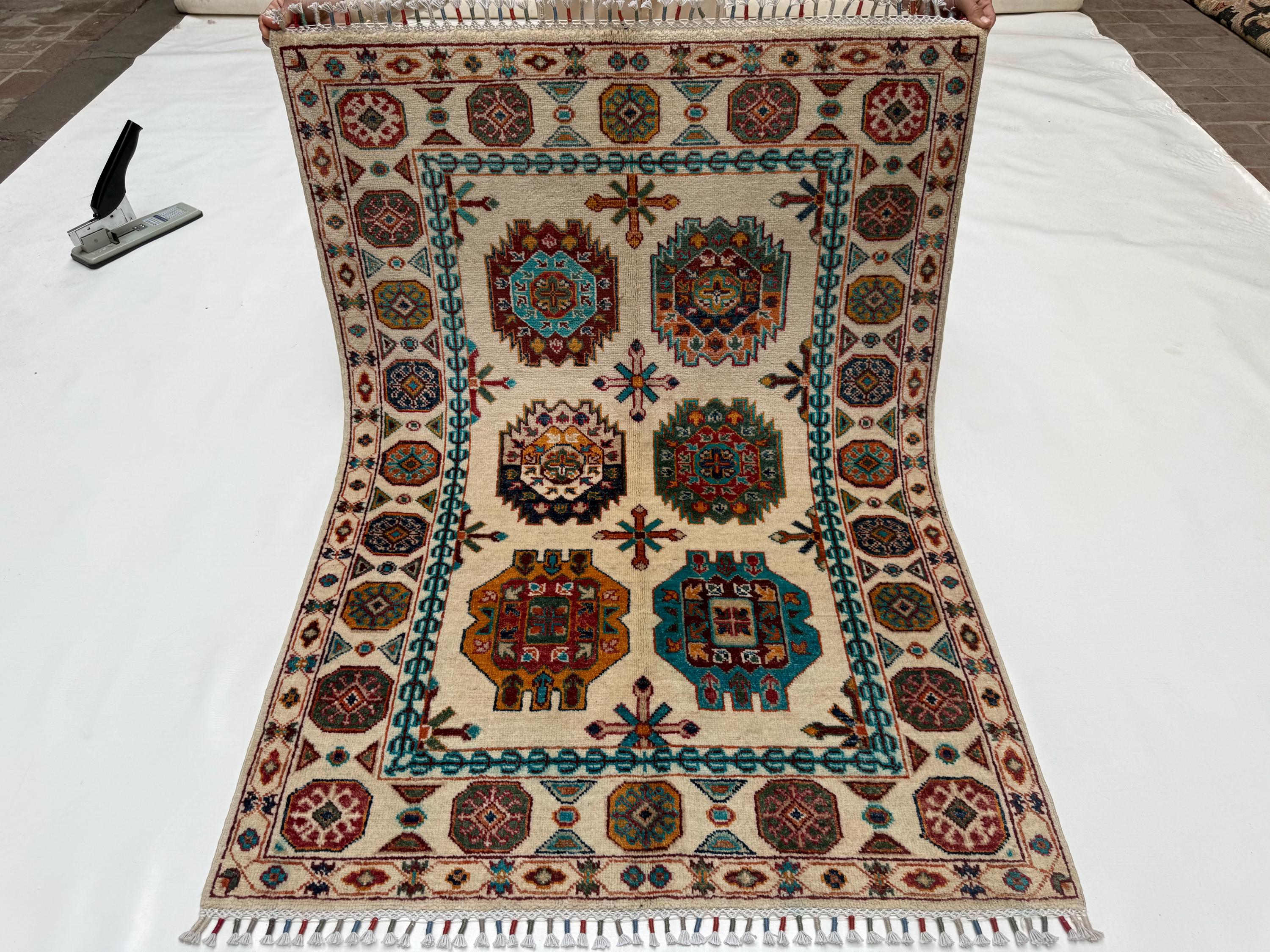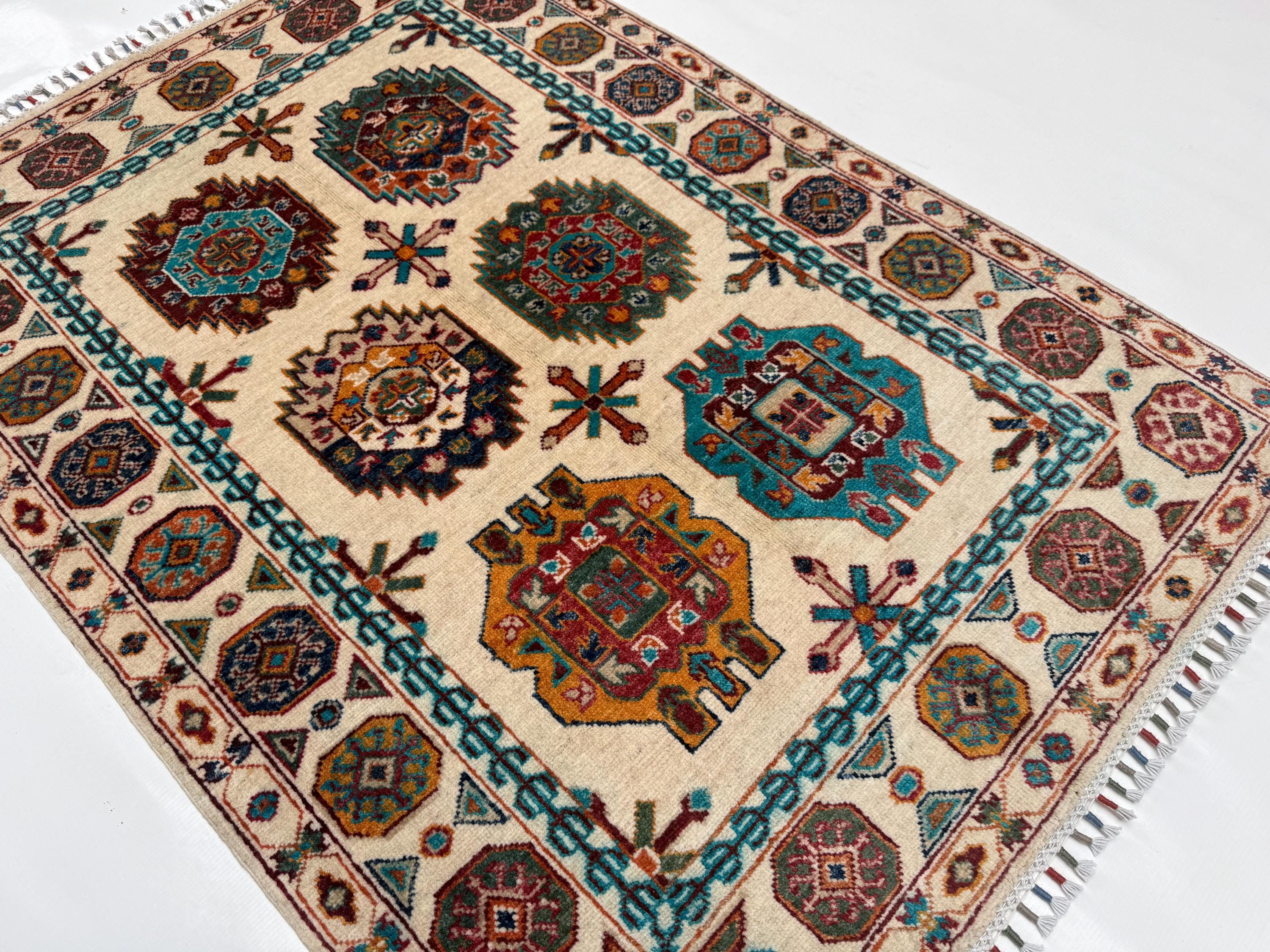 Pilpai Wool Area Rug 3x5 ft, Geometric Medallion Rug with Tribal Motifs, Colorful Accent Rug for Home Decor
