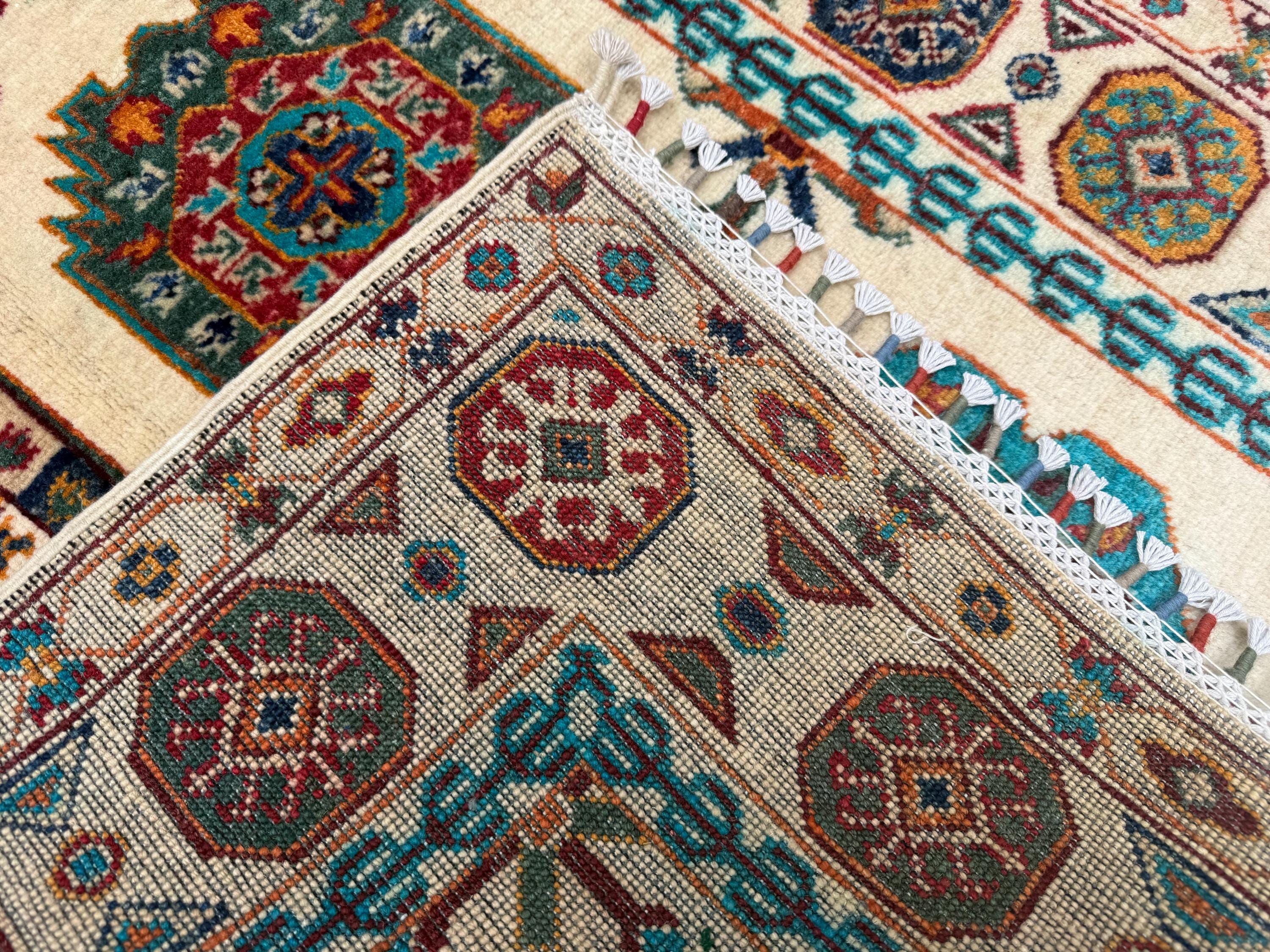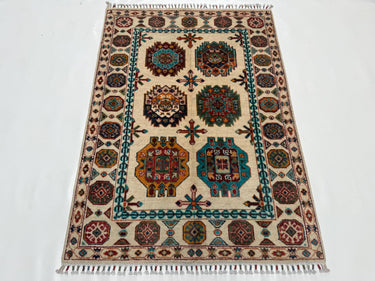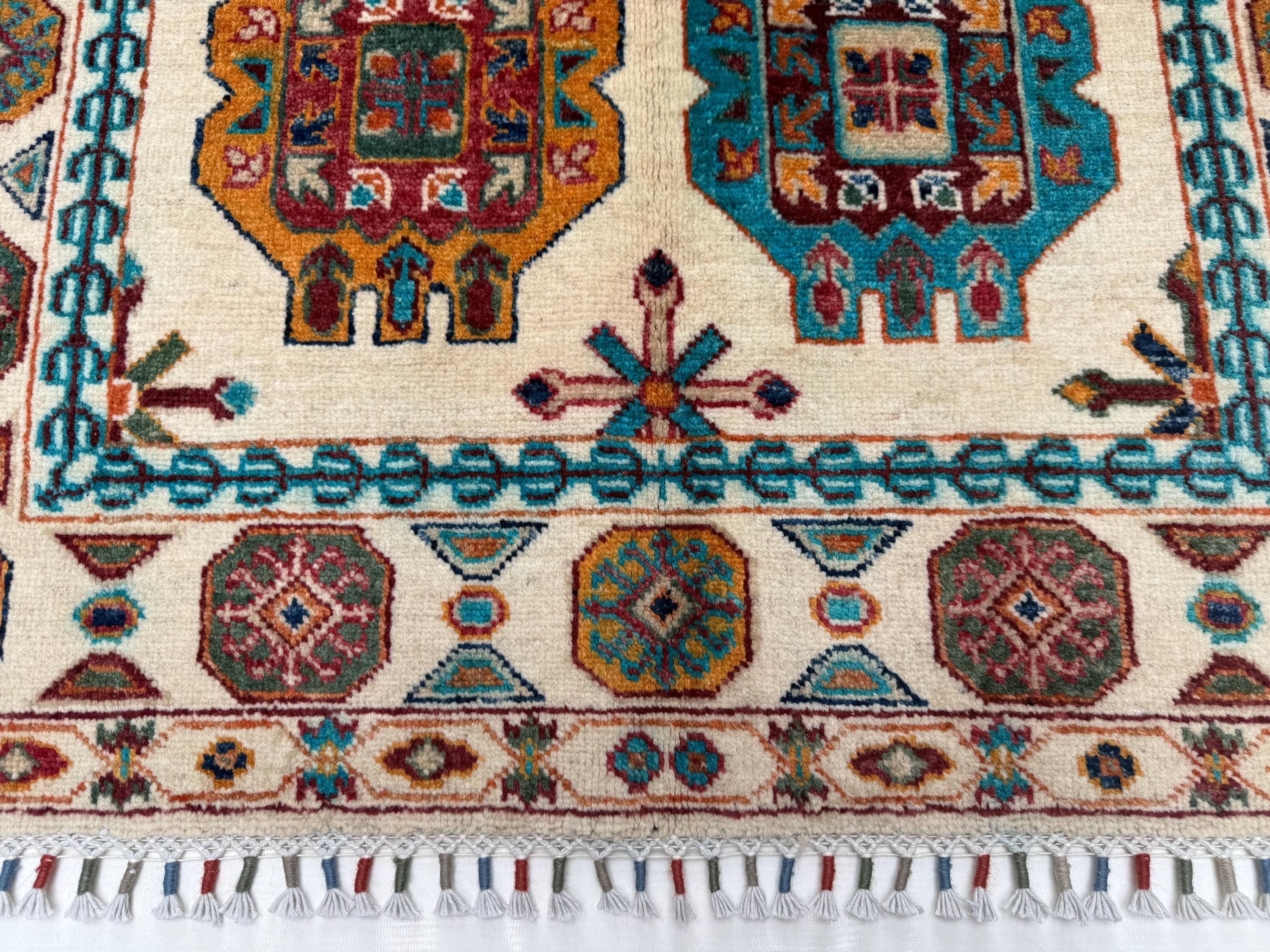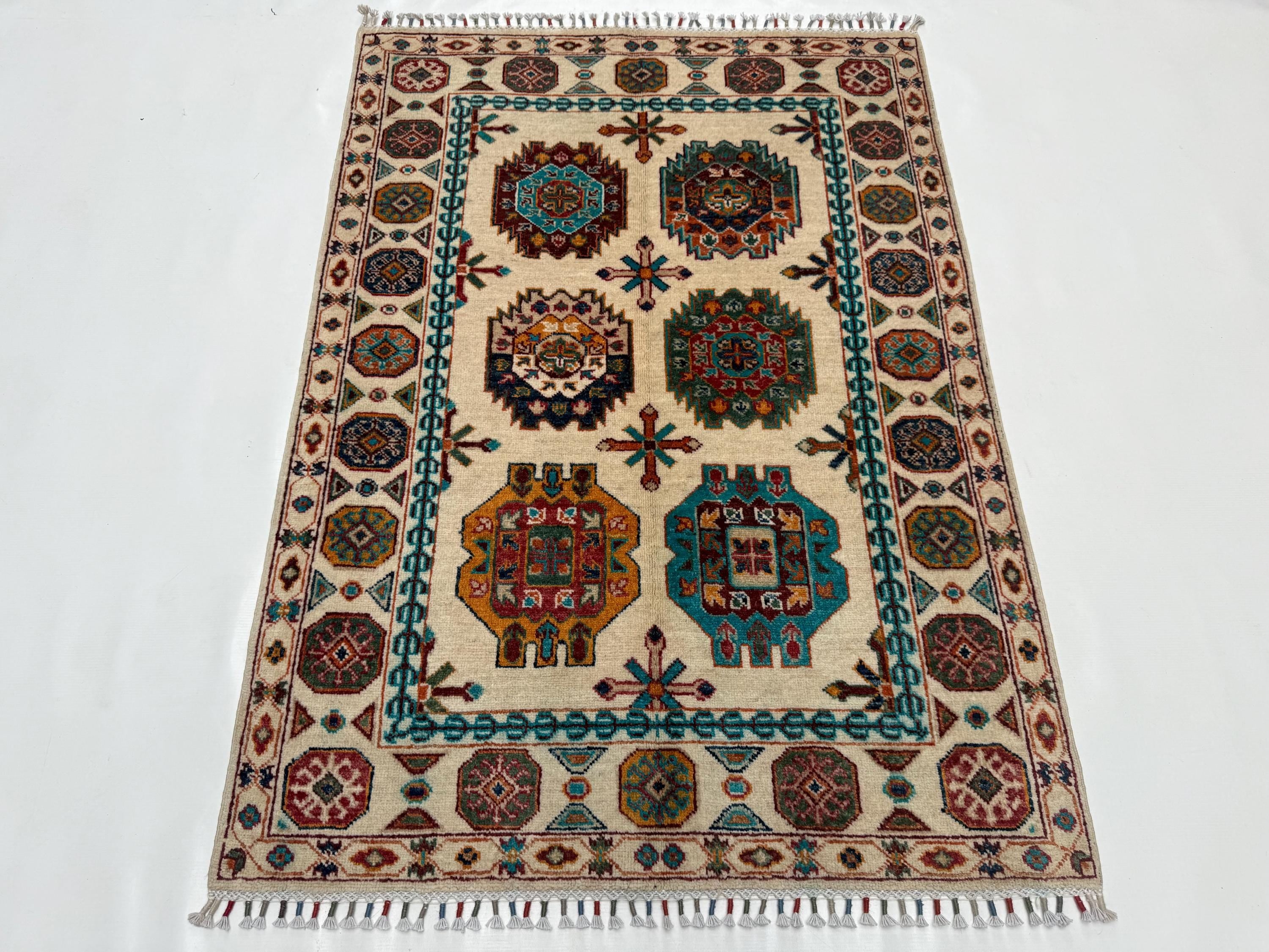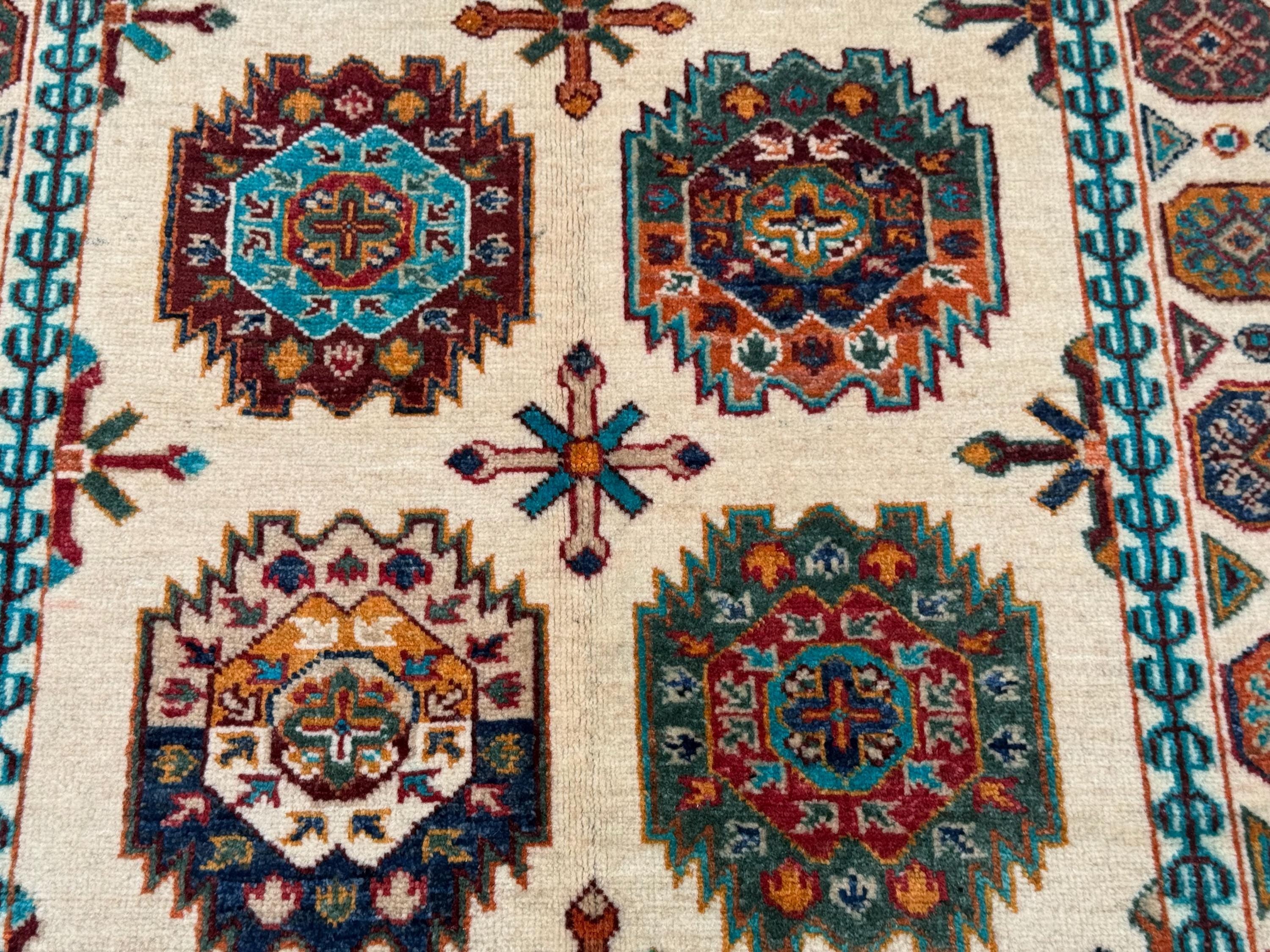 Pilpai Wool Area Rug 3x5 ft, Geometric Medallion Rug with Tribal Motifs, Colorful Accent Rug for Home Decor