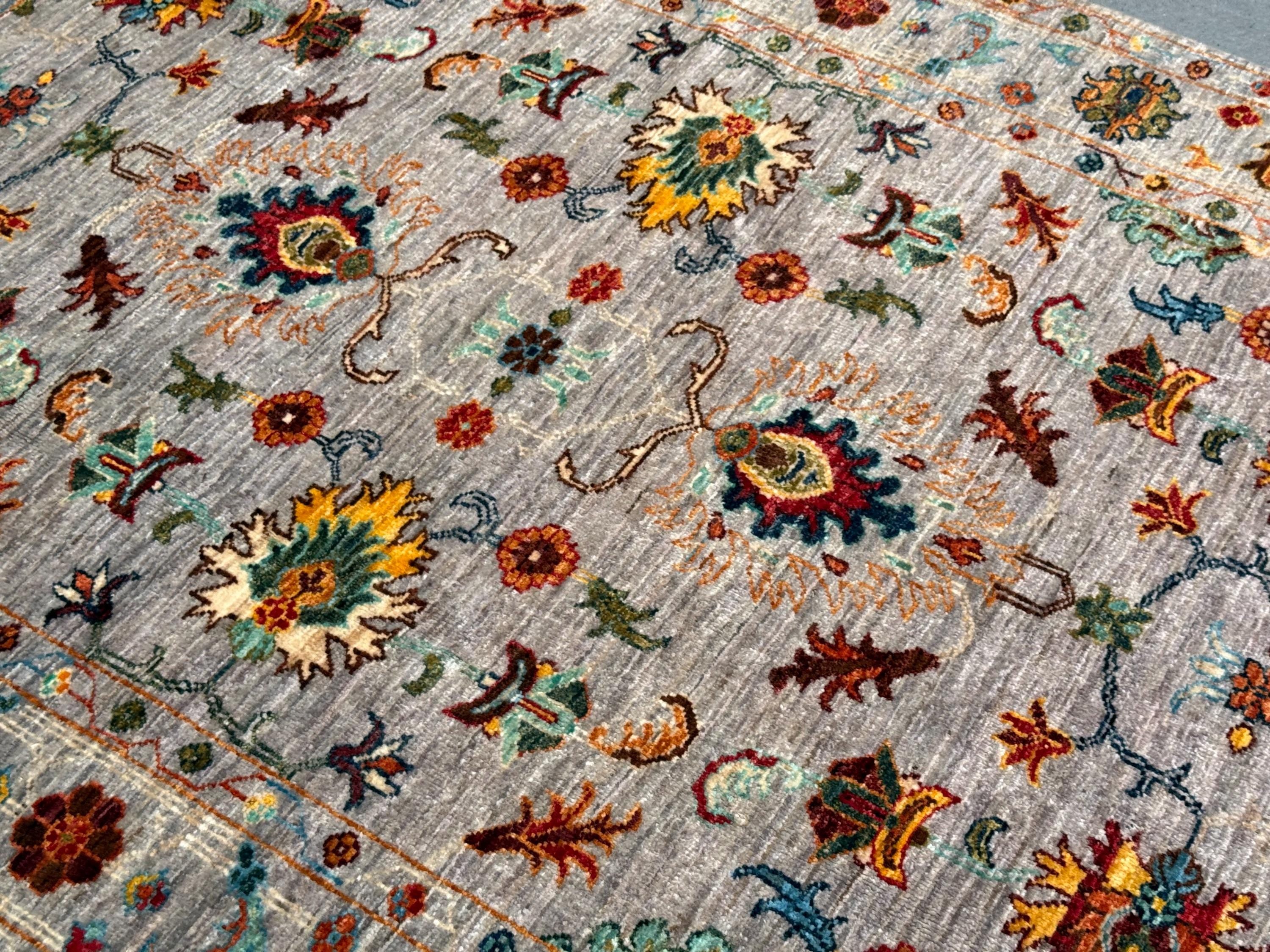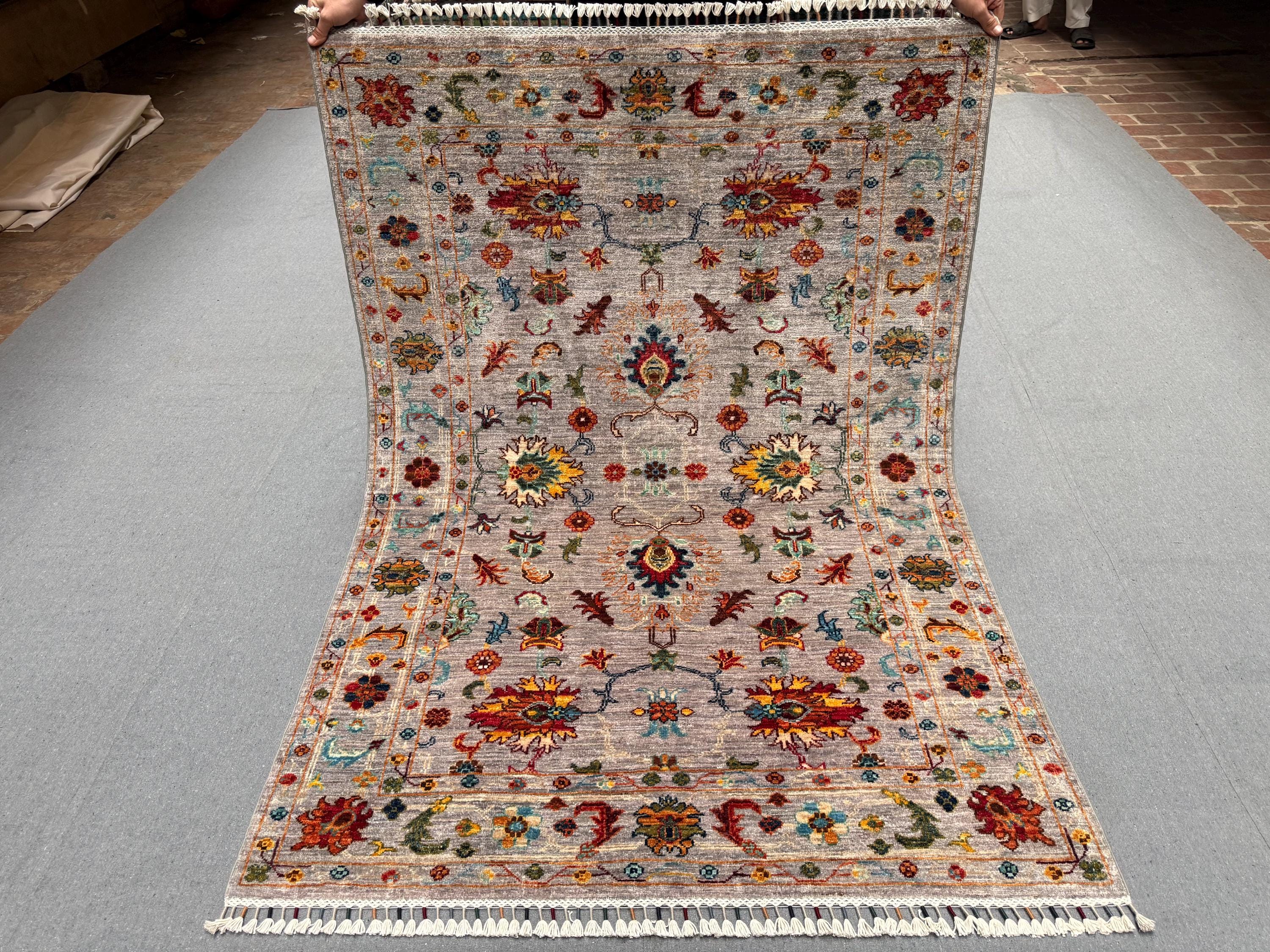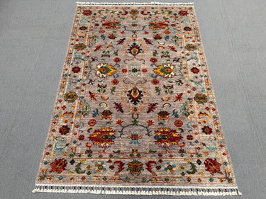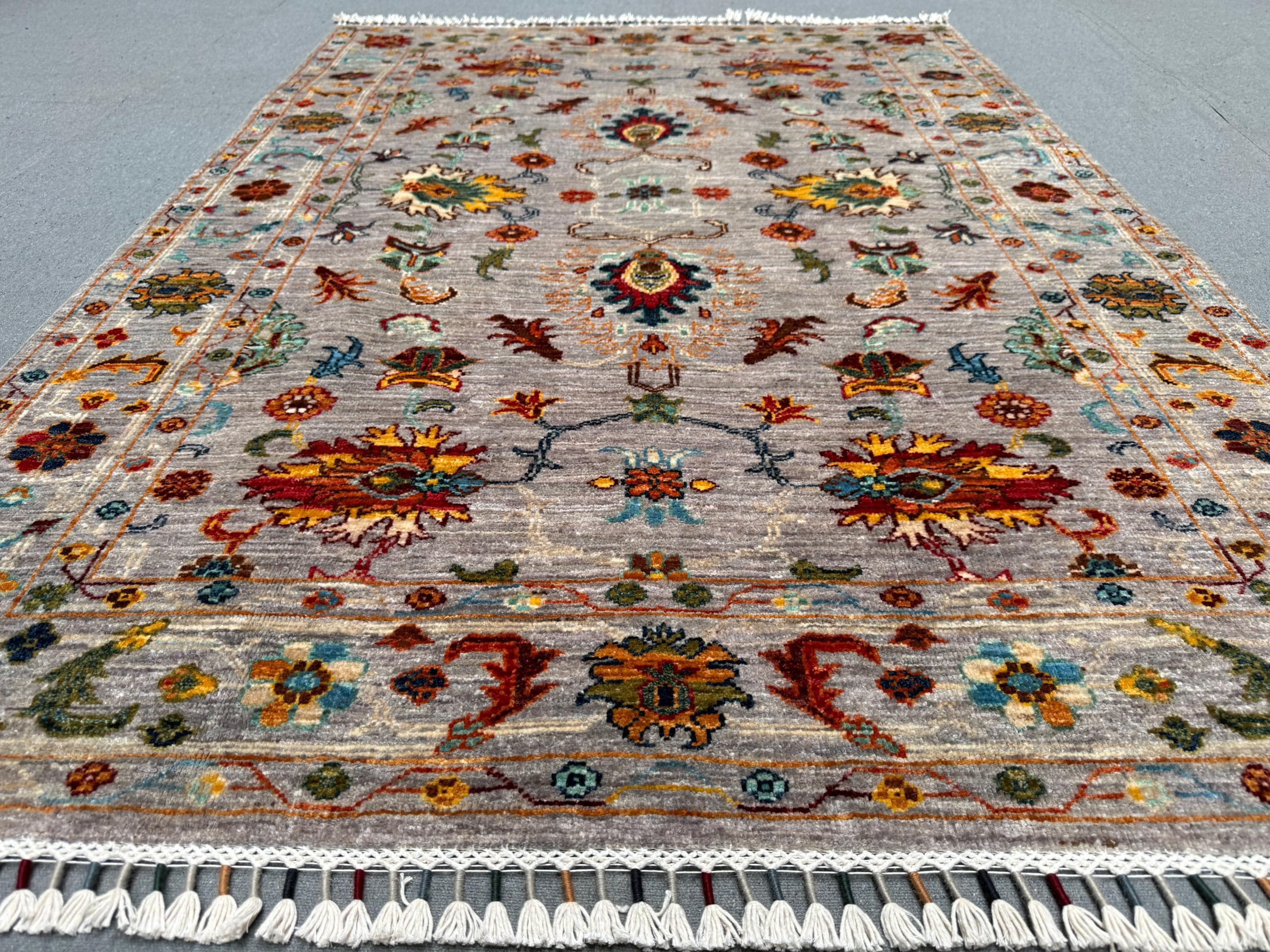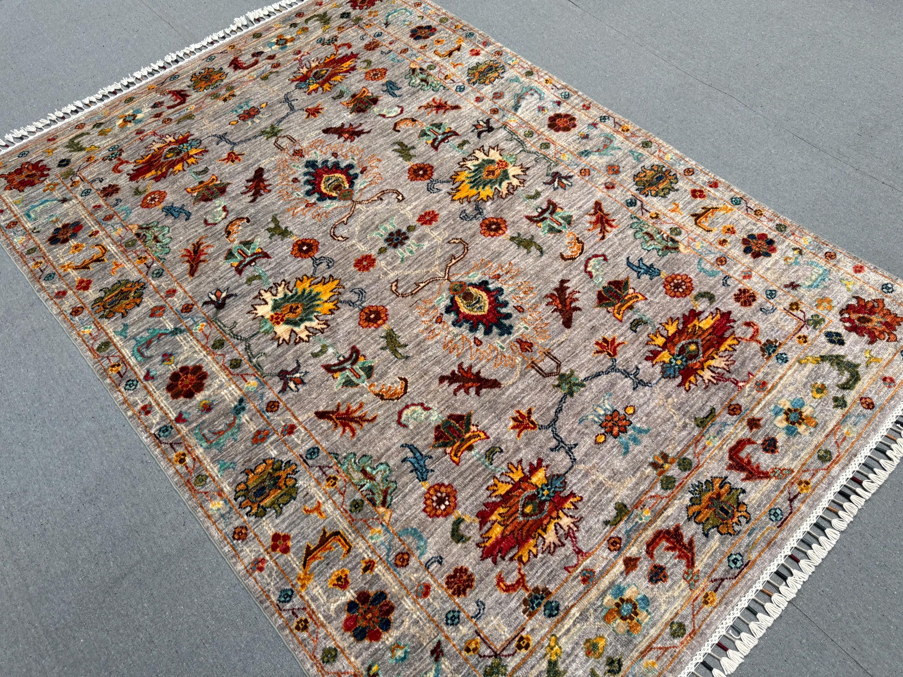 Handmade Sultani Rug 4x5 ft Afghan Gray Wool Area Rug, Floral Oriental Carpet, Boho Living Room Decor, Traditional Handmade Rug