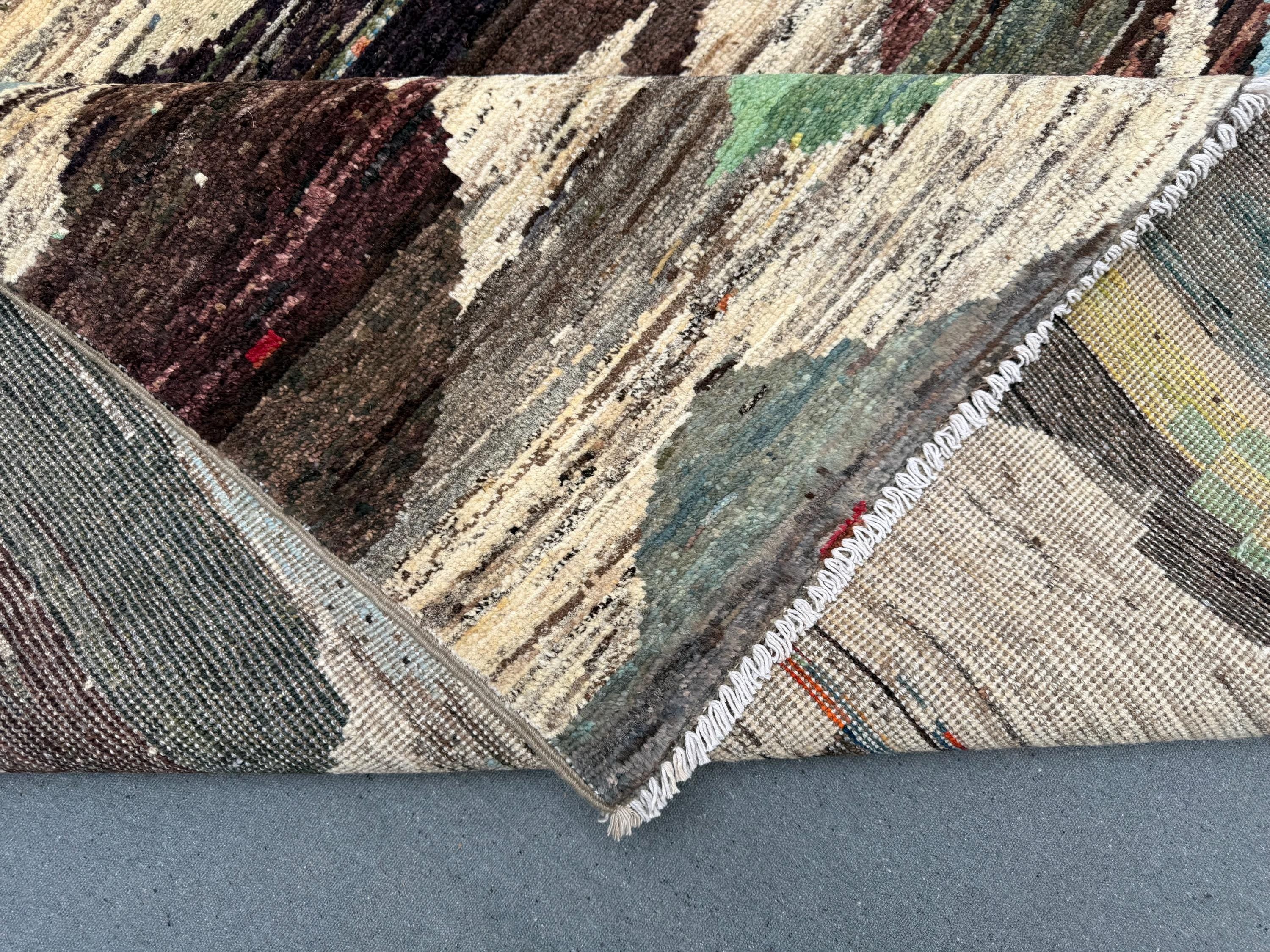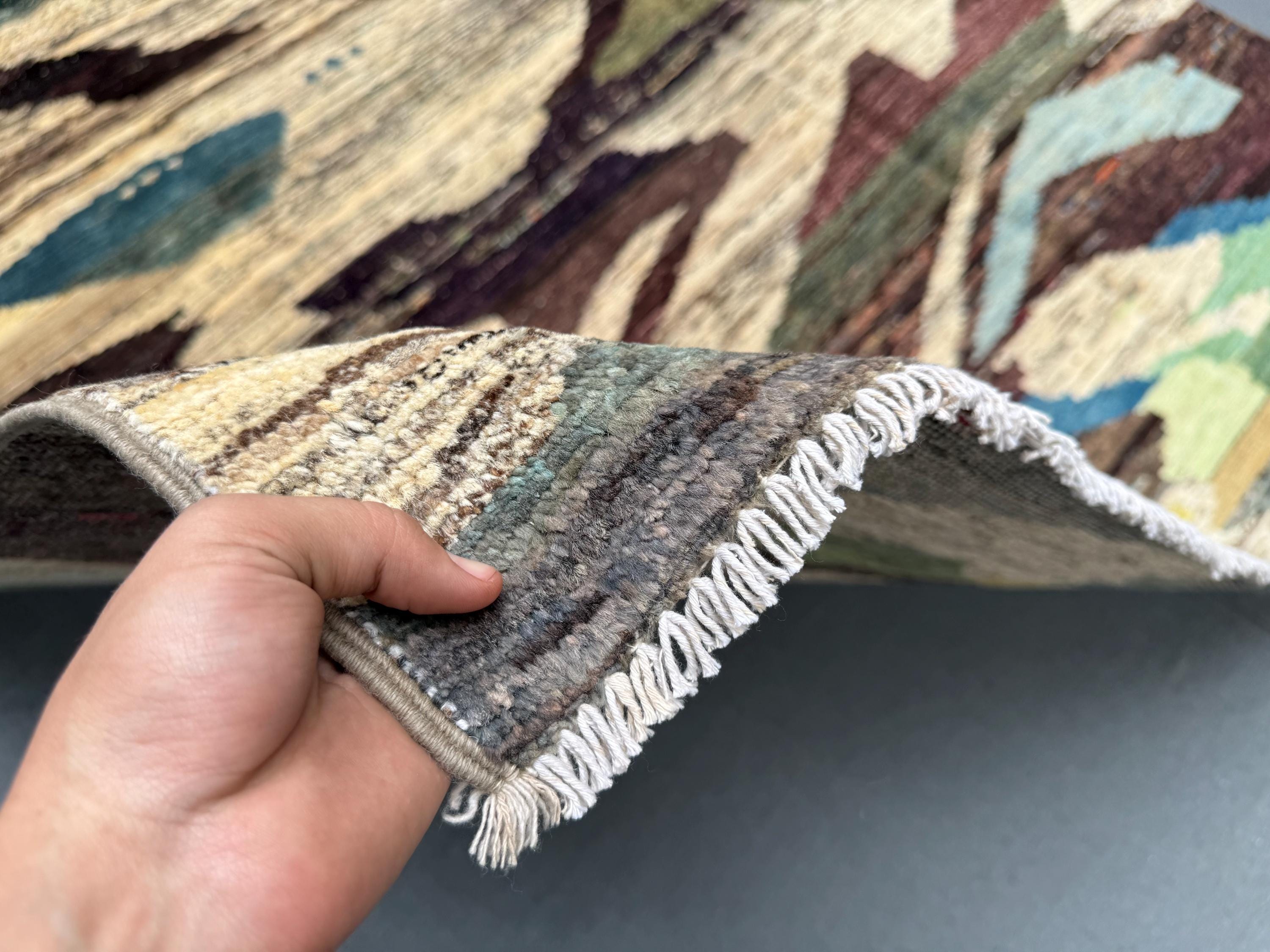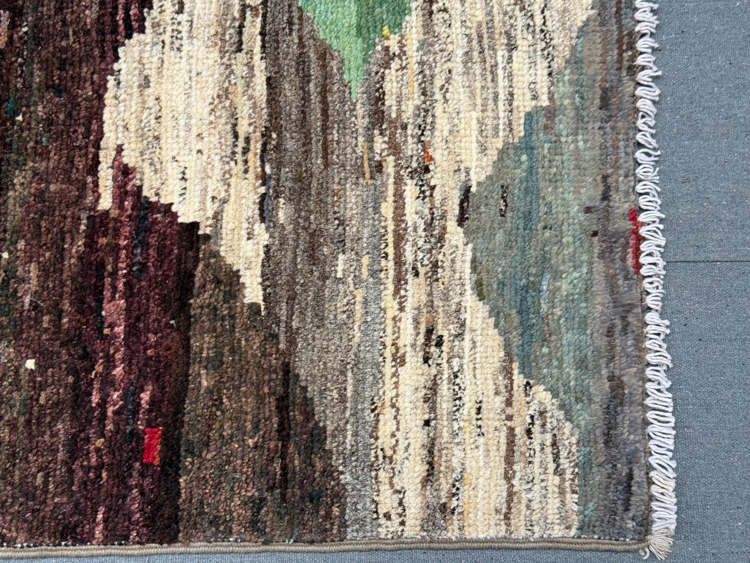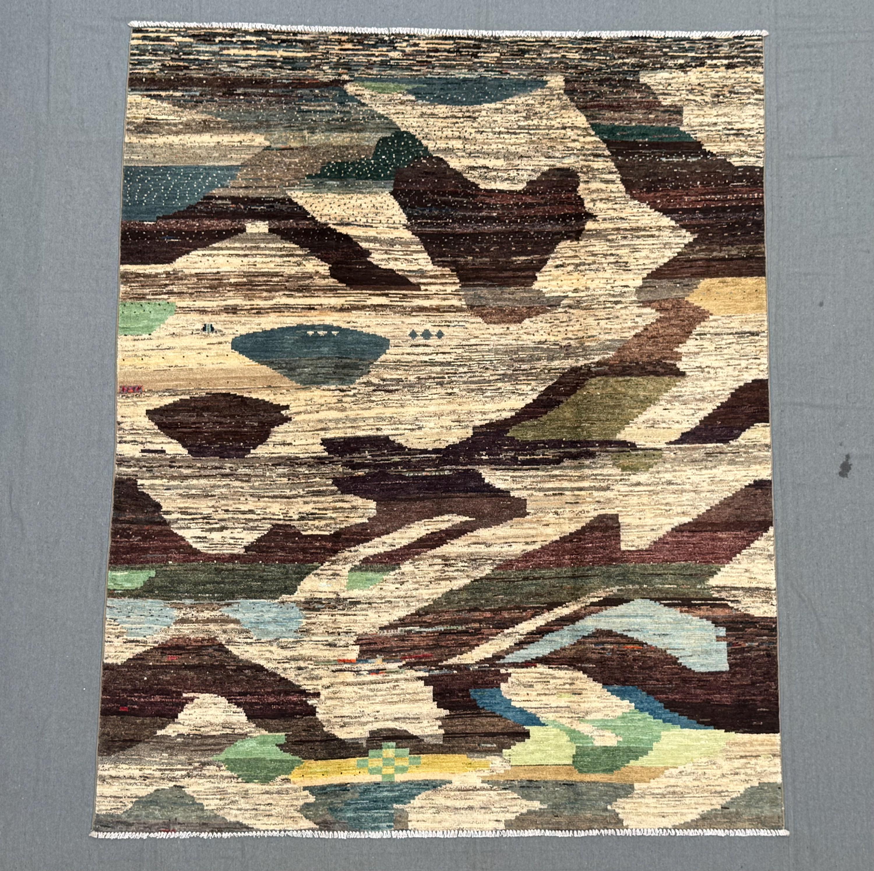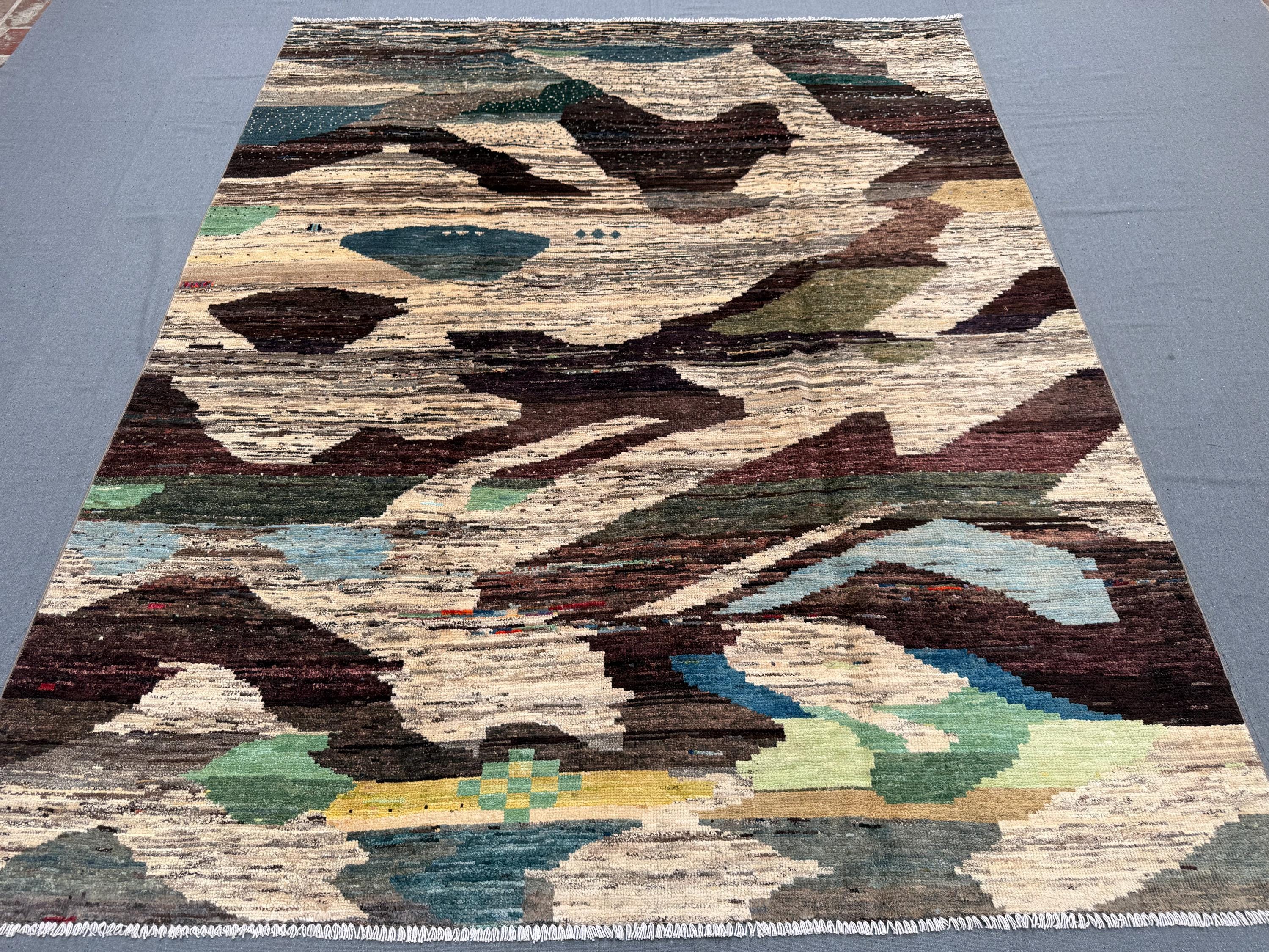 Handmade Gabbeh Style Rug 7x8 ft Modern Abstract Geometric Wool Area Rug in Neutral Earth Tones