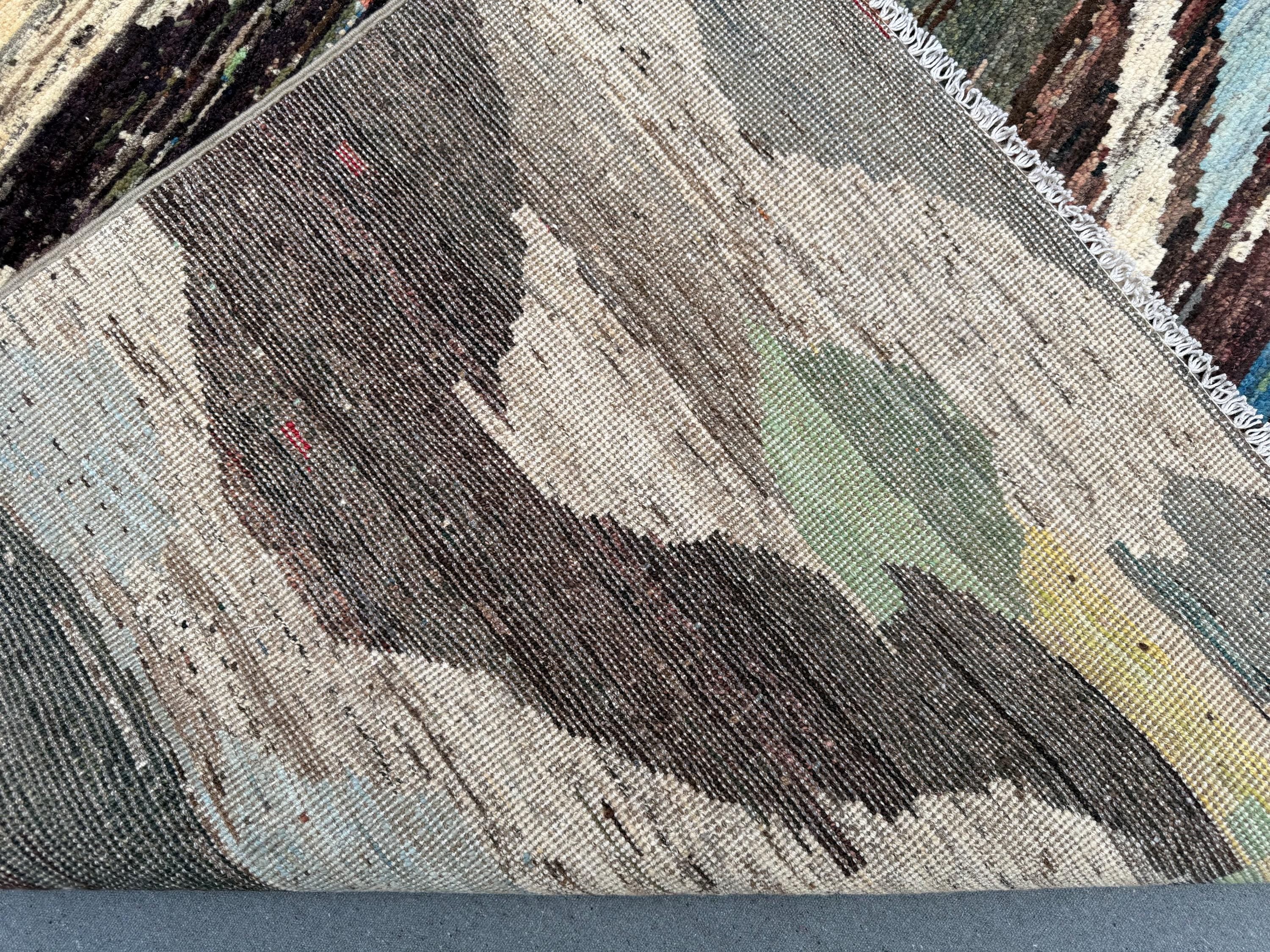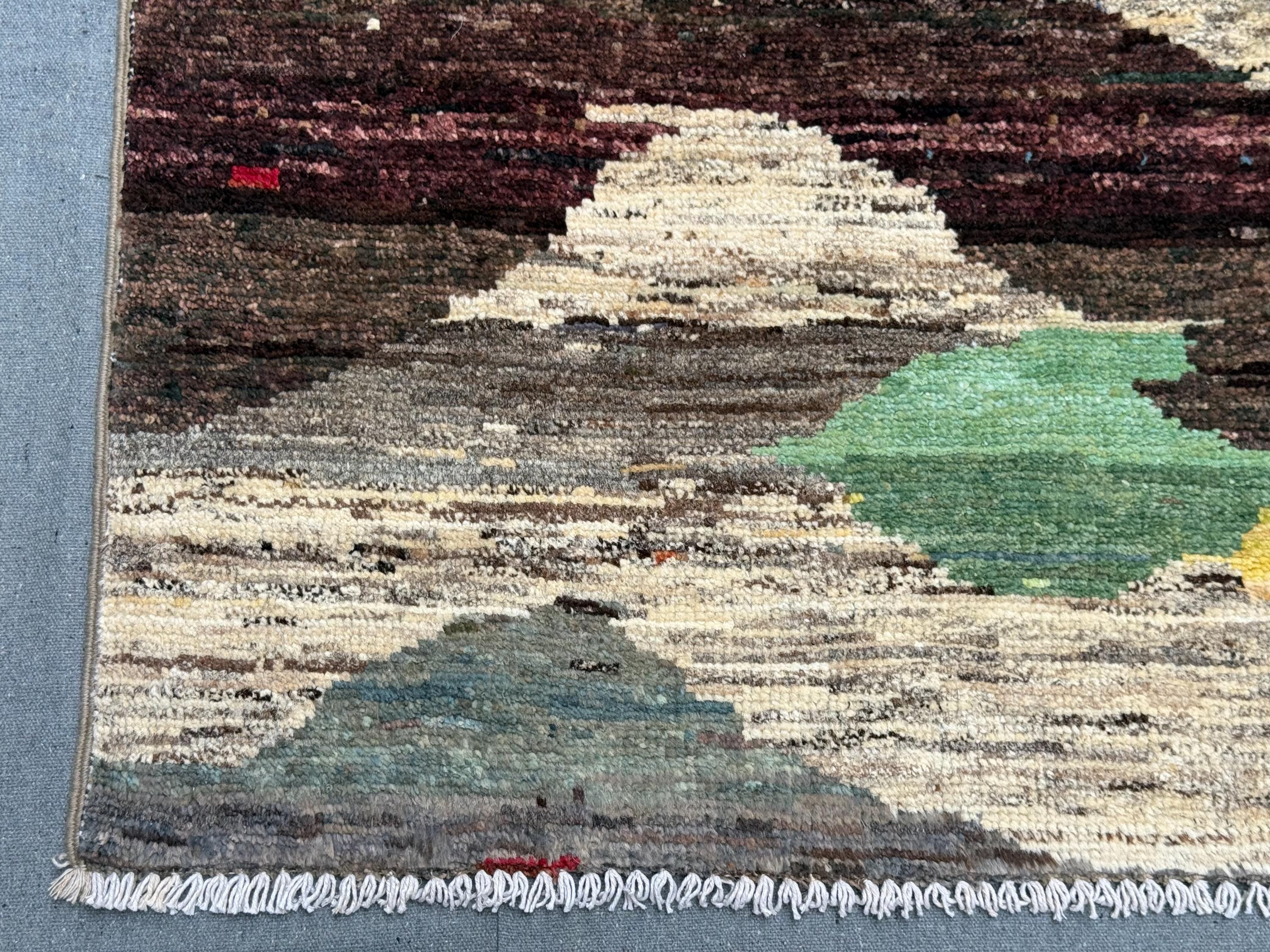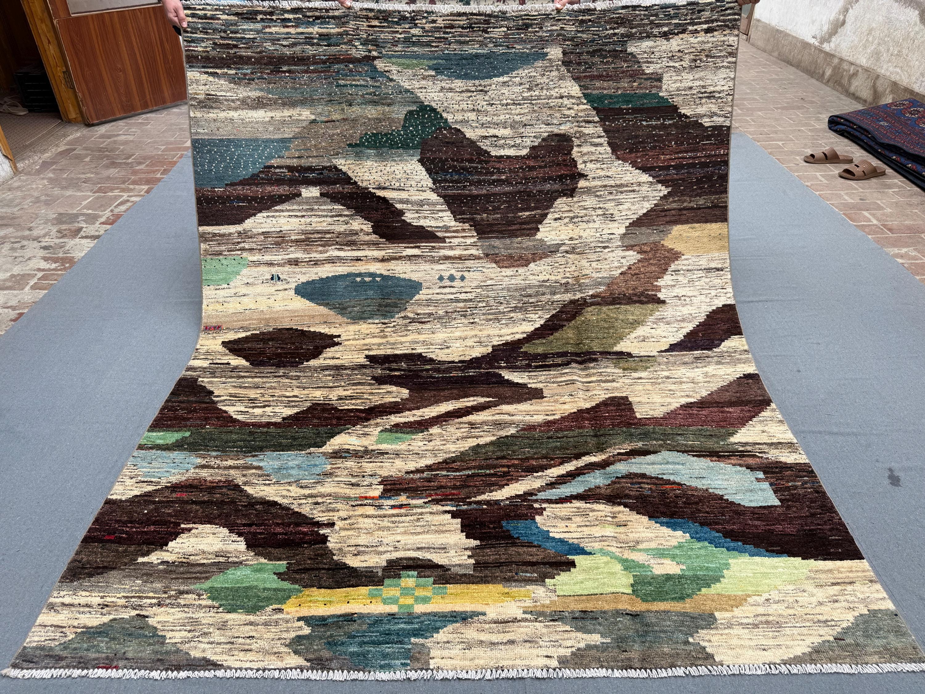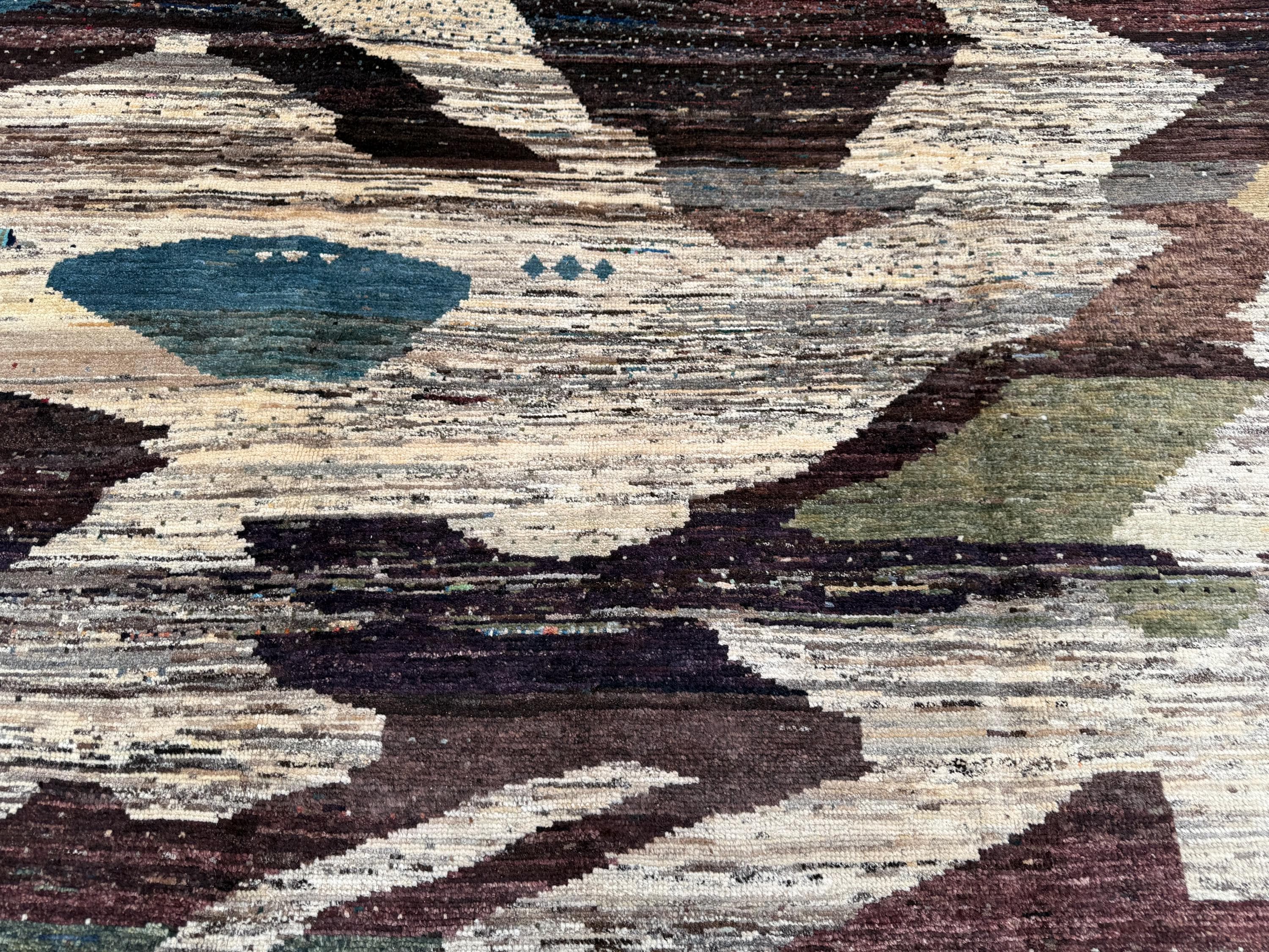 Handmade Gabbeh Style Rug 7x8 ft Modern Abstract Geometric Wool Area Rug in Neutral Earth Tones