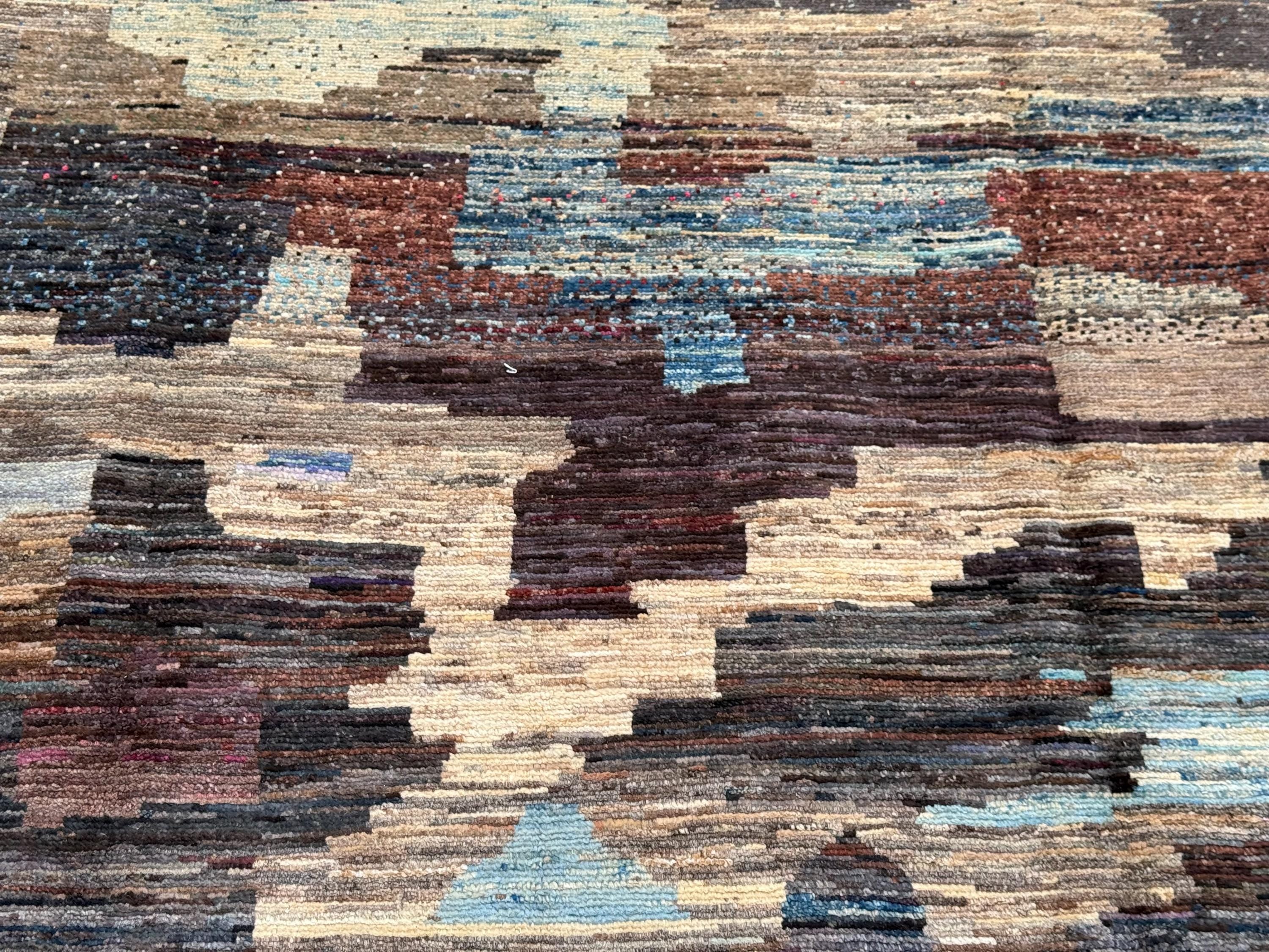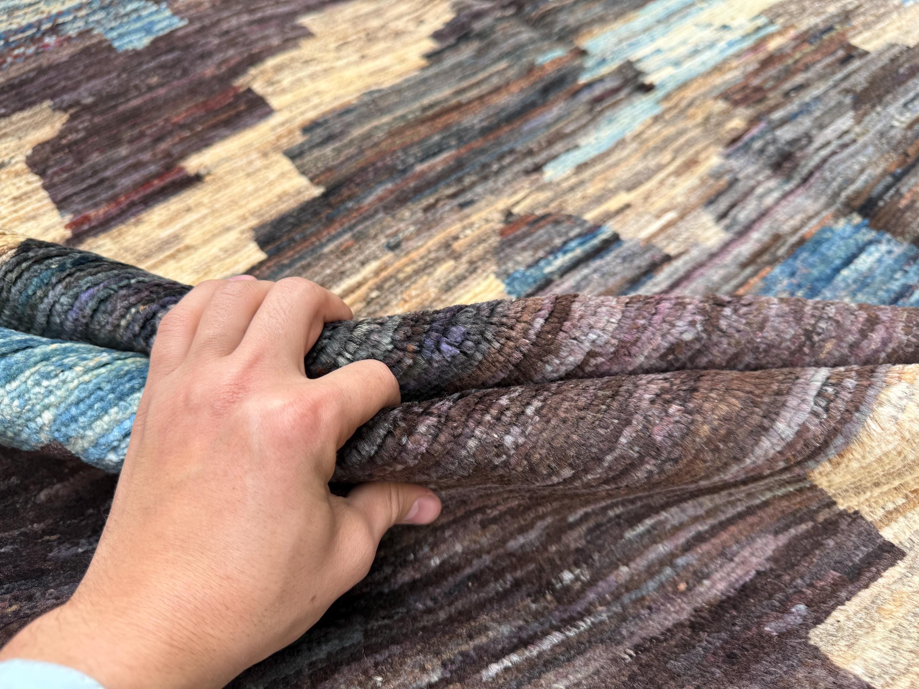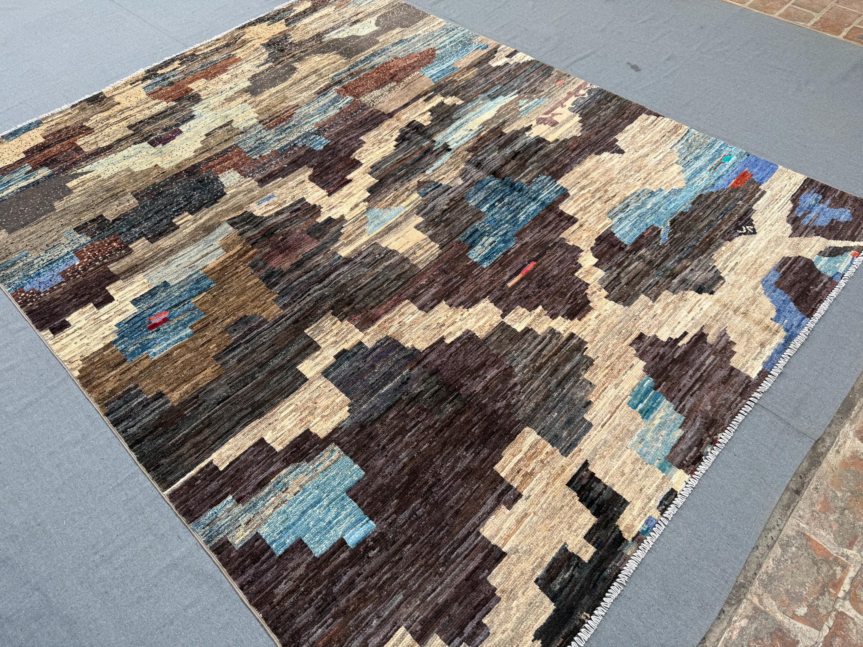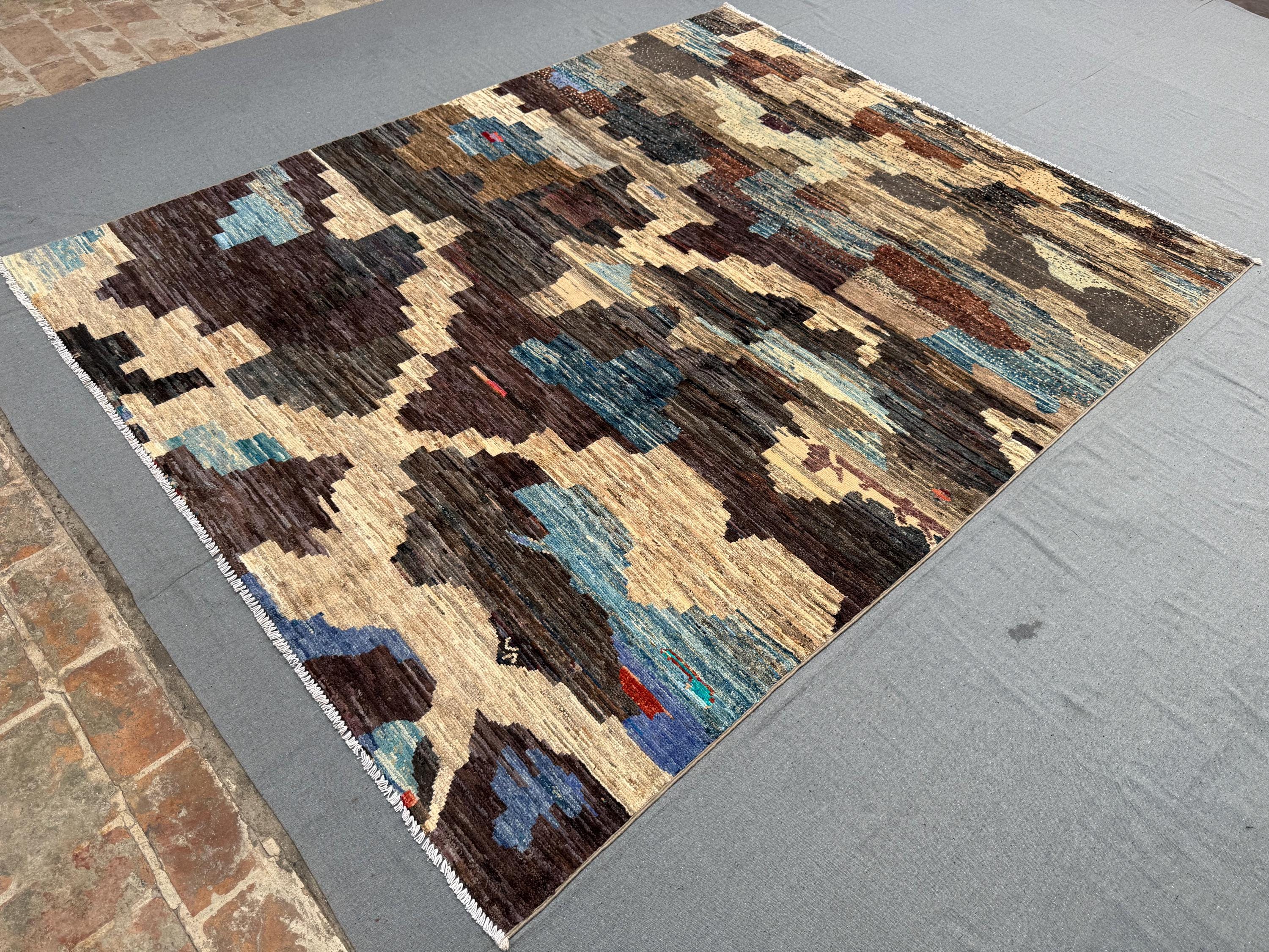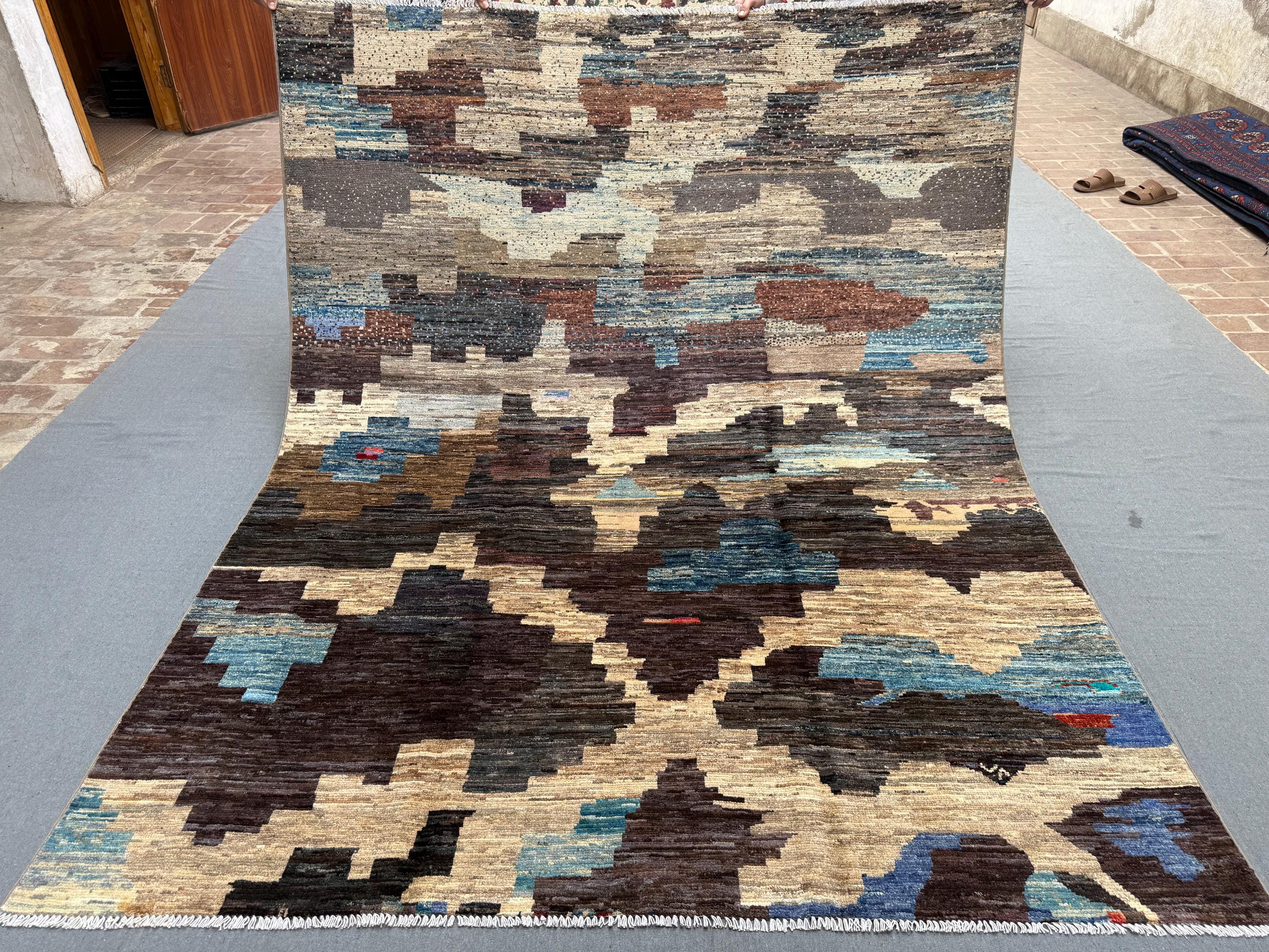 Hand-knotted from high-quality wool, this rug offers a soft yet durable pile with organic texture and natural tonal variation. The abstract layout gives it a modern, artistic feel, making it a perfect choice for contemporary, minimalist, boho, or eclectic interiors.