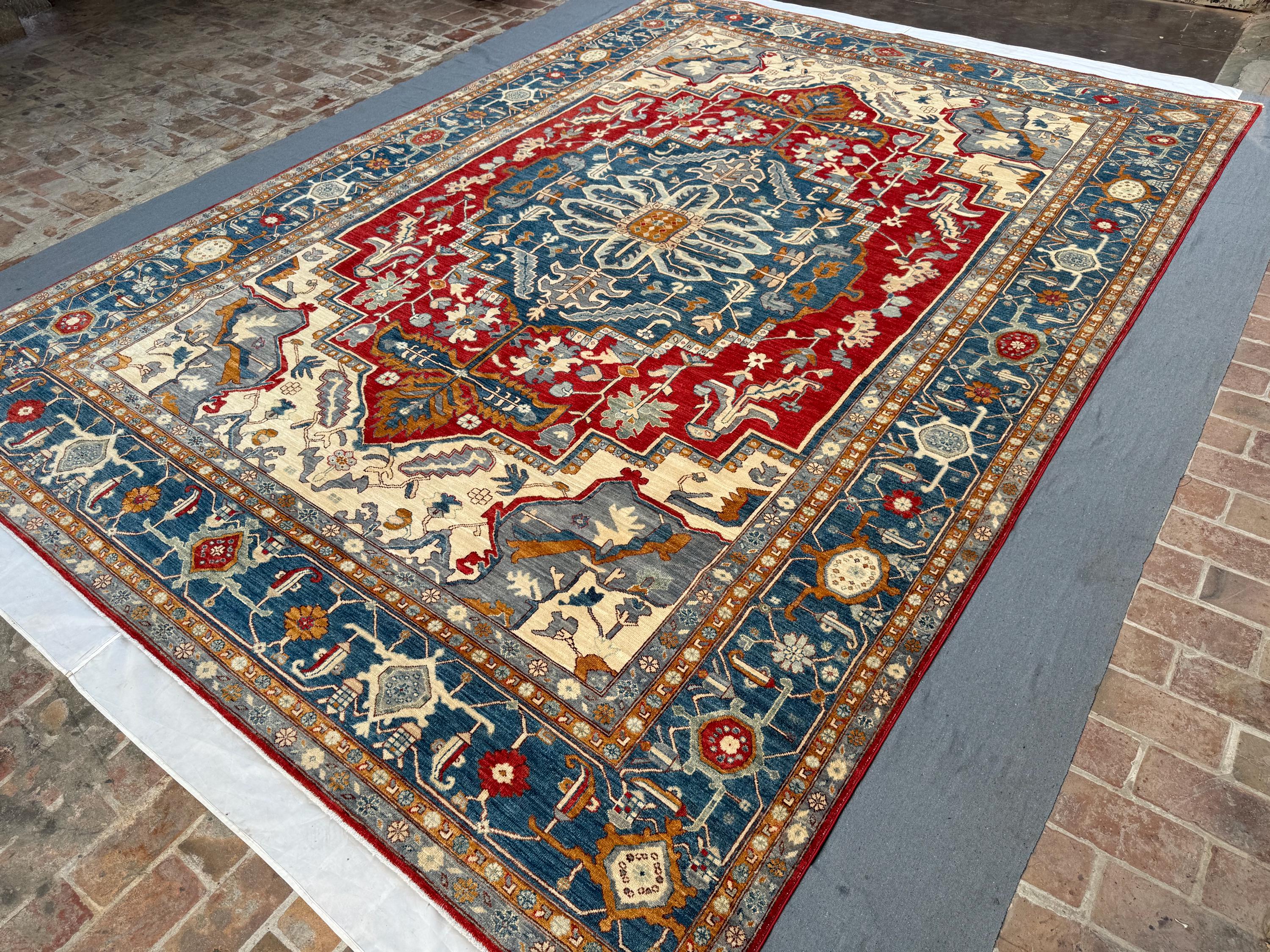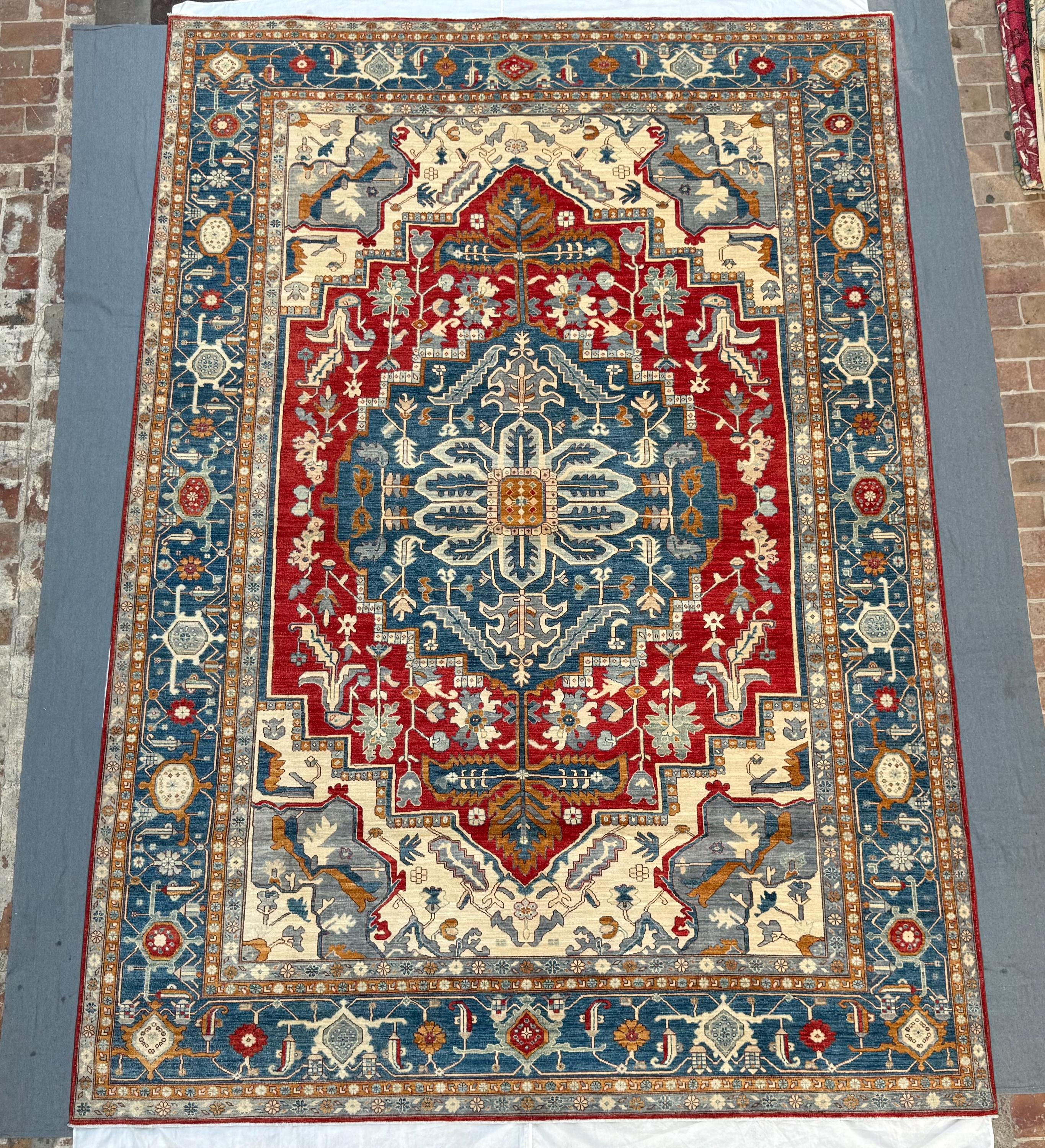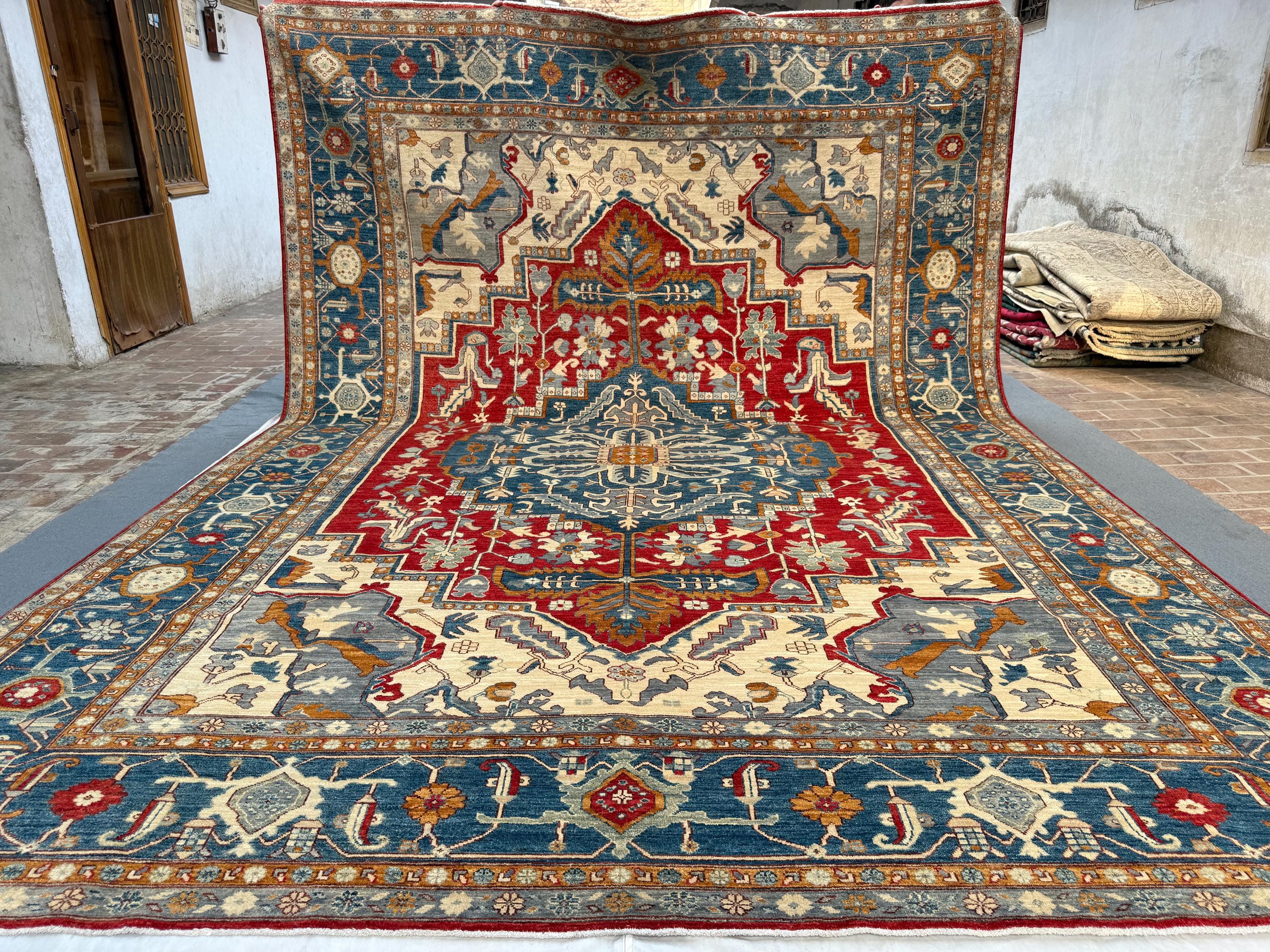 Style: Heriz design – bold geometric medallion with detailed tribal motifs