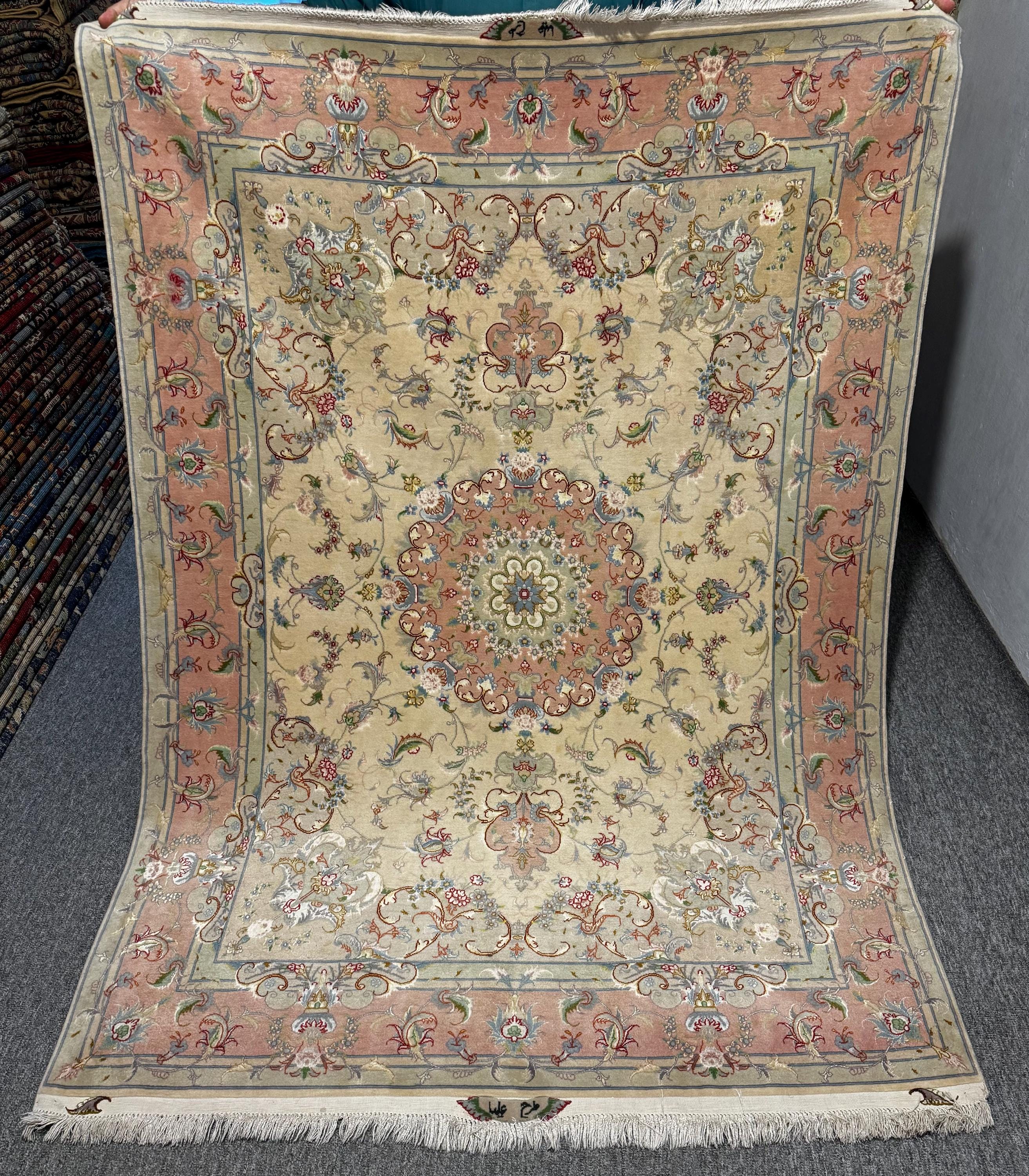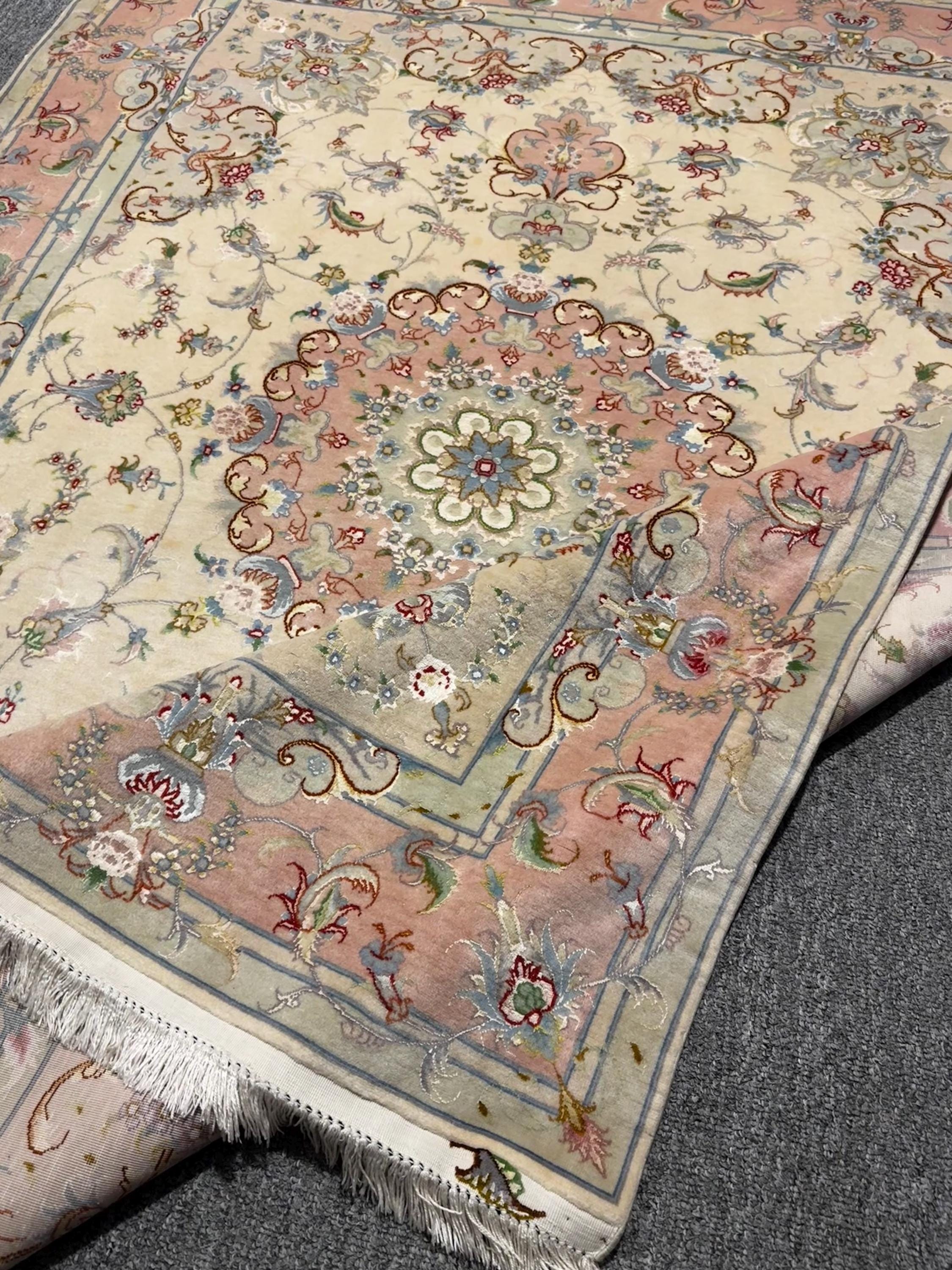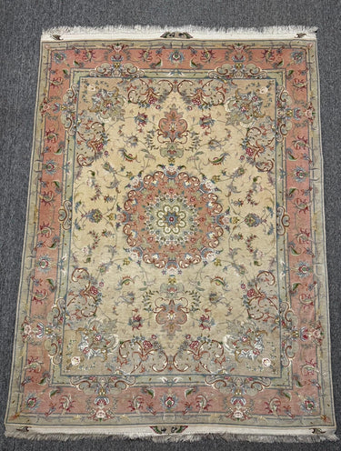 Fine Handmade Shahi Tabriz Wool & Silk Rug 4x7 ft Oriental Area Carpet, Luxury Floral Medallion Design, High-End Vintage Style Home Decor